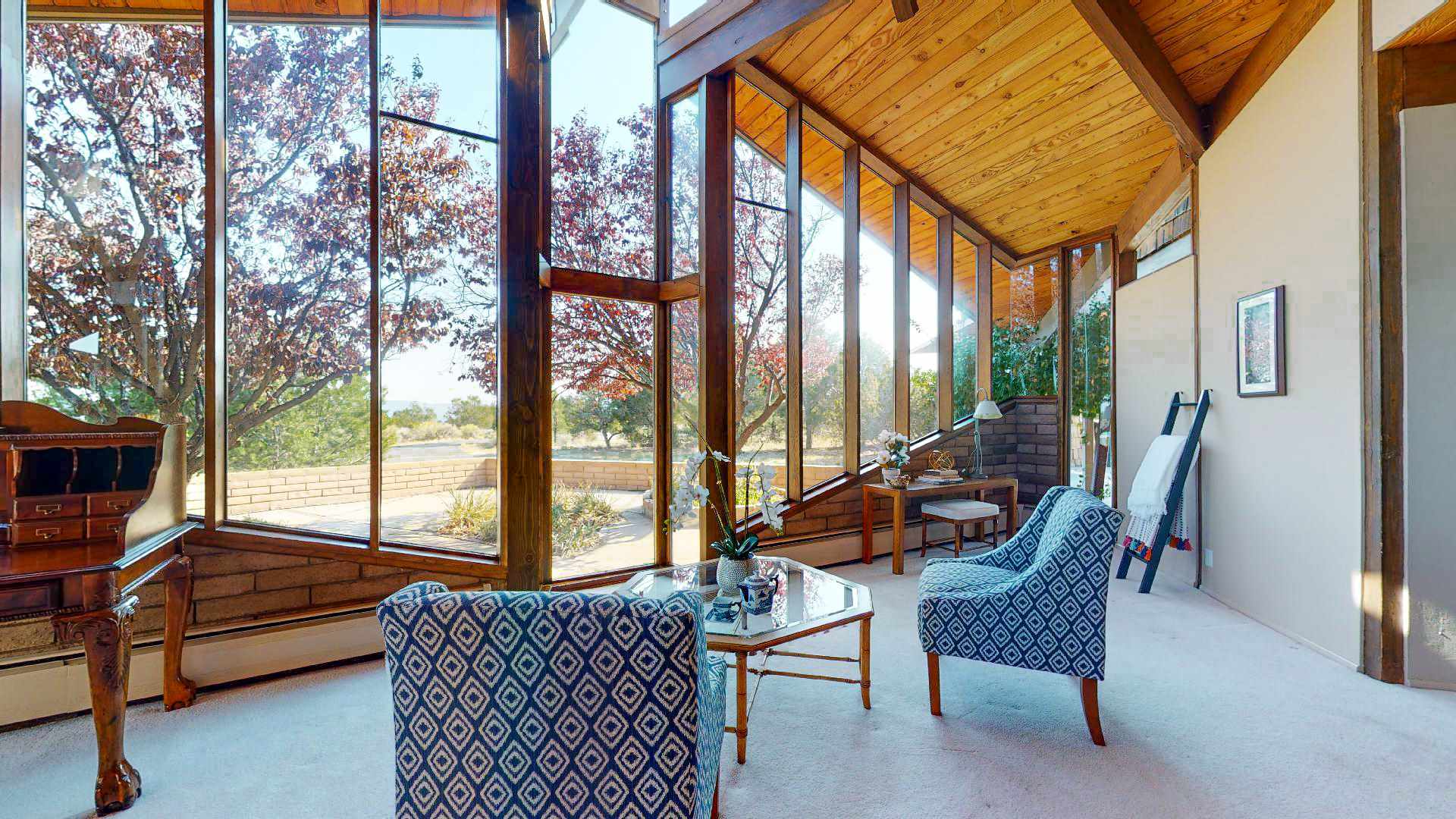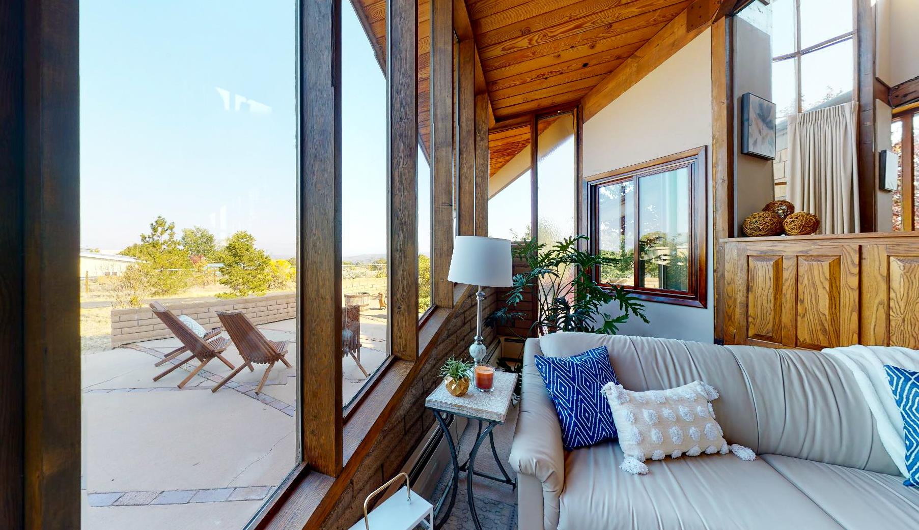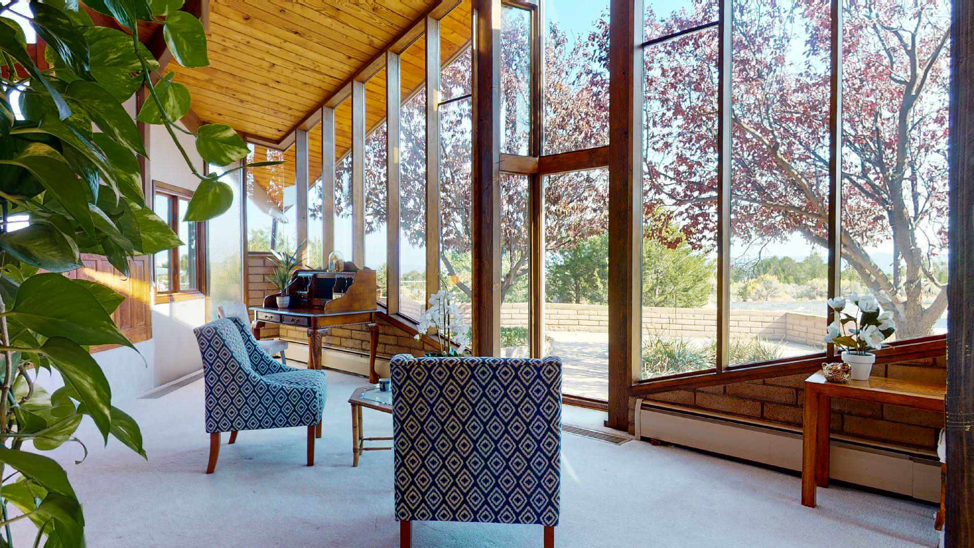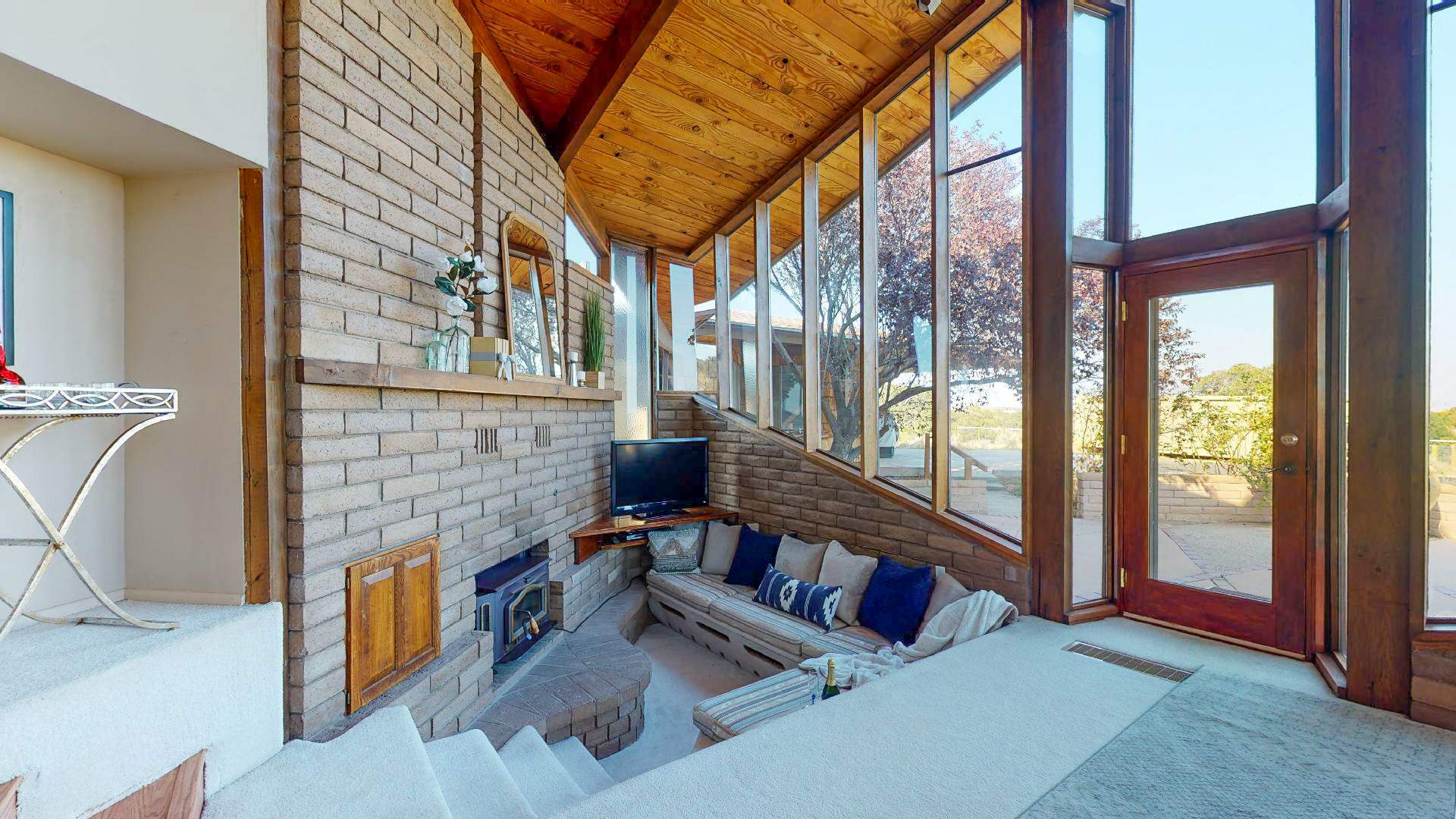 The proud owners of 107 La Senda Road know they have a special and unique home. Bart Prince designed this amazing property. Prince is a well-known architect who believes a home should be one of a kind, telling a story and does not need to be a glass steel box. Prince's designs are described as organic, forward-thinking and environmentally harmonious. Due to its unique style, this property has been featured in numerous architectural publications, magazines, newspapers and books. The property consists of 3 acres and provides amazing views from the Sangre de Cristo, San Miguel to the Jemez Mountains. Inside notice how all rooms connect to the kitchen - the heart of the home. Large picture windows frame the entire home. One of the two family rooms has a fun sunken living room (or conversation pit). It is the perfect place to hang out to watch TV or play video games. The upper level is the master suite with bedroom, bath, sitting area, large office and an outdoor balcony. Even the garage is a design masterpiece. It is 1,500 square feet with three areas. Each area is heated, has large windows and high, vaulted ceilings. This is a must-see property. Schedule a showing today.