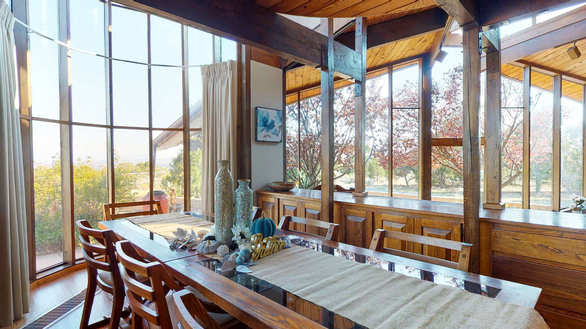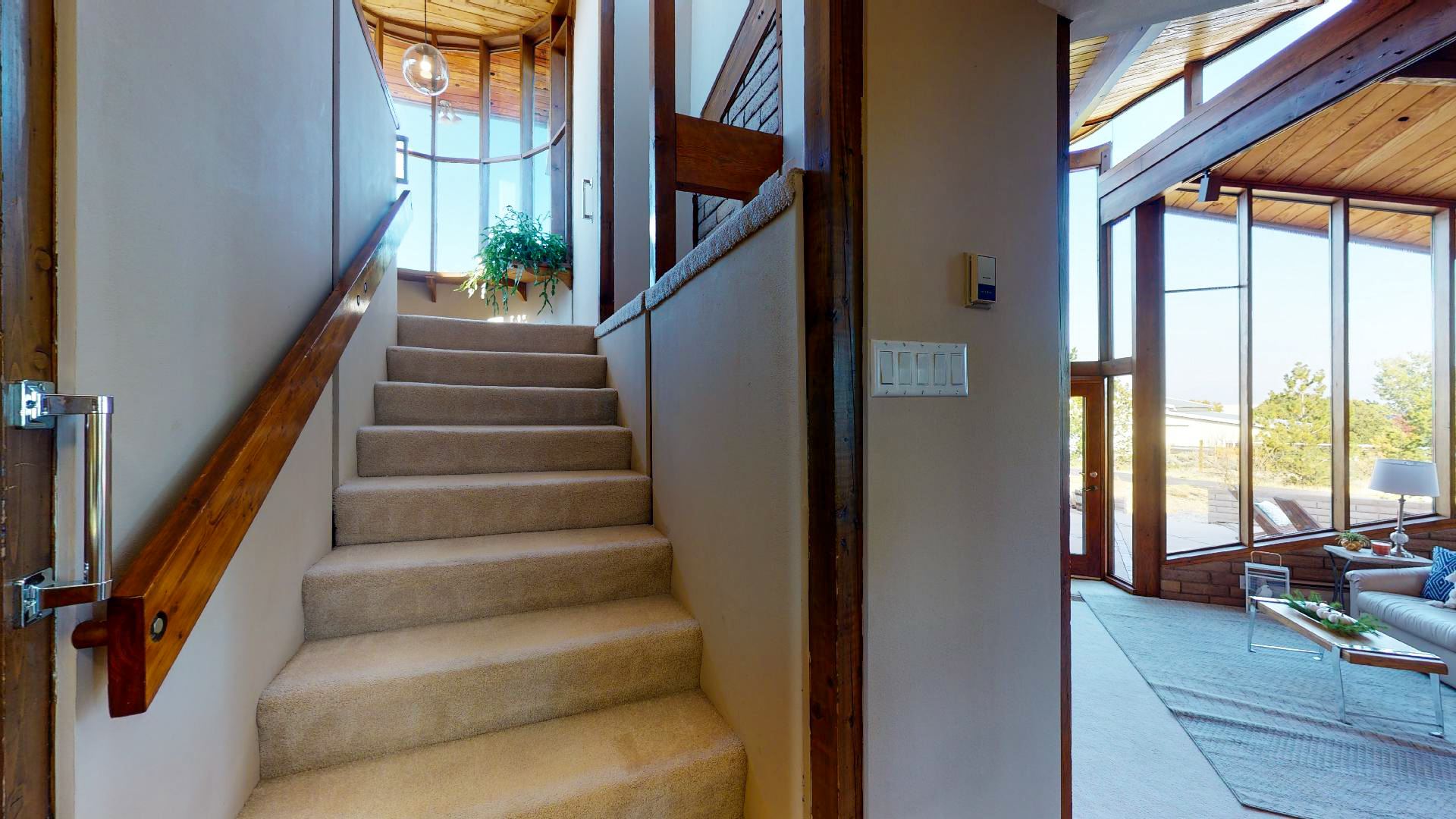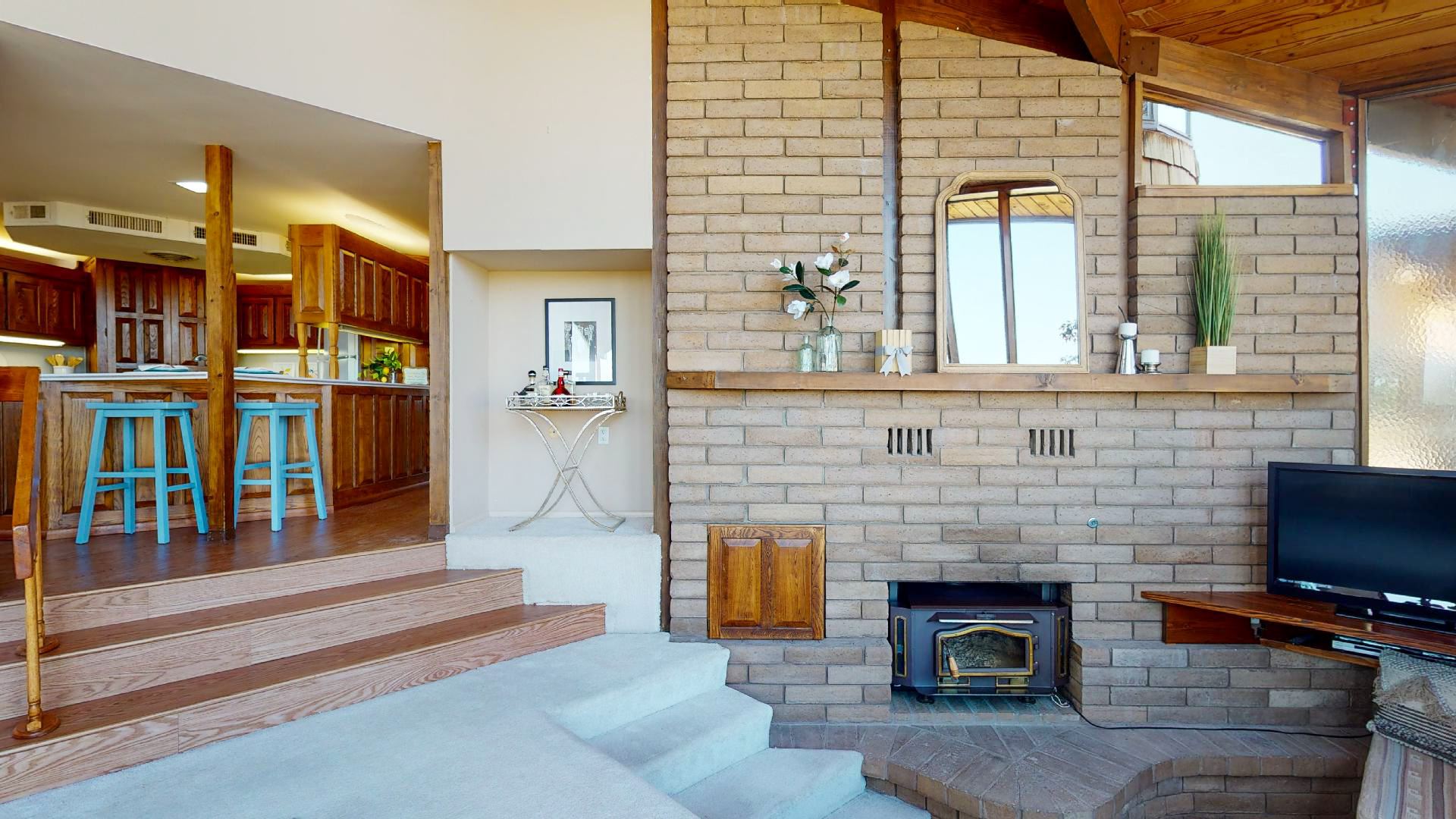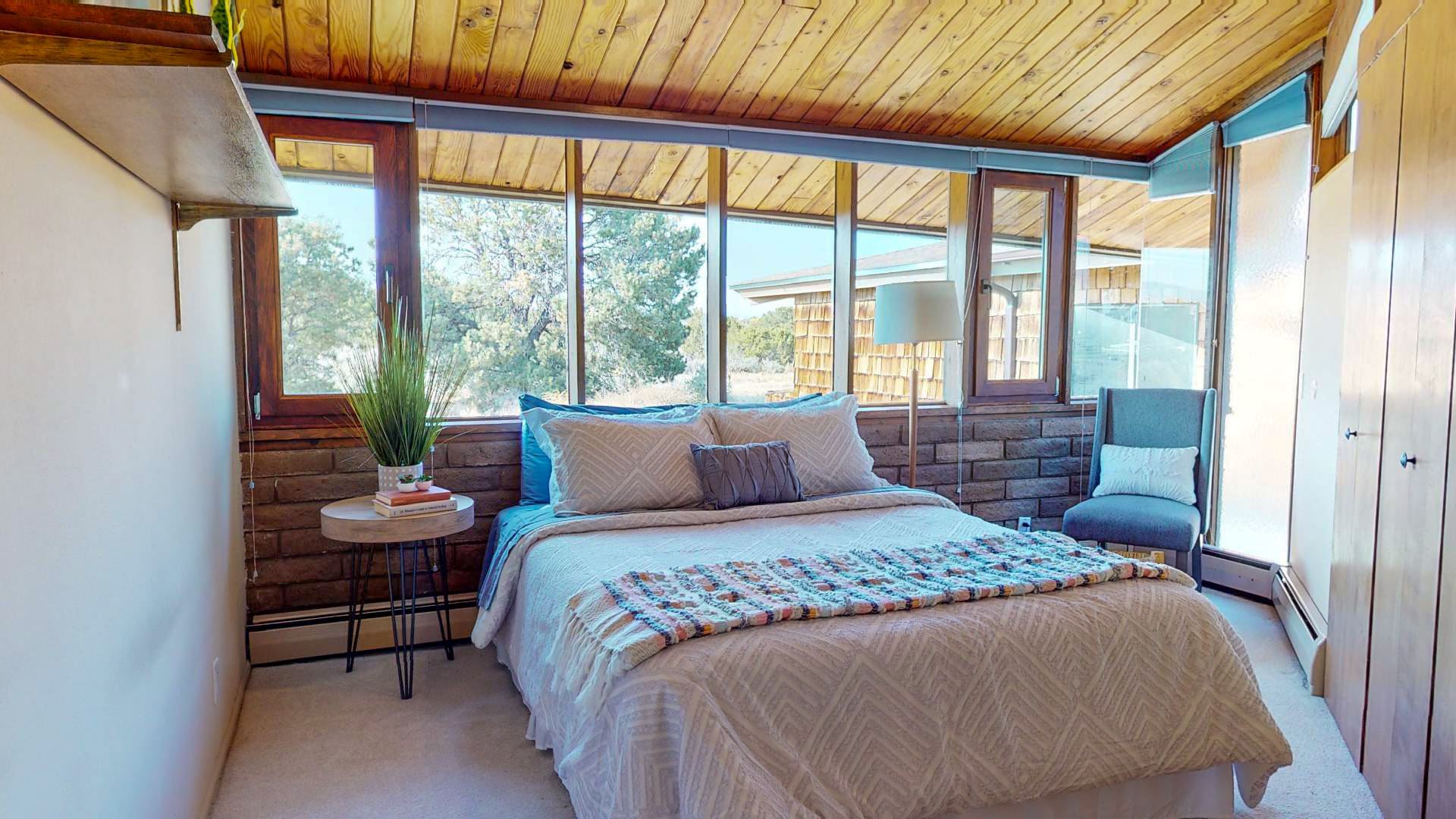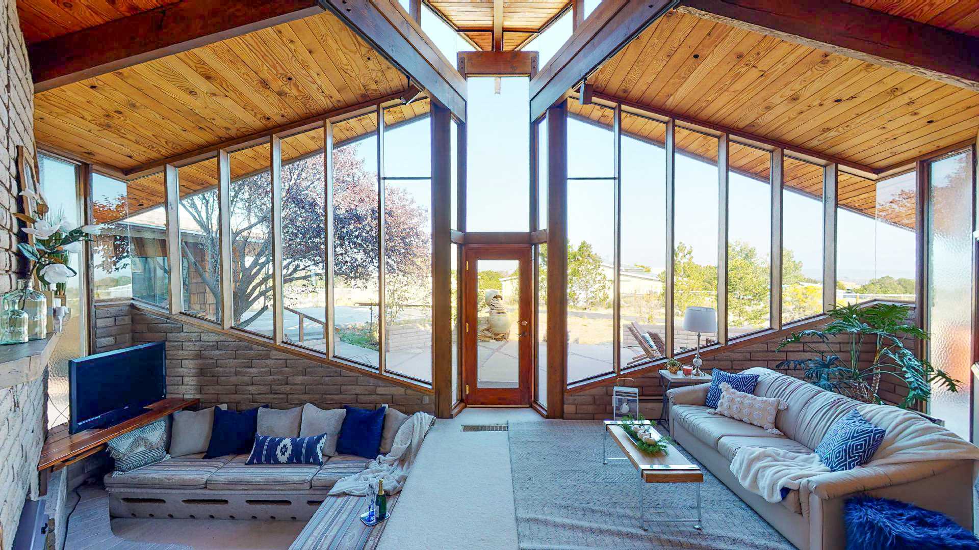 The proud owners of 107 La Senda Road know they have a special and unique home. Bart Prince designed this amazing property. Prince is a well-known architect who believes a home should be one of a kind, telling a story and does not need to be a glass steel box. Prince's designs are described as organic, forward-thinking and environmentally harmonious. Due to its unique style, this property has been featured in numerous architectural publications, magazines, newspapers and books. The property consists of 3 acres and provides amazing views from the Sangre de Cristo, San Miguel to the Jemez Mountains. Inside notice how all rooms connect to the kitchen - the heart of the home. Large picture windows frame the entire home. One of the two family rooms has a fun sunken living room (or conversation pit). It is the perfect place to hang out to watch TV or play video games. The upper level is the master suite with bedroom, bath, sitting area, large office and an outdoor balcony. Even the garage is a design masterpiece. It is 1,500 square feet with three areas. Each area is heated, has large windows and high, vaulted ceilings. This is a must-see property. Schedule a showing today.