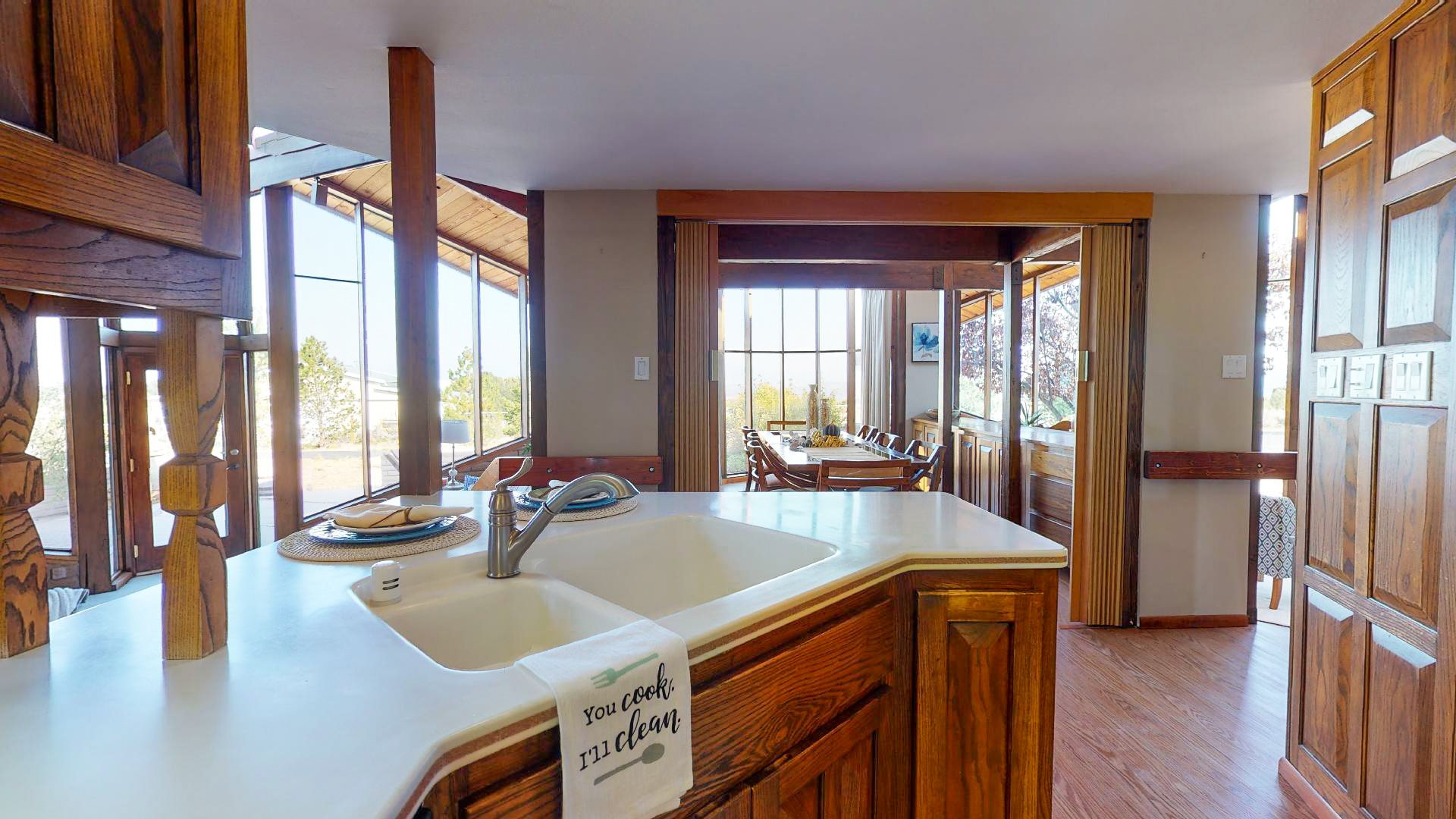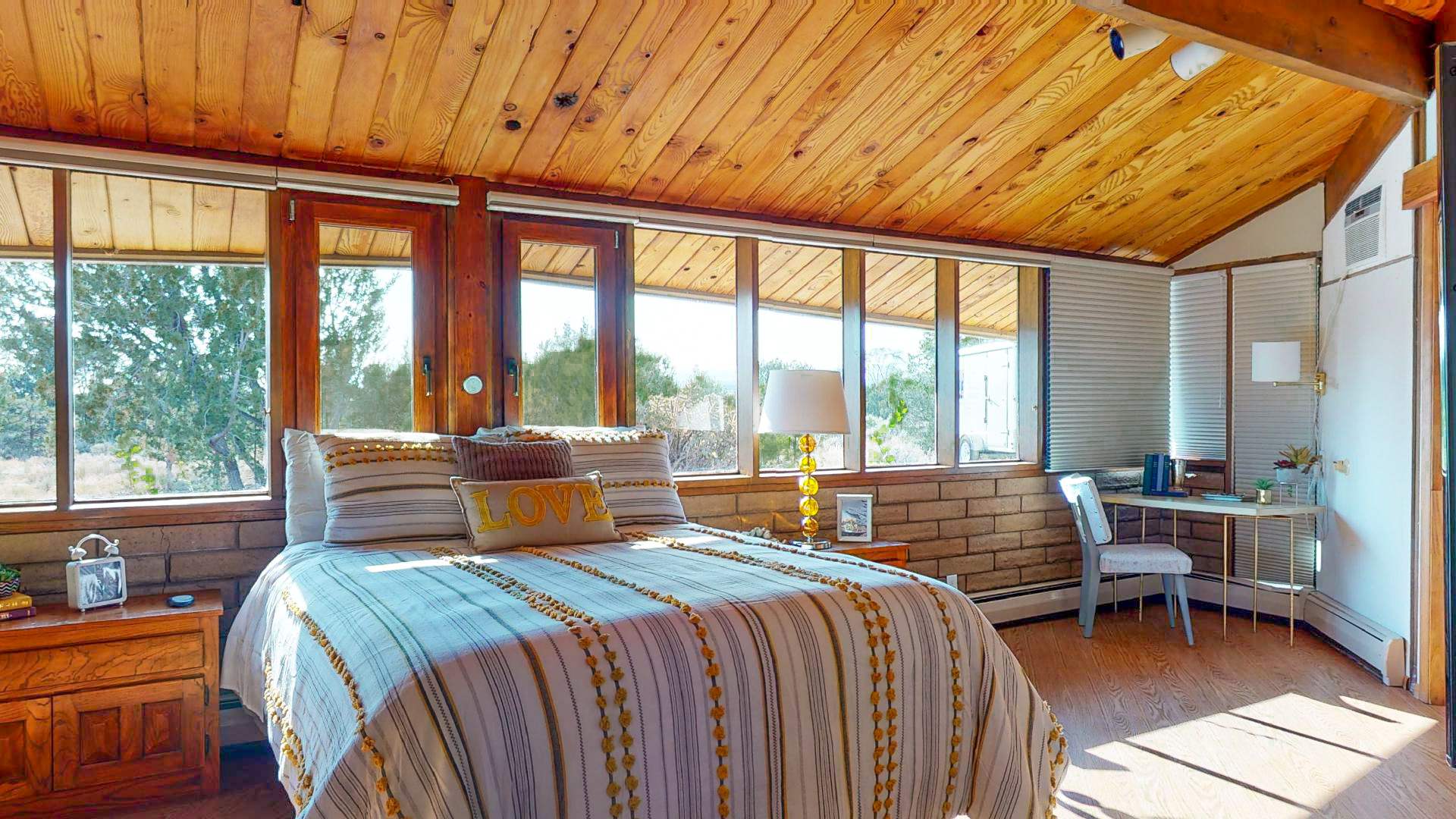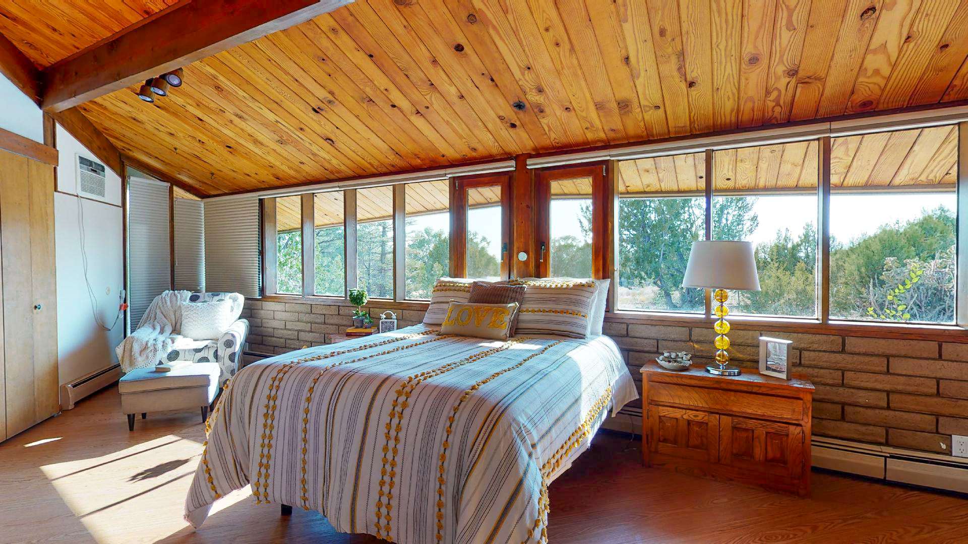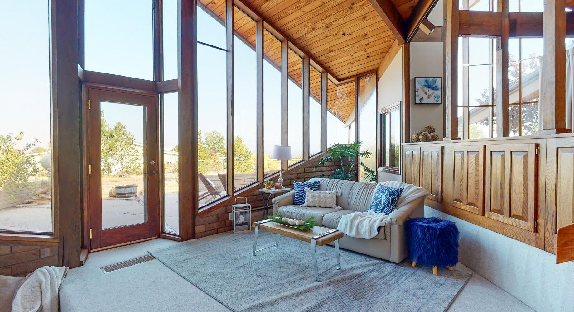 The proud owners of 107 La Senda Road know they have a special and unique home. Bart Prince designed this amazing property. Prince is a well-known architect who believes a home should be one of a kind, telling a story and does not need to be a glass steel box. Prince's designs are described as organic, forward-thinking and environmentally harmonious. Due to its unique style, this property has been featured in numerous architectural publications, magazines, newspapers and books. The property consists of 3 acres and provides amazing views from the Sangre de Cristo, San Miguel to the Jemez Mountains. Inside notice how all rooms connect to the kitchen - the heart of the home. Large picture windows frame the entire home. One of the two family rooms has a fun sunken living room (or conversation pit). It is the perfect place to hang out to watch TV or play video games. The upper level is the master suite with bedroom, bath, sitting area, large office and an outdoor balcony. Even the garage is a design masterpiece. It is 1,500 square feet with three areas. Each area is heated, has large windows and high, vaulted ceilings. This is a must-see property. Schedule a showing today.