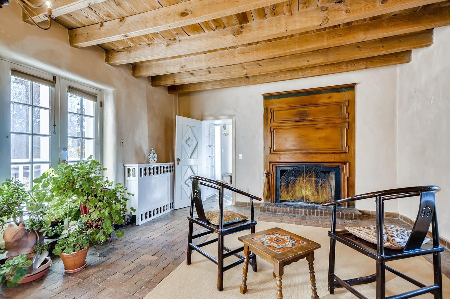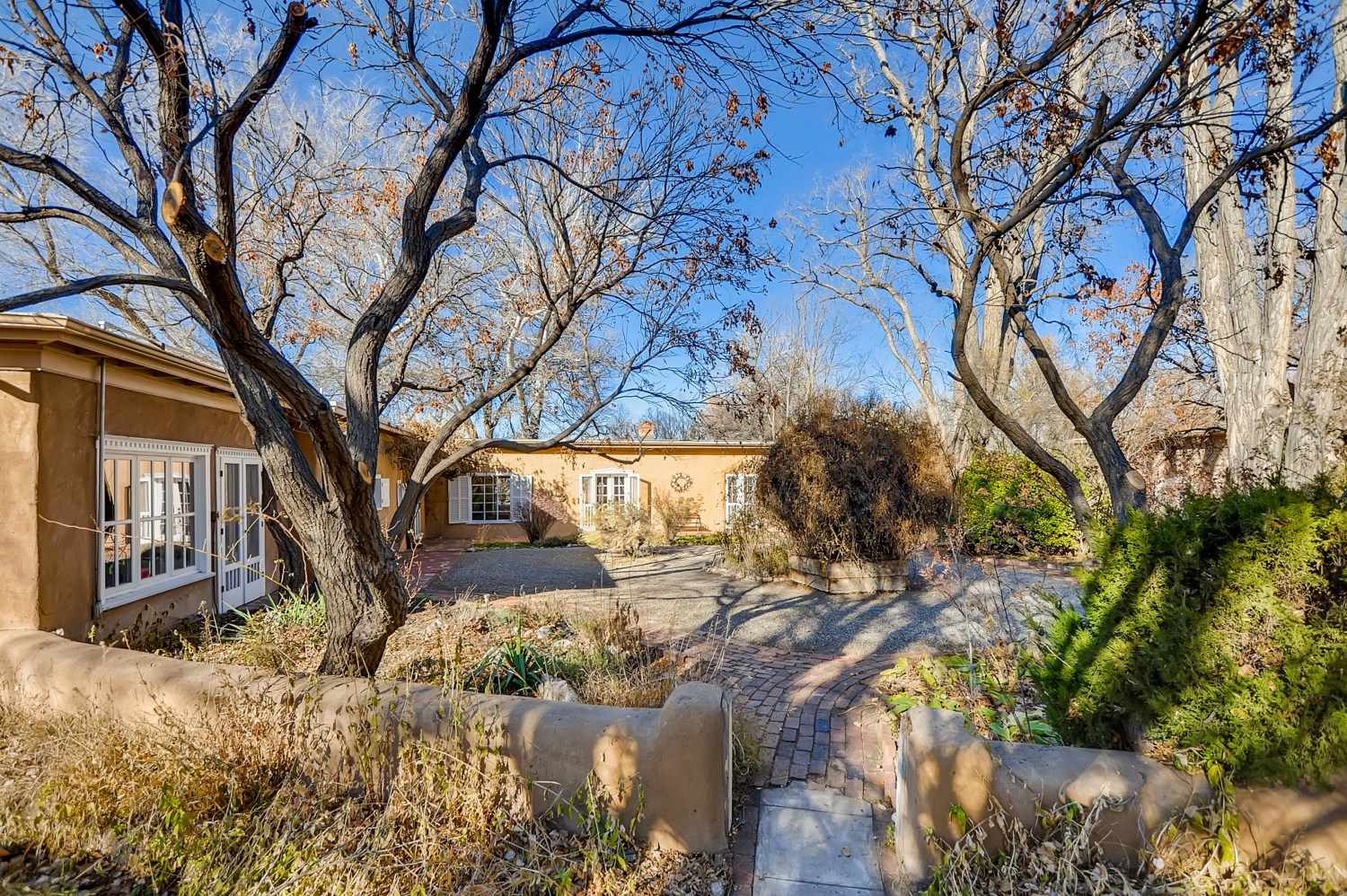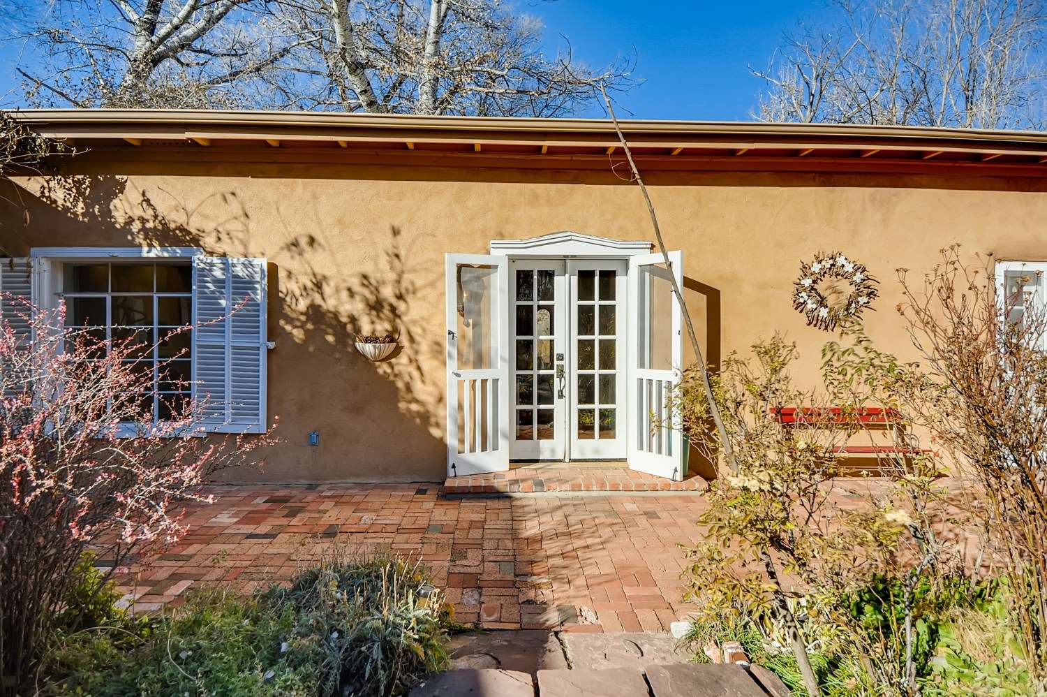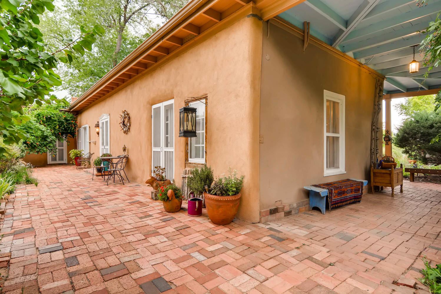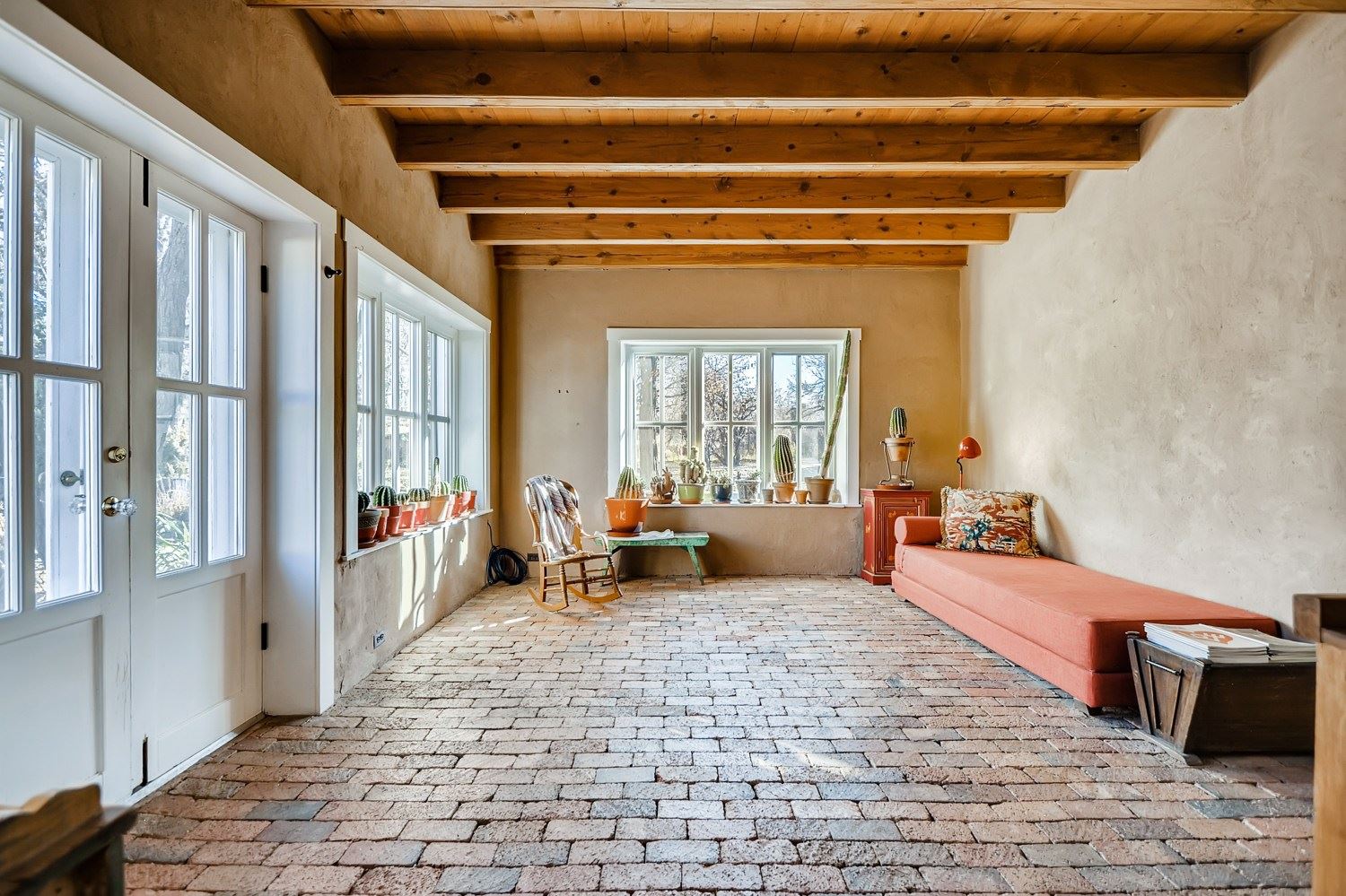 20 minutes from Santa Fe or Los Alamos, CASA LAS BARRANCAS rests in the lush Jacona Valley, proudly boasting the best view of the Barrancas from John Gaw Meem's famous portal. This historic Spanish Revival offers 2+ plus bedrooms, 2 baths, 2 living rooms, 4 fireplaces, kitchen, plus kitchenette. There are many opportunities for work at home flex space. The classic double adobe walls, hand-hewed beams, brick flooring and extraordinary landscaping were developed by the artist Cady Wells, under the guidance of architect John Gaw Meem, and has been preserved though all upgrades. The house has its own heated and covered private lap pool. It is part of a 10-acre compound with 5 other houses, each sited for maximum privacy and private space. With ample water rights, the property features decades of Permaculture practices, 100-foot trees, community vegetable garden, historic chapel, and a guesthouse with two bedrooms and a full kitchen. Casa Las Barrancas also has its own 4 acres of federally protected wetlands. The house has updated plumbing, heating and electric. You must see Casa Las Barrancas to fully appreciate its exceptional beauty.