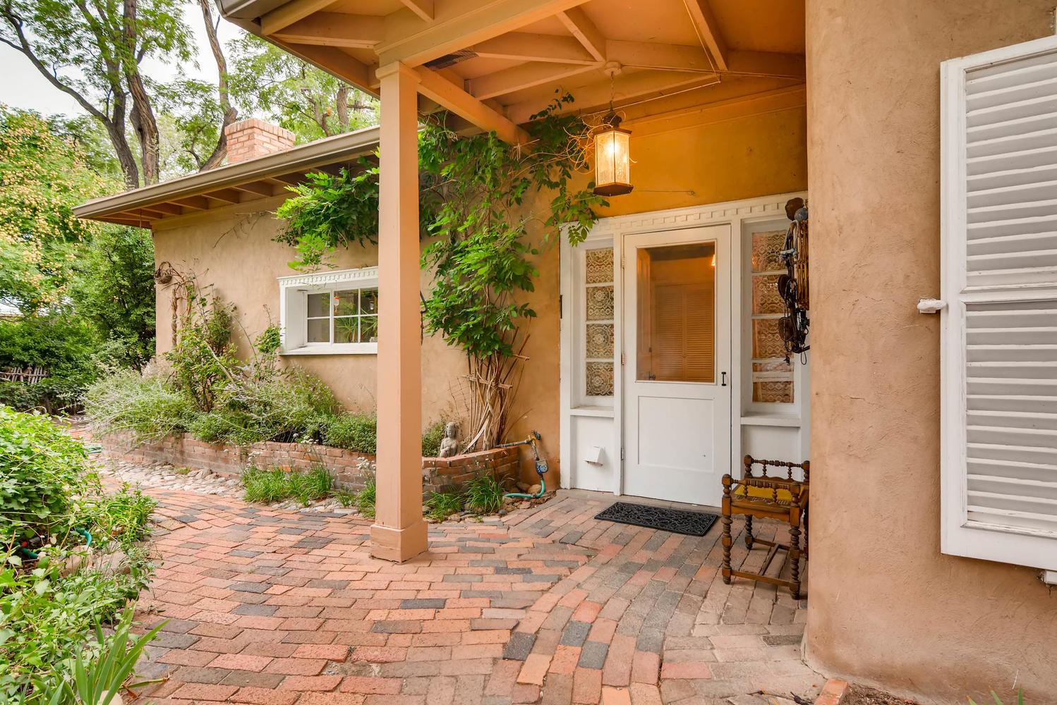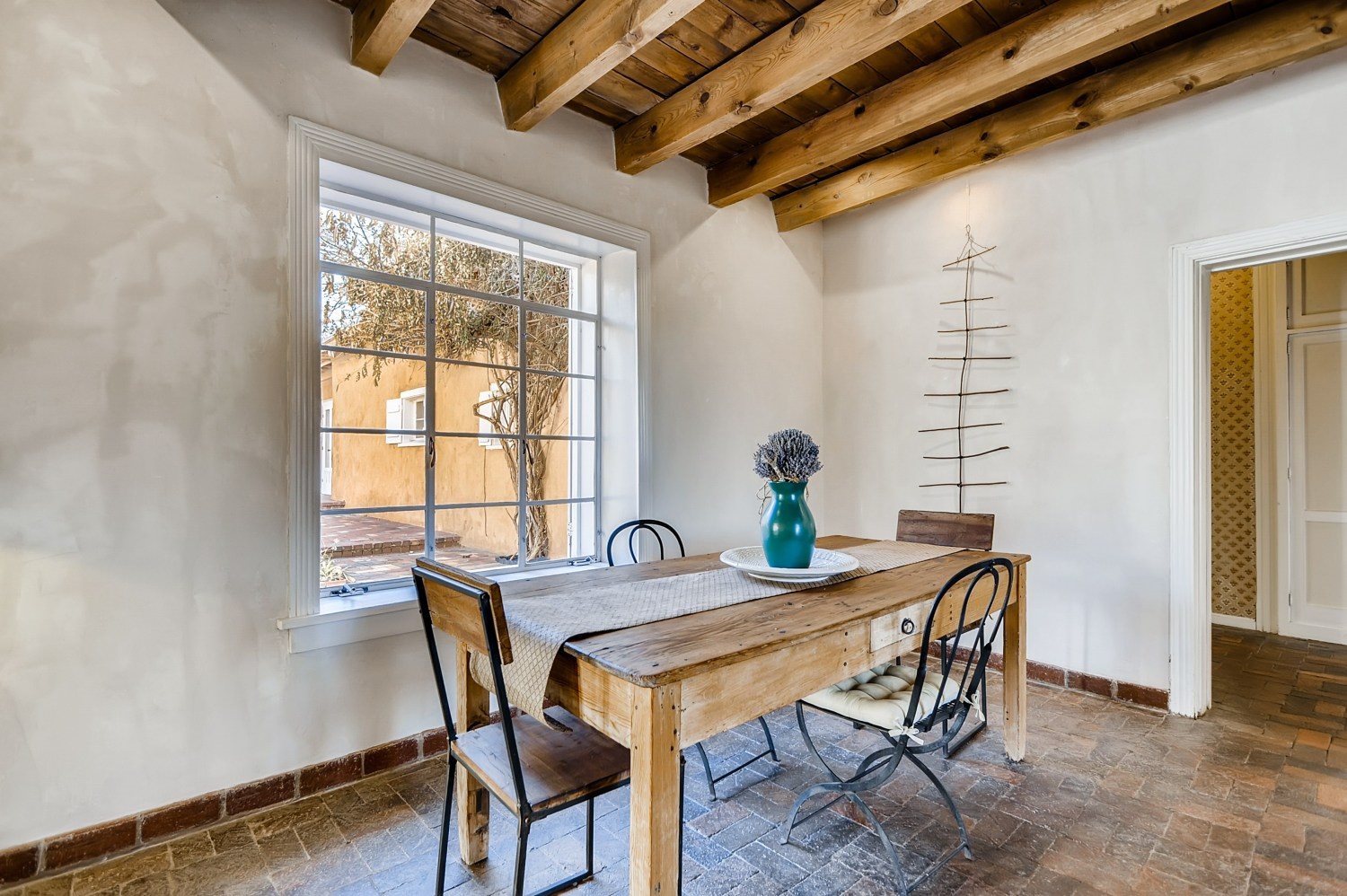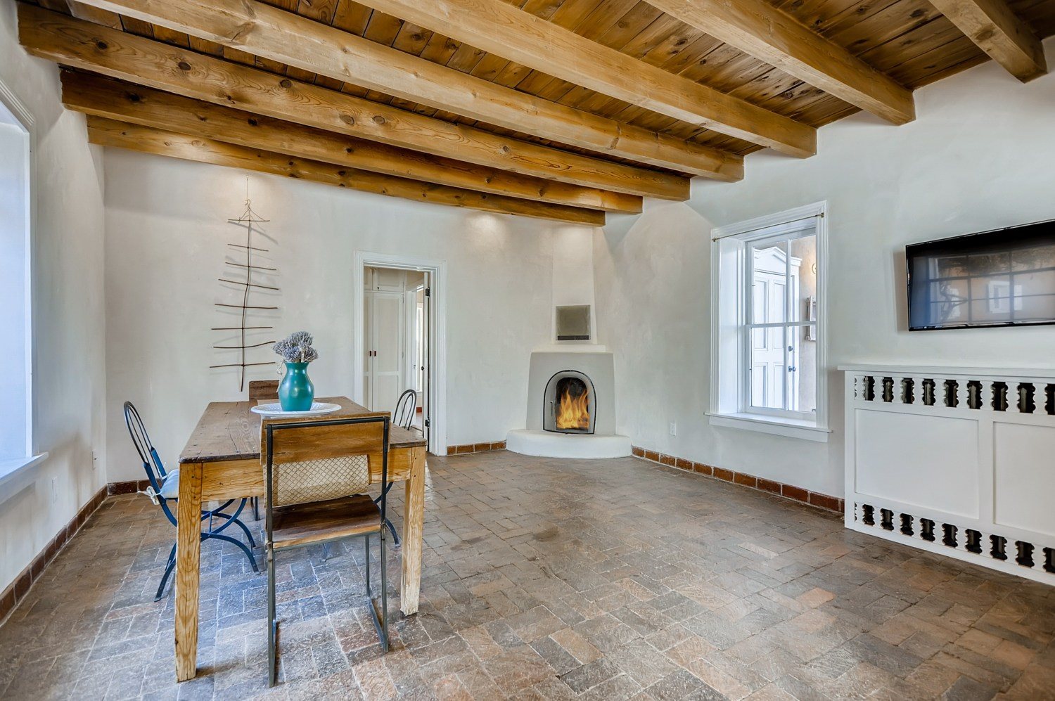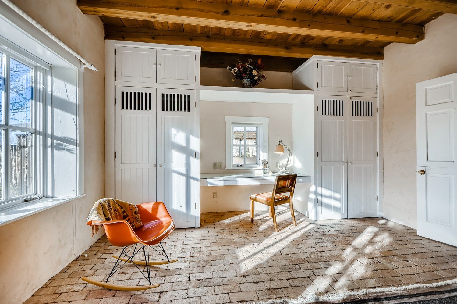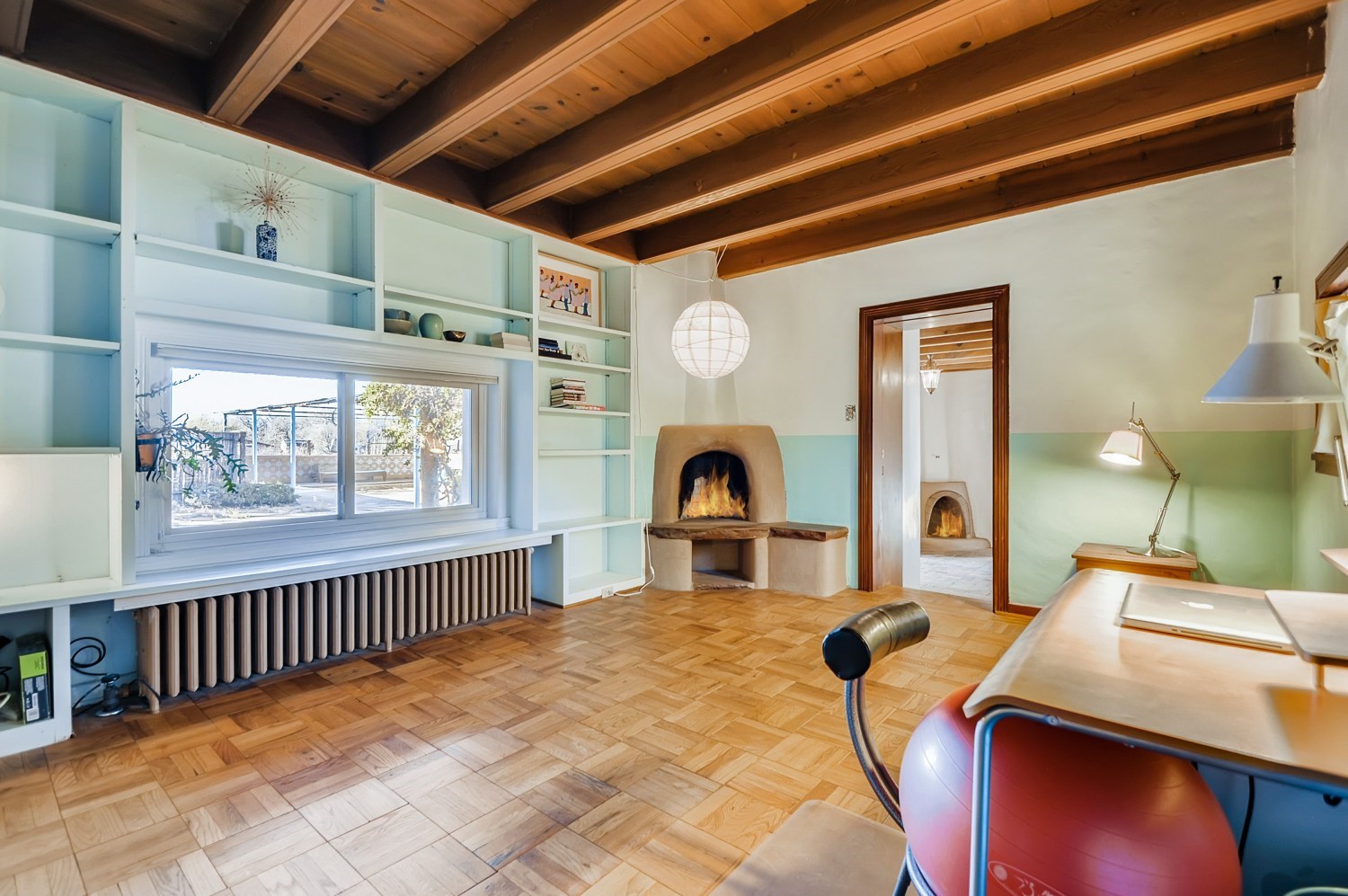 20 minutes from Santa Fe or Los Alamos, CASA LAS BARRANCAS rests in the lush Jacona Valley, proudly boasting the best view of the Barrancas from John Gaw Meem's famous portal. This historic Spanish Revival offers 2+ plus bedrooms, 2 baths, 2 living rooms, 4 fireplaces, kitchen, plus kitchenette. There are many opportunities for work at home flex space. The classic double adobe walls, hand-hewed beams, brick flooring and extraordinary landscaping were developed by the artist Cady Wells, under the guidance of architect John Gaw Meem, and has been preserved though all upgrades. The house has its own heated and covered private lap pool. It is part of a 10-acre compound with 5 other houses, each sited for maximum privacy and private space. With ample water rights, the property features decades of Permaculture practices, 100-foot trees, community vegetable garden, historic chapel, and a guesthouse with two bedrooms and a full kitchen. Casa Las Barrancas also has its own 4 acres of federally protected wetlands. The house has updated plumbing, heating and electric. You must see Casa Las Barrancas to fully appreciate its exceptional beauty.
