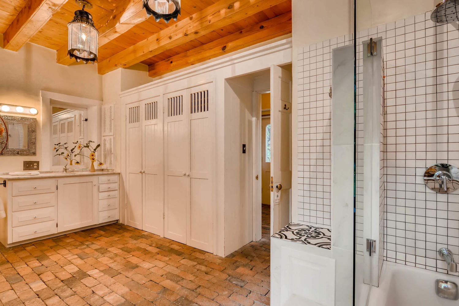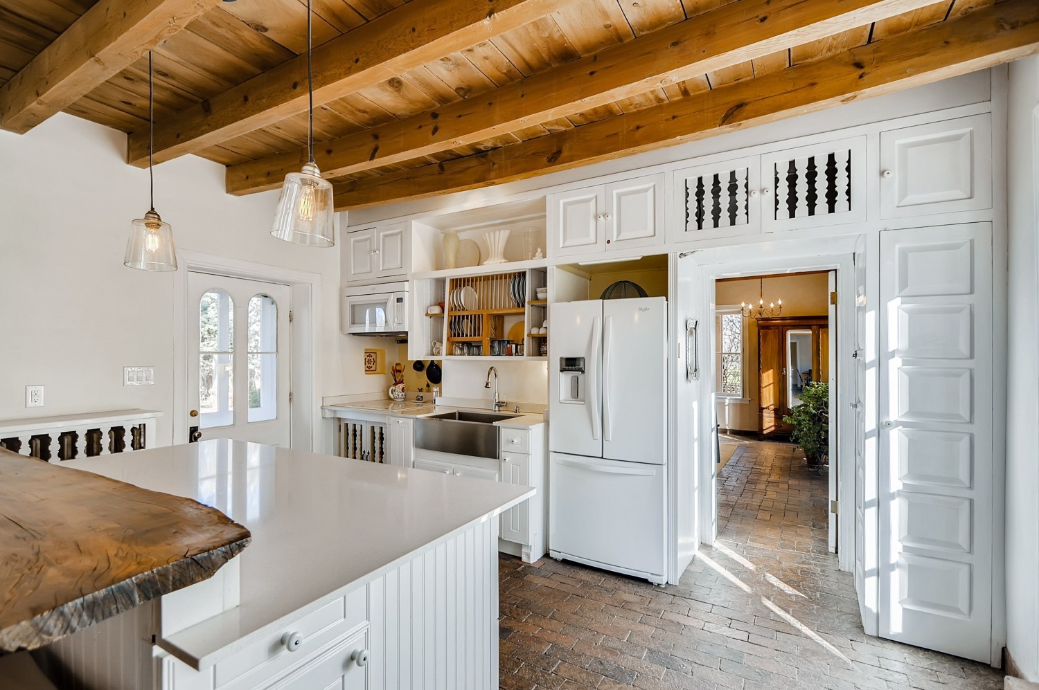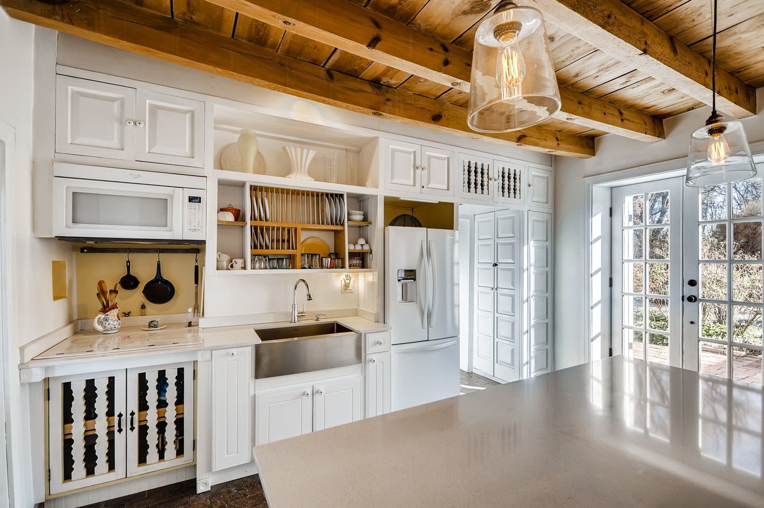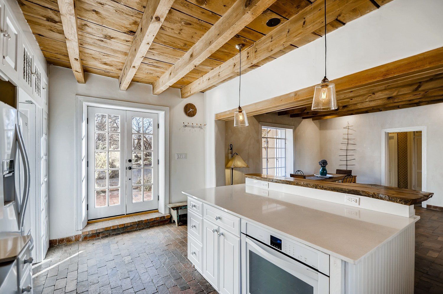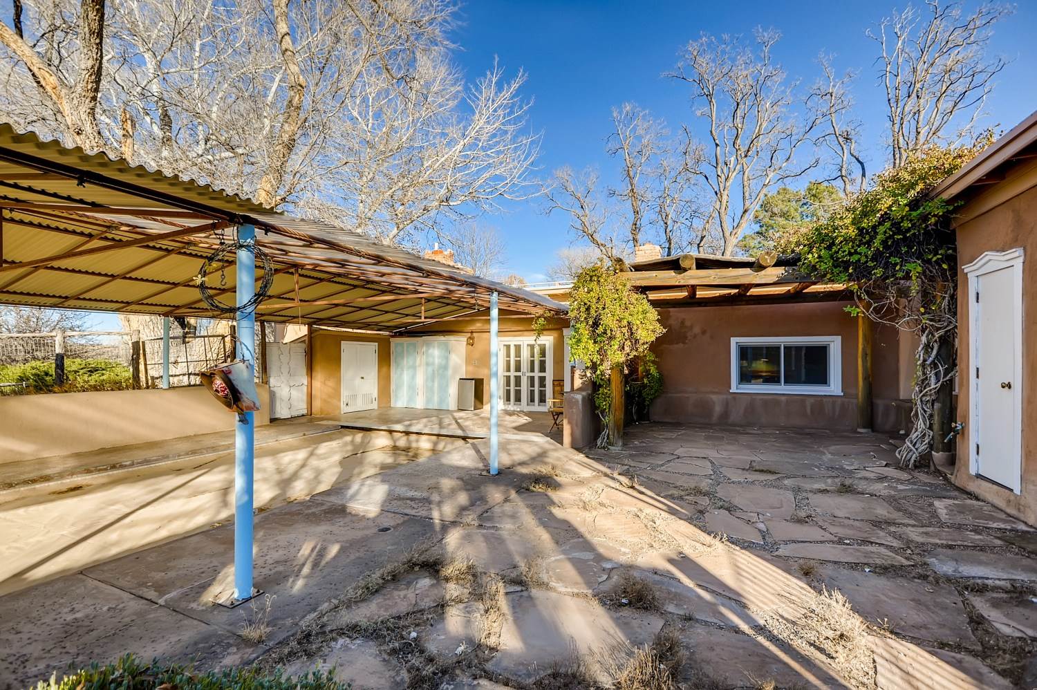20 minutes from Santa Fe or Los Alamos, CASA LAS BARRANCAS rests in the lush Jacona Valley, proudly boasting the best view of the Barrancas from John Gaw Meem's famous portal. This historic Spanish Revival offers 2+ plus bedrooms, 2 baths, 2 living rooms, 4 fireplaces, kitchen, plus kitchenette. There are many opportunities for work at home flex space. The classic double adobe walls, hand-hewed beams, brick flooring and extraordinary landscaping were developed by the artist Cady Wells, under the guidance of architect John Gaw Meem, and has been preserved though all upgrades. The house has its own heated and covered private lap pool. It is part of a 10-acre compound with 5 other houses, each sited for maximum privacy and private space. With ample water rights, the property features decades of Permaculture practices, 100-foot trees, community vegetable garden, historic chapel, and a guesthouse with two bedrooms and a full kitchen. Casa Las Barrancas also has its own 4 acres of federally protected wetlands. The house has updated plumbing, heating and electric. You must see Casa Las Barrancas to fully appreciate its exceptional beauty.
