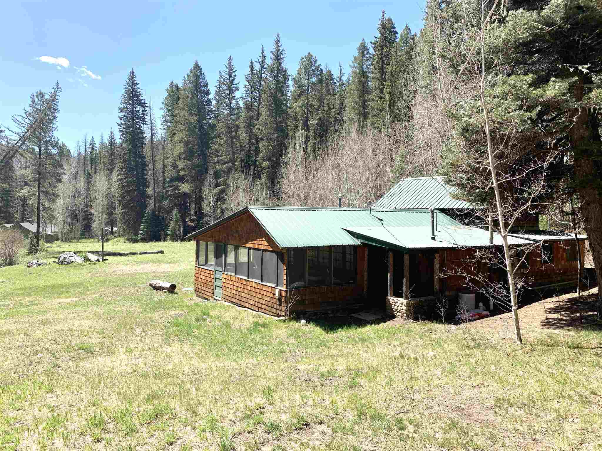 This historic property was once the Post Office servicing the old mining community of Terrero, NM. Now the serene setting surrounds two vacationer's cabins in God's country. The Holy Ghost creek flows though the property amplifying nature's music. Step out of either cabin into the beautiful meadow hosting a mature Aspen grove. Each cabin has a full kitchen, dining and living areas, fully functional bathrooms, and loft bedrooms. Minutes up the road is access to Santa Fe National Forest recreation and hiking. Just 50 minutes from the center of Santa Fe. This is a dream opportunity for a couple, family, or families looking for a place of peaceful respite. Property is subject to a land lease from the Forest Service.