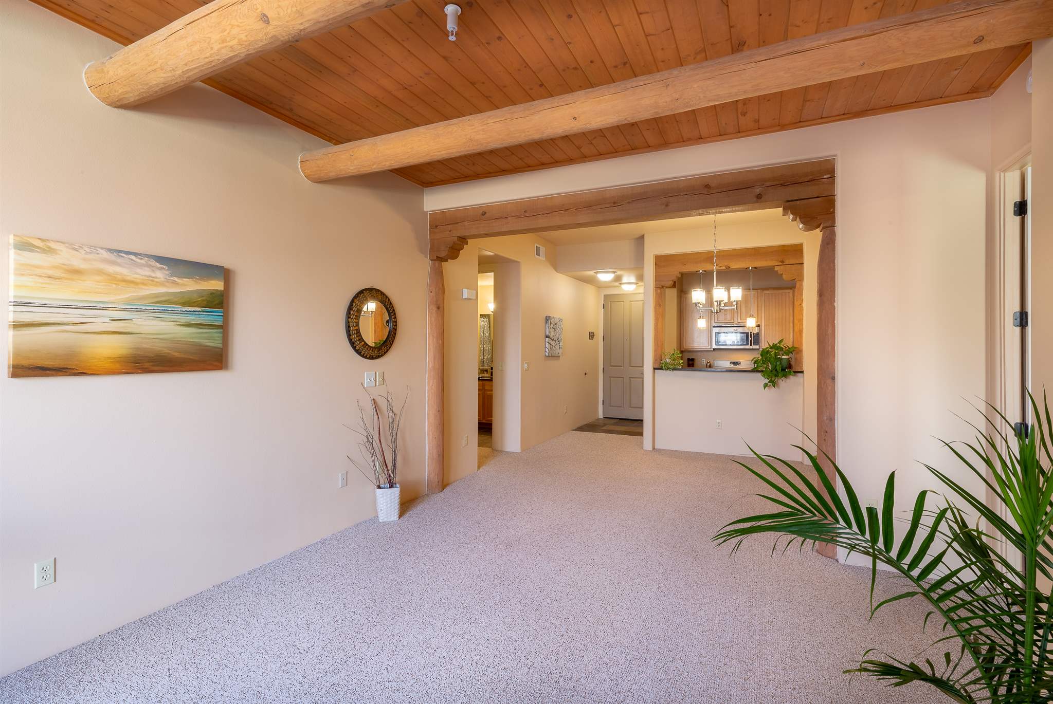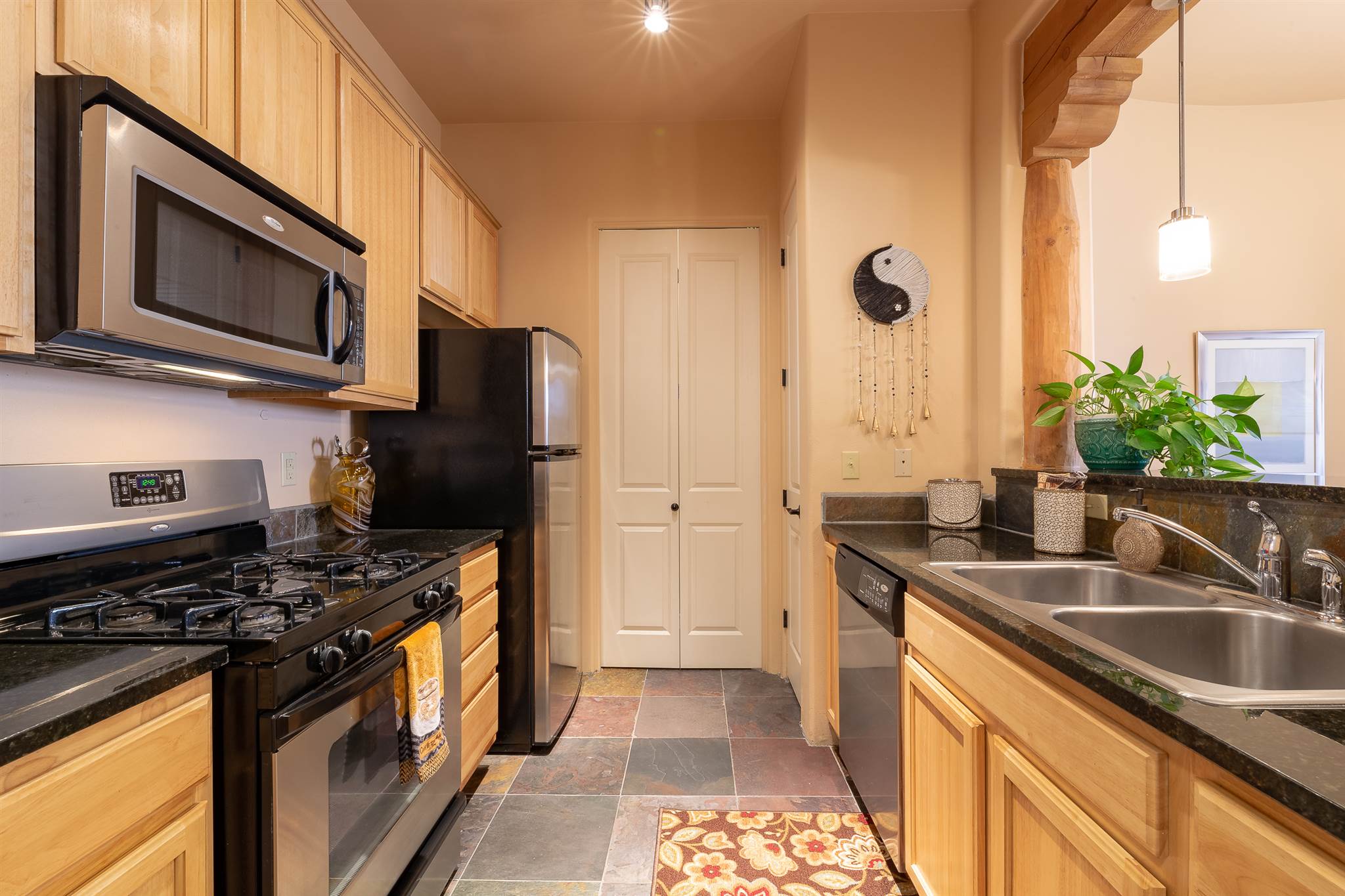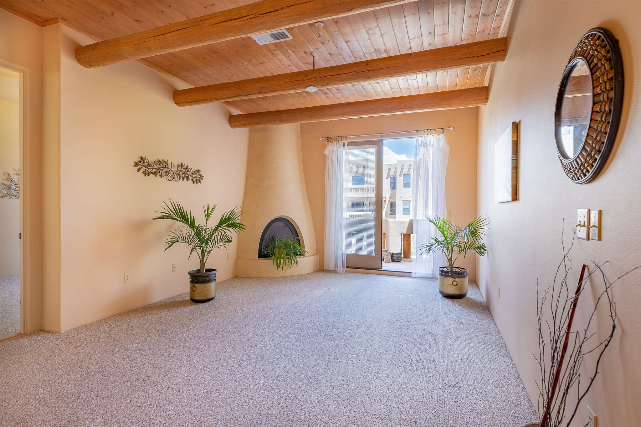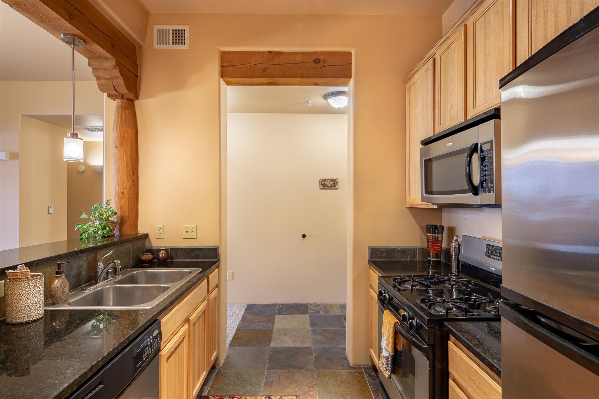 Live the Luxe Lifestyle in this Glamorous Poolside Condo in the luxurious Alameda complex. At 1275 sf, this is the largest floor plan available, with 2 BR/2 BA, and loaded with amenities: Slate, granite, stainless steel; Master suite w/ HUGE walk in closet and Sumptuous en-suite bath; Second BR with WIC, Large Hall Bath; Expansive Open Living w/Kiva gas FP onto wraparound Patio w/commanding pool court views; Washer/Dryer, and a BONUS Separately deeded 1-car GARAGE. Located on 2nd floor (2 elevators in building). Community Amenities include onsite management, gated parking, fitness center, pool, clubhouse, 24-hour controlled access, nearby hiking/biking trails, and a standard of living that is renowned throughout Santa Fe. CONDO IS CURRENTLY LEASED, PLS INQUIRE TO BROKER.