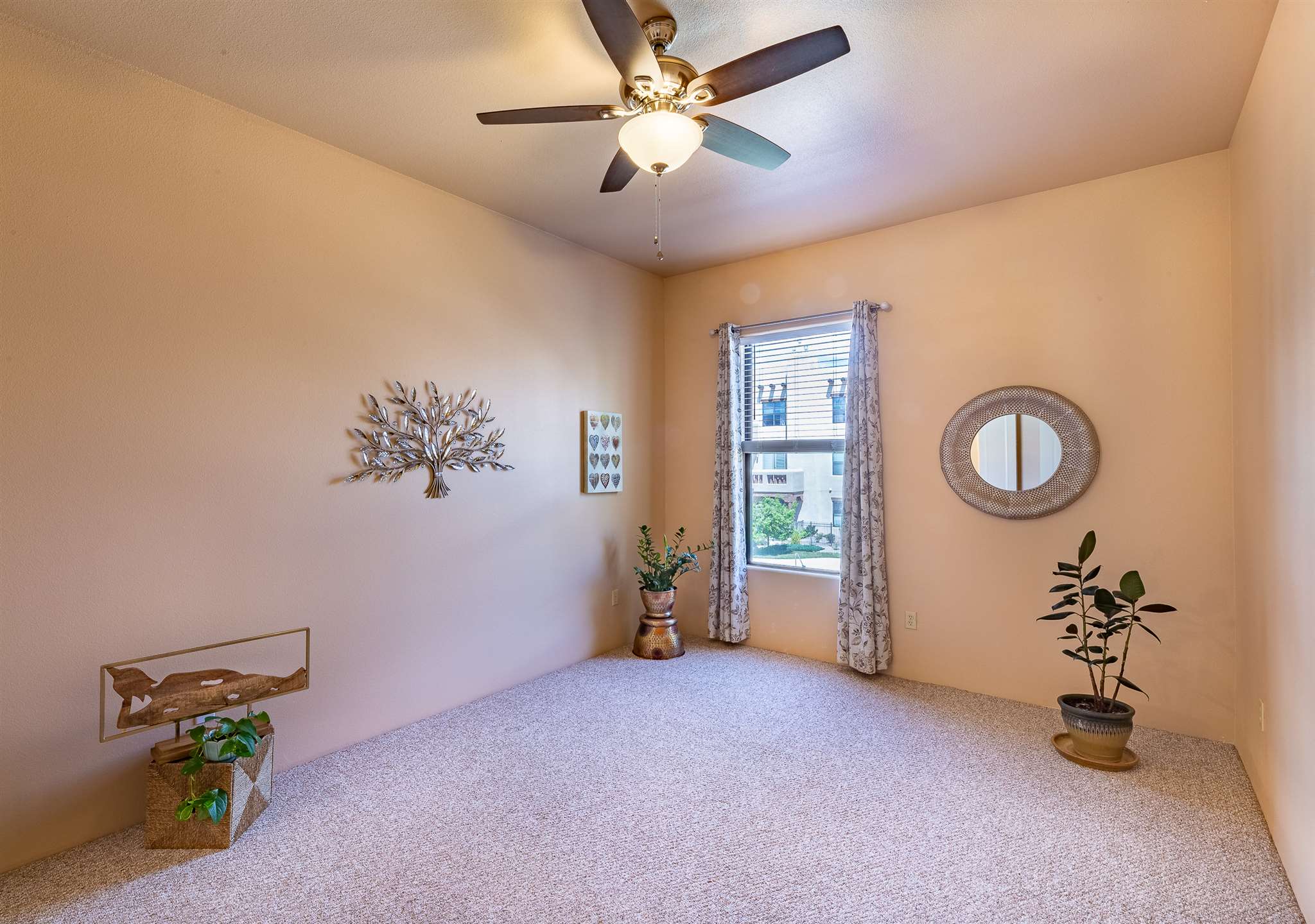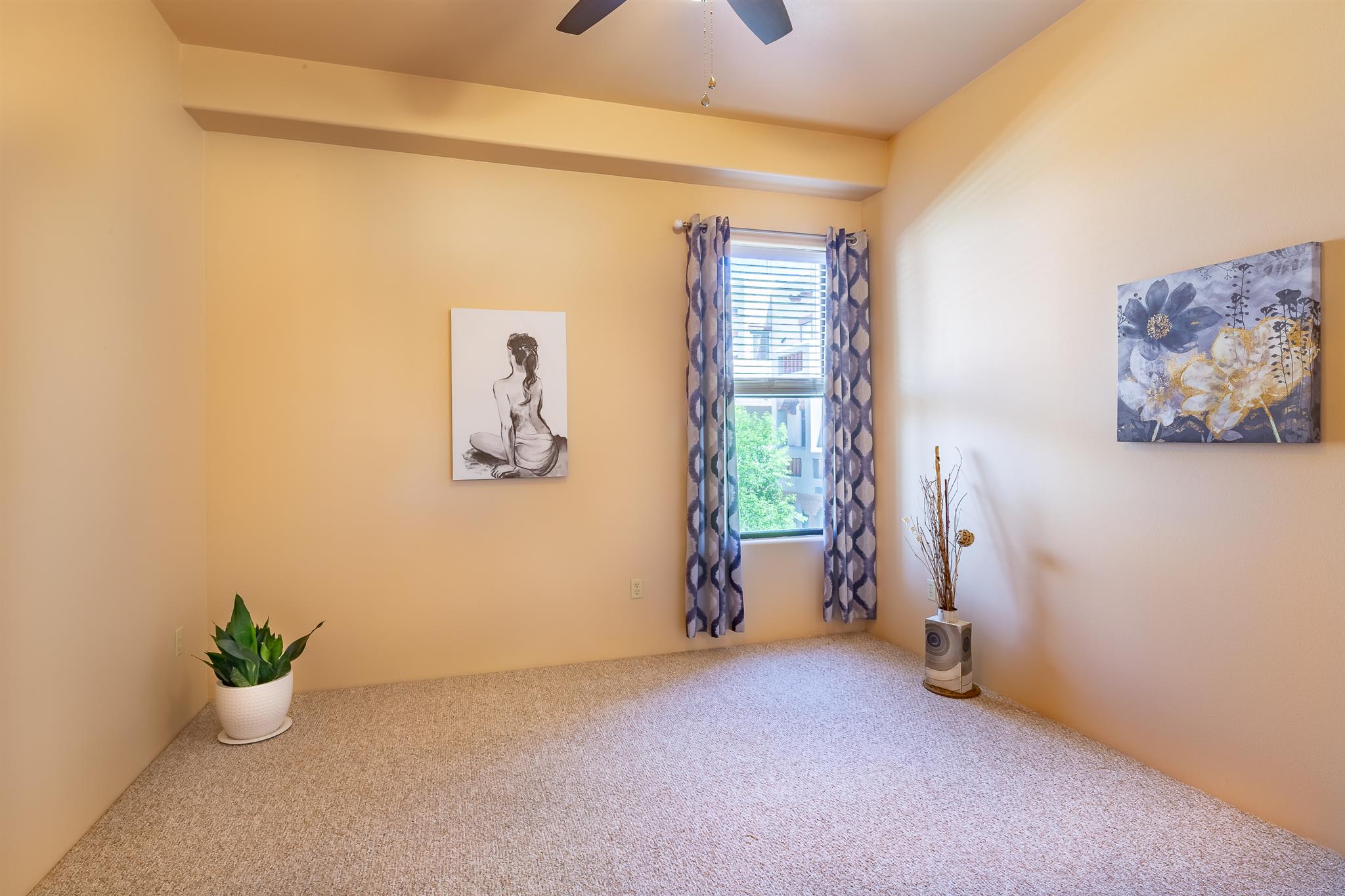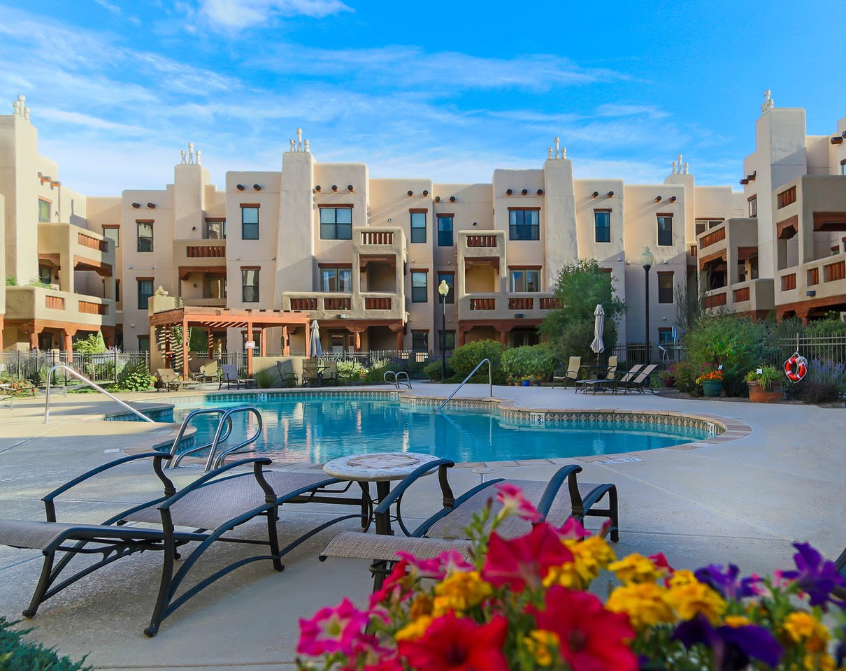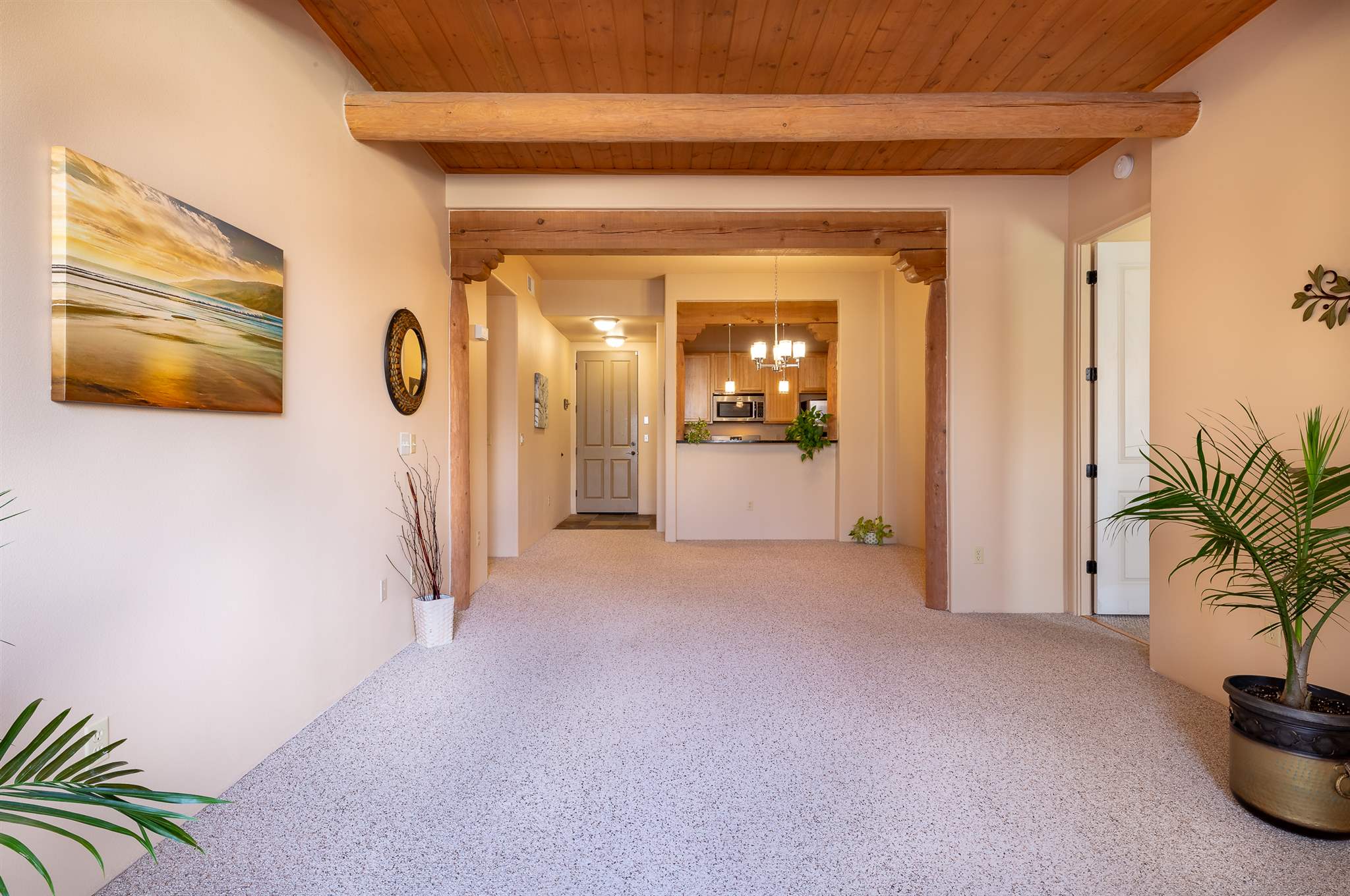 Live the Luxe Lifestyle in this Glamorous Poolside Condo in the luxurious Alameda complex. At 1275 sf, this is the largest floor plan available, with 2 BR/2 BA, and loaded with amenities: Slate, granite, stainless steel; Master suite w/ HUGE walk in closet and Sumptuous en-suite bath; Second BR with WIC, Large Hall Bath; Expansive Open Living w/Kiva gas FP onto wraparound Patio w/commanding pool court views; Washer/Dryer, and a BONUS Separately deeded 1-car GARAGE. Located on 2nd floor (2 elevators in building). Community Amenities include onsite management, gated parking, fitness center, pool, clubhouse, 24-hour controlled access, nearby hiking/biking trails, and a standard of living that is renowned throughout Santa Fe. CONDO IS CURRENTLY LEASED, PLS INQUIRE TO BROKER.
