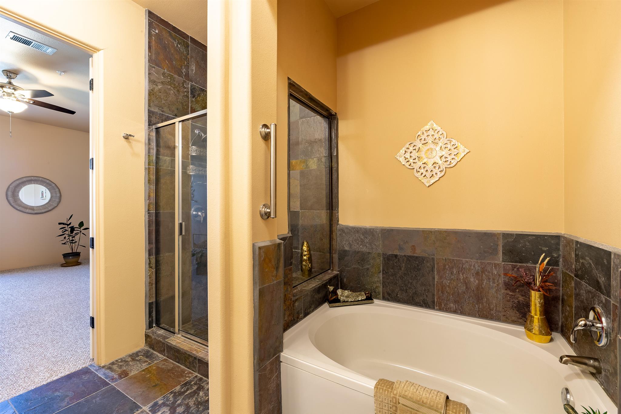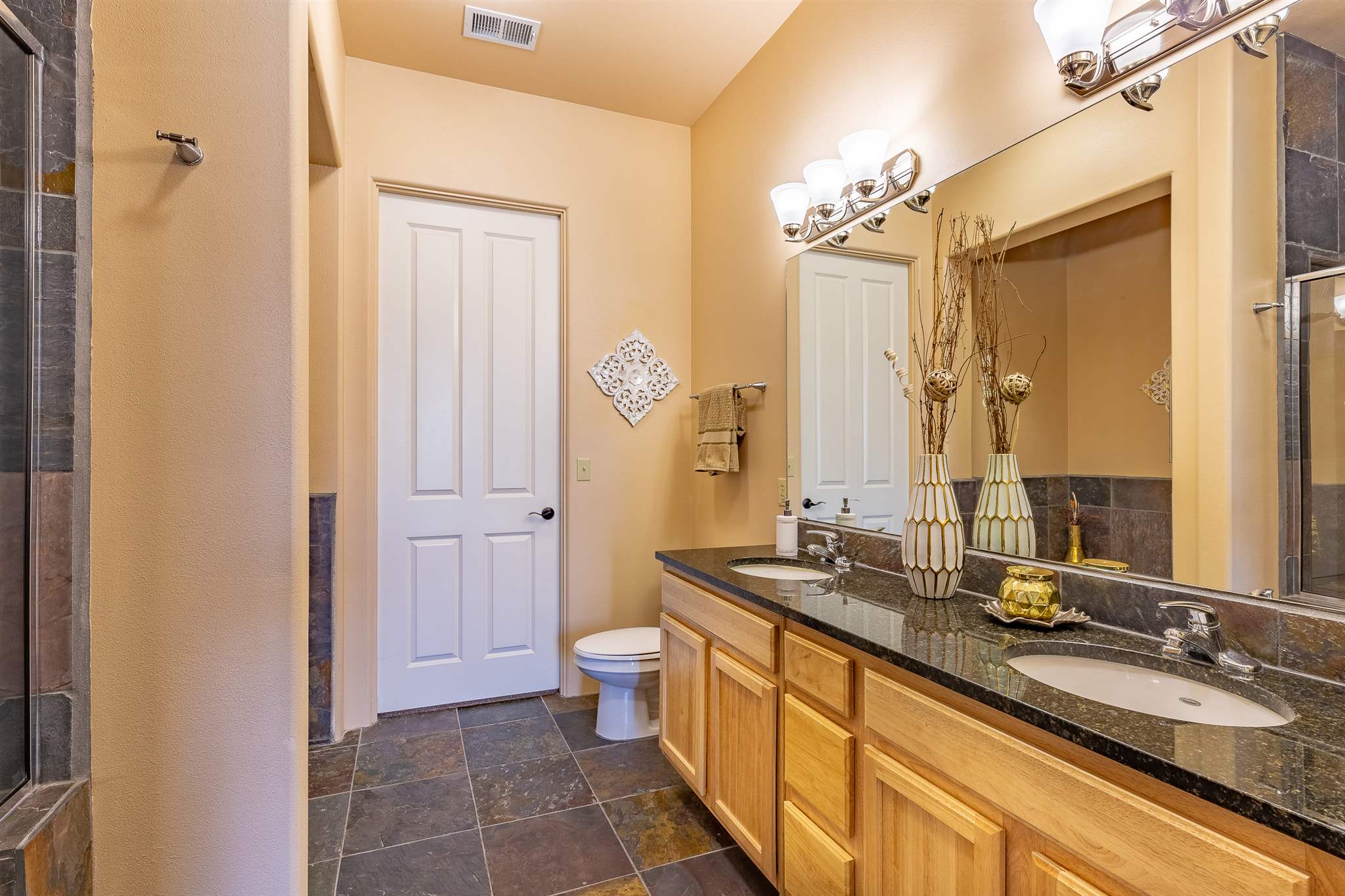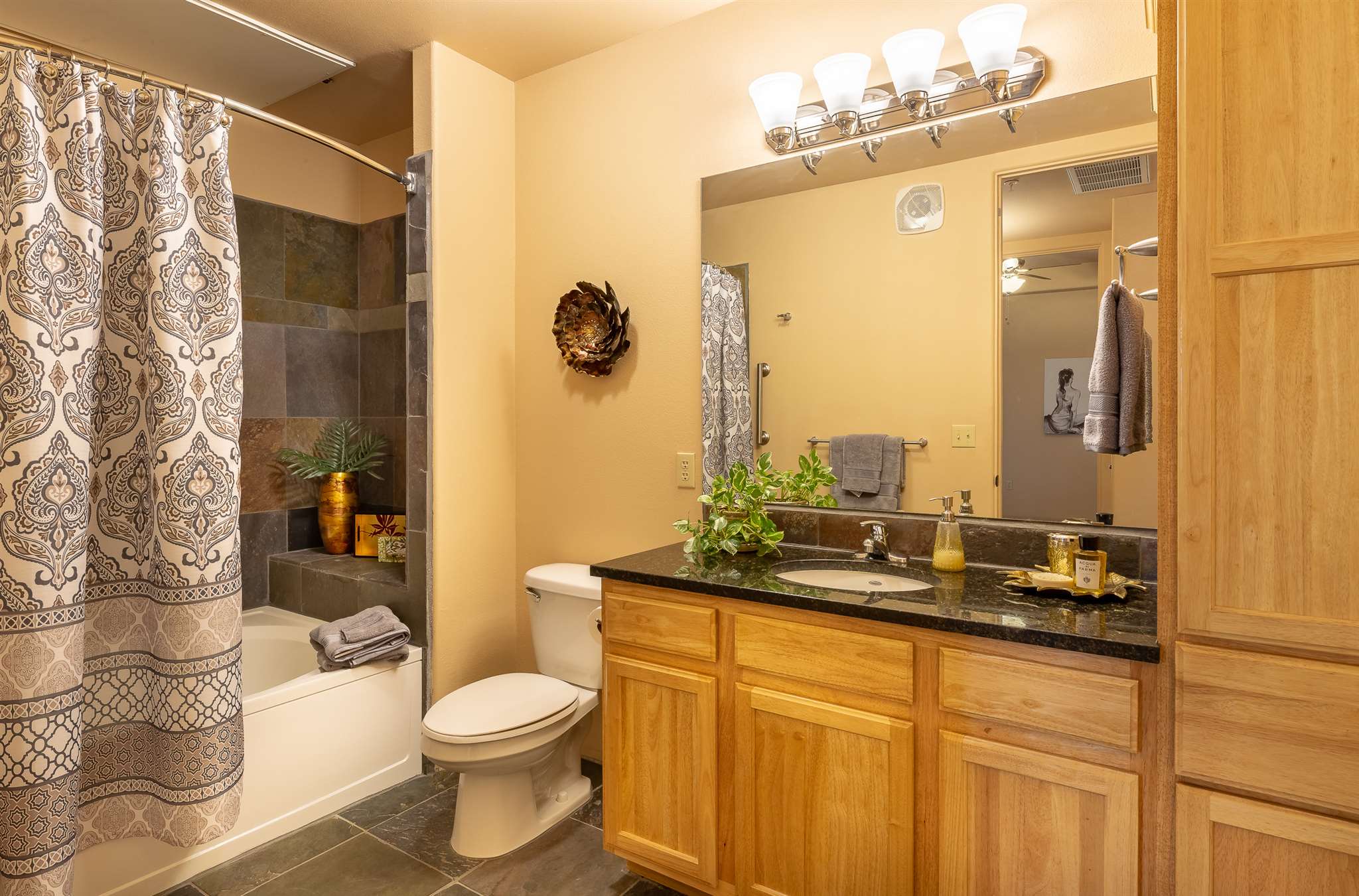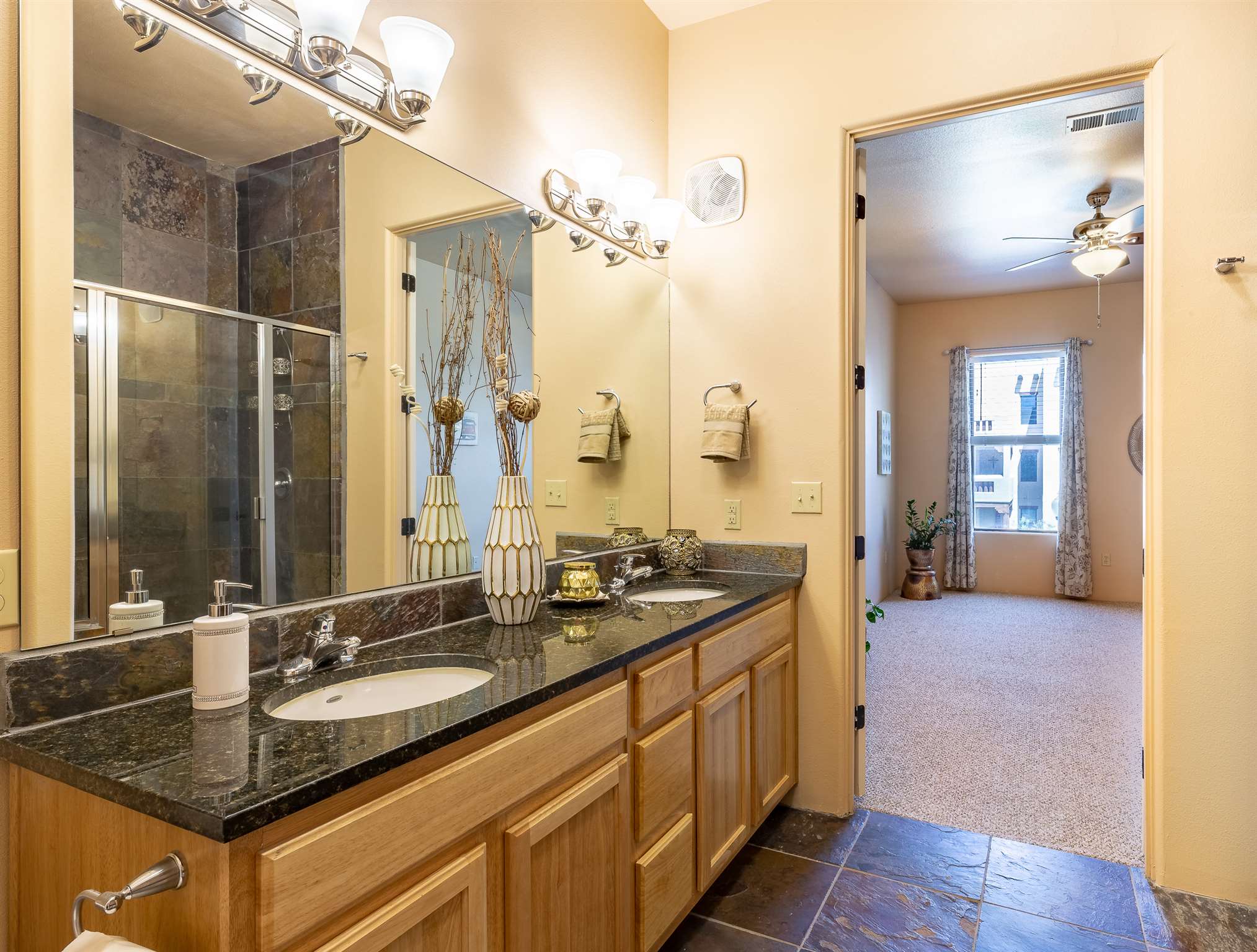 Live the Luxe Lifestyle in this Glamorous Poolside Condo in the luxurious Alameda complex. At 1275 sf, this is the largest floor plan available, with 2 BR/2 BA, and loaded with amenities: Slate, granite, stainless steel; Master suite w/ HUGE walk in closet and Sumptuous en-suite bath; Second BR with WIC, Large Hall Bath; Expansive Open Living w/Kiva gas FP onto wraparound Patio w/commanding pool court views; Washer/Dryer, and a BONUS Separately deeded 1-car GARAGE. Located on 2nd floor (2 elevators in building). Community Amenities include onsite management, gated parking, fitness center, pool, clubhouse, 24-hour controlled access, nearby hiking/biking trails, and a standard of living that is renowned throughout Santa Fe. CONDO IS CURRENTLY LEASED, PLS INQUIRE TO BROKER.