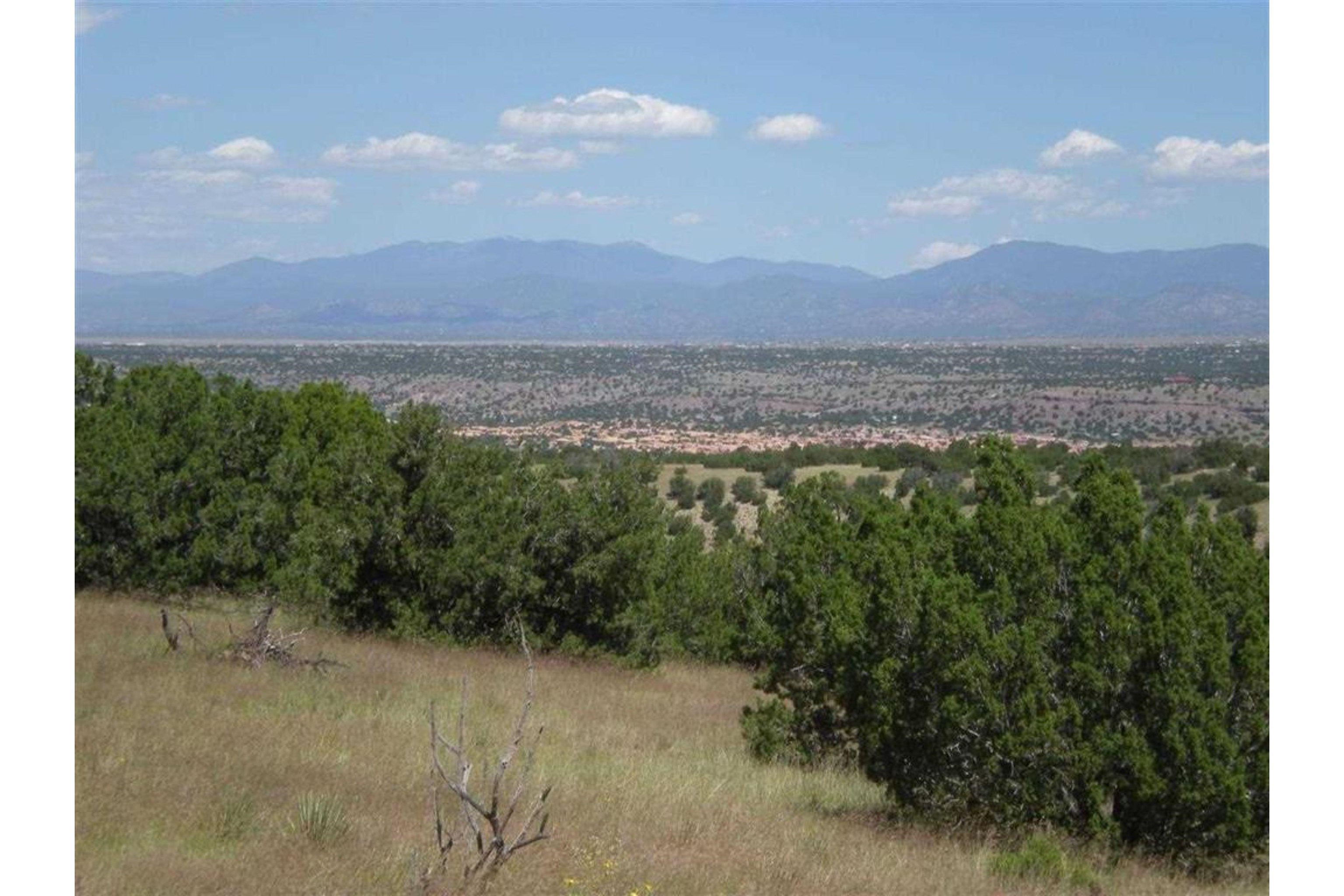 At the end of the road off a quiet cul-de-sac, this 80-acre offering comprised of two legal lots of record has stunning and extraordinary views of all the area mountain ranges, from the Sangre de Cristos to the Jemez mountains. Overlooking the red rocks of the Garden of the Gods and out to the Galisteo Basin, this pristine and dramatically beautiful acreage is ready for your off-grid sustainable build. Underground utilities are also available at the cul-de-sac. Located in a well-planned, gated subdivision at the foot of the Ortiz Mountains, there is plenty of level area along with rolling hills dotted with Juniper and Cedar trees and horses are allowed. In an area of custom homes all on at least 40 acres. Off the Scenic Turquoise Trail about 30 minutes to Santa Fe and close to the historic and artistic villages of Cerrillos and Madrid, offering restaurants, galleries, coffee shops and general stores. Along with the views of the vast New Mexico landscape, enjoy the peaceful and pastoral surroundings, starry night skies, and abundant wildlife that this unique site has to offer.
