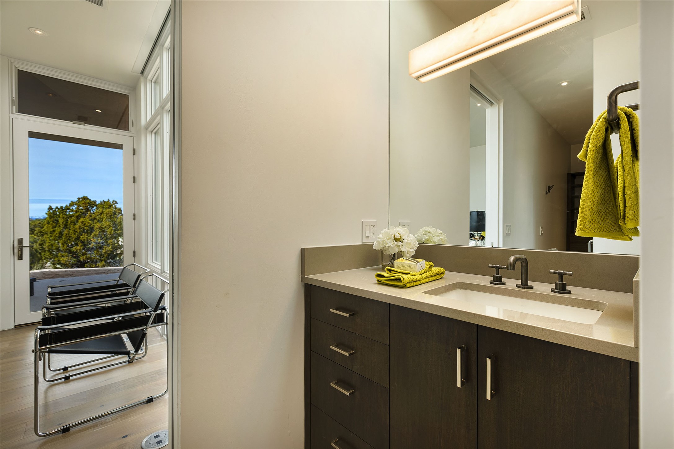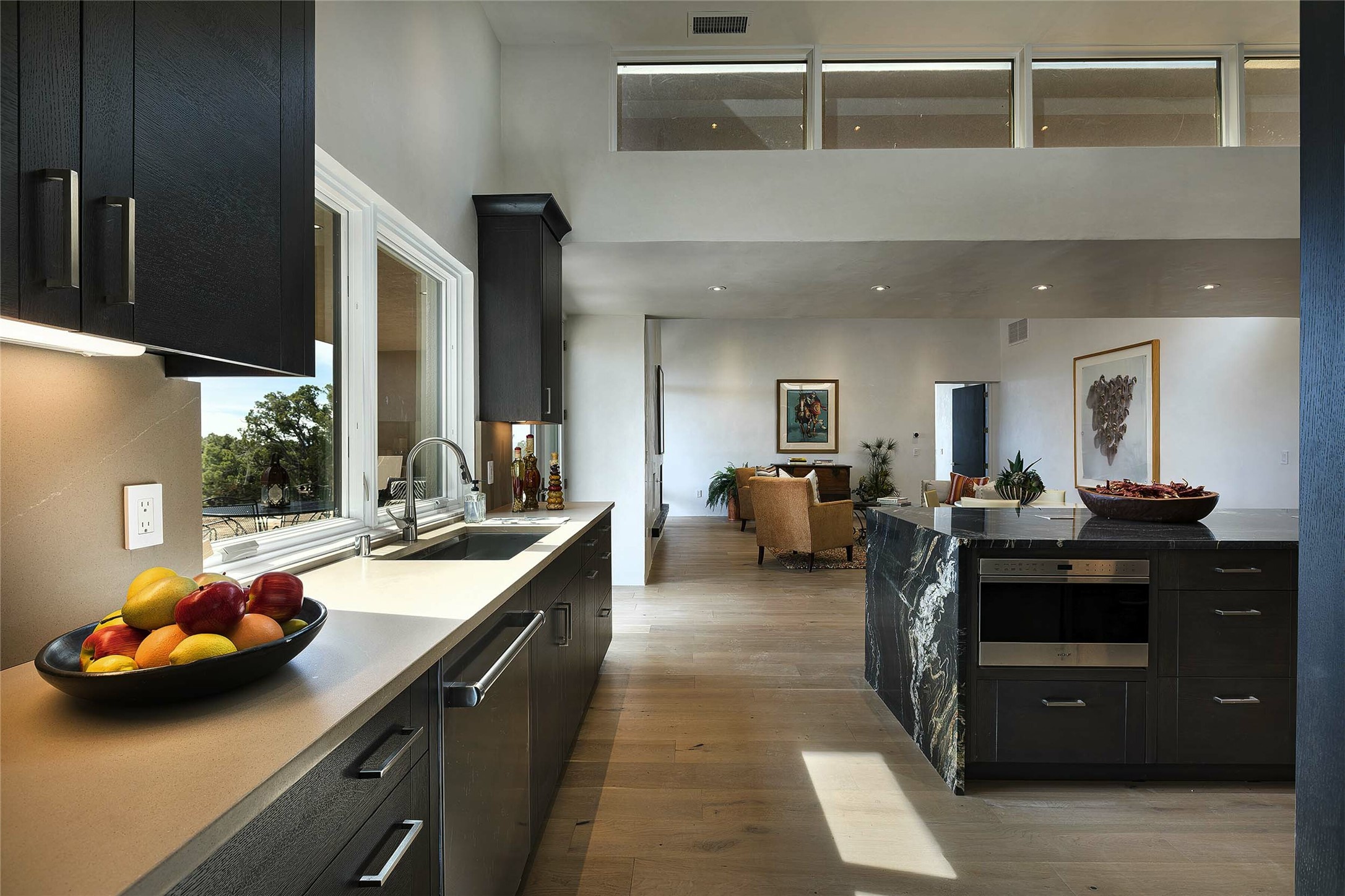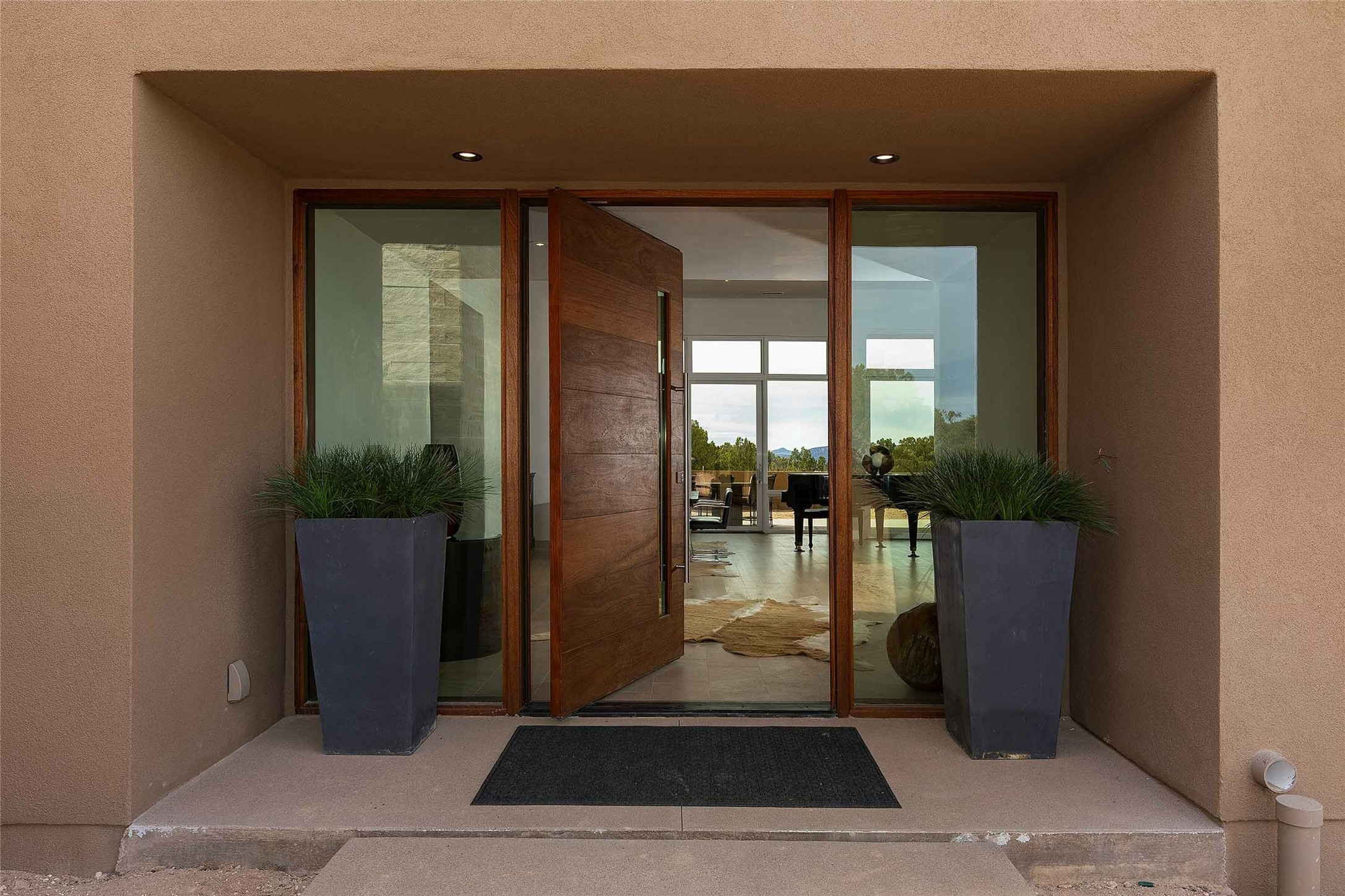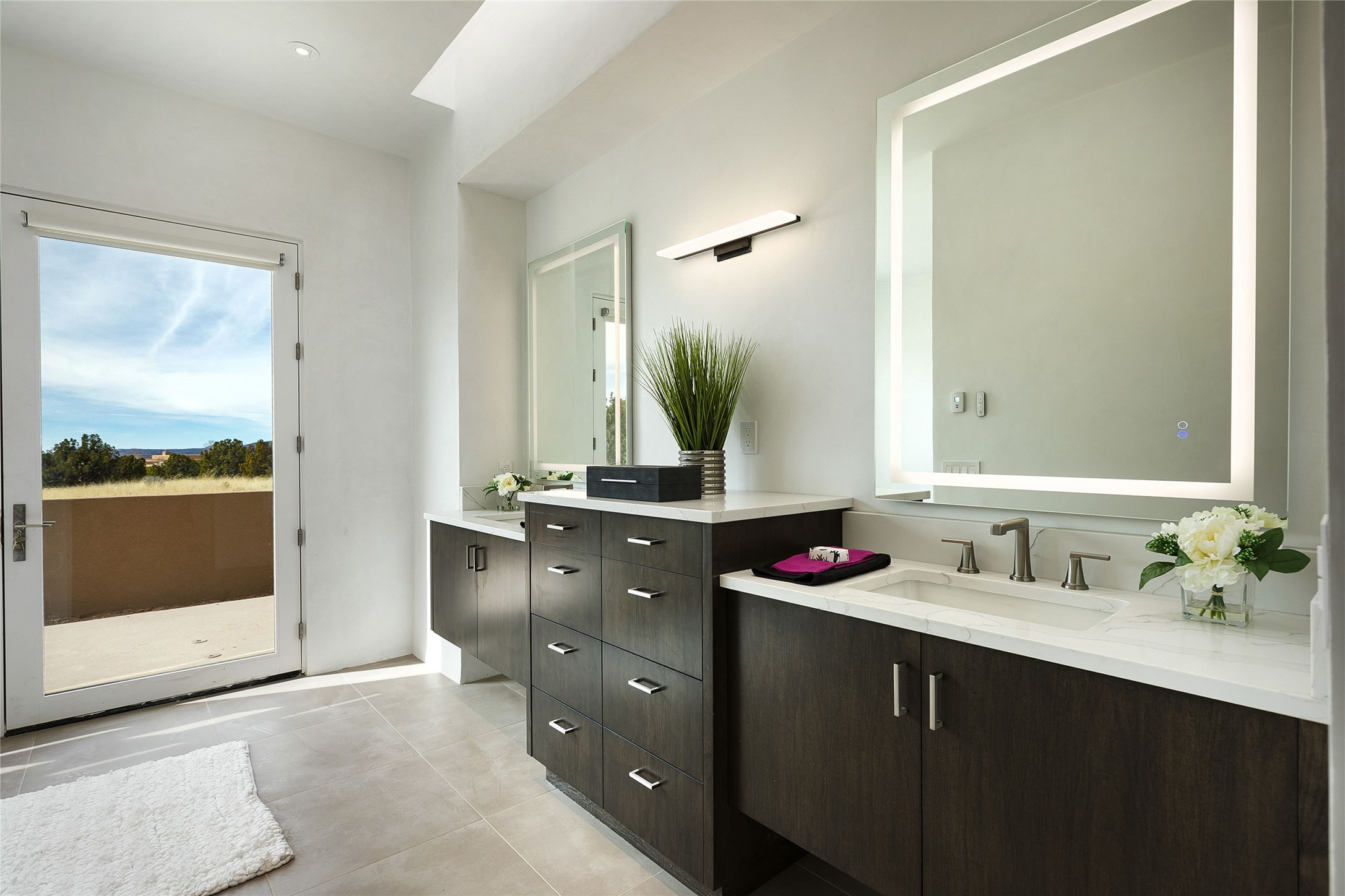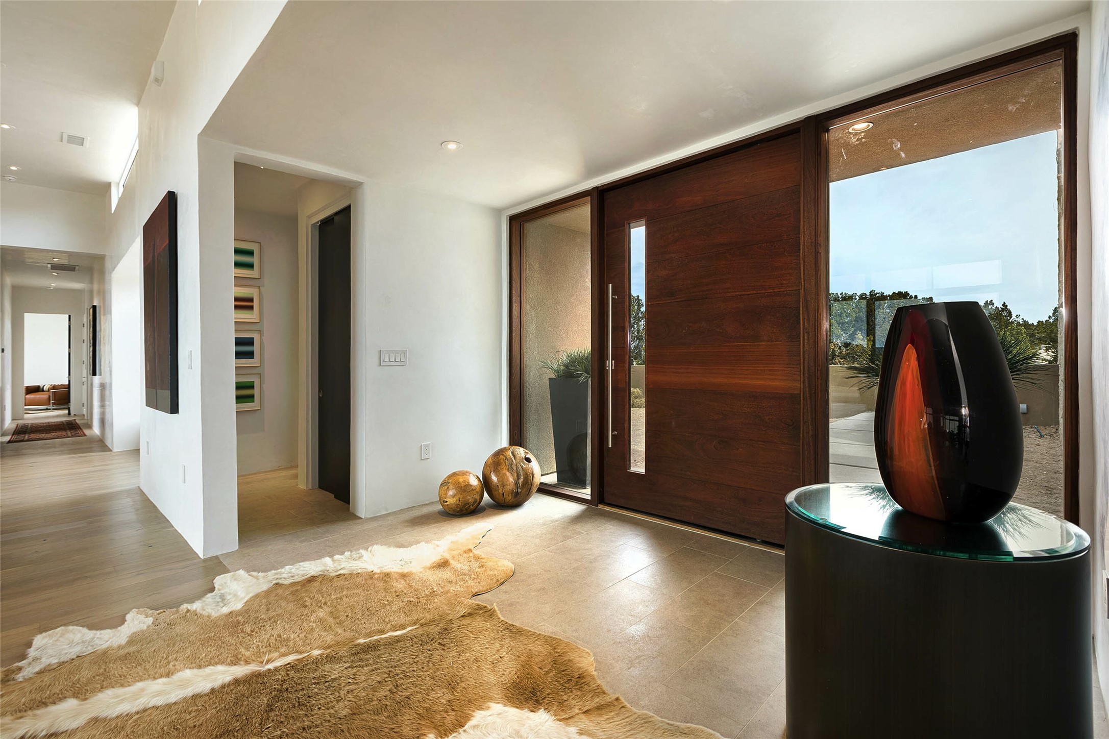 Exceptional new construction in Las Campanas, move-in ready within 30 days! Designed by the acclaimed Hoopes + Associates, this contemporary masterpiece impresses with powerful architecture and luxury designer finishes. Walking distance to The Las Campanas Hacienda Clubhouse and across the street from The Las Campanas Spa, Swim and Tennis Center, this stunning single level residence with Jemez and Sangre de Cristo mountain views was designed to embrace the ultimate indoor and outdoor living experience and capture the true essence of the Santa Fe lifestyle. Design features include a grand living room and formal dining area complete with a modern gas fireplace framed by stacked stone and a wall of sliding glass doors which frame the Jemez and sunset views, which lead out to the back entertainment area and fireplace. The state-of-the-art island kitchen stuns with luxury finishes, custom cabinetry and Wolf/Subzero appliances and opens to a casual living room with a fireplace. The private owner's suite offers a gas fireplace, views, portal access, and the ultimate spa-like bath and massive walk-in closet. Separated from the main living area is an independent guest wing complete with 2 ensuite bedrooms, each with their private entrance and a large media room or art studio. Additional features include a spacious pantry, 3 car garage, a built-in BBQ, stacked stone entrance wall, wood flooring, crisp white plaster walls, and luxury finishes throughout!
