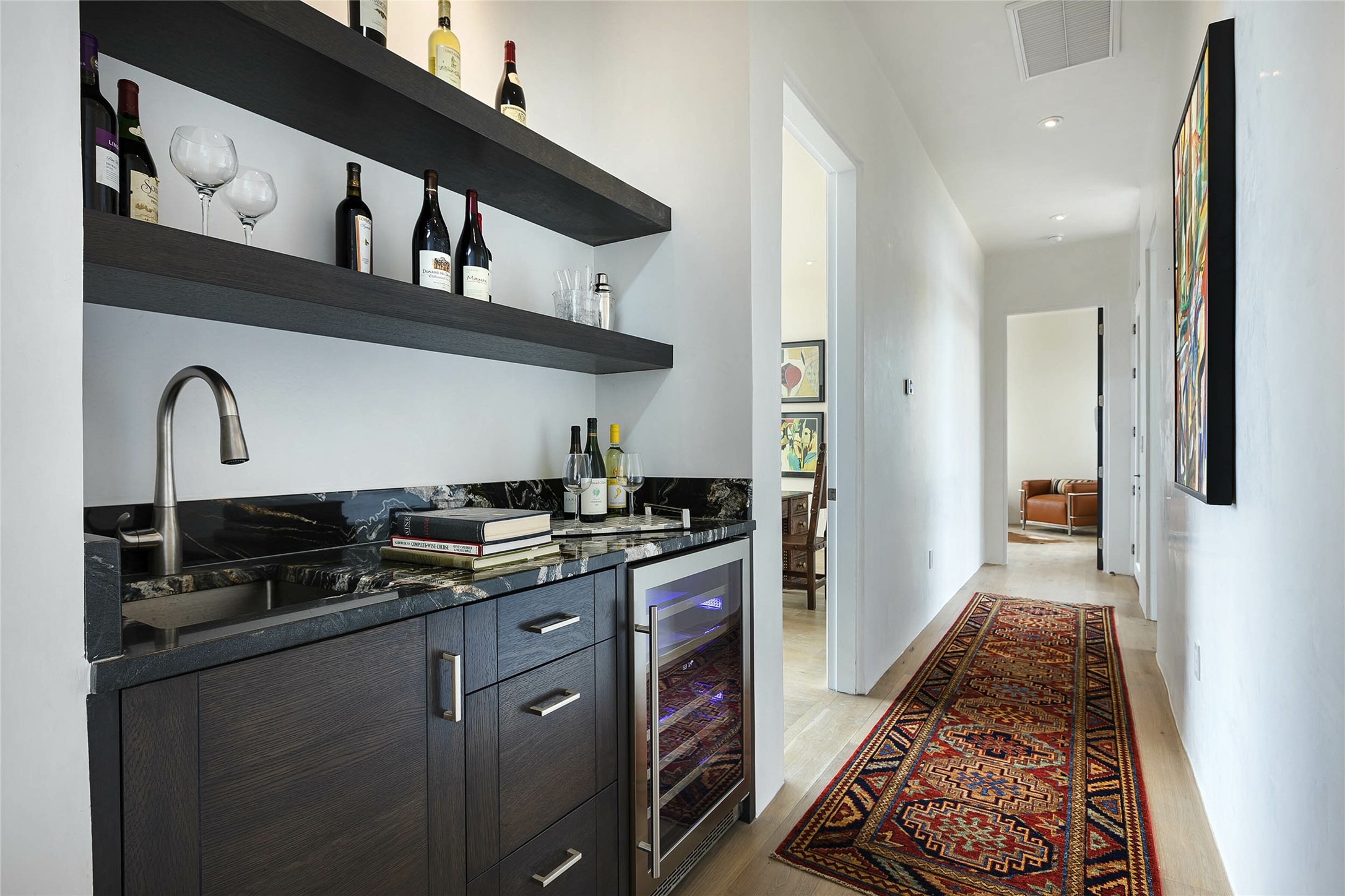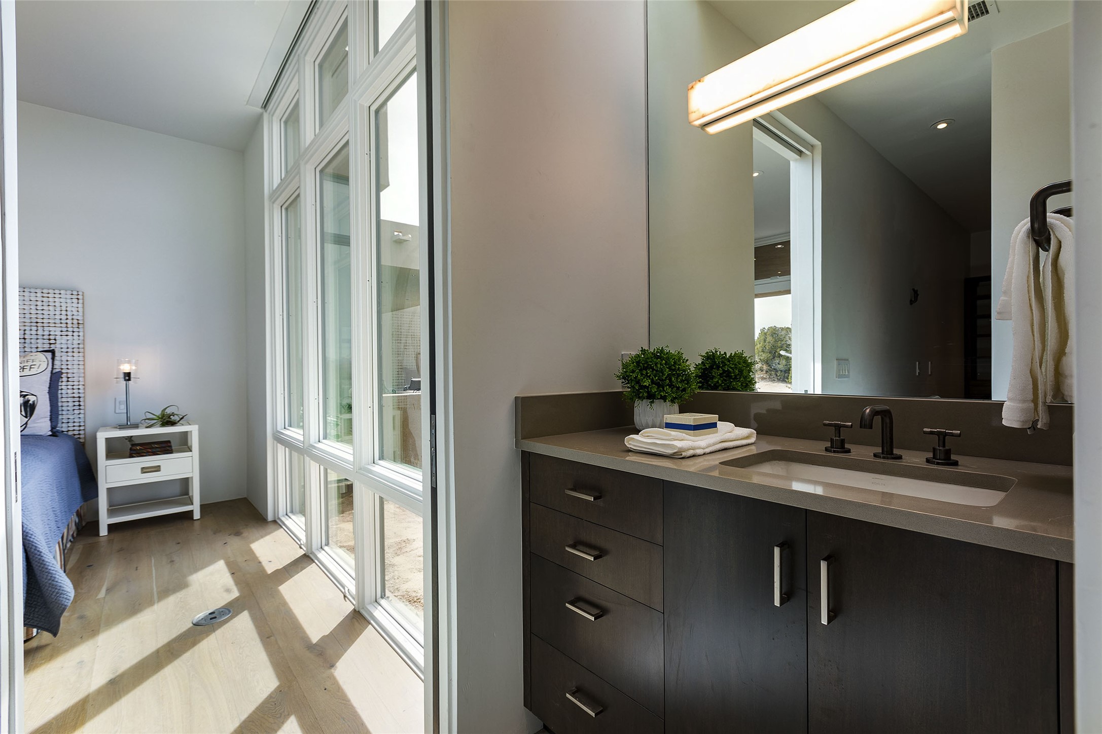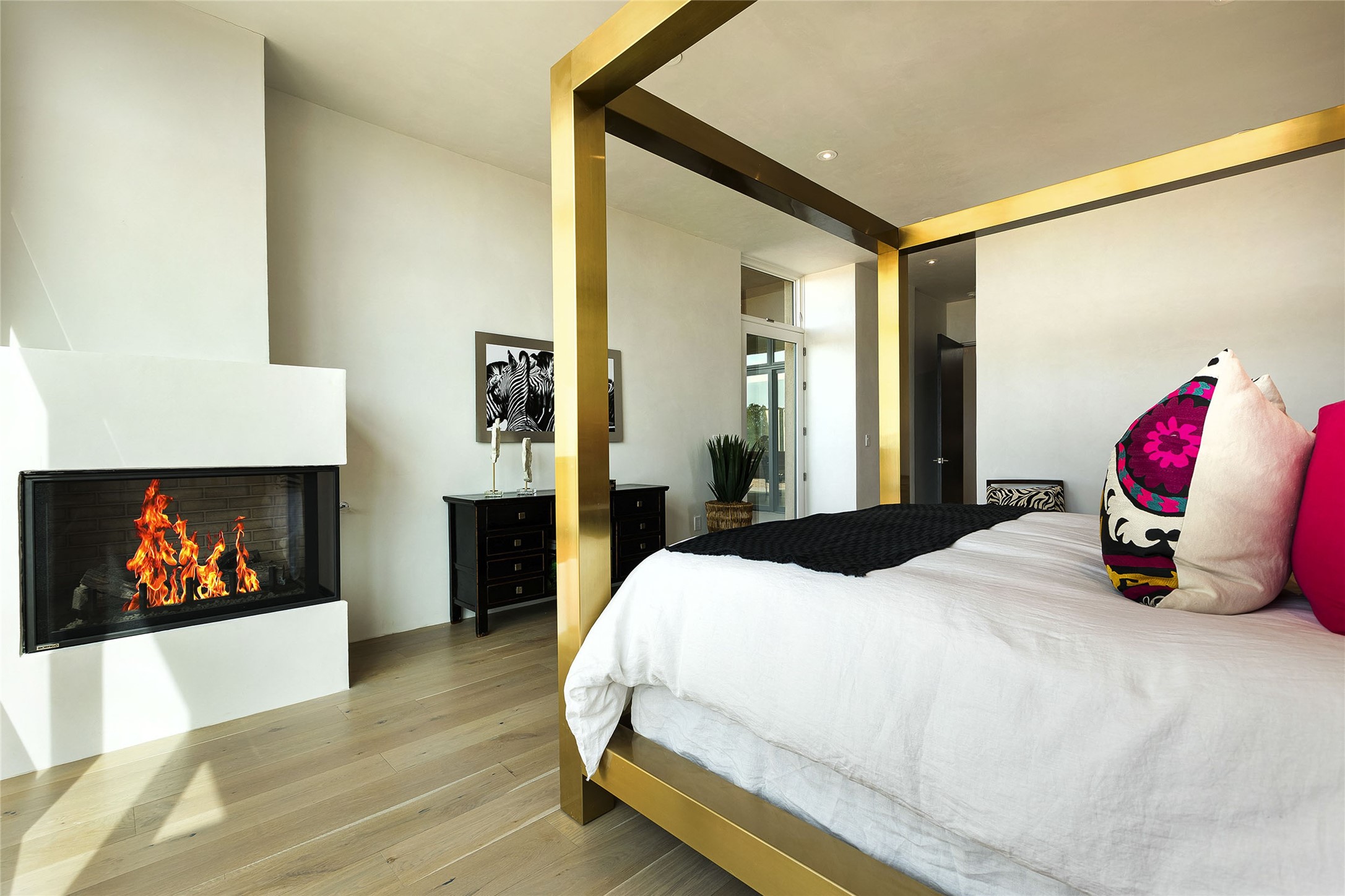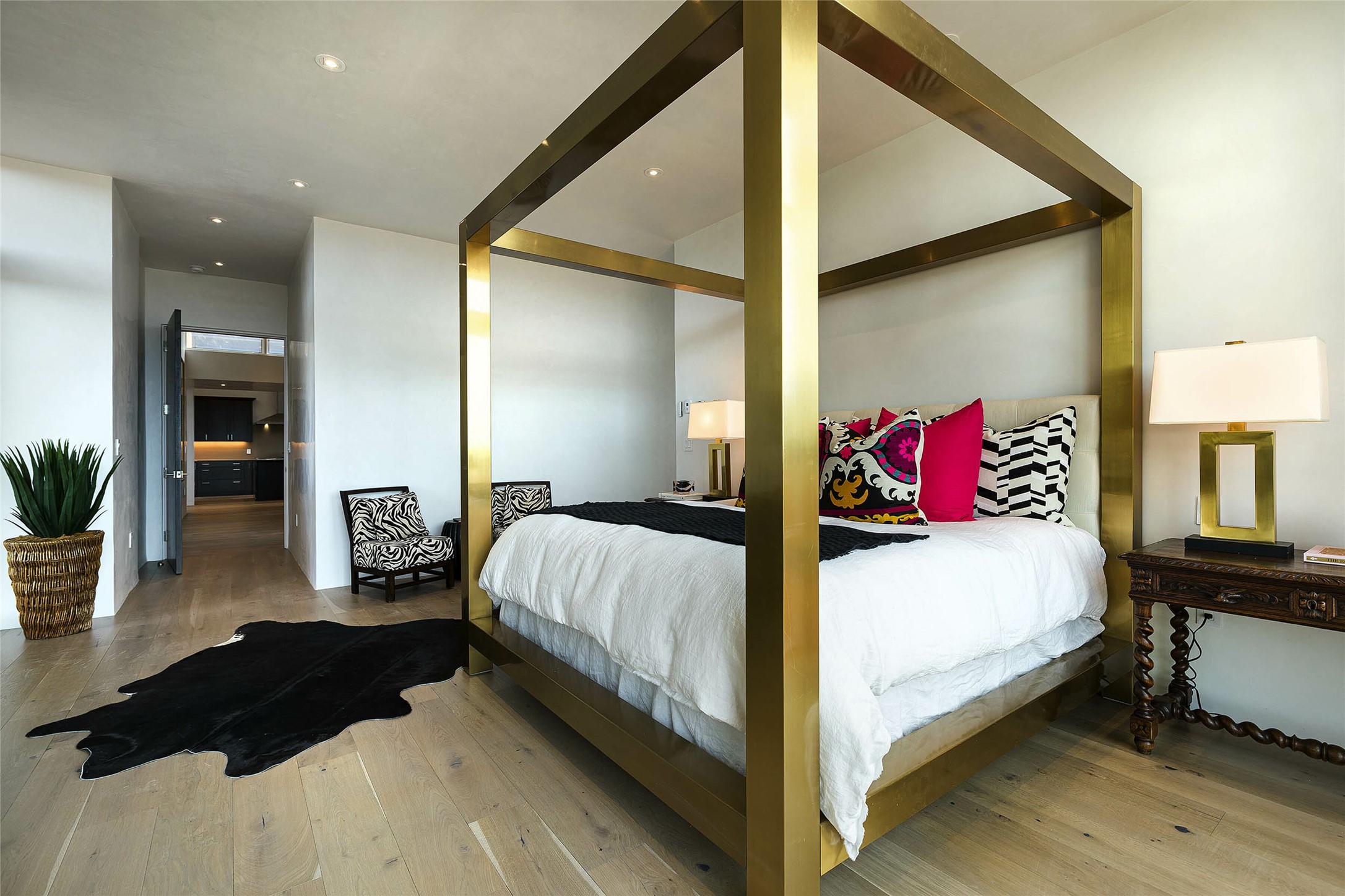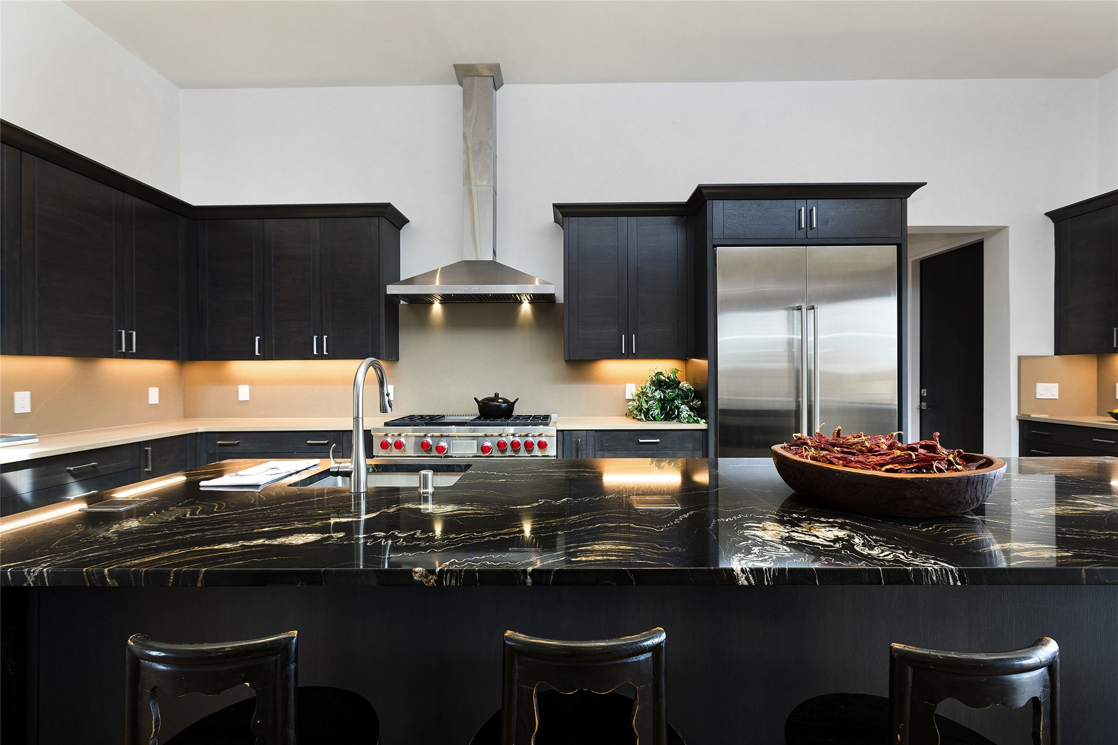 Exceptional new construction in Las Campanas, move-in ready within 30 days! Designed by the acclaimed Hoopes + Associates, this contemporary masterpiece impresses with powerful architecture and luxury designer finishes. Walking distance to The Las Campanas Hacienda Clubhouse and across the street from The Las Campanas Spa, Swim and Tennis Center, this stunning single level residence with Jemez and Sangre de Cristo mountain views was designed to embrace the ultimate indoor and outdoor living experience and capture the true essence of the Santa Fe lifestyle. Design features include a grand living room and formal dining area complete with a modern gas fireplace framed by stacked stone and a wall of sliding glass doors which frame the Jemez and sunset views, which lead out to the back entertainment area and fireplace. The state-of-the-art island kitchen stuns with luxury finishes, custom cabinetry and Wolf/Subzero appliances and opens to a casual living room with a fireplace. The private owner's suite offers a gas fireplace, views, portal access, and the ultimate spa-like bath and massive walk-in closet. Separated from the main living area is an independent guest wing complete with 2 ensuite bedrooms, each with their private entrance and a large media room or art studio. Additional features include a spacious pantry, 3 car garage, a built-in BBQ, stacked stone entrance wall, wood flooring, crisp white plaster walls, and luxury finishes throughout!