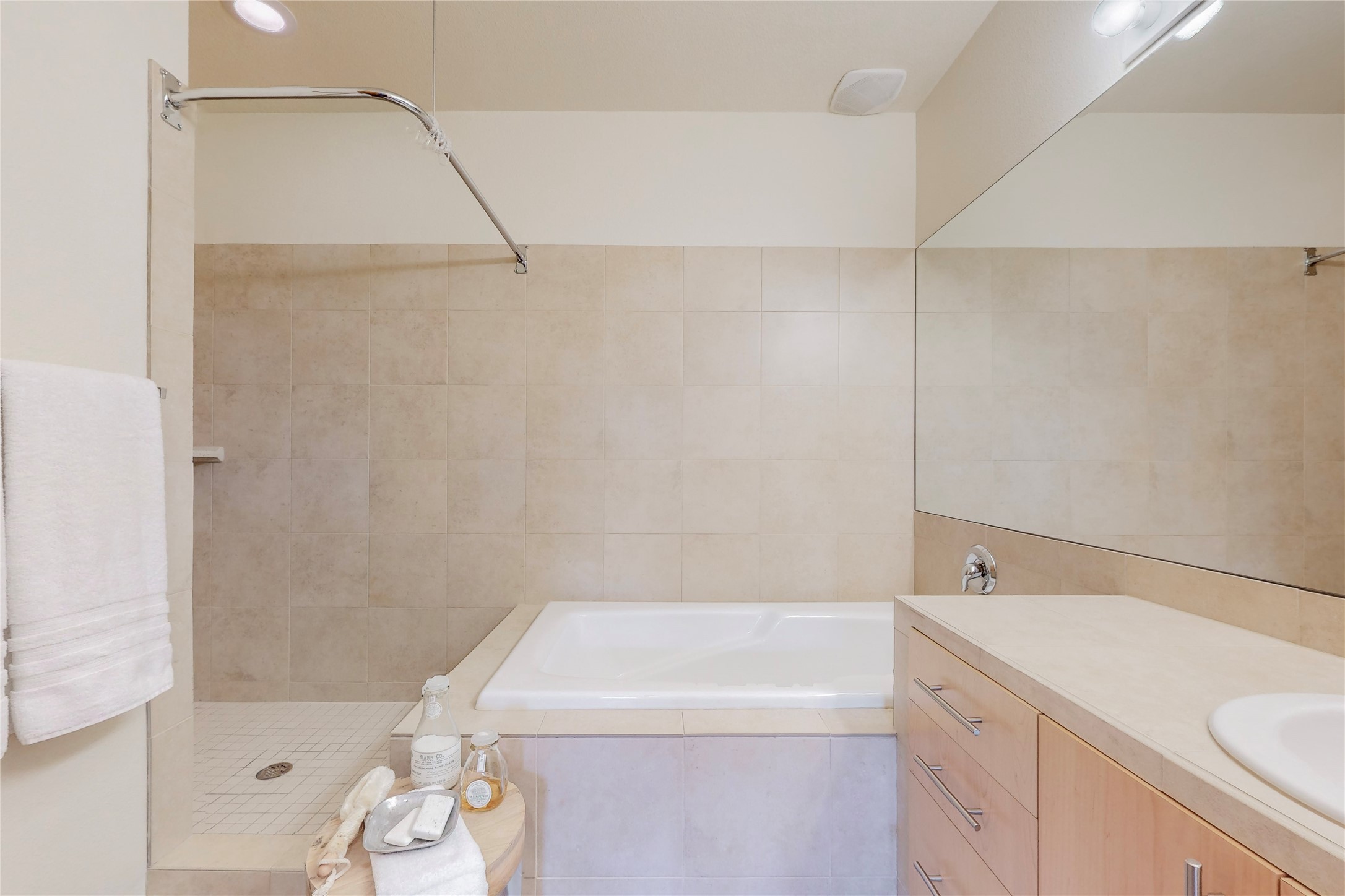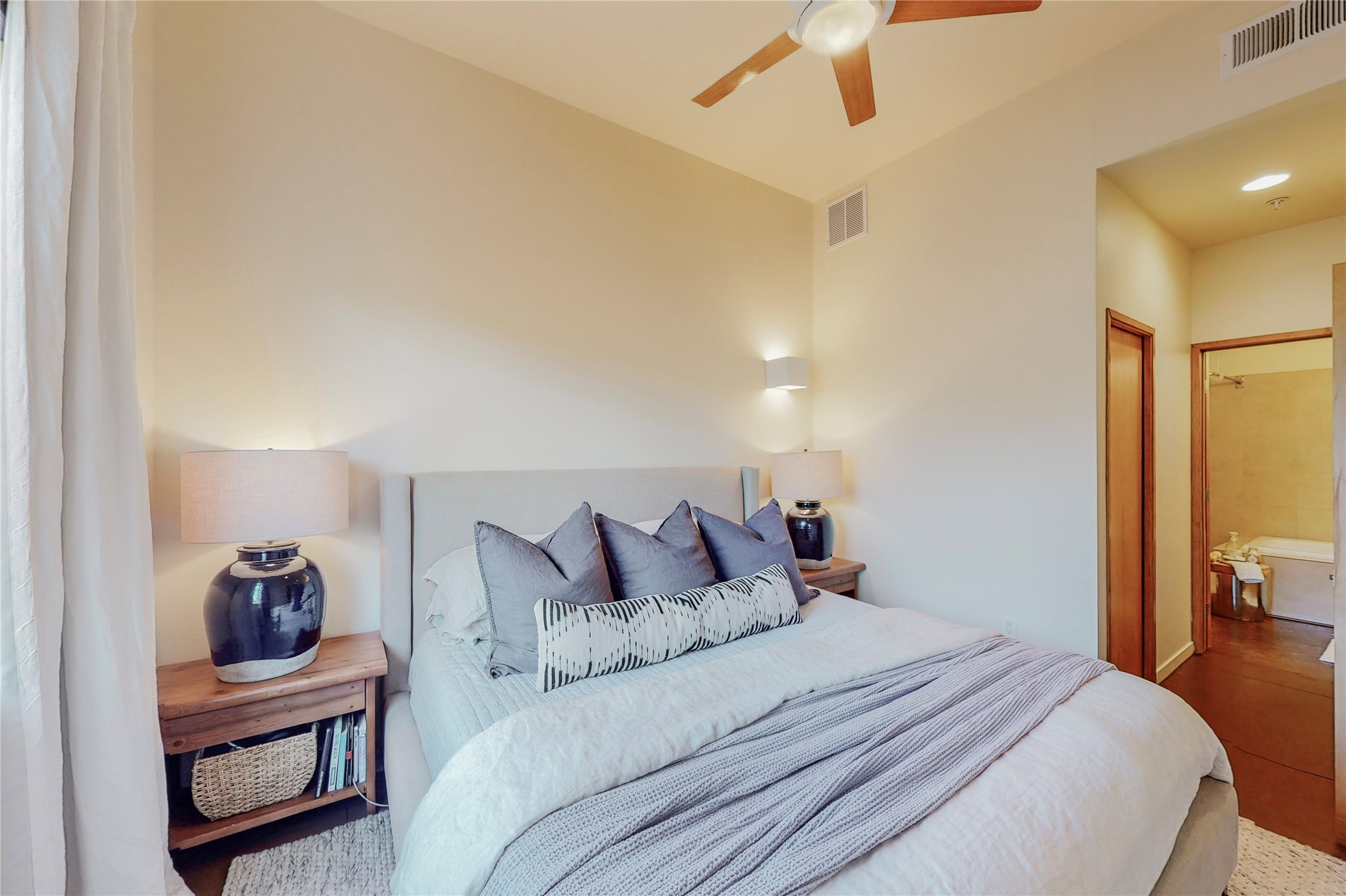 Here is your sexy ZOCALO Luxury Condominium! Don't miss this opportunity to own your own slice of paradise in one of the most beautiful cities in the world. This two bed, two bath condo in Santa Fe, New Mexico is the perfect place to get away from it all! You'll be able to relax and enjoy the peace and quiet of the Southwest. The spacious open floor plan features a large great room with a cozy fireplace, perfect for winter nights. There is a sweet, fenced back patio for your dogs. A beautiful, private clubhouse offers Zocalo residents a center point of recreation and connection. The 5,700 square-foot clubhouse offers a grand foyer entry with fireplace, fitness center, swimming pool, spa/jaccuzzi, club room, conference room and catering kitchen. There is a beautiful fountain patio and a scenic walking trail. On the north end of Zocalo is a fitness center and large outdoor patio space. Whether you're looking for a peaceful retreat or a convenient spot for commuting, this condo has it all! https://www.zocalosf.com/