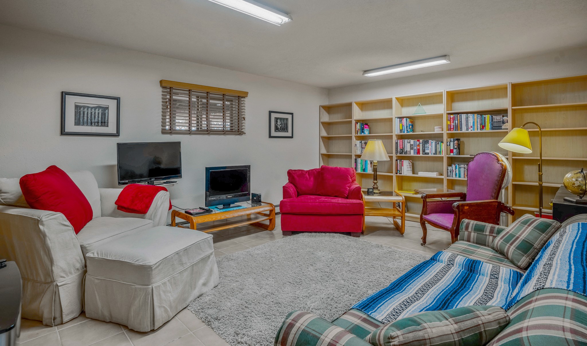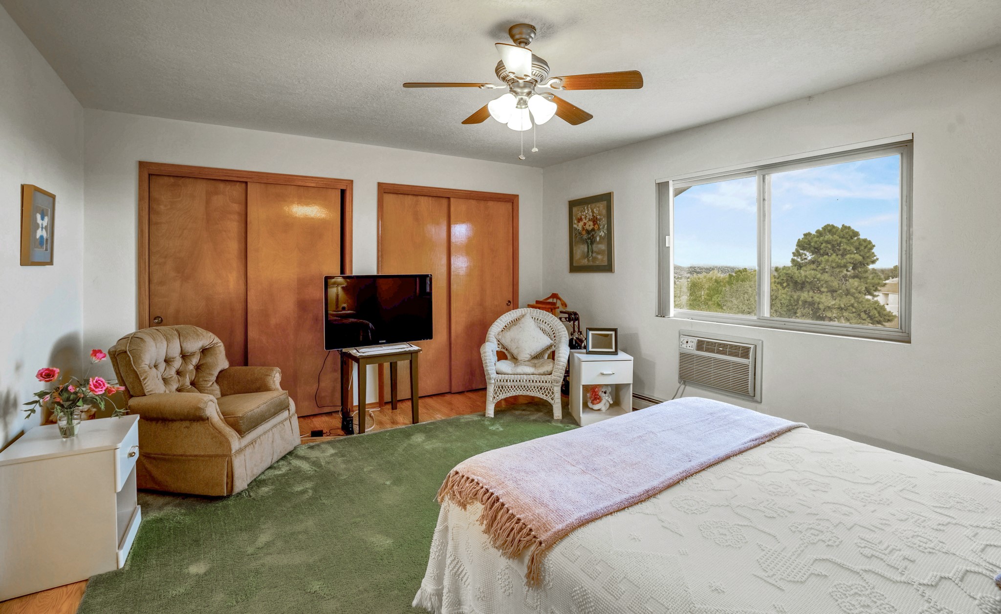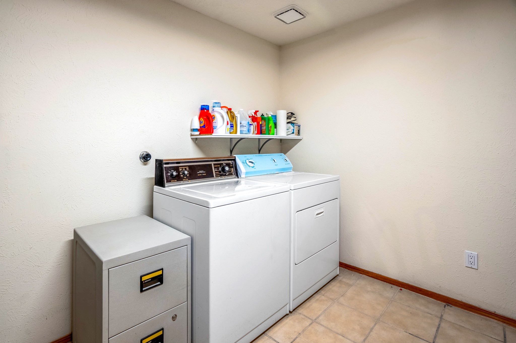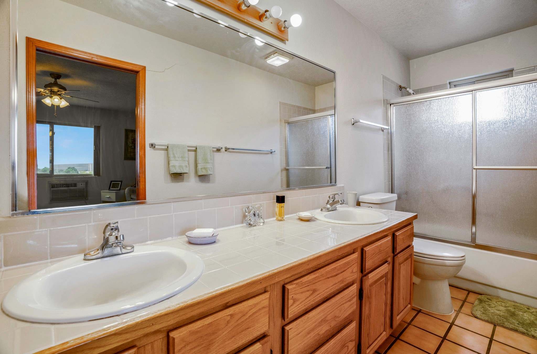 A different view out the windows - Cochiti Lake and the expansive vistas that surround! Lots of windows and high ceilings welcome you to this bright, two-story home with three bedrooms and two baths upstairs along with living room, dining room and kitchen. The three-sided fireplace centers the living space with inviting warmth. Downstairs has a bonus room and a large laundry room. Enjoy summer evenings on the covered portal with views for peaceful enjoyment. Subject to a land lease agreement.