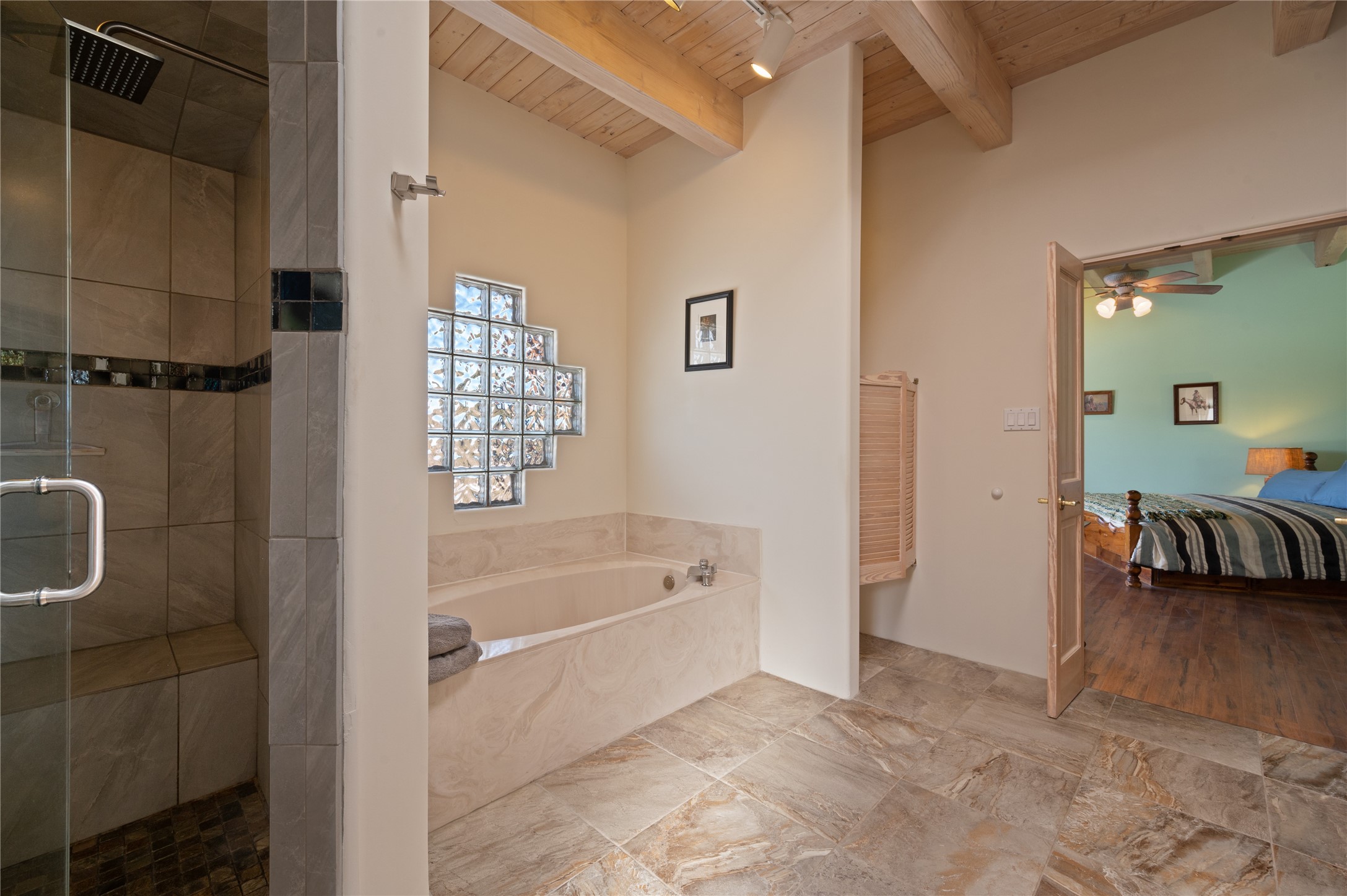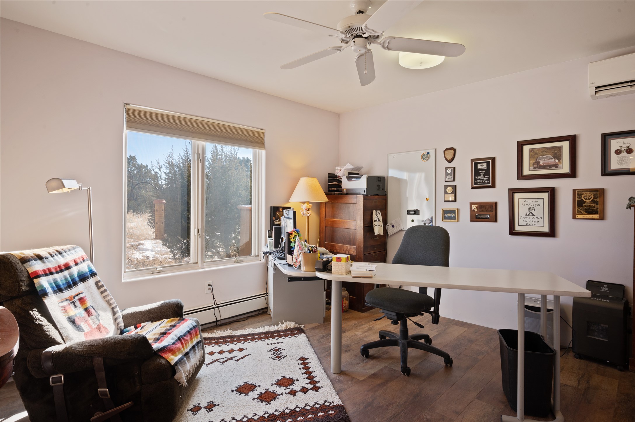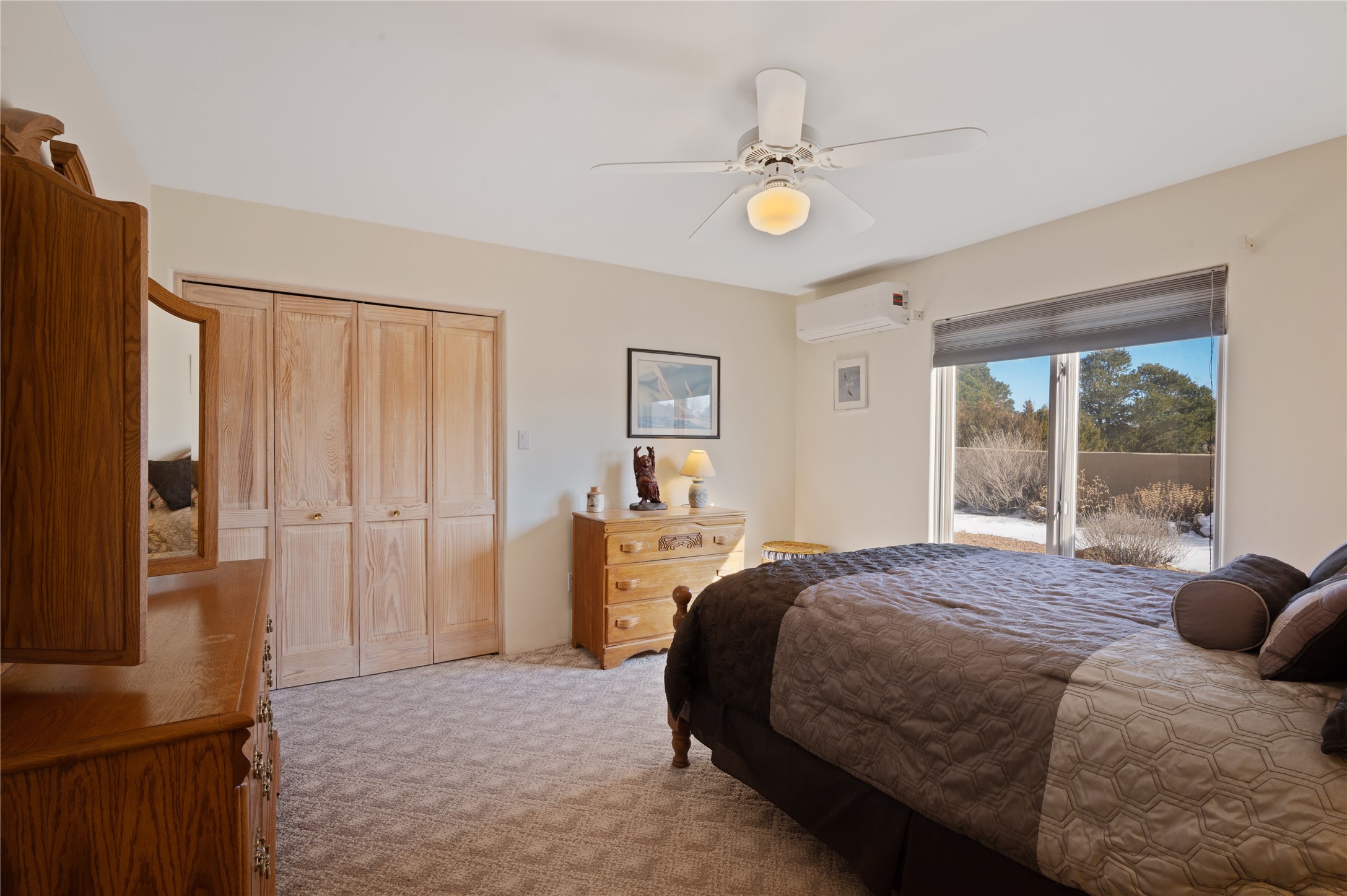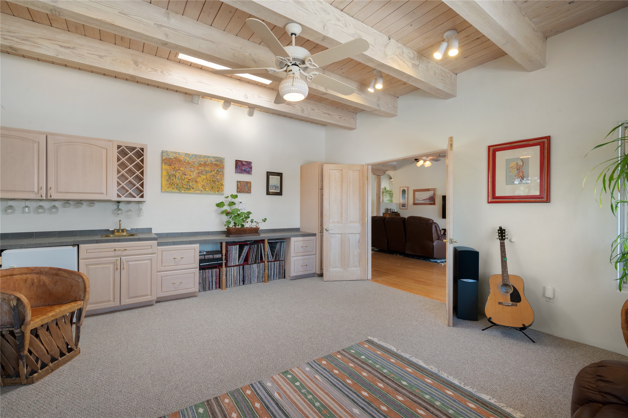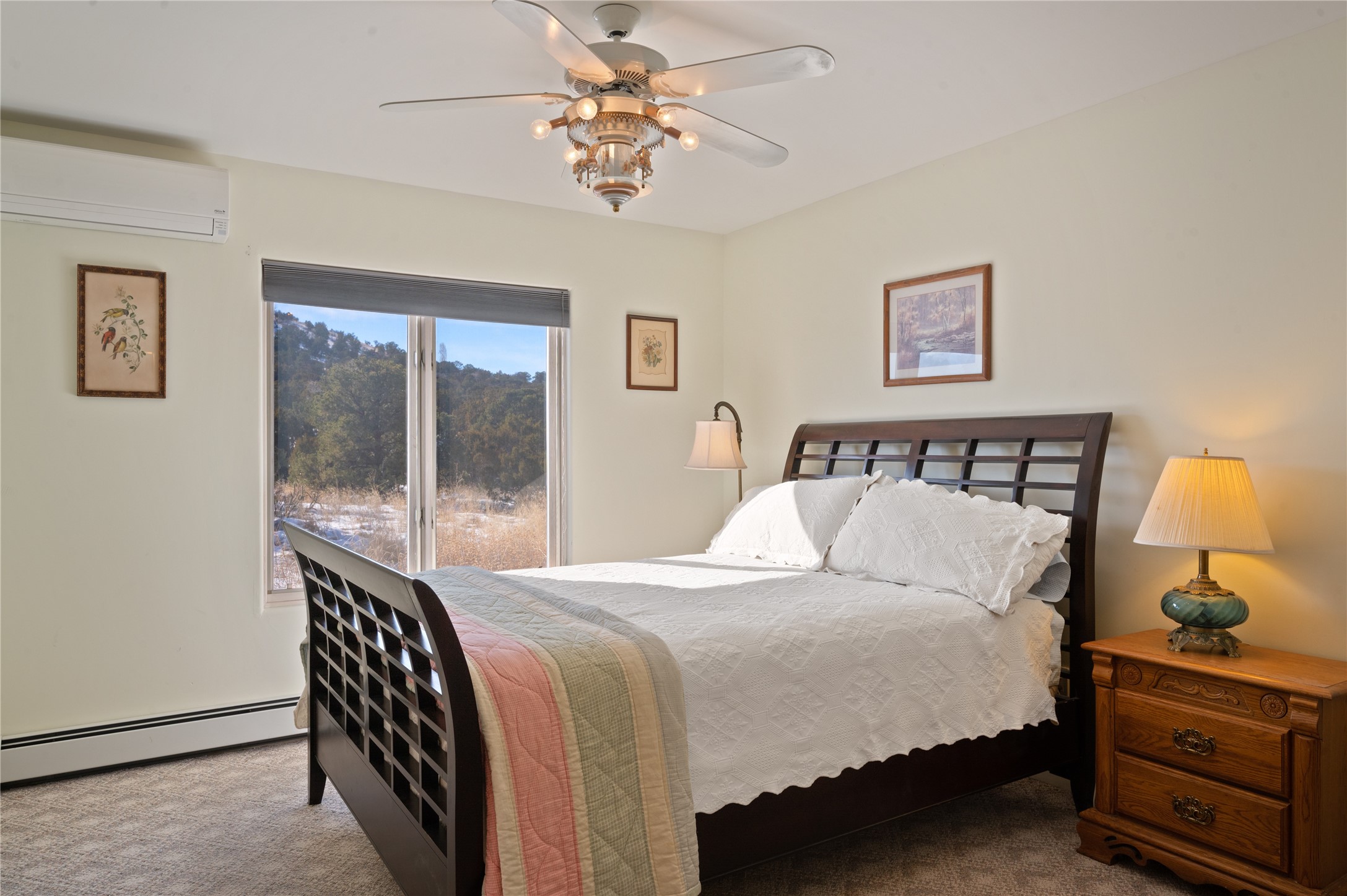 Nestled in the foothills of the Sangre de Cristo Mountains, this single level Pueblo style home can be found in the Dos Griegos Community, just 20 minutes from the Santa Fe plaza. This spacious 3,000+ square foot energy efficient home is situated on 3.66 acres, has 4 bedrooms along with a bonus room that could be used as an office, studio, media room...whatever you need it to be, 2 1/2 baths, 2 kiva fireplaces, beamed ceiling, 3 outdoor portals & 2 courtyards and a hot tub. Current owner updated the interior, added energy efficient appliances, an IB Roof System, 8 mini splits, a radiant floor heating mat in the primary bath, a water filtration system and purchased a Positive Energy Solar system.