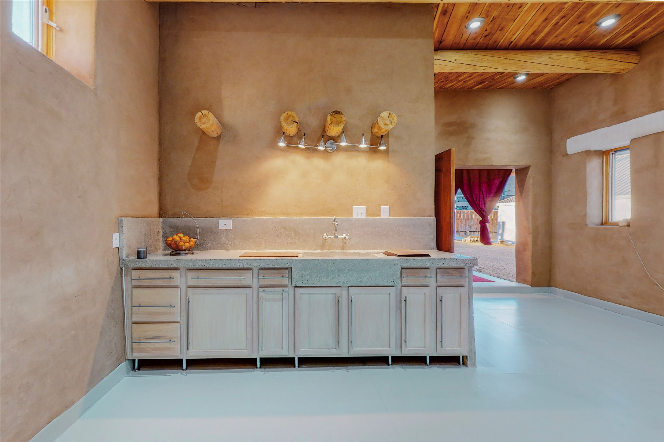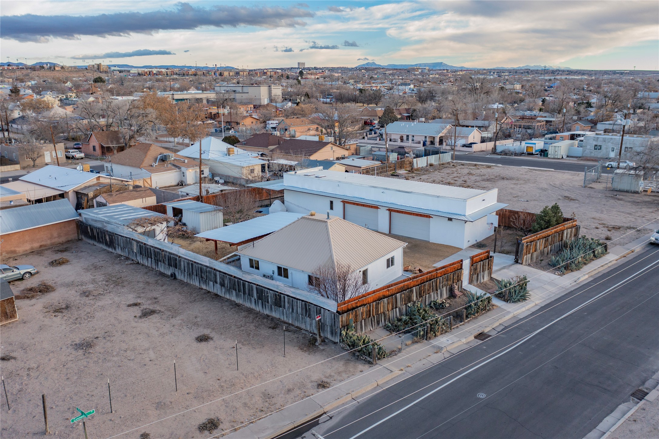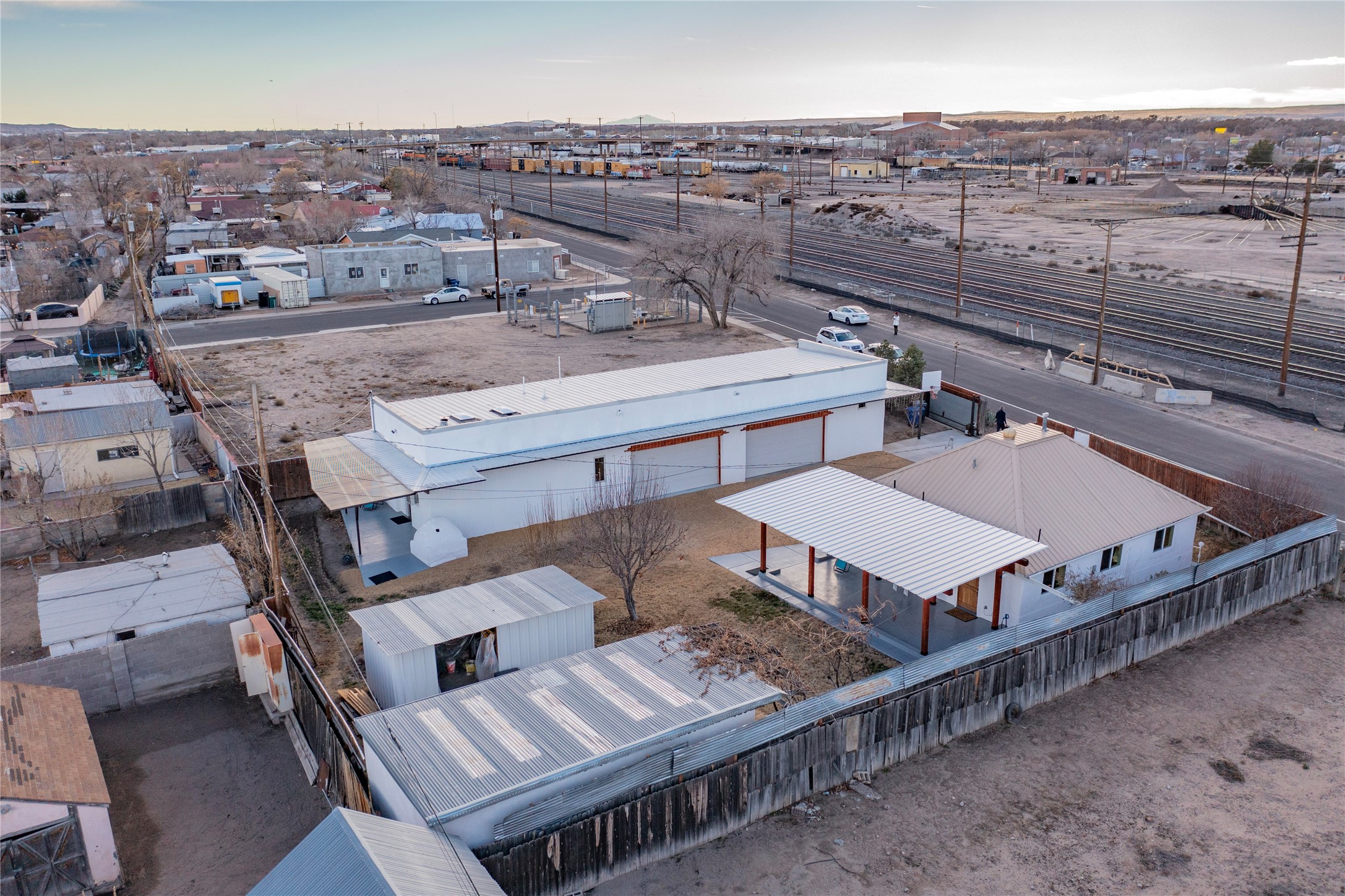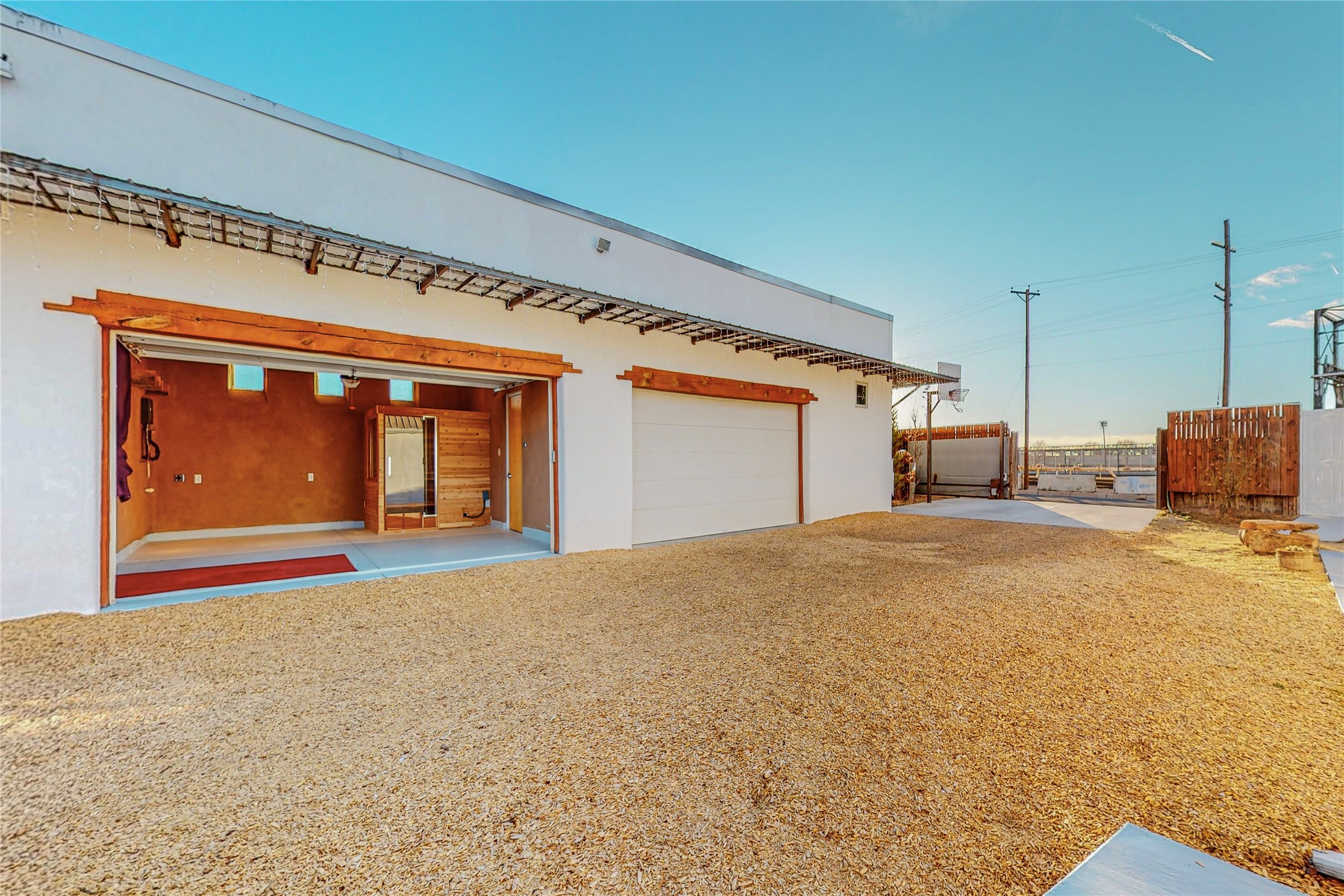 Welcome to this fabulous area! VIRTUAL TOUR of COMPOUND & STRUCTURES ARE A MUST SEE (2 Homes +++). Discover the opportunity to live and work from home. Experience a mature inner city oasis complete with space for cottage industry, creative living. Downtown compound features a traditional railyard 2 bedroom home, 1650 SF new build adobe w/12' ceilings, spectacular lighting, wide open space and its own address. 2 oversized Reynor doors allow easy access for larger projects. A second 2 room historical adobe is equip with enough electricity to run your table saw, kiln or other power tools with ease. Enjoy 2 oversized outdoor patios perfect for enjoying family cookouts, a garden shed and paved B-Ball court. Rejuvenate in your custom built, cedar sauna & Jacuzzi tub. Come for the sustainability.