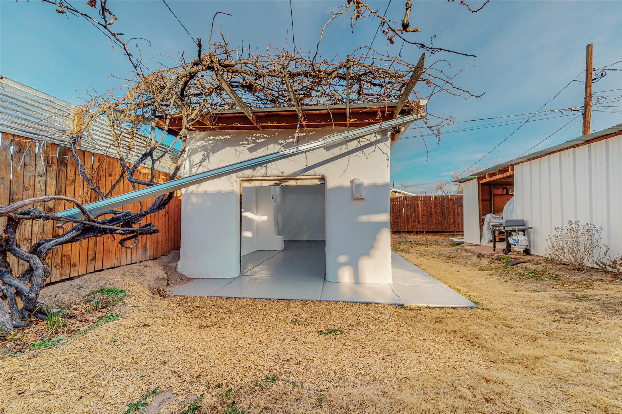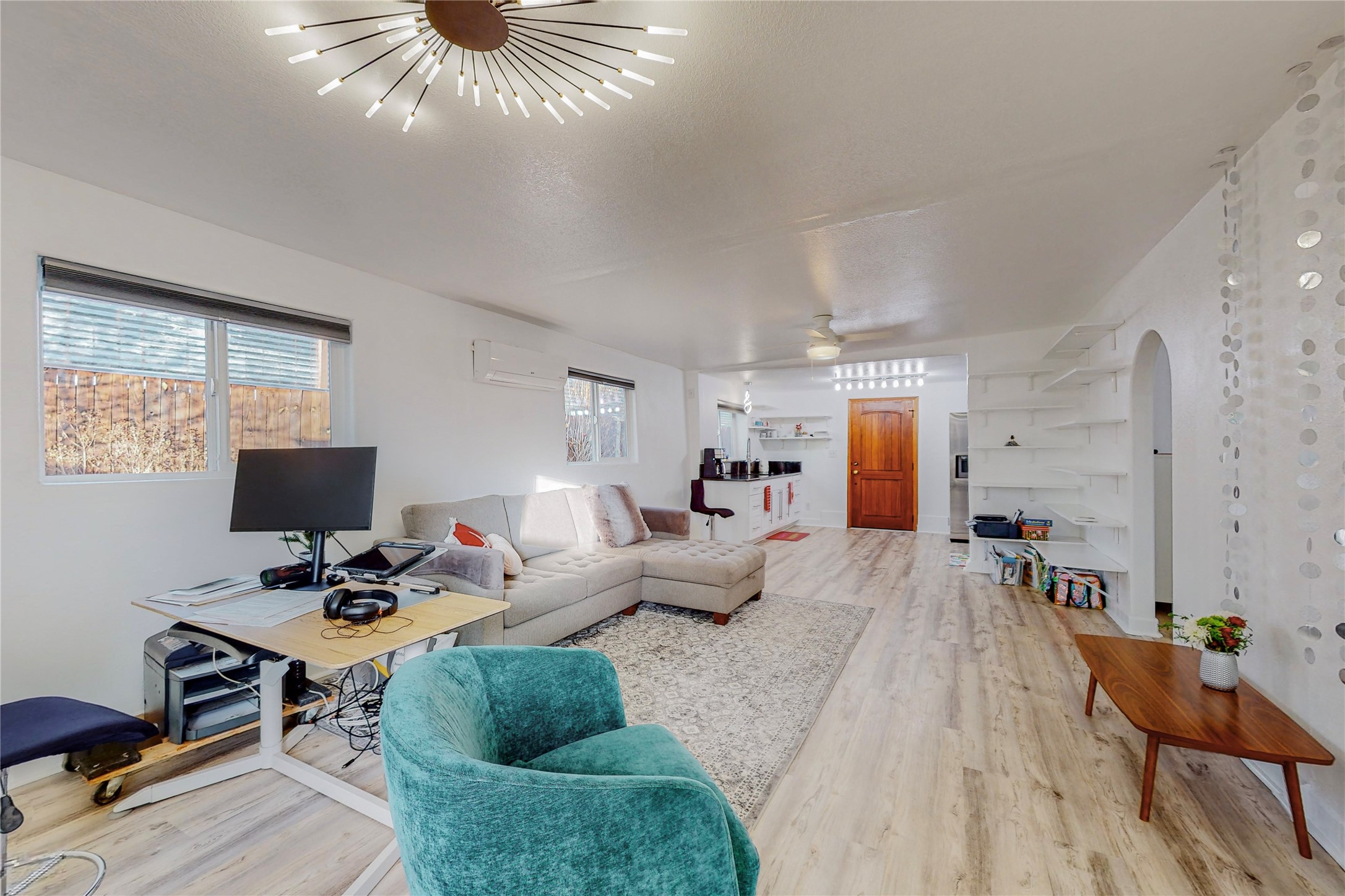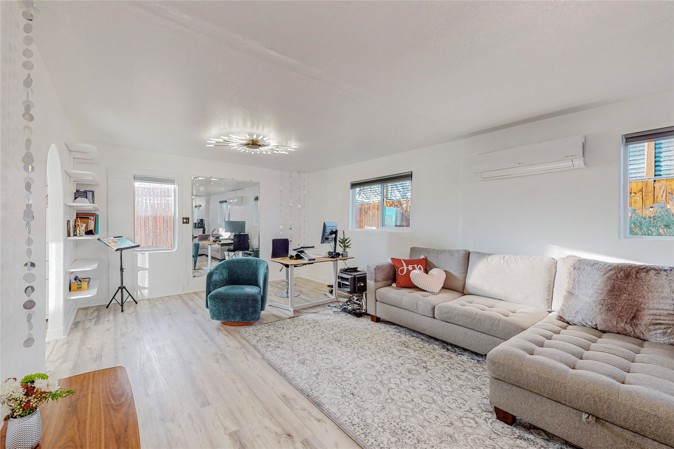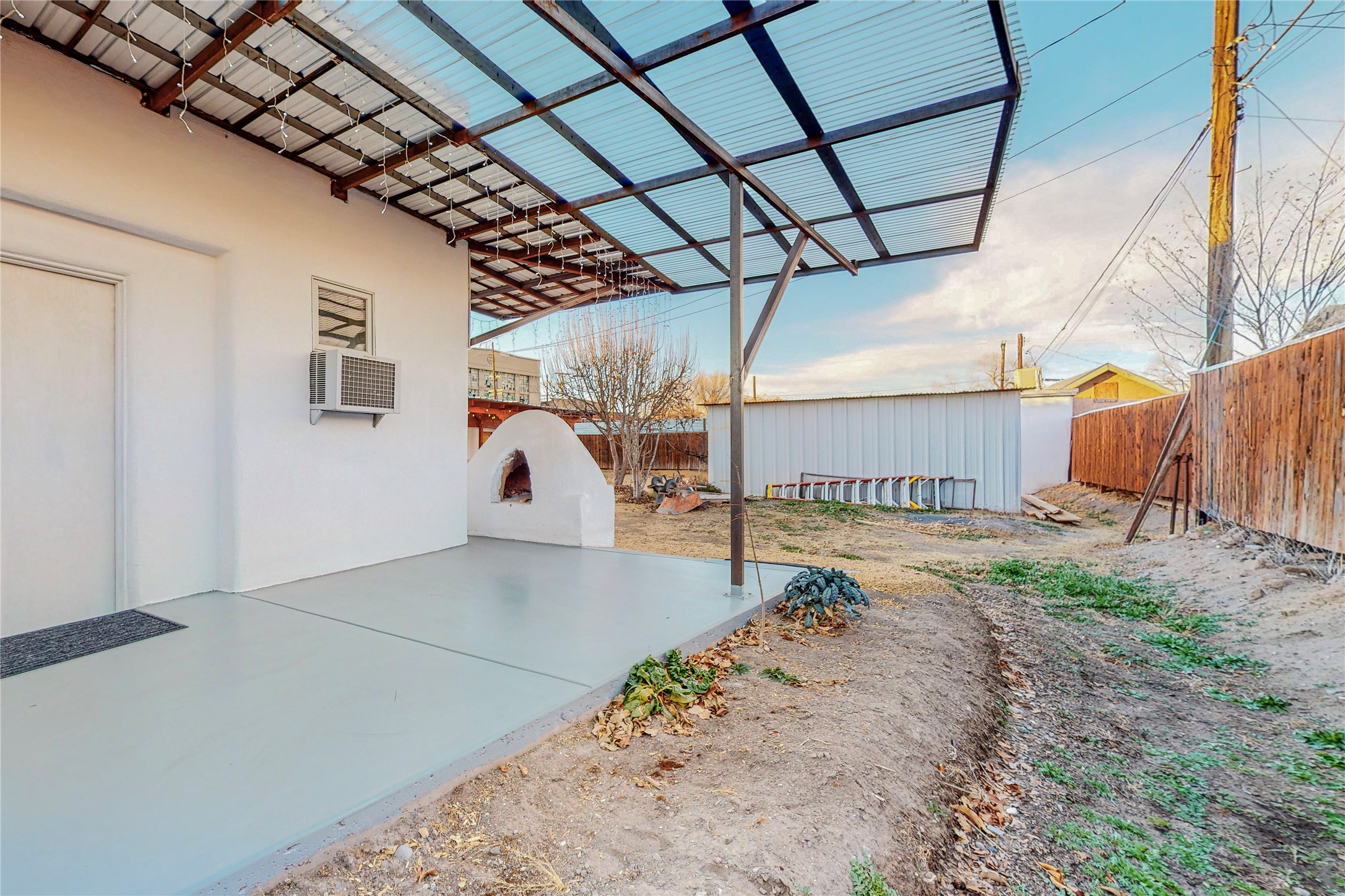 Welcome to this fabulous area! VIRTUAL TOUR of COMPOUND & STRUCTURES ARE A MUST SEE (2 Homes +++). Discover the opportunity to live and work from home. Experience a mature inner city oasis complete with space for cottage industry, creative living. Downtown compound features a traditional railyard 2 bedroom home, 1650 SF new build adobe w/12' ceilings, spectacular lighting, wide open space and its own address. 2 oversized Reynor doors allow easy access for larger projects. A second 2 room historical adobe is equip with enough electricity to run your table saw, kiln or other power tools with ease. Enjoy 2 oversized outdoor patios perfect for enjoying family cookouts, a garden shed and paved B-Ball court. Rejuvenate in your custom built, cedar sauna & Jacuzzi tub. Come for the sustainability.