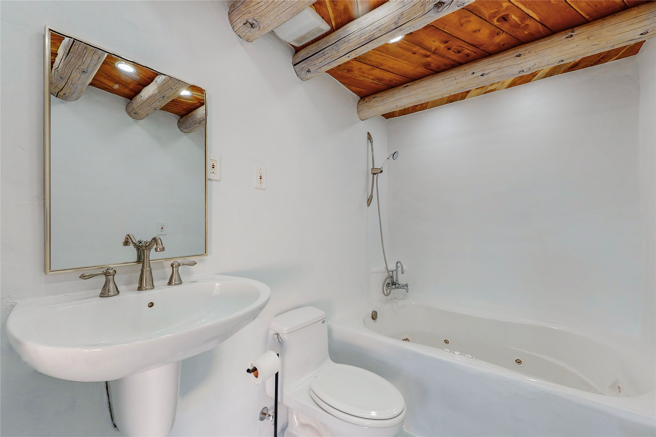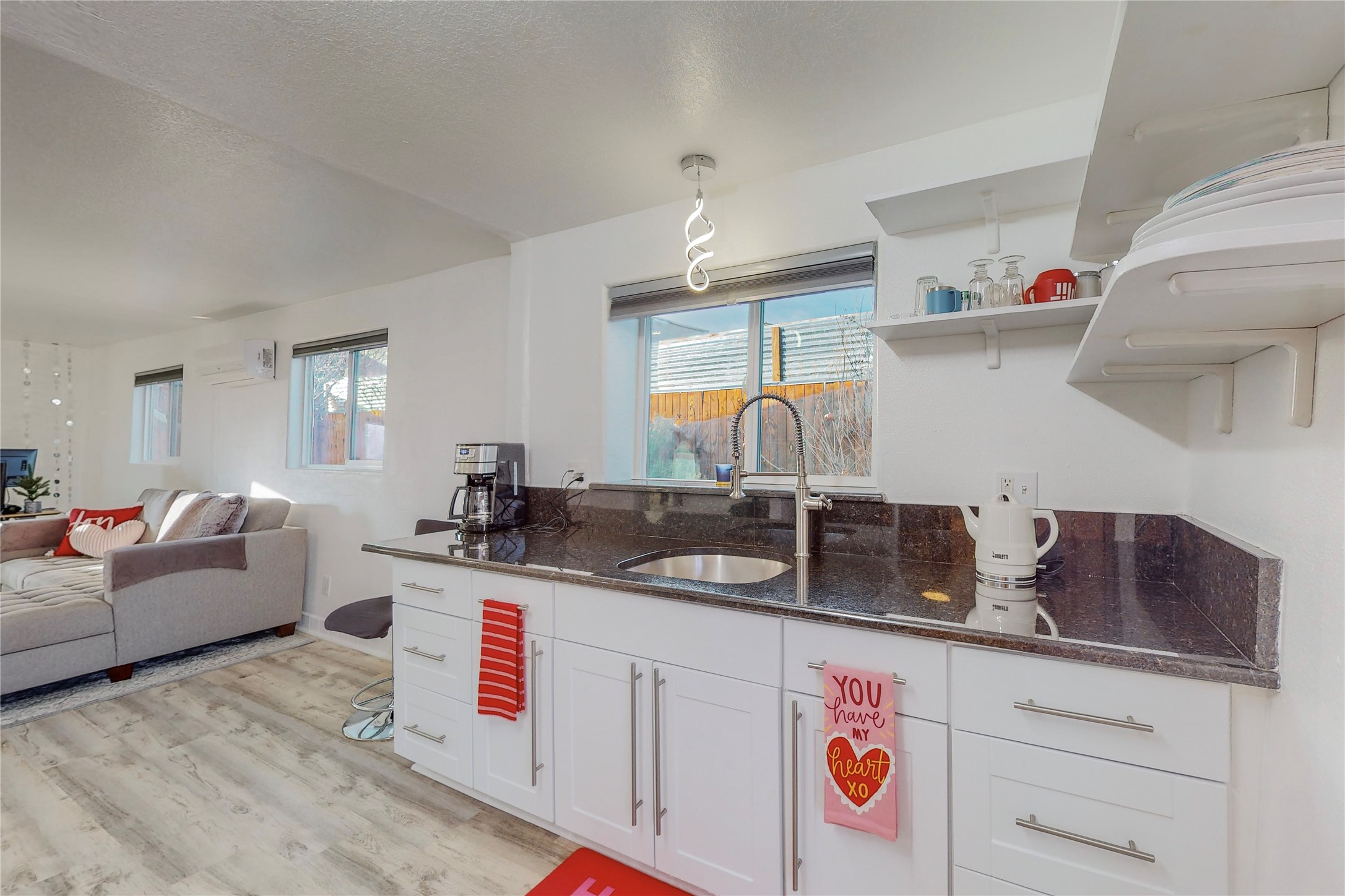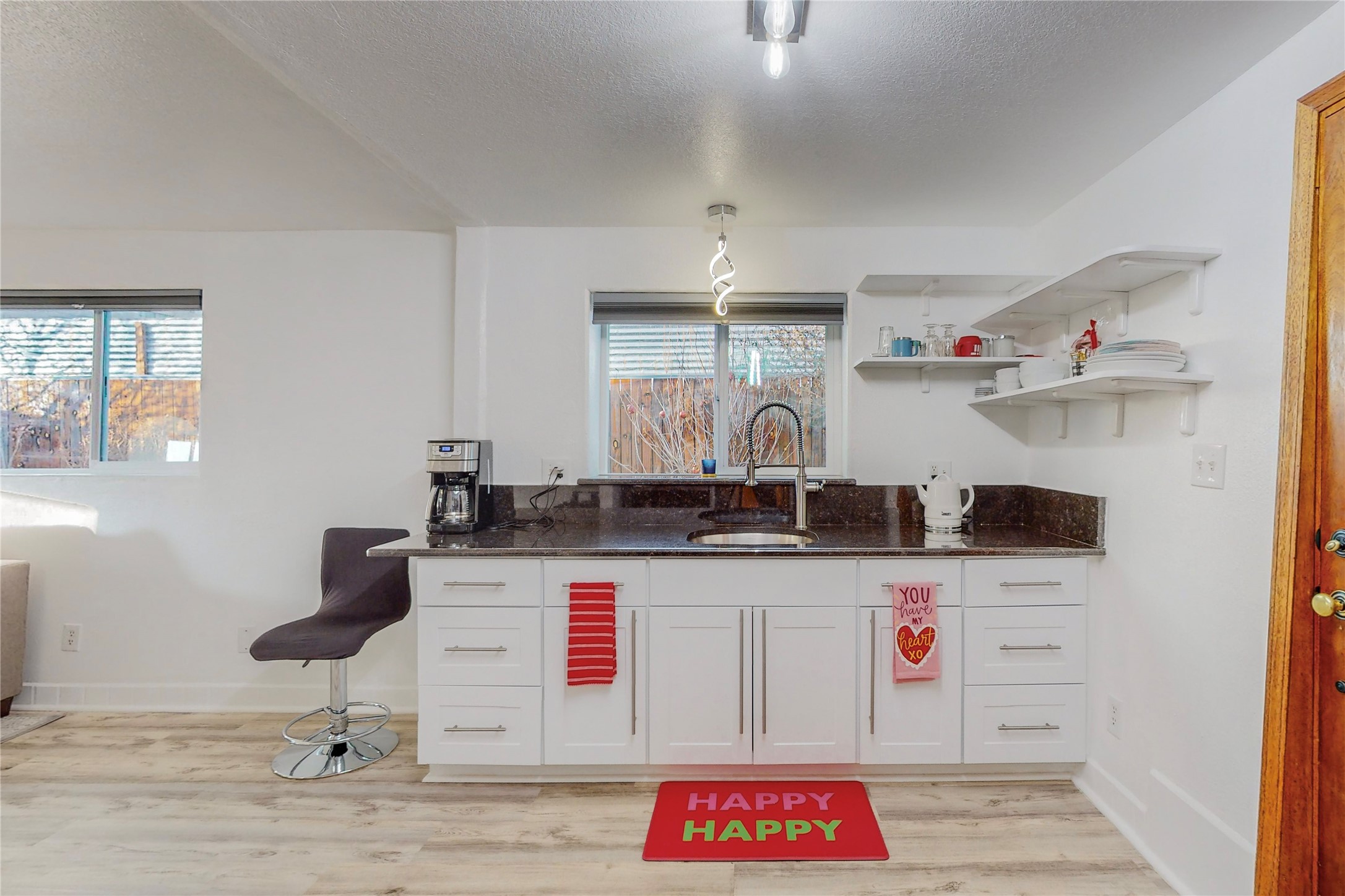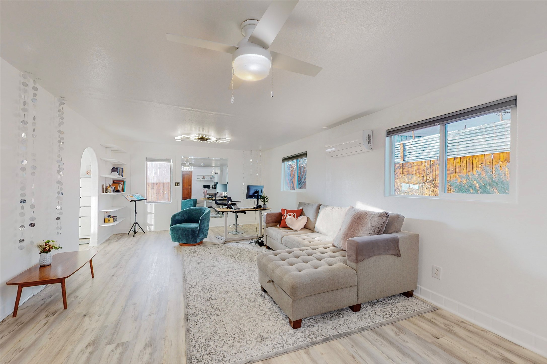 Welcome to this fabulous area! VIRTUAL TOUR of COMPOUND & STRUCTURES ARE A MUST SEE (2 Homes +++). Discover the opportunity to live and work from home. Experience a mature inner city oasis complete with space for cottage industry, creative living. Downtown compound features a traditional railyard 2 bedroom home, 1650 SF new build adobe w/12' ceilings, spectacular lighting, wide open space and its own address. 2 oversized Reynor doors allow easy access for larger projects. A second 2 room historical adobe is equip with enough electricity to run your table saw, kiln or other power tools with ease. Enjoy 2 oversized outdoor patios perfect for enjoying family cookouts, a garden shed and paved B-Ball court. Rejuvenate in your custom built, cedar sauna & Jacuzzi tub. Come for the sustainability.