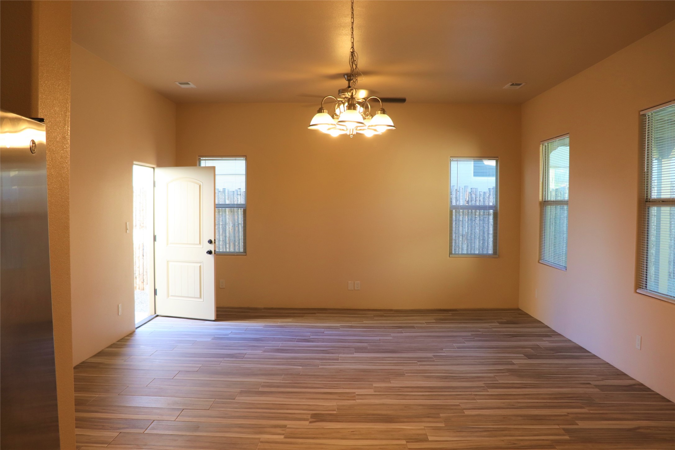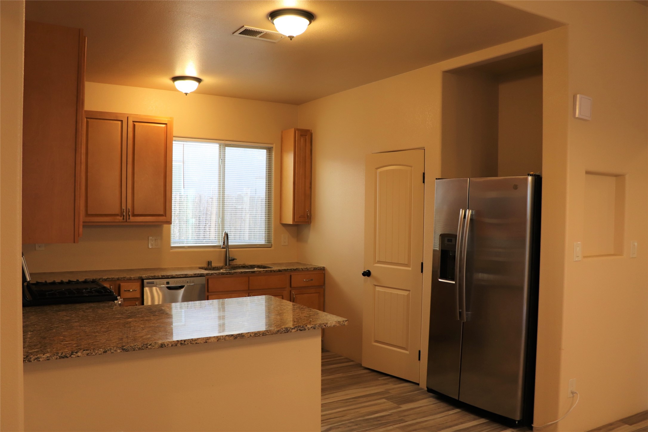 Like New and Available Now! Built in 2019, this single level, modern, one owner, fully fenced, landscaped, freestanding Santa Fe Home has 3 Bedrooms, 2 Full Baths, and an attached, fully finished 2 car Garage with direct access. Refrigerated air conditioning, energy efficient features and easy access the Santa Fe Airport and the Santa Fe Relief Route (NM 599) from I-25 to US-84/285. No inside stairs, no carpet except in the bedrooms, nice finishes, Stainless Steel appliances, granite countertops, high ceilings in the living room and ready for quick possession! There's a paved alley in the back of the property that's used to access the Garage and the extra parking. Easy to show with a 24 hour notice. Schedule your showing today!