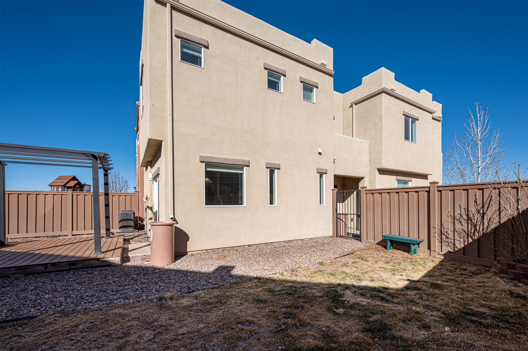 Townhouse located in the sought after Turquoise Trail Community just South of the City. Convenient location with easy access to downtown, I25 and 599 bypass. Open living space on the first level plus a half bath. Upper level has large owner suite plus two other bedrooms. Great outdoor living space for entertaining. Cozy house in a nice family oriented community. Electric vehicle ready, Owner will credit $1000 toward carpet replacement. Catch this one before it is gone.