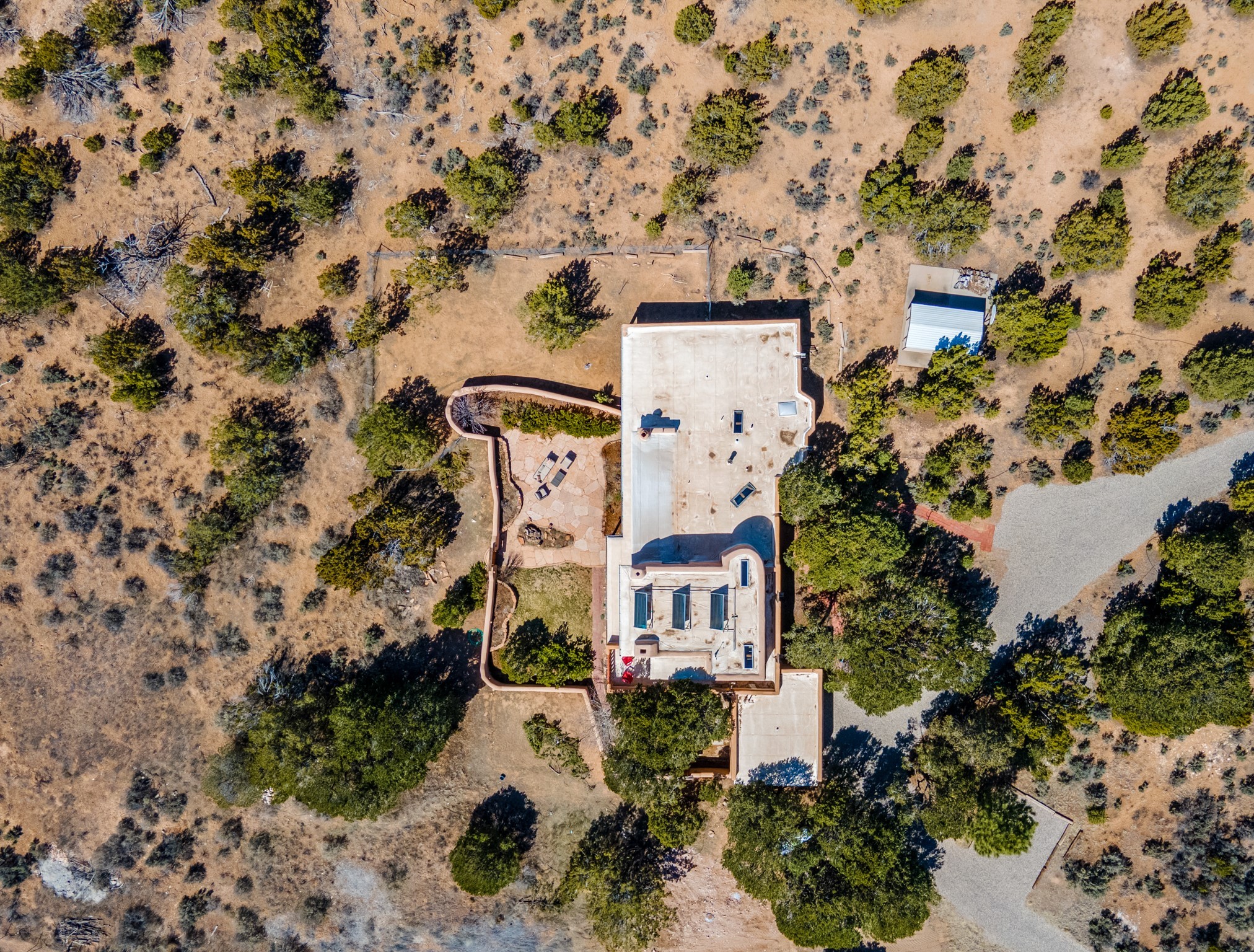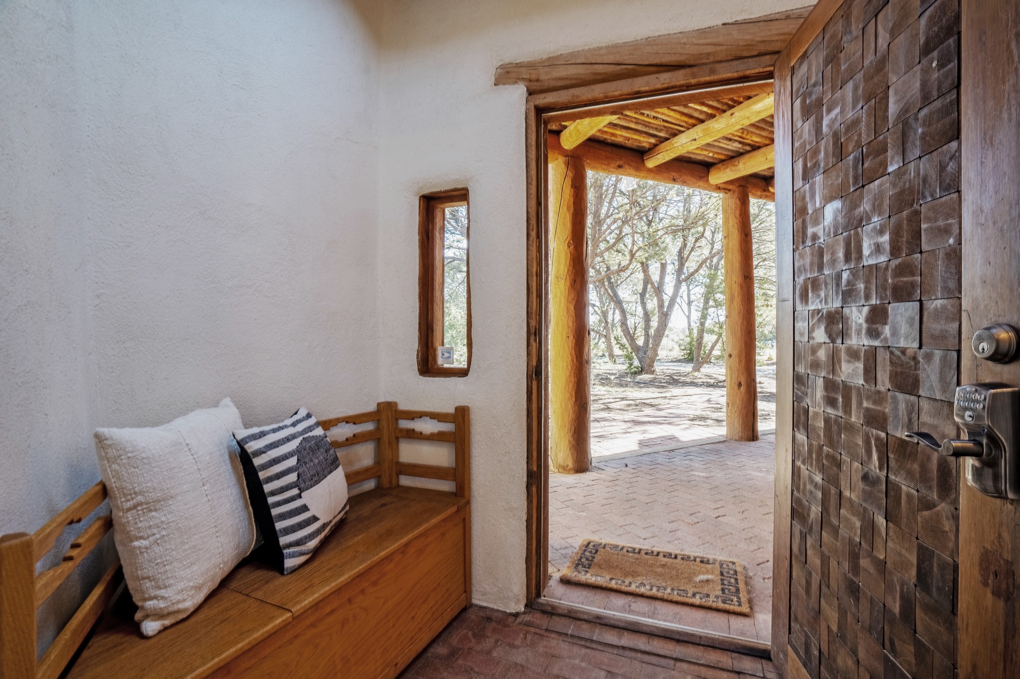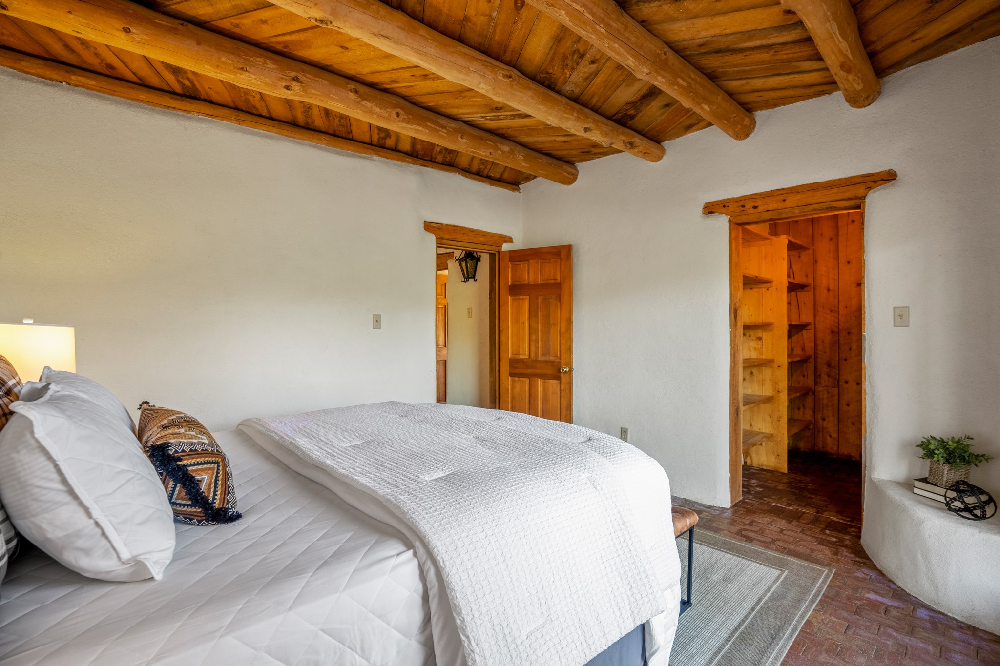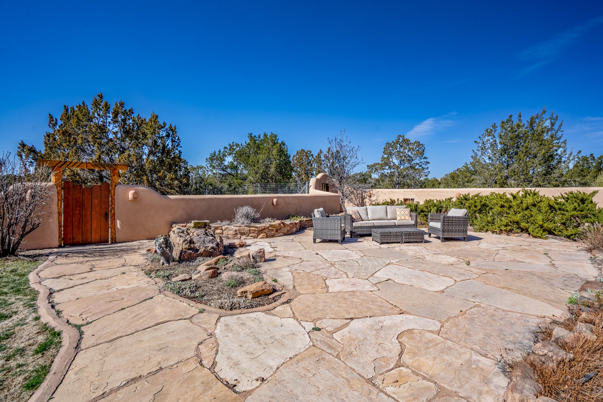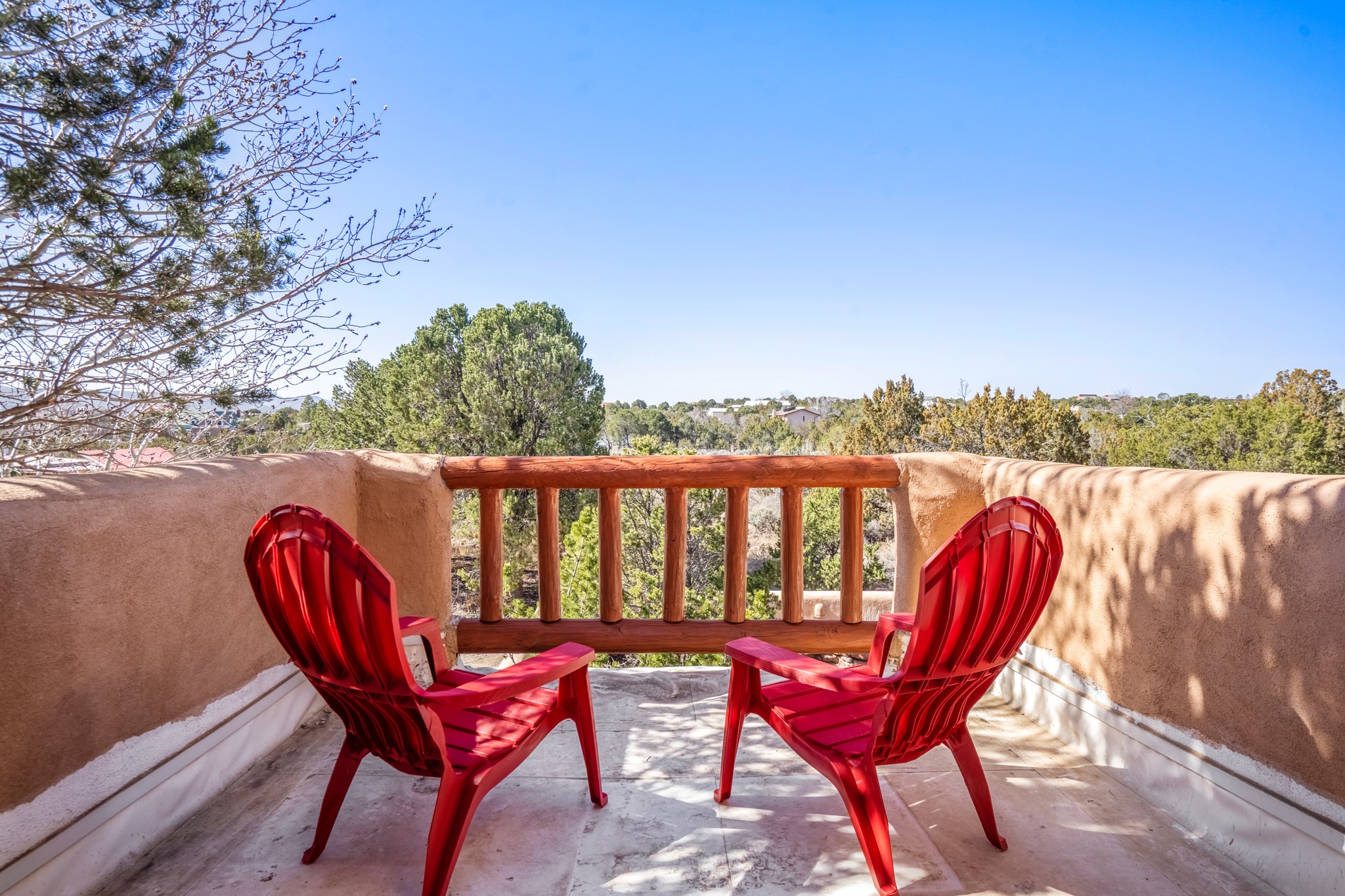True Adobe, Vigas & Exposed Beams, Kiva Fireplaces, 2.06 Acres, 4 Bedrooms, Large Sunroom, 2 Car Garage, Passive Solar Heating, Abundant Natural Light, Large Storage Shed and More! This stunning, custom 4-bedroom full adobe home sits on 2.06 acres and offers classic, high-end Santa Fe style right here in Los Alamos County. A custom front door and foyer greet you upon entering the home, and you will immediately notice the red brick floors and viga ceilings. Each room features a different custom viga ceiling for added charm. The kitchen features an island with a built-in eating area, gas cooking, lofted ceiling with large clerestories, and walk-out access to the patio for indoor/outdoor entertaining. The grand dining room features floor-to-ceiling windows, a pass-through window to the kitchen, and a kiva fireplace to create a warm, intimate setting for your fine dining experience. The living room features hardwood floors and a large kiva fireplace. A large sunroom with south-facing, floor-to-ceiling windows wraps around the living room and provides you with the opportunity to grow bountiful plants and potted trees throughout the year, or simply to enjoy a good book while soaking up the sunshine. A large, private study and second living space are found on the east side of the first floor, and the room accentuates the beauty of the adobe home with its flowing lines. Two large bedrooms, each featuring a walk-in closet, along with an updated bathroom round out the first floor. The primary suite is located on the second floor, accessed by a spiral cedar staircase. The suite consists of the bedroom, walk-in closet, and bathroom. The room opens onto the deck, which offers great views of the surrounding area. A fourth bedroom, which could be used as an additional home office, completes the second floor. Outside, you will enjoy sunrises, sunsets, and dark, starlit nights from your private yard featuring a flagstone patio. An adjacent, fully-fenced dog yard completes the package. The sellers plan to review offers on Wednesday, April 19, so schedule your showing today!