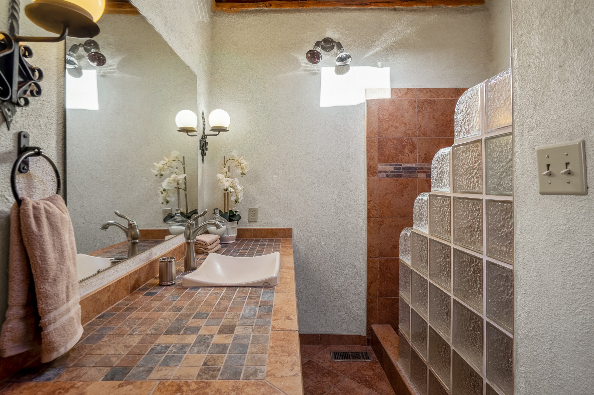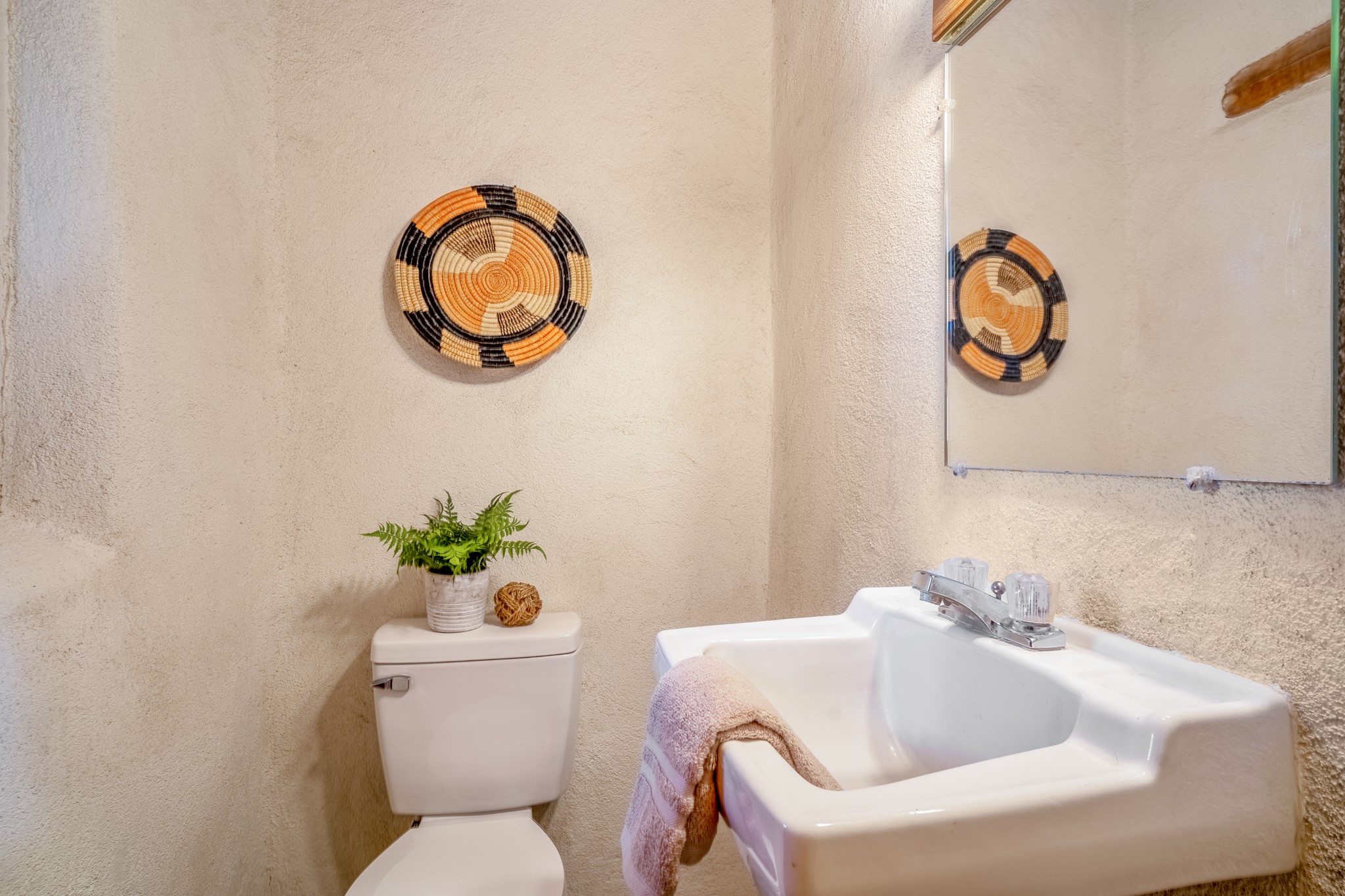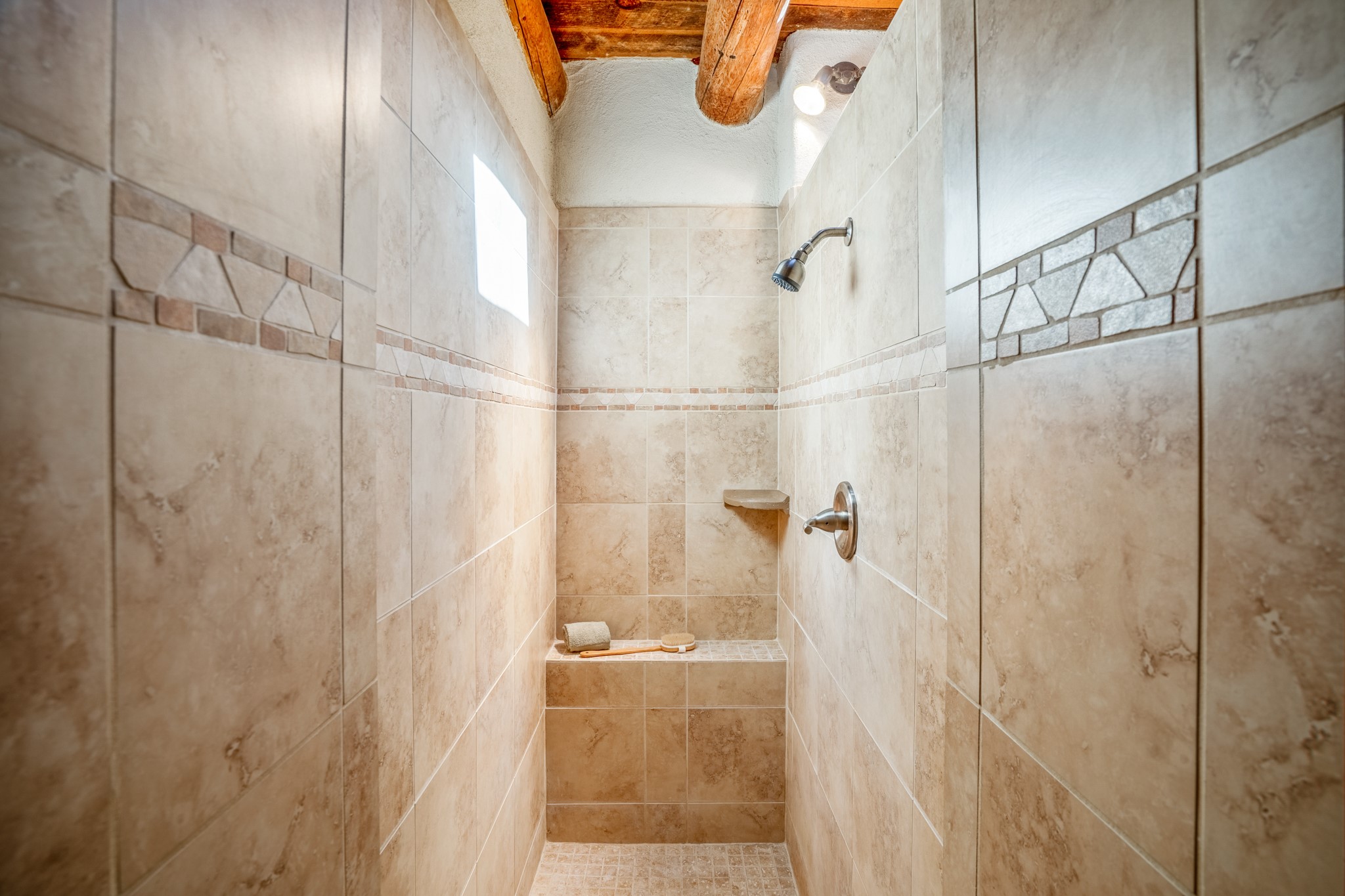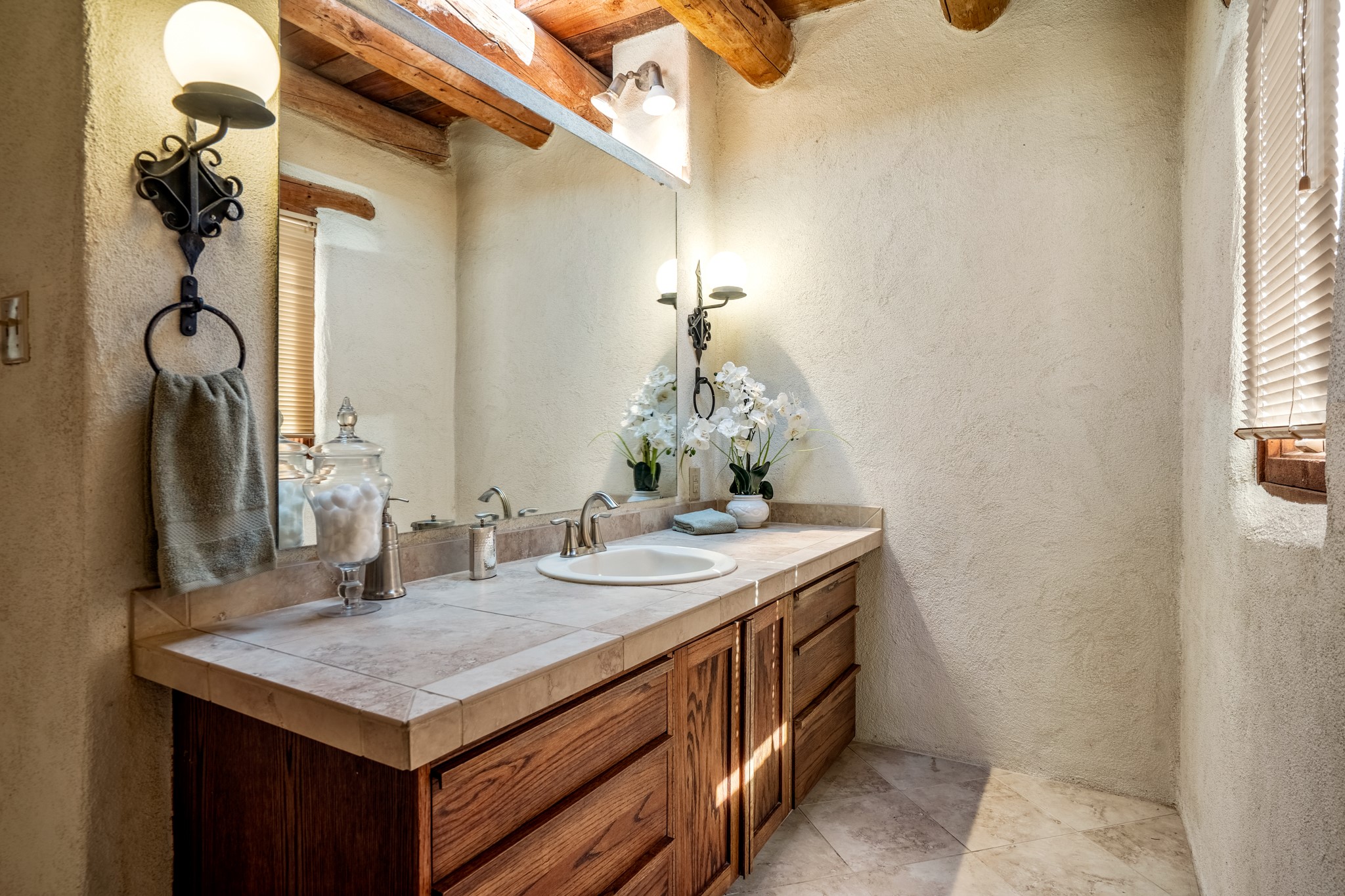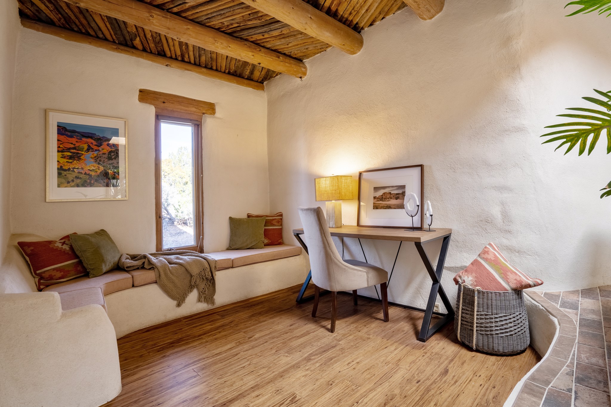 True Adobe, Vigas & Exposed Beams, Kiva Fireplaces, 2.06 Acres, 4 Bedrooms, Large Sunroom, 2 Car Garage, Passive Solar Heating, Abundant Natural Light, Large Storage Shed and More! This stunning, custom 4-bedroom full adobe home sits on 2.06 acres and offers classic, high-end Santa Fe style right here in Los Alamos County. A custom front door and foyer greet you upon entering the home, and you will immediately notice the red brick floors and viga ceilings. Each room features a different custom viga ceiling for added charm. The kitchen features an island with a built-in eating area, gas cooking, lofted ceiling with large clerestories, and walk-out access to the patio for indoor/outdoor entertaining. The grand dining room features floor-to-ceiling windows, a pass-through window to the kitchen, and a kiva fireplace to create a warm, intimate setting for your fine dining experience. The living room features hardwood floors and a large kiva fireplace. A large sunroom with south-facing, floor-to-ceiling windows wraps around the living room and provides you with the opportunity to grow bountiful plants and potted trees throughout the year, or simply to enjoy a good book while soaking up the sunshine. A large, private study and second living space are found on the east side of the first floor, and the room accentuates the beauty of the adobe home with its flowing lines. Two large bedrooms, each featuring a walk-in closet, along with an updated bathroom round out the first floor. The primary suite is located on the second floor, accessed by a spiral cedar staircase. The suite consists of the bedroom, walk-in closet, and bathroom. The room opens onto the deck, which offers great views of the surrounding area. A fourth bedroom, which could be used as an additional home office, completes the second floor. Outside, you will enjoy sunrises, sunsets, and dark, starlit nights from your private yard featuring a flagstone patio. An adjacent, fully-fenced dog yard completes the package. The sellers plan to review offers on Wednesday, April 19, so schedule your showing today!