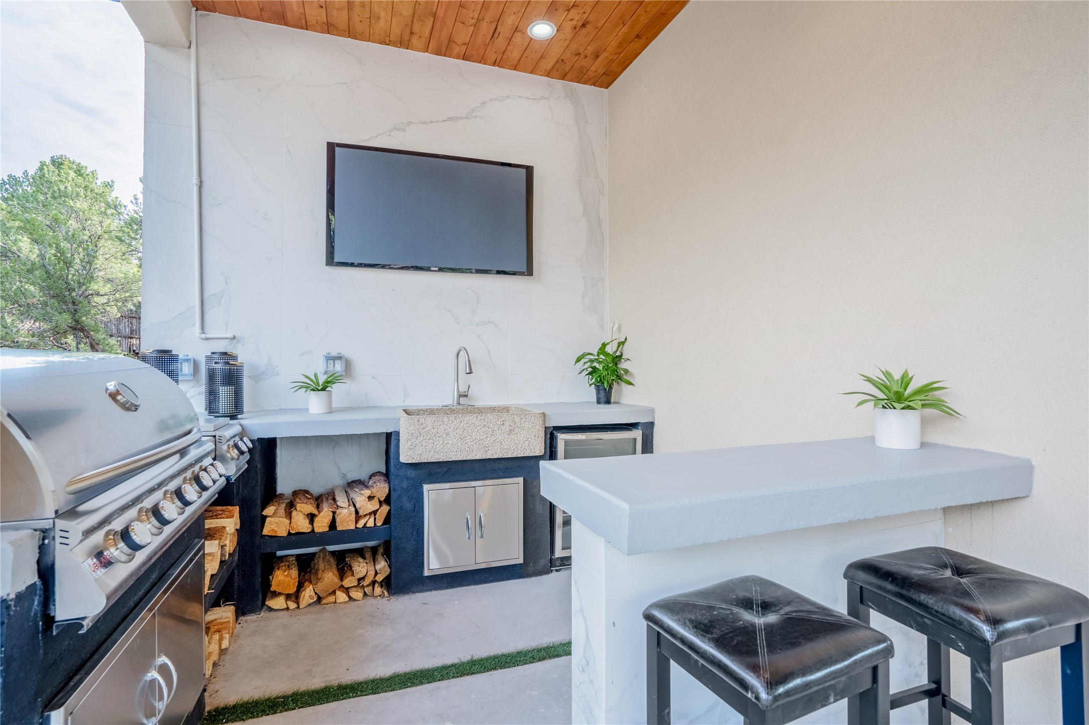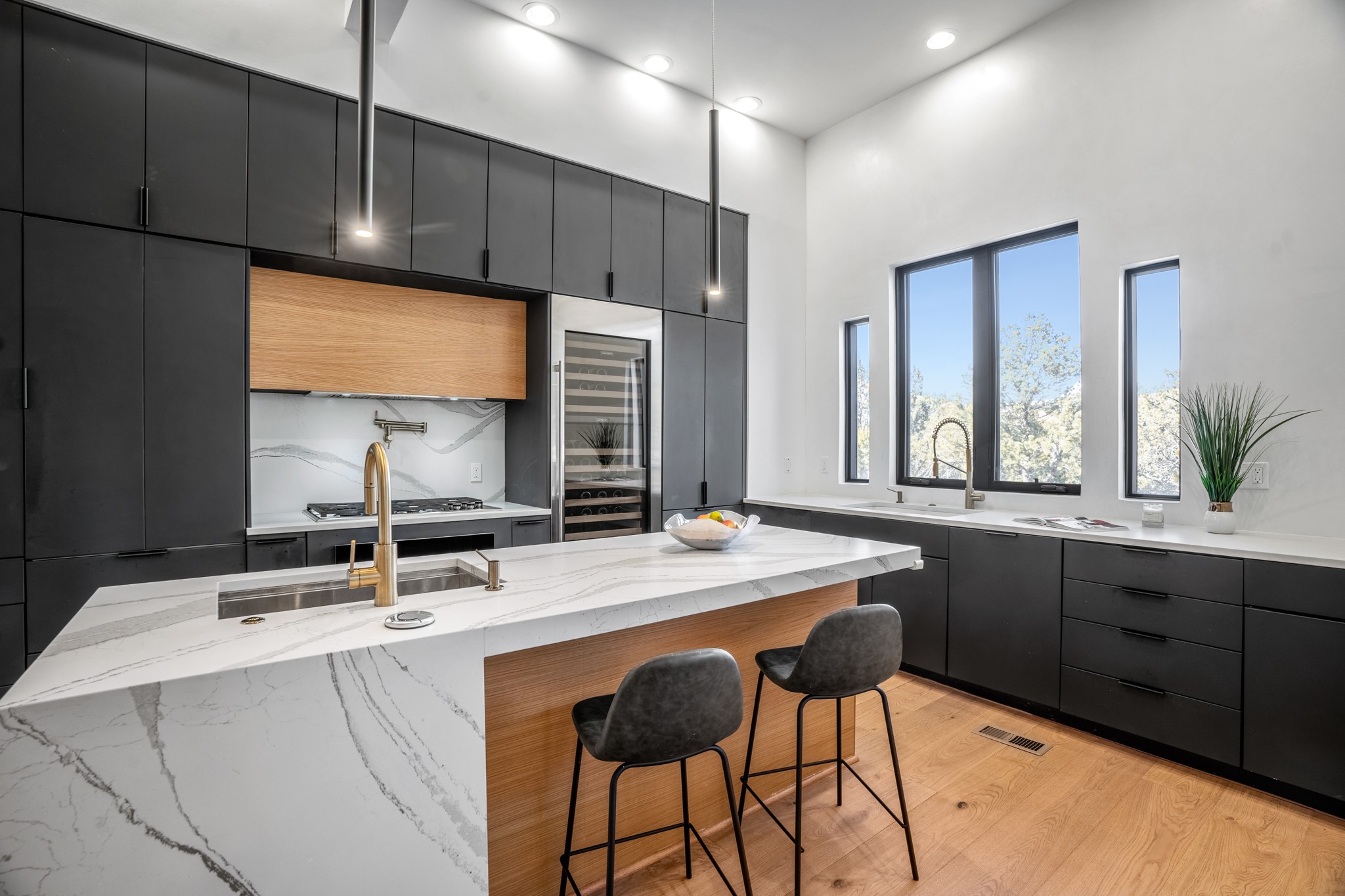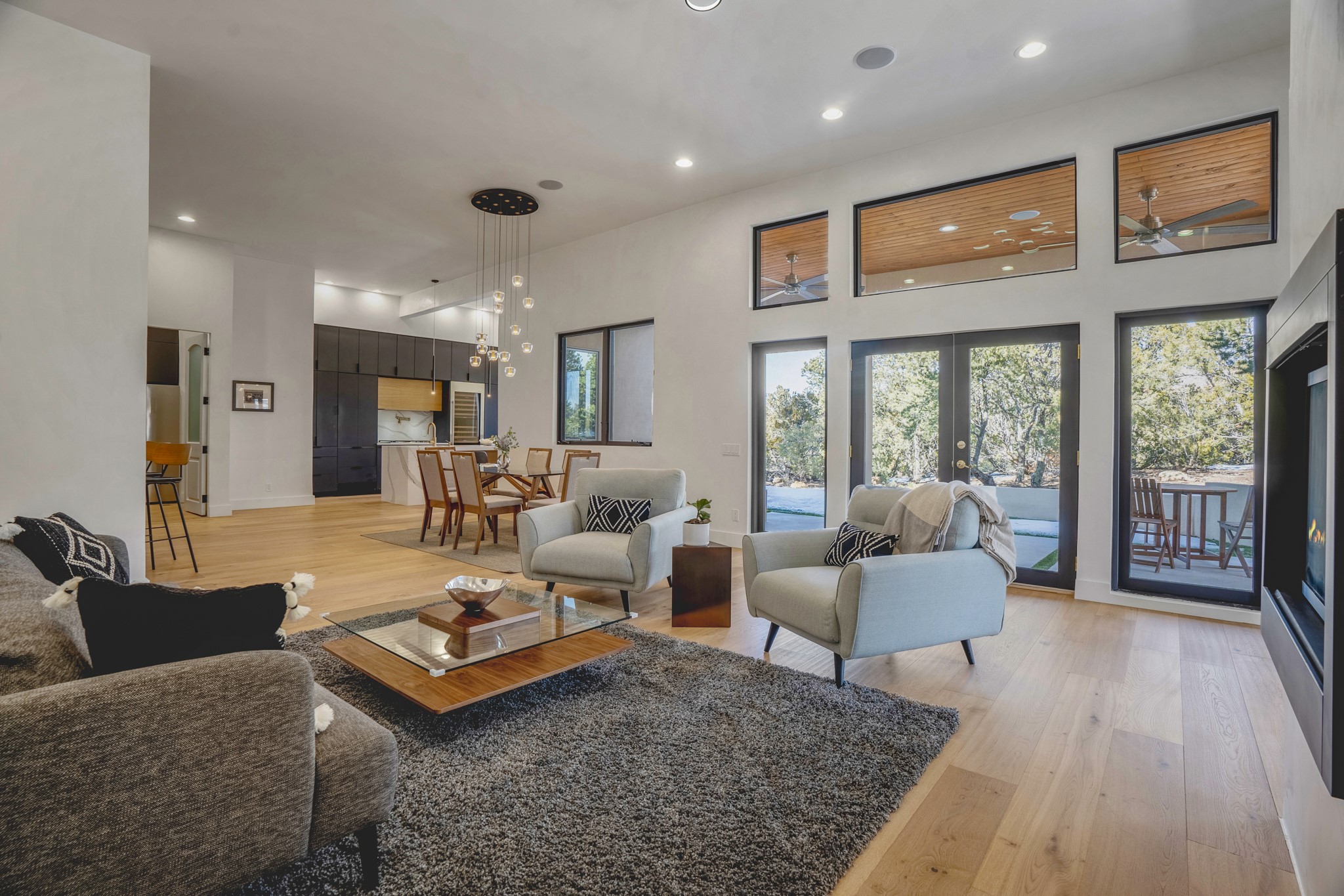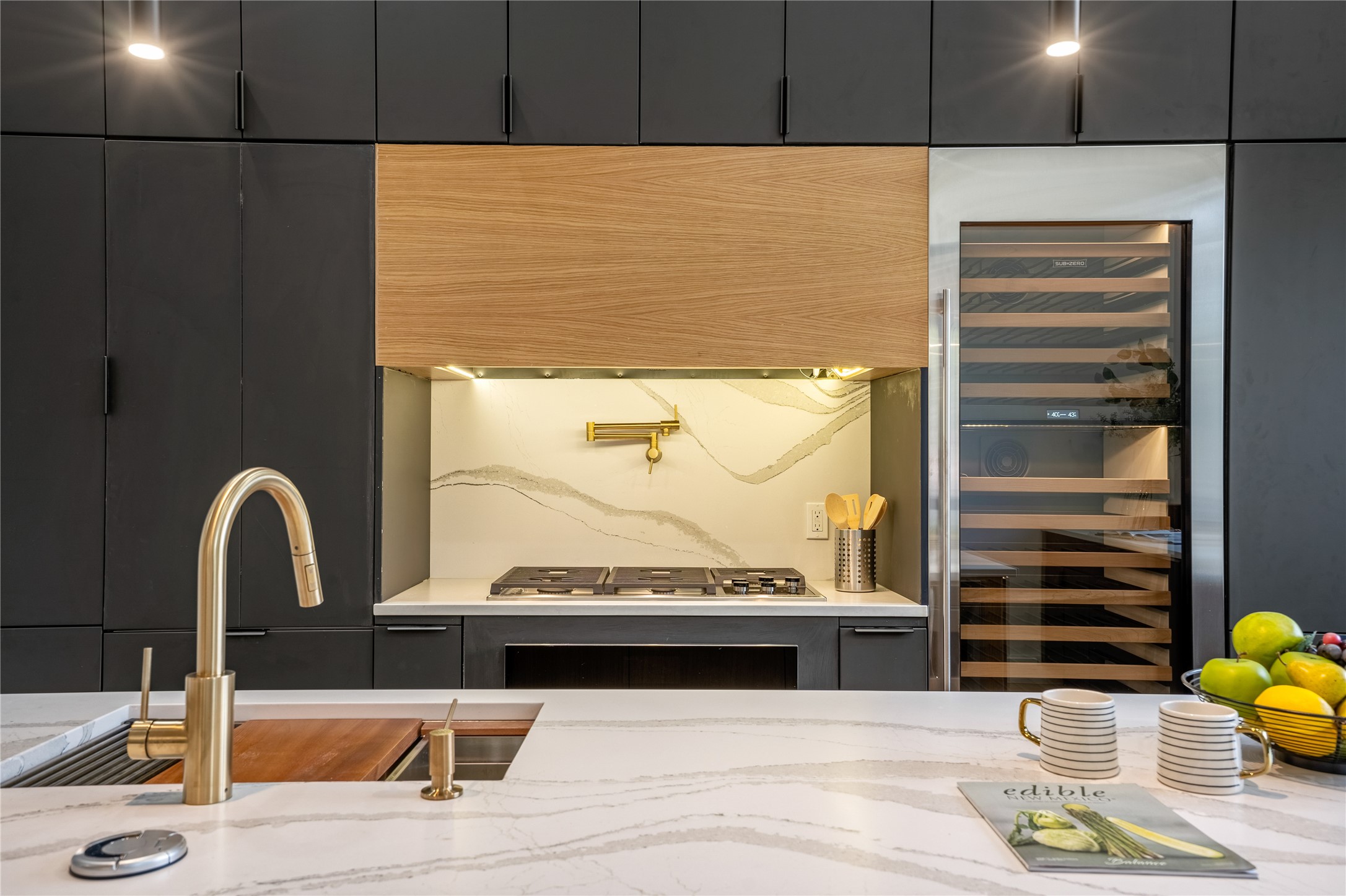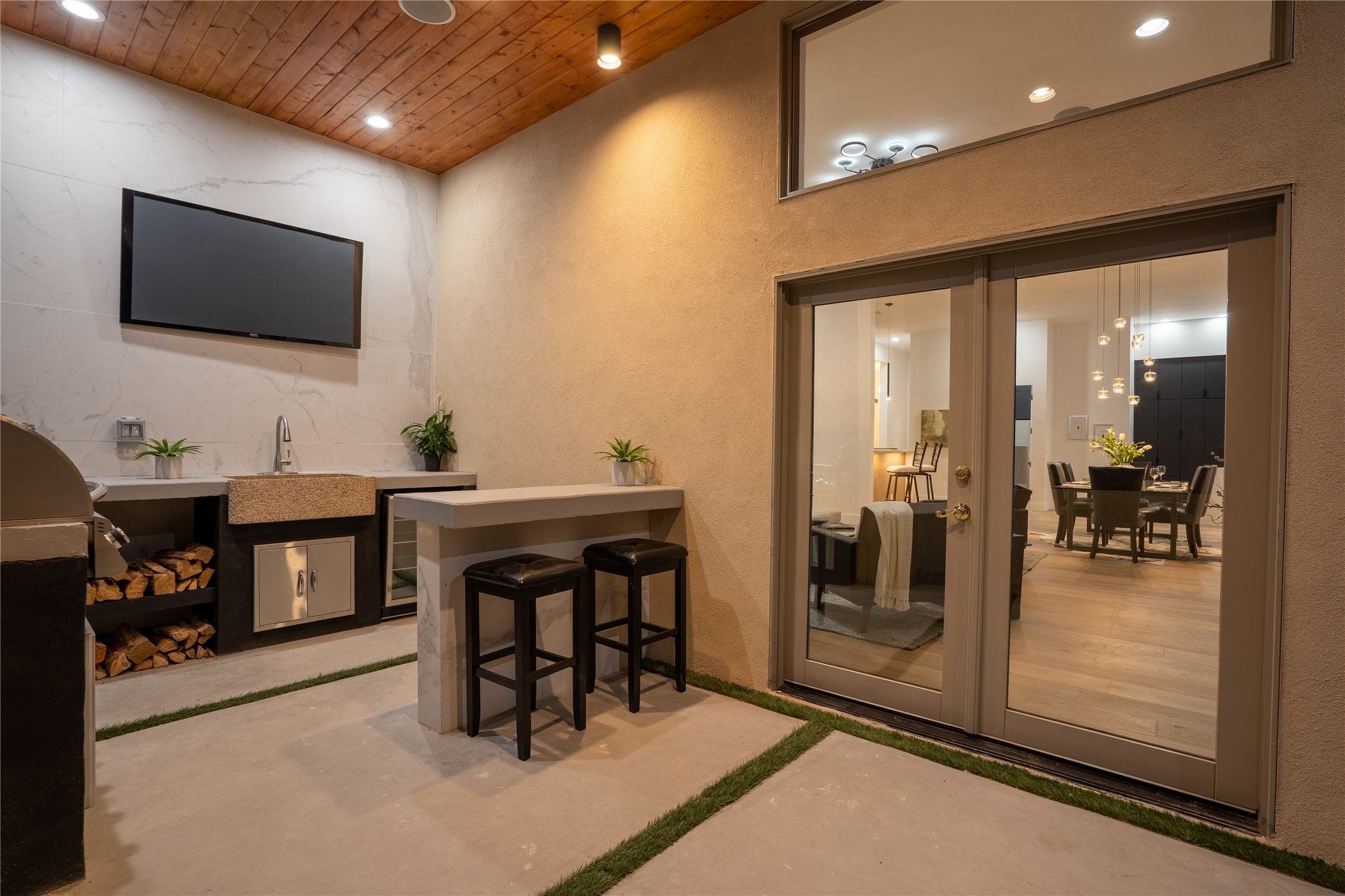 Exquisite contemporary a stone's throw from The Plaza. Luxury amenities and thoughtful details abound in this modern masterpiece. Owner's suite features a two-person steam shower, soaking tub, dual finished closets, and private portal. The grand, open-concept living space features a wet bar and chef's kitchen appointed with Sub-Zero and Wolf appliances, as well as a separate, well-appointed butler's pantry. The wrap around patio with custom outdoor kitchen, gas fire pit, and whole-house speaker system complete an entertainer's dream package. Dramatic 12ft ceilings throughout. Private and serene. This is the one you've been waiting for.