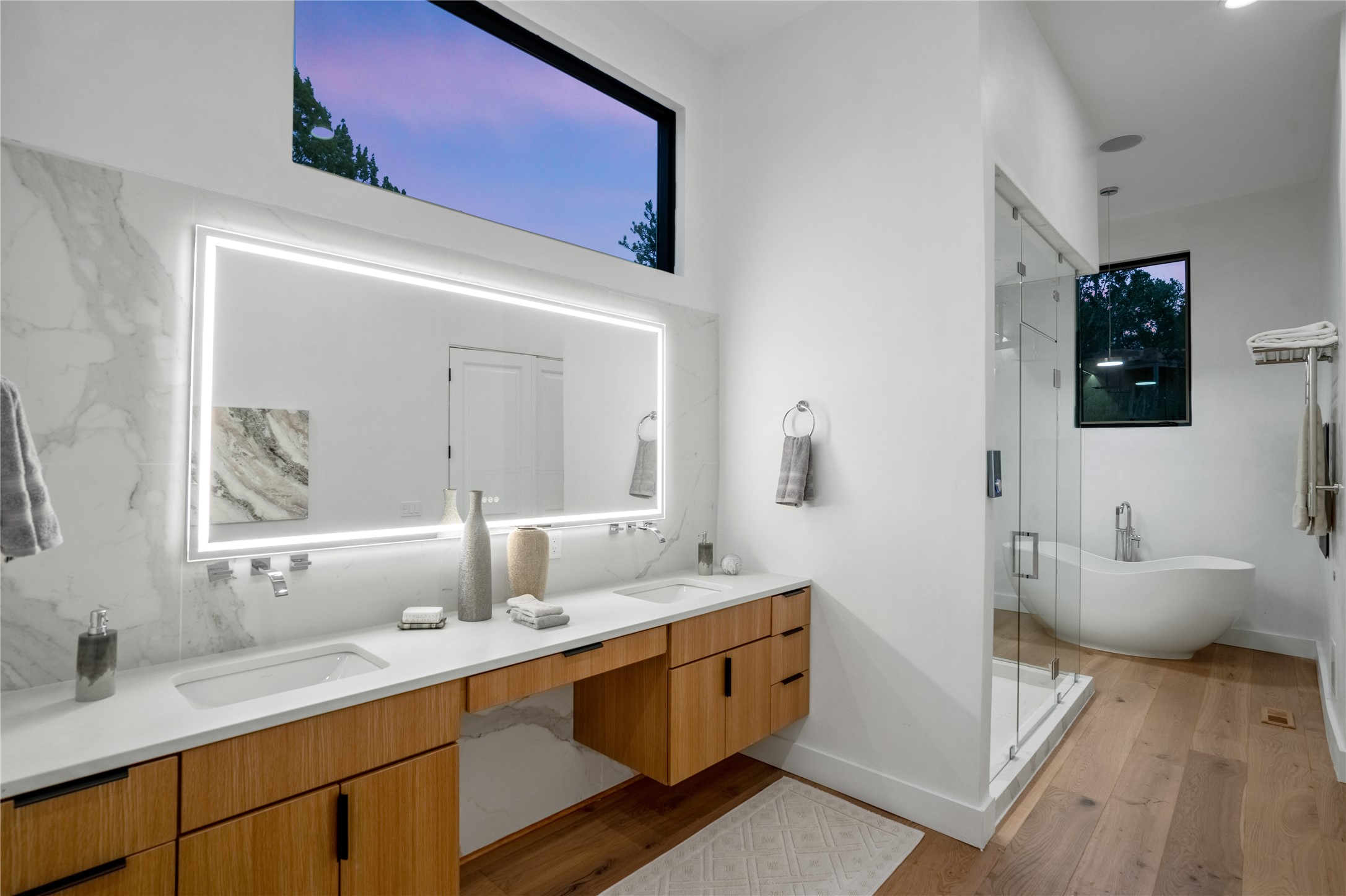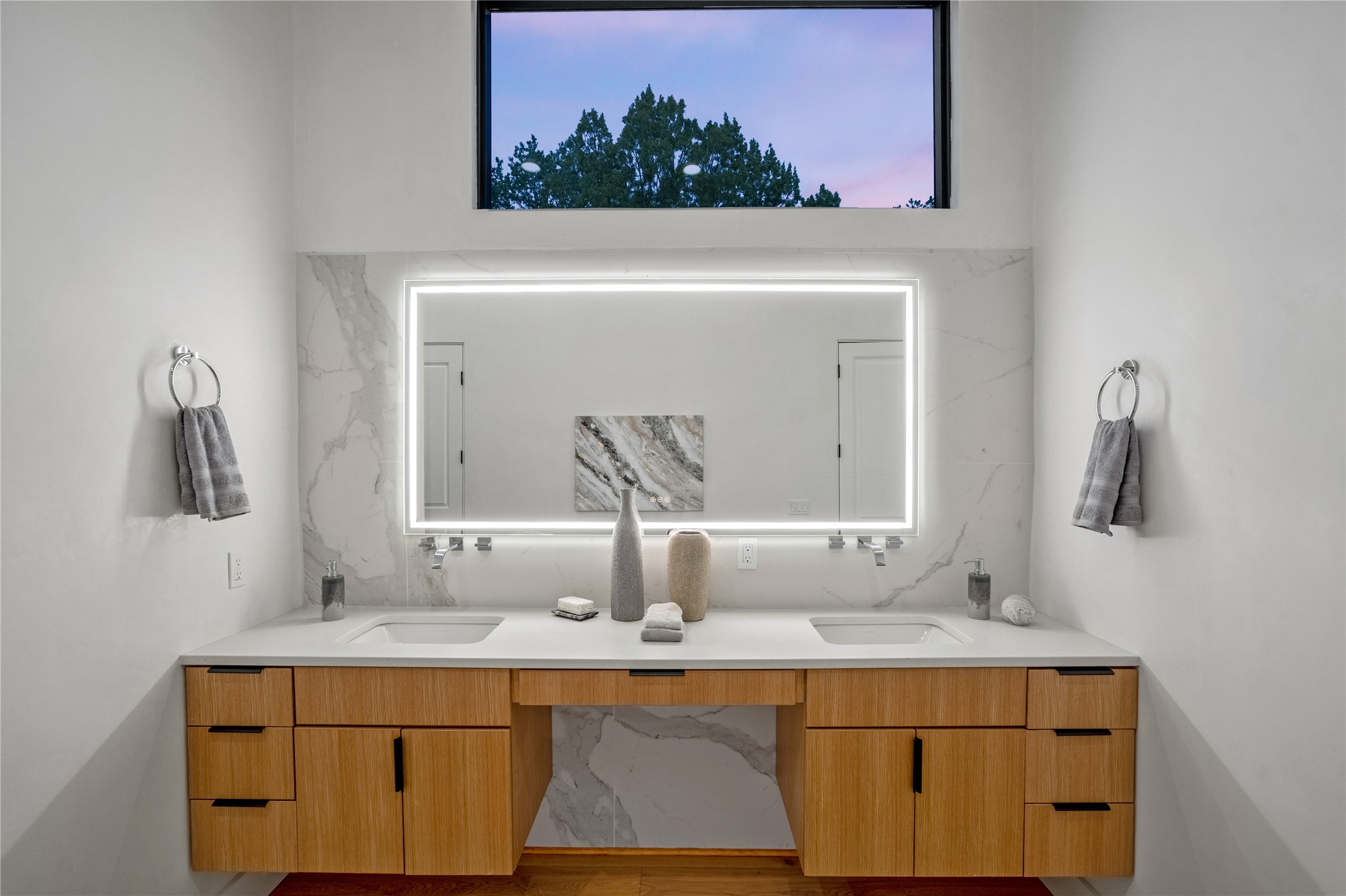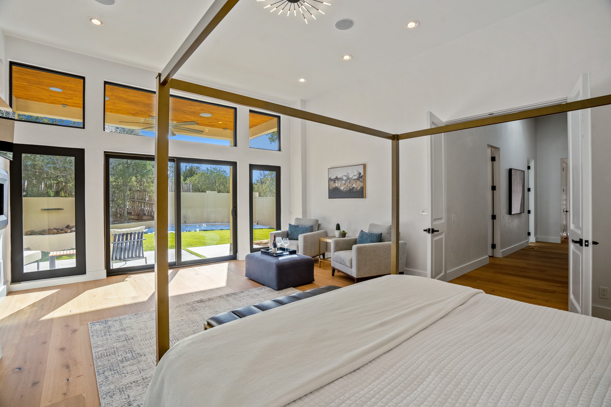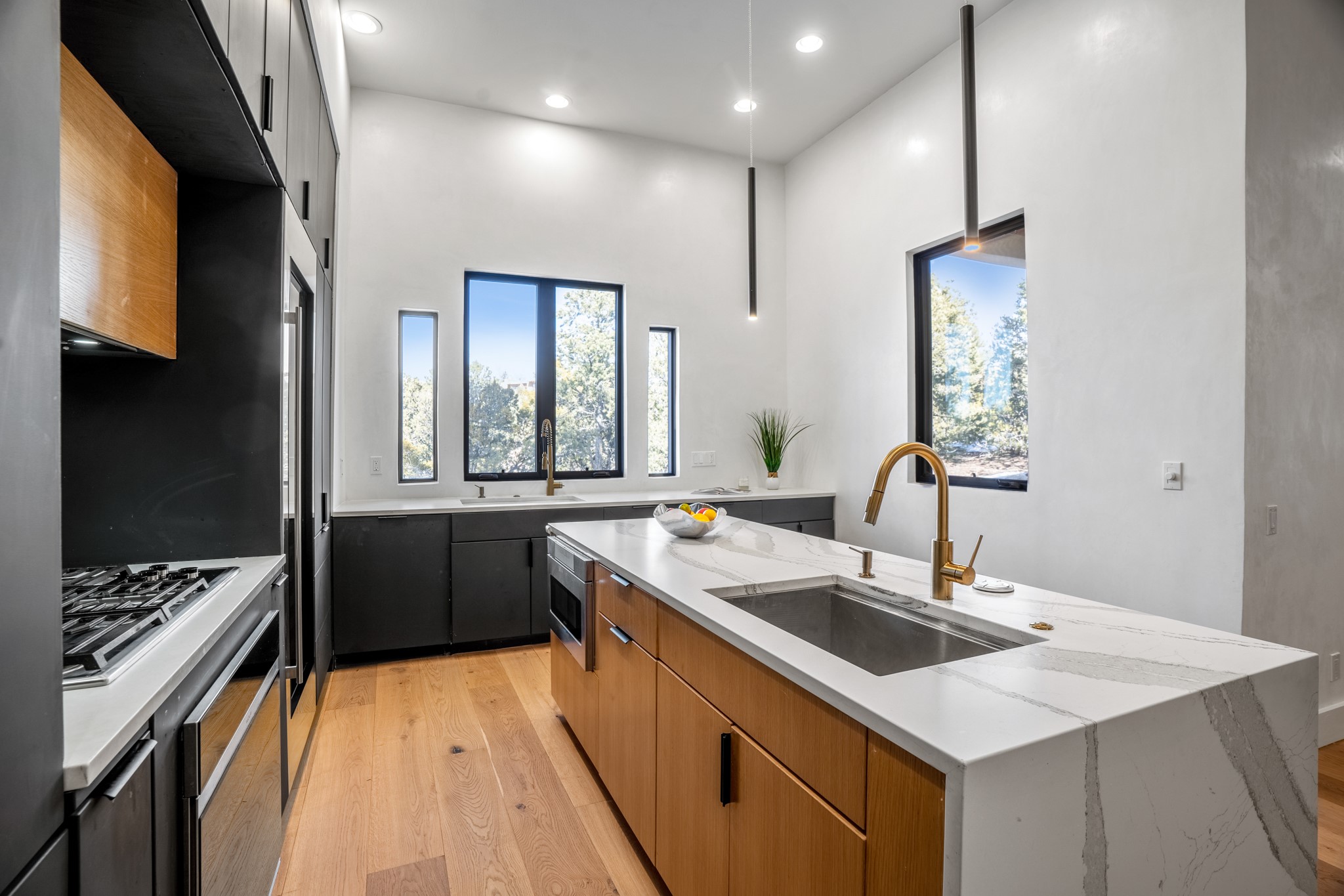 Exquisite contemporary a stone's throw from The Plaza. Luxury amenities and thoughtful details abound in this modern masterpiece. Owner's suite features a two-person steam shower, soaking tub, dual finished closets, and private portal. The grand, open-concept living space features a wet bar and chef's kitchen appointed with Sub-Zero and Wolf appliances, as well as a separate, well-appointed butler's pantry. The wrap around patio with custom outdoor kitchen, gas fire pit, and whole-house speaker system complete an entertainer's dream package. Dramatic 12ft ceilings throughout. Private and serene. This is the one you've been waiting for.