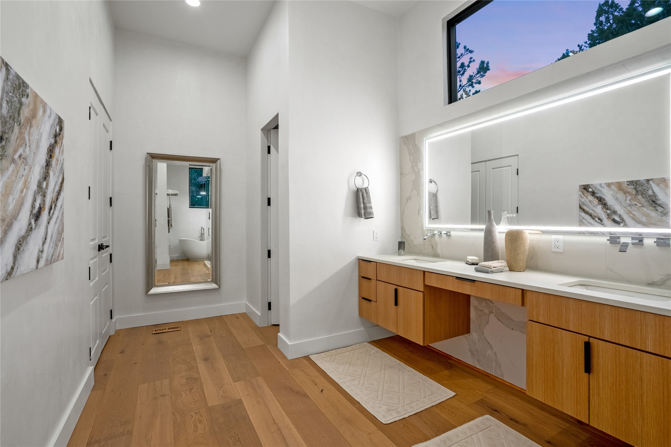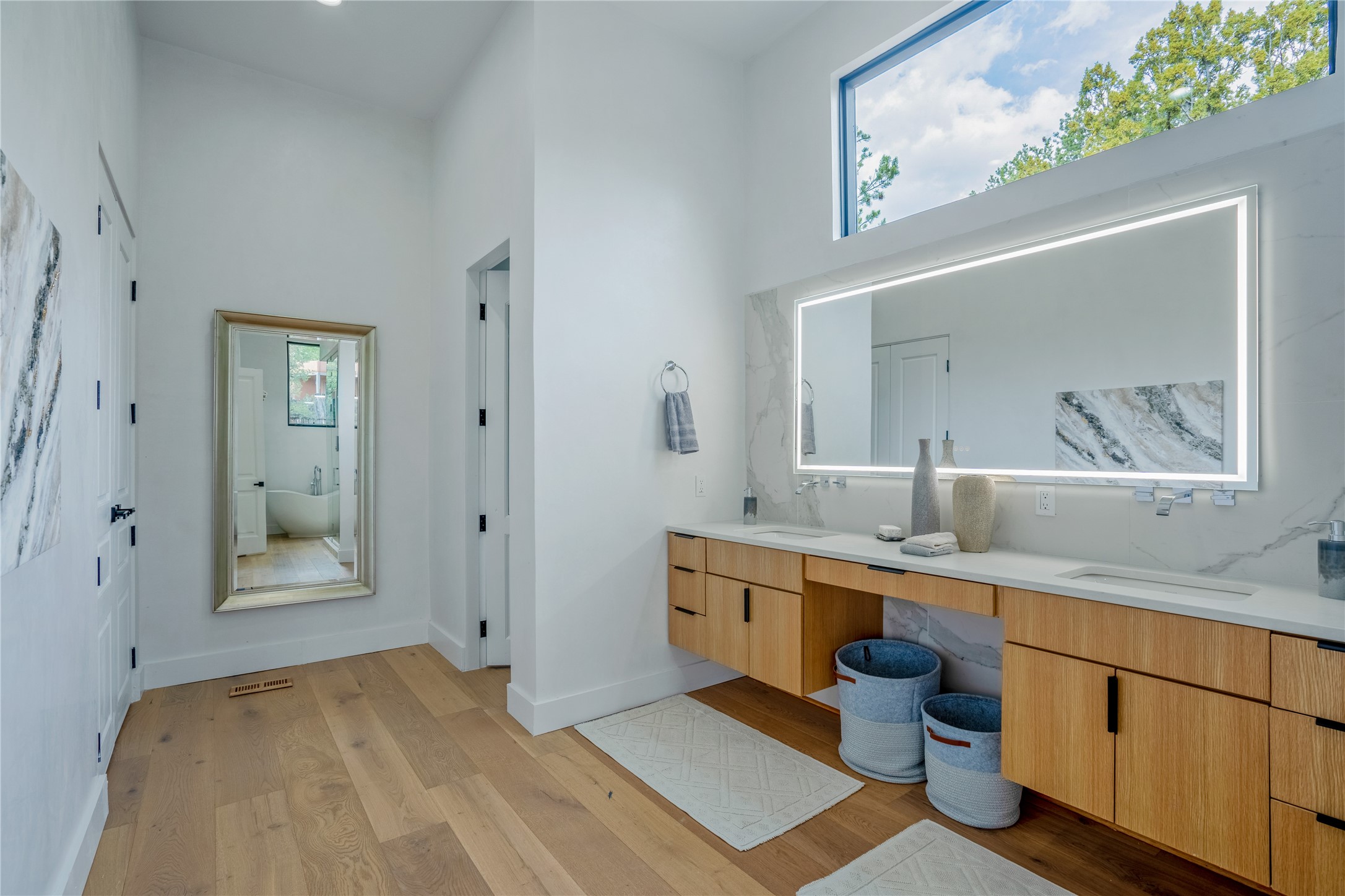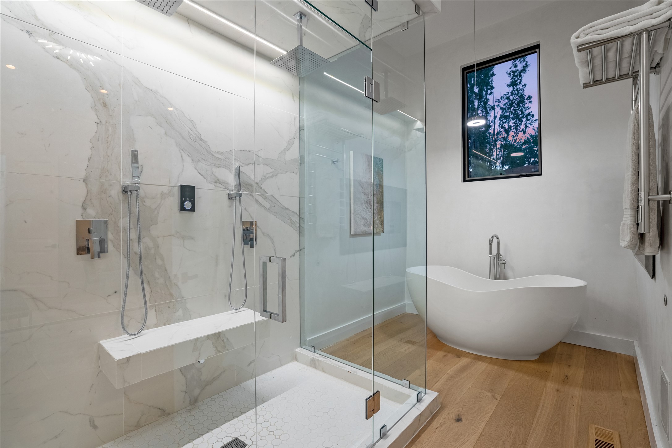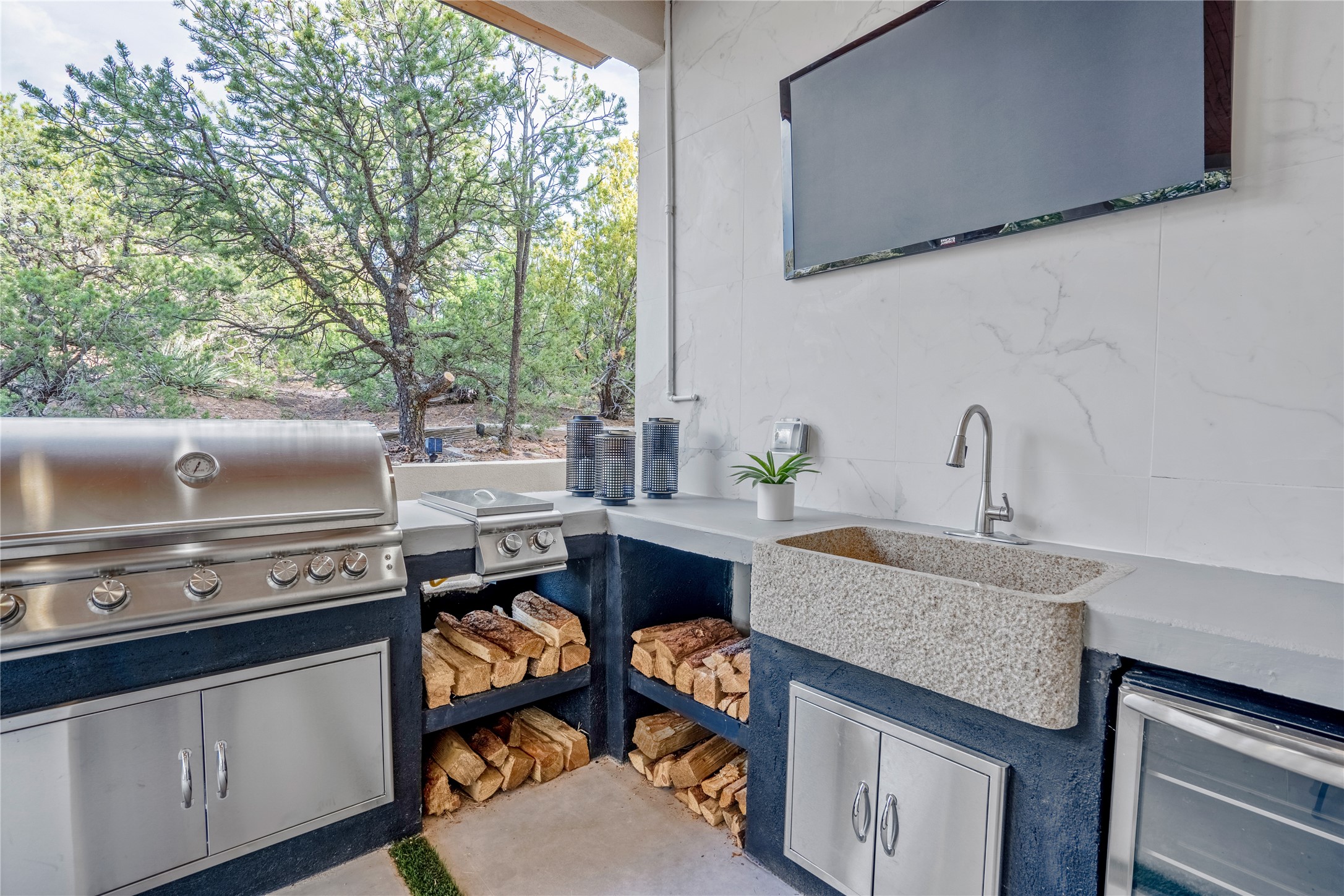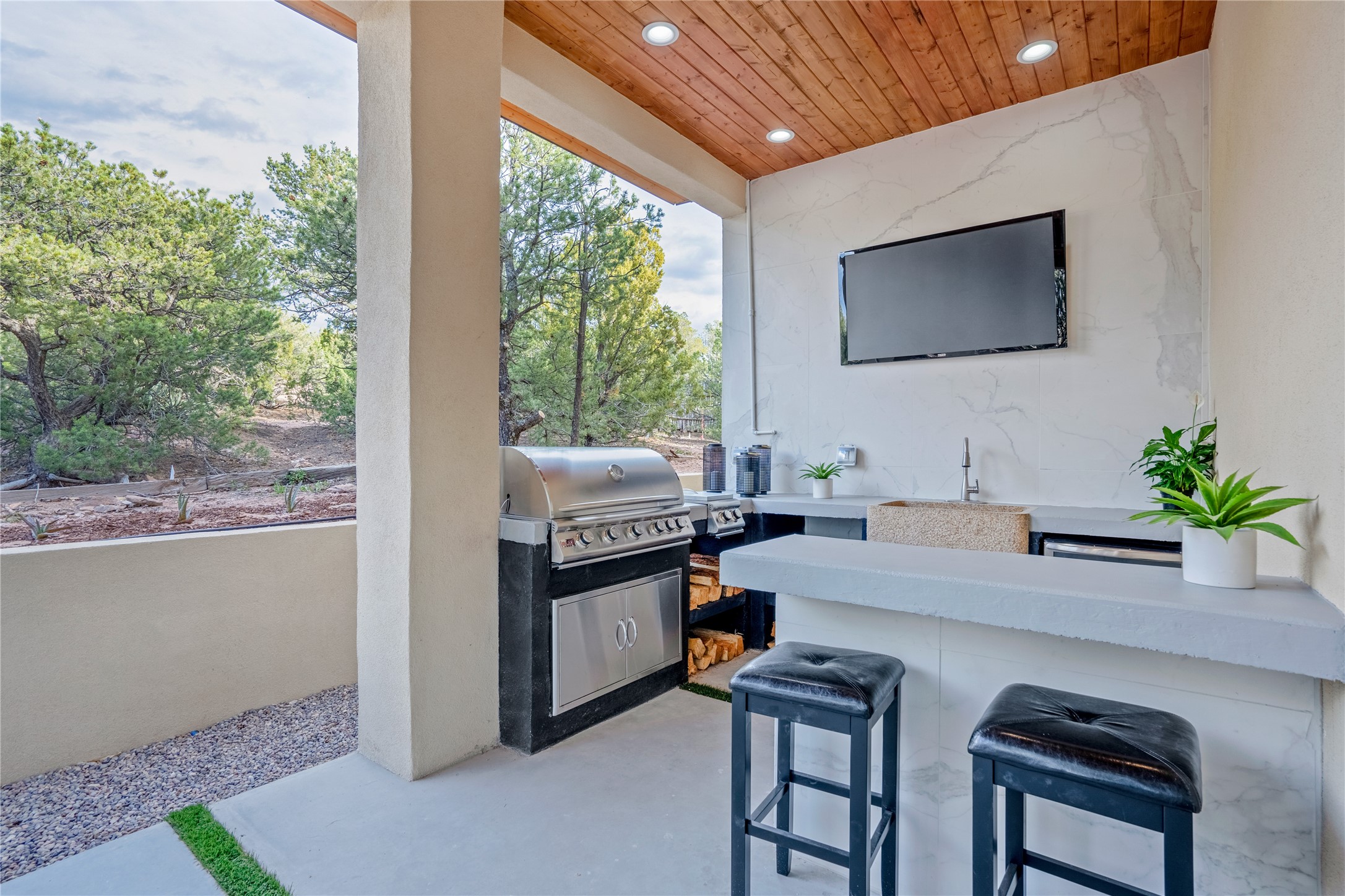 Exquisite contemporary a stone's throw from The Plaza. Luxury amenities and thoughtful details abound in this modern masterpiece. Owner's suite features a two-person steam shower, soaking tub, dual finished closets, and private portal. The grand, open-concept living space features a wet bar and chef's kitchen appointed with Sub-Zero and Wolf appliances, as well as a separate, well-appointed butler's pantry. The wrap around patio with custom outdoor kitchen, gas fire pit, and whole-house speaker system complete an entertainer's dream package. Dramatic 12ft ceilings throughout. Private and serene. This is the one you've been waiting for.