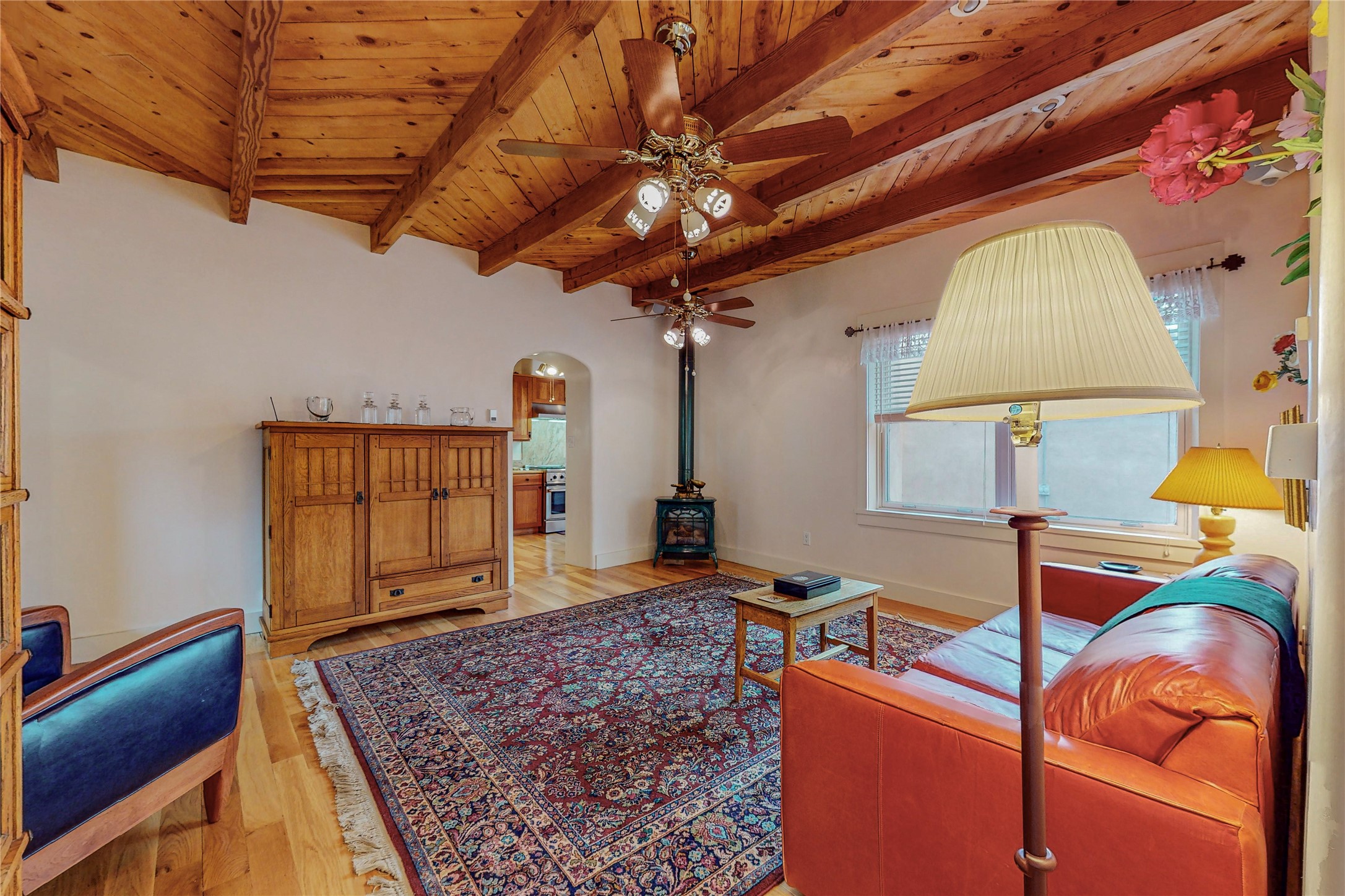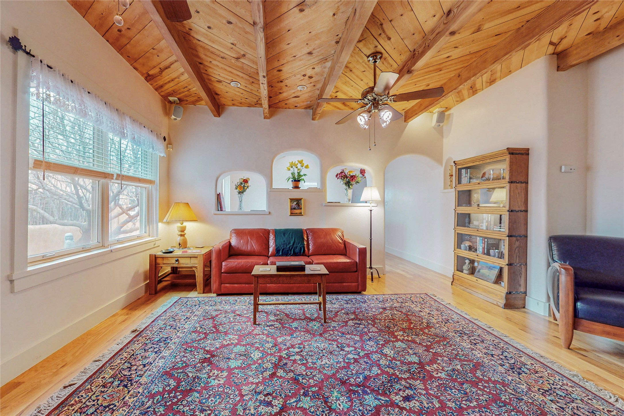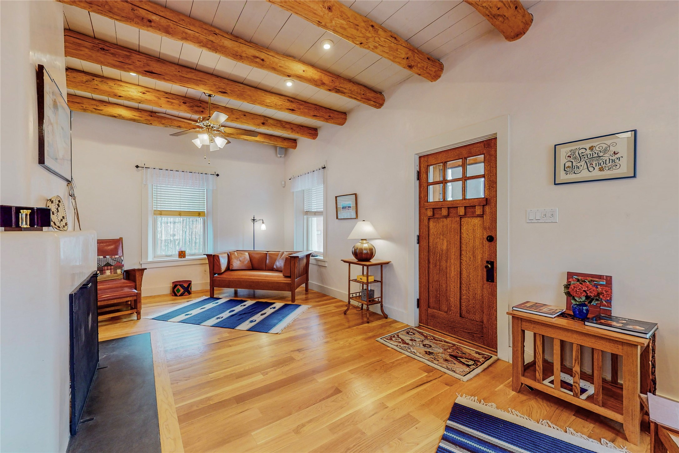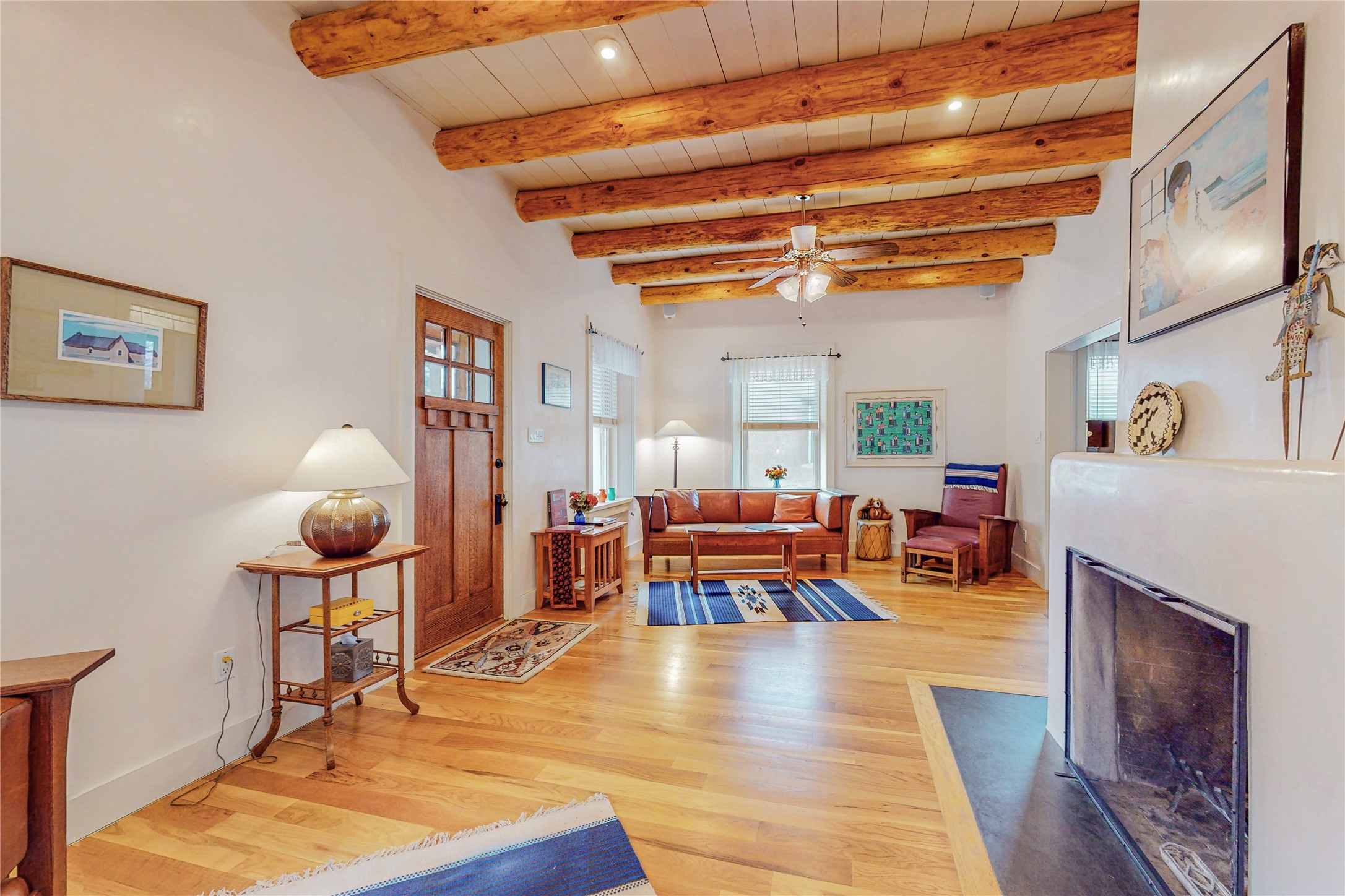 Lovely renovated home in South Capitol! 2 bedroom, 3 bath with a finished basement next to Wood Gormley. This home has the classic Santa Fe charm and has kept it's integrity with its renovation. High ceilings, Vigas, two living areas, 2 wood-burning fireplaces, 1 gas fireplace, covered front patio, mature trees, back patio, and plenty of parking with a gated entrance.