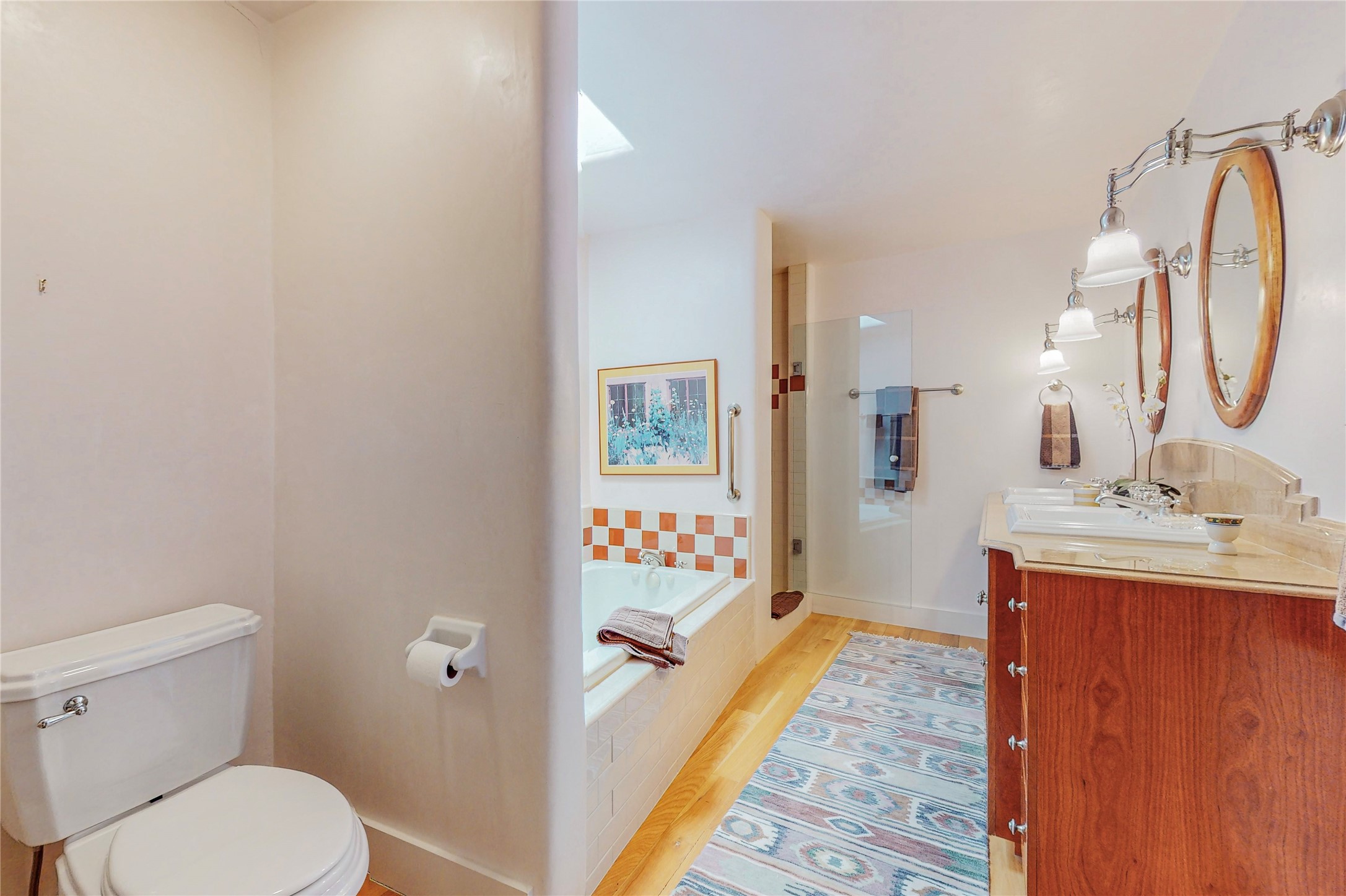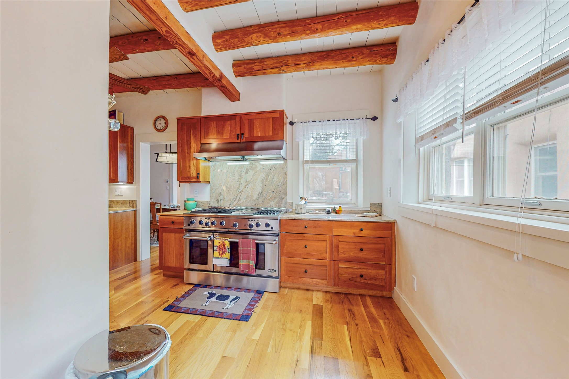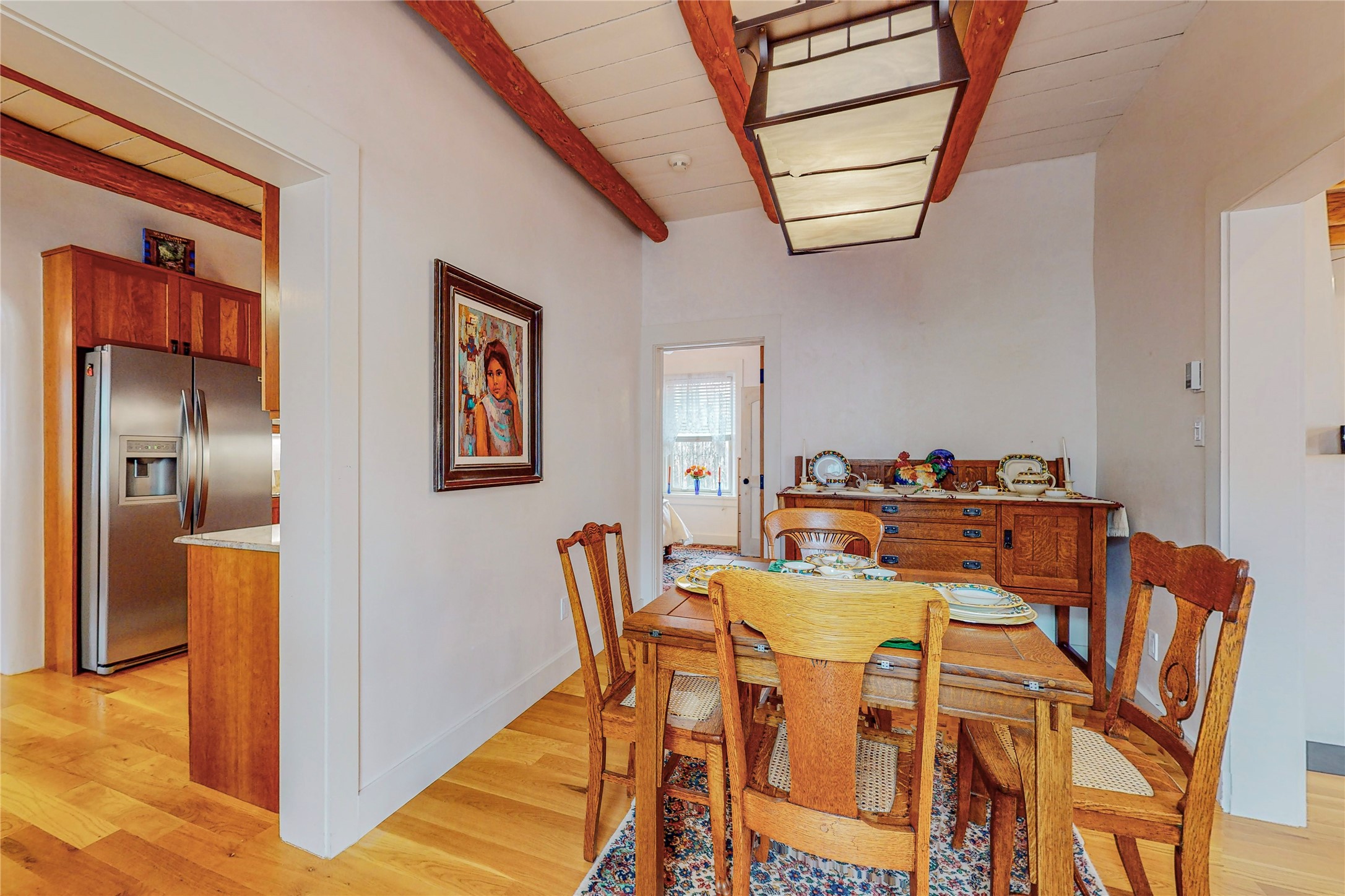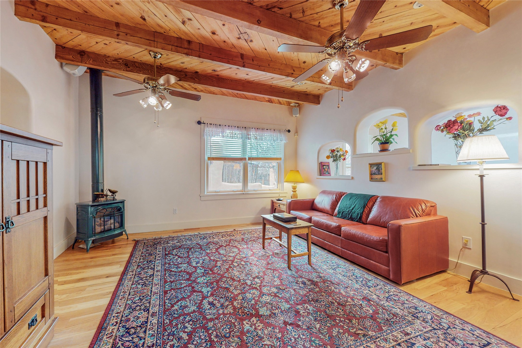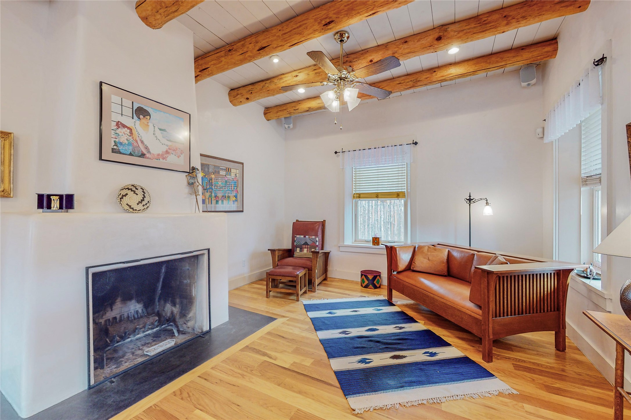 Lovely renovated home in South Capitol! 2 bedroom, 3 bath with a finished basement next to Wood Gormley. This home has the classic Santa Fe charm and has kept it's integrity with its renovation. High ceilings, Vigas, two living areas, 2 wood-burning fireplaces, 1 gas fireplace, covered front patio, mature trees, back patio, and plenty of parking with a gated entrance.