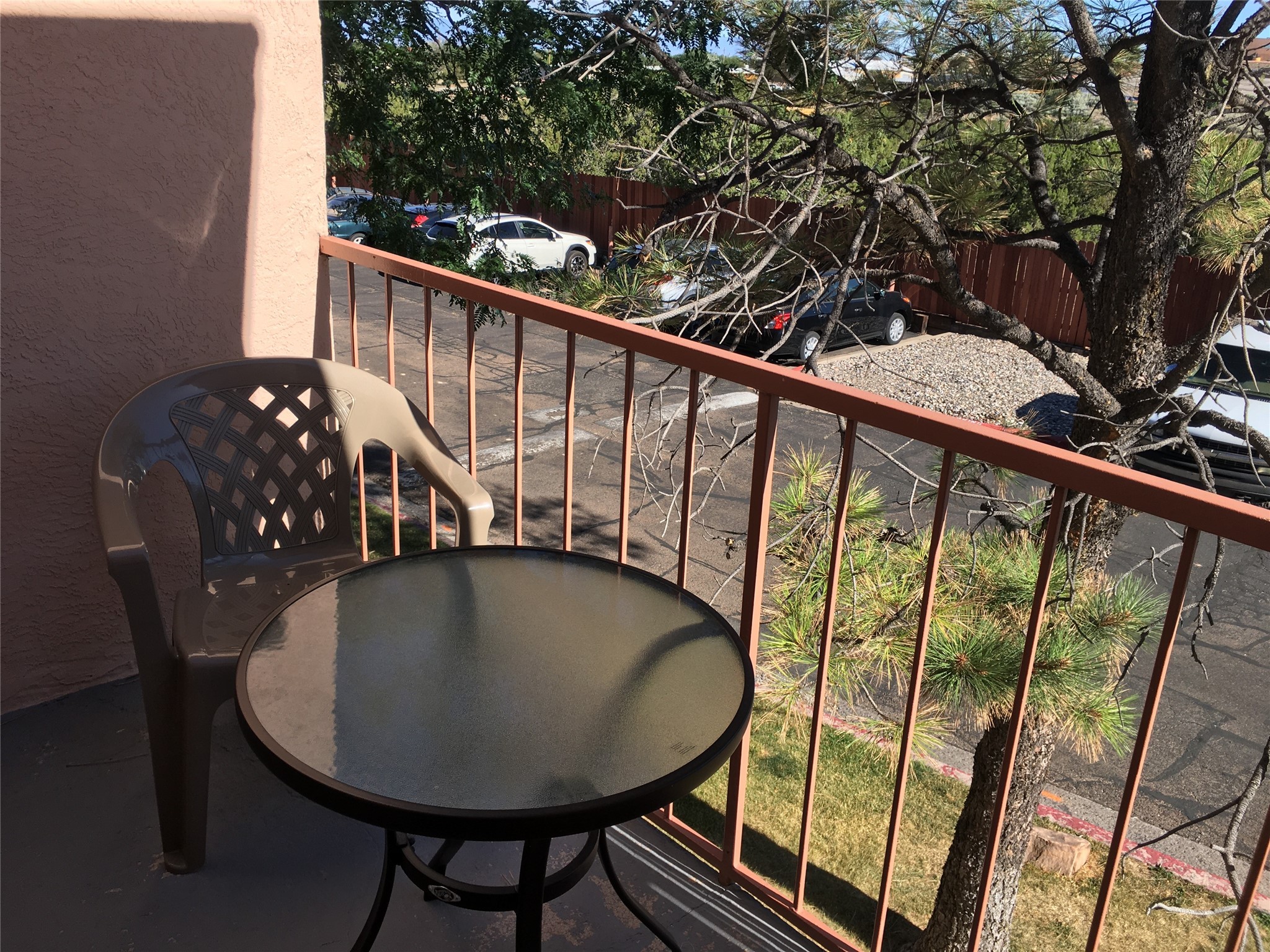 Conveniently located to shopping, schools, parks, downtown, fitness centers and more. 1 bedroom, 1 bath unit with easy access to dog park on Zia Vista Condo compound, Arroyo Chamisa walking trails and Ragle Park. Bedroom has two walk-in closets. Includes forced air heating, air conditioning, wood burning fireplace, and patio. Washer and dryer convey. Zia Vista Condo is a gated community with 24/7 security, on-site manager, workout facility, sauna, hot tub, pool, several large courtyards with barbecues and picnic tables.