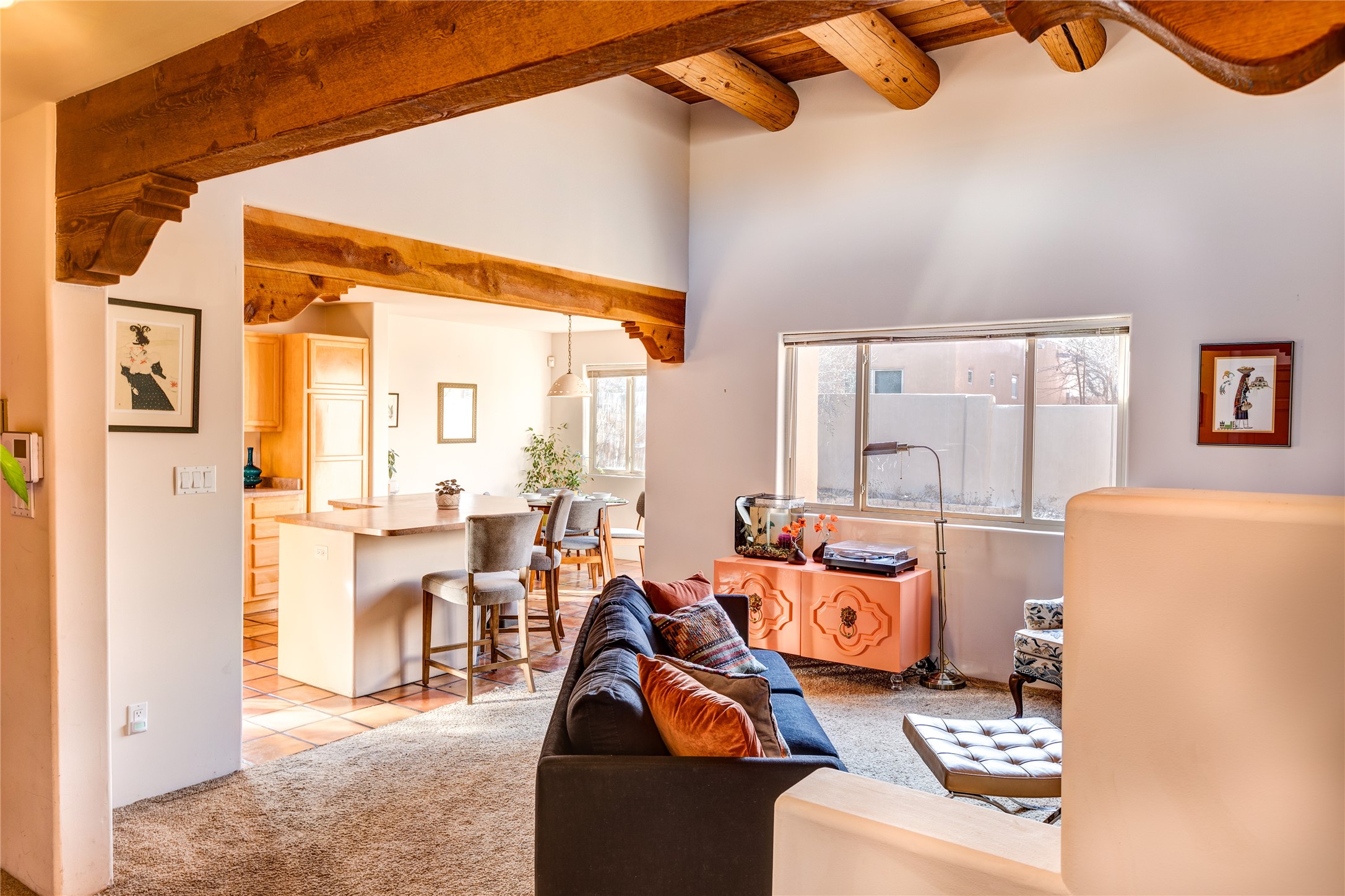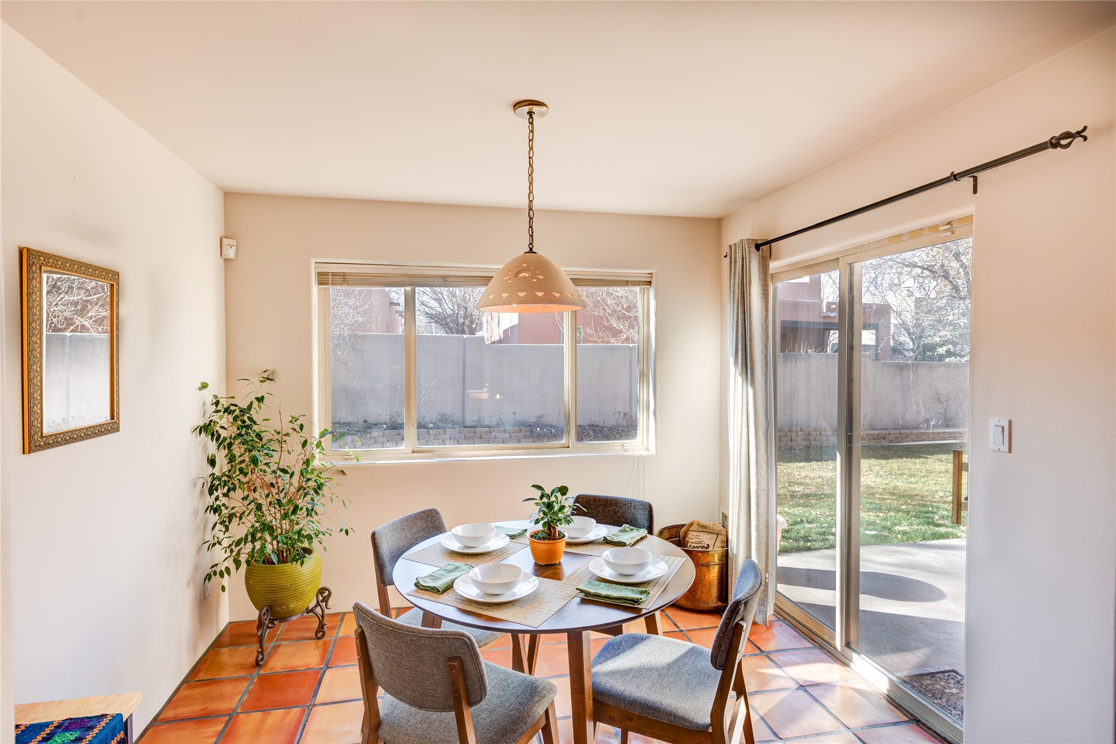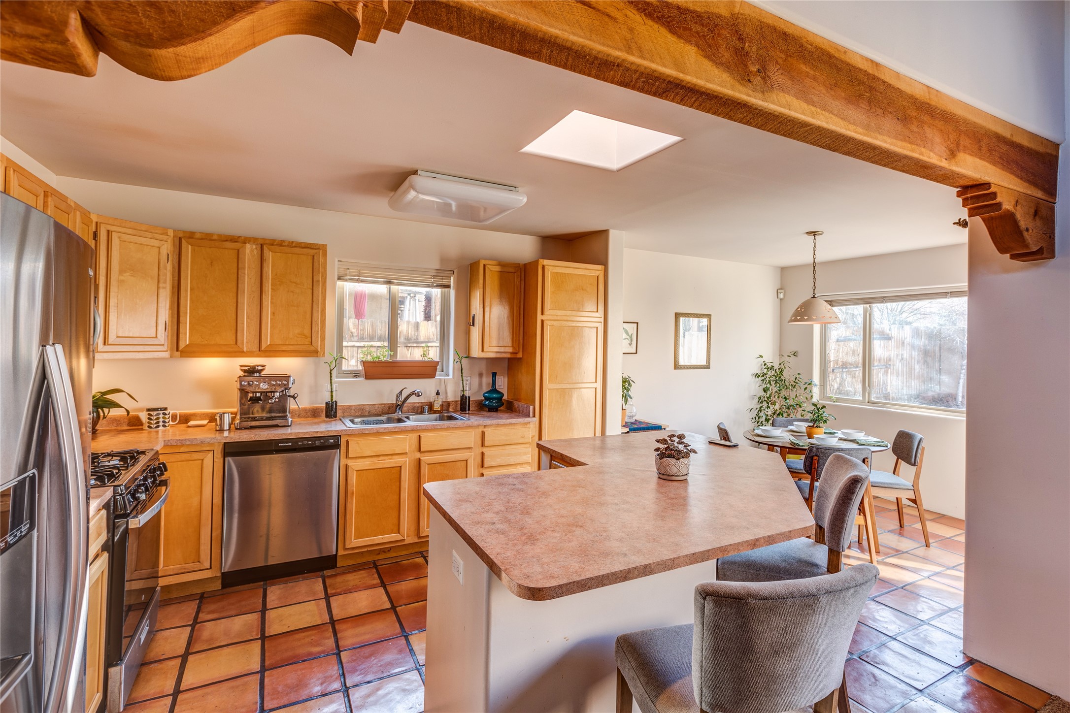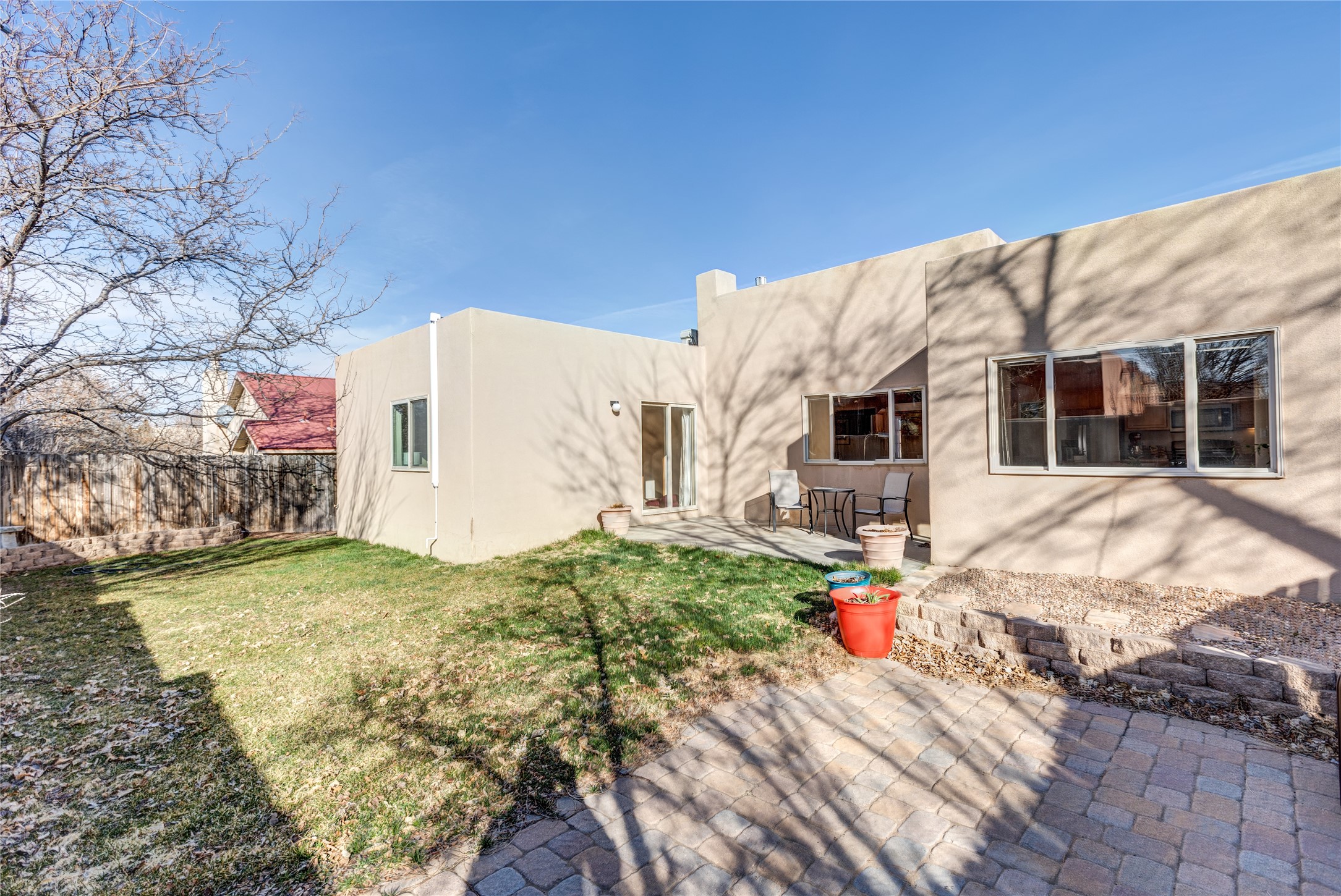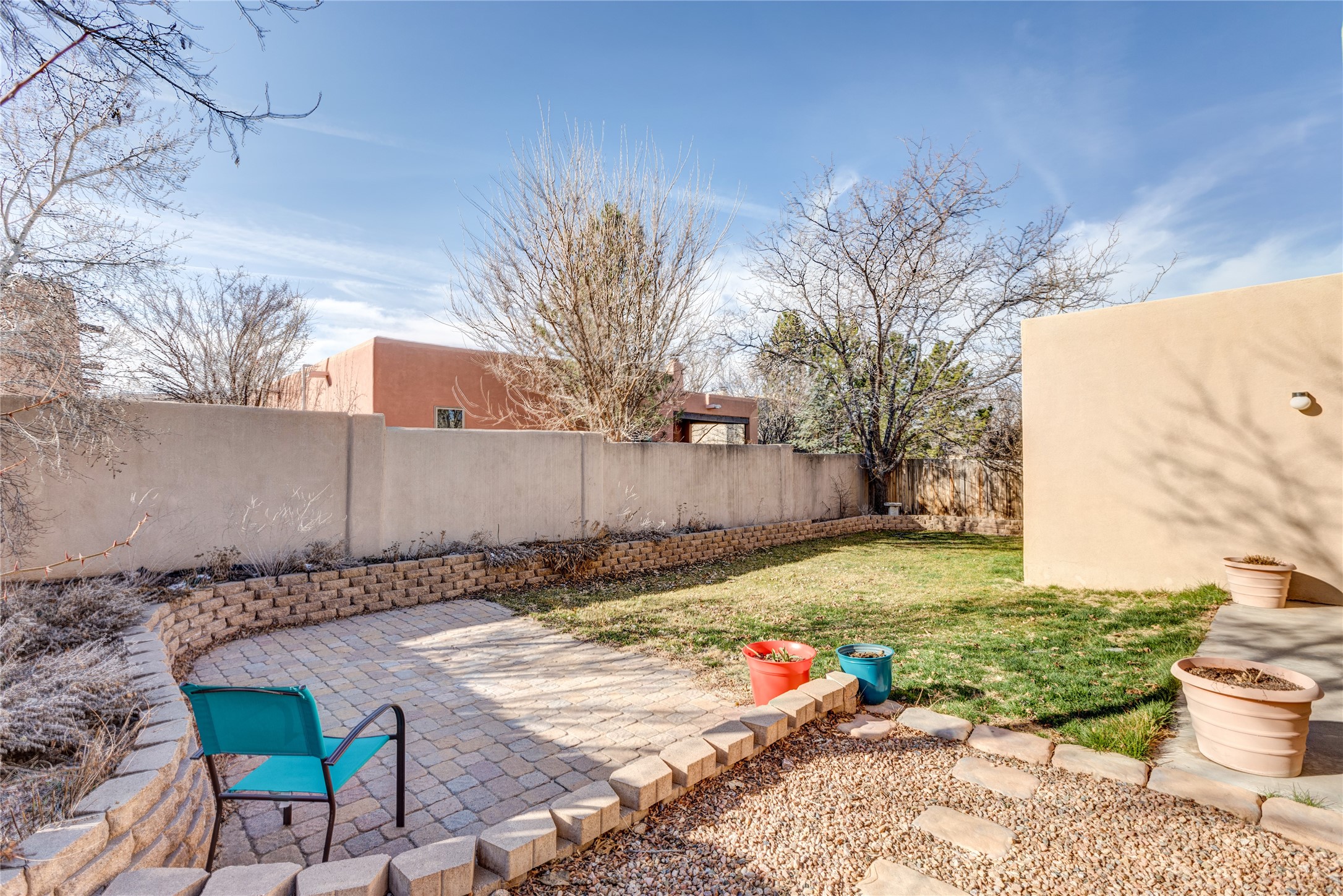Pueblos del Sol charmer! Single level home with an abundance of Southwestern accents - tall ceilings with vigas, commanding kiva, corbels, and Saltillo tile floors. The kitchen, with all new appliances, opens to the living room and dining area, and includes an expansive island with more seating. The dining area's sliders allow access to the beautifully landscaped rear patio/garden. A generously proportioned primary bedroom also provides back yard access. New additions include 2 mini splits and a newer boiler and water heater. Come enjoy the walking trails and well designed playground for your children in this move in ready, comfortable home.