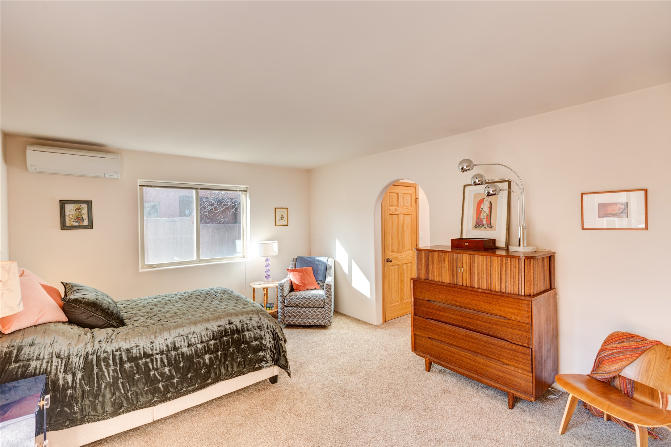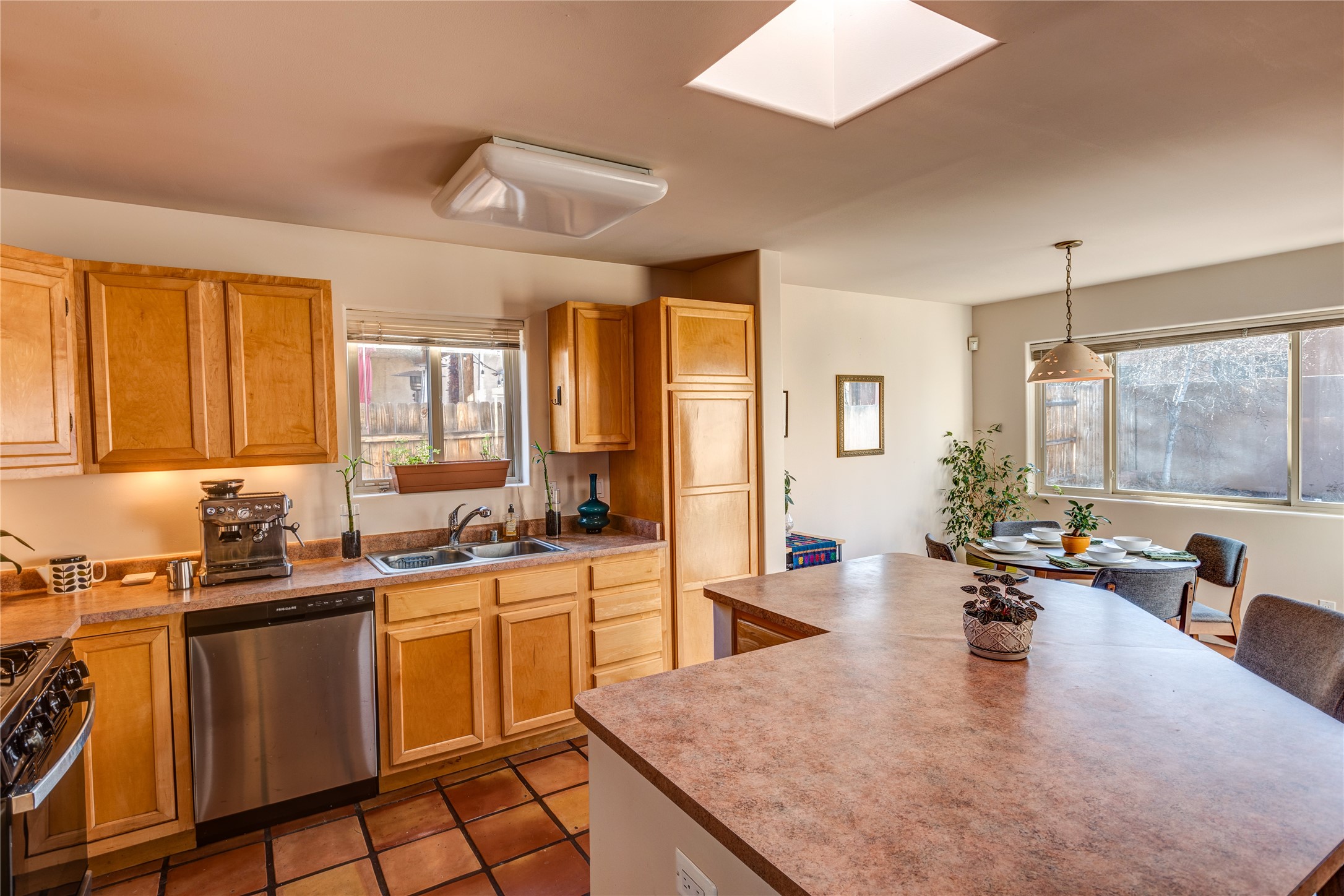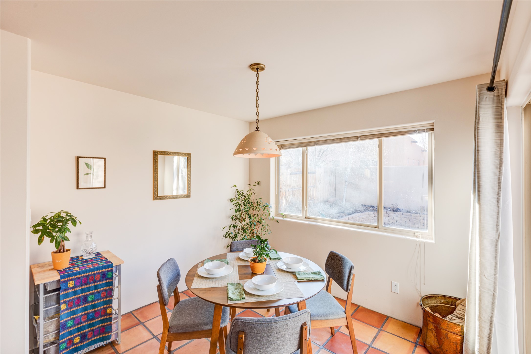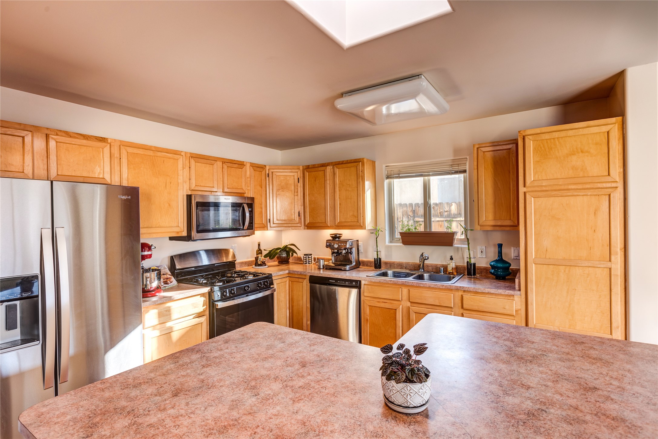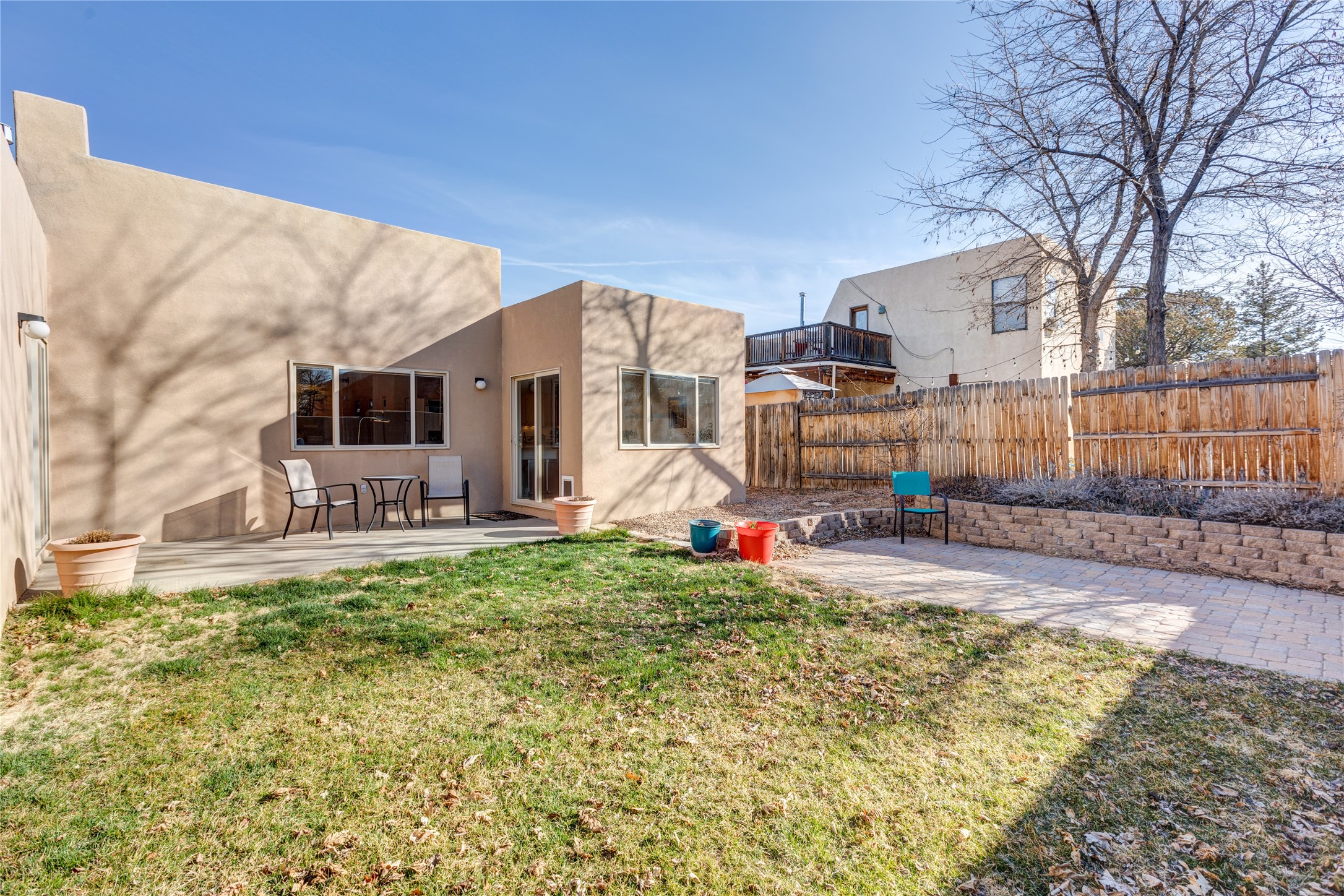 Pueblos del Sol charmer! Single level home with an abundance of Southwestern accents - tall ceilings with vigas, commanding kiva, corbels, and Saltillo tile floors. The kitchen, with all new appliances, opens to the living room and dining area, and includes an expansive island with more seating. The dining area's sliders allow access to the beautifully landscaped rear patio/garden. A generously proportioned primary bedroom also provides back yard access. New additions include 2 mini splits and a newer boiler and water heater. Come enjoy the walking trails and well designed playground for your children in this move in ready, comfortable home.