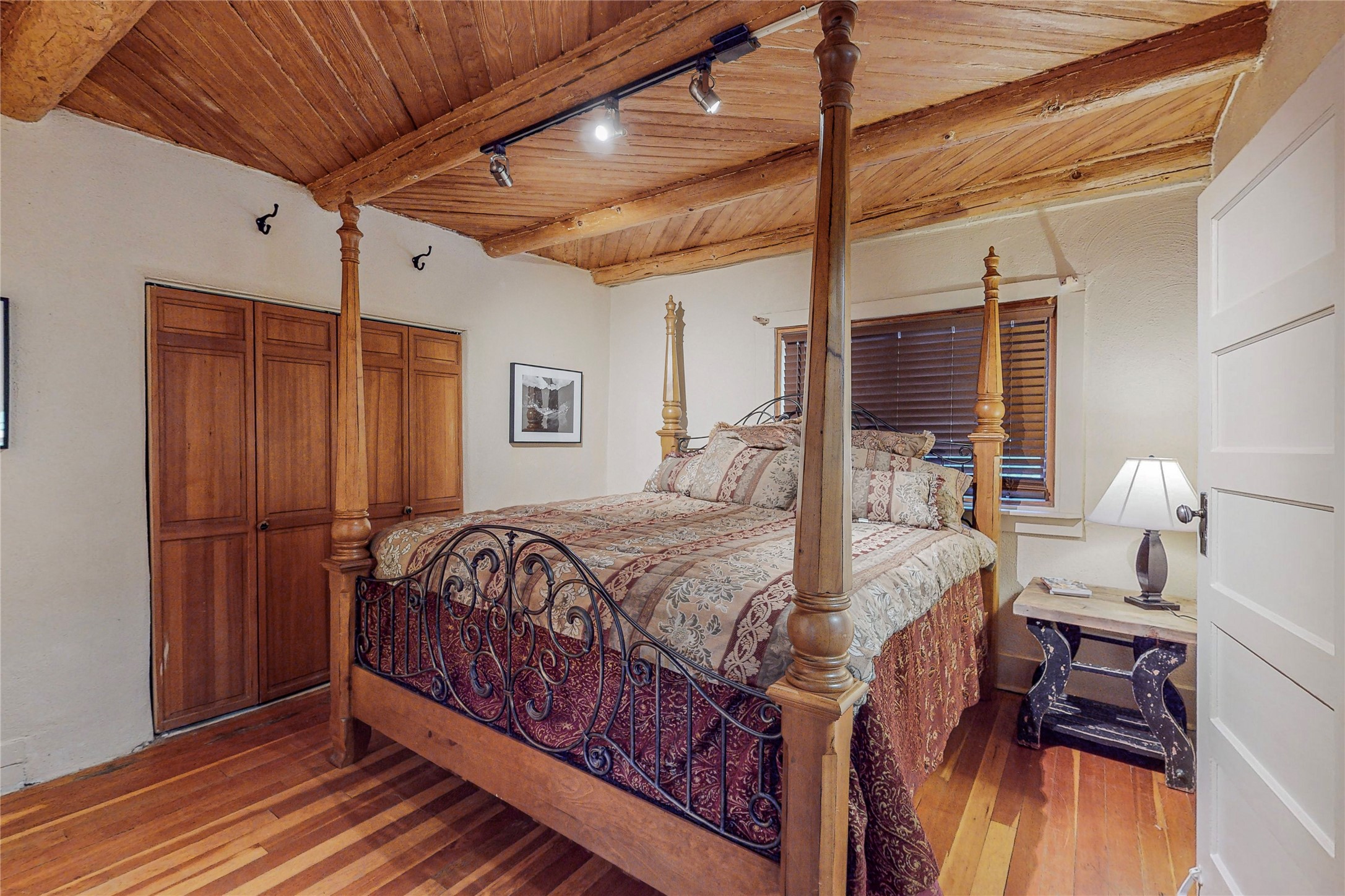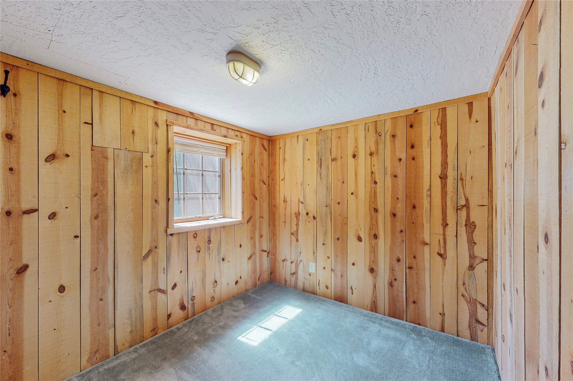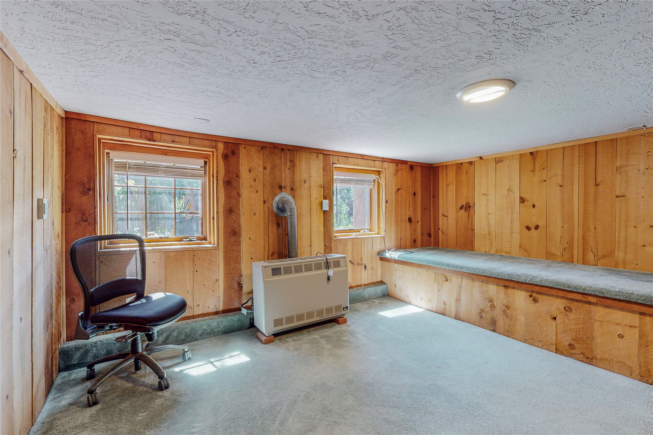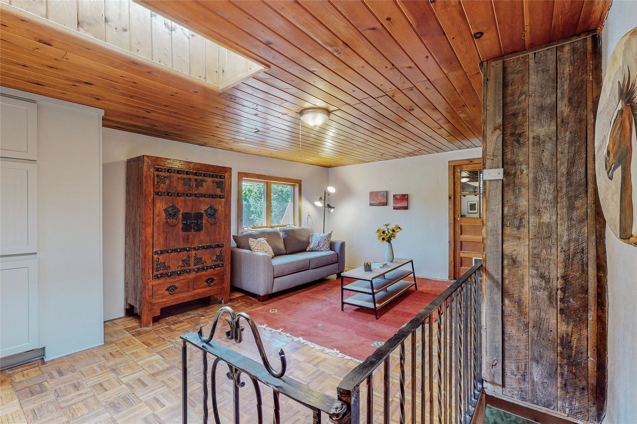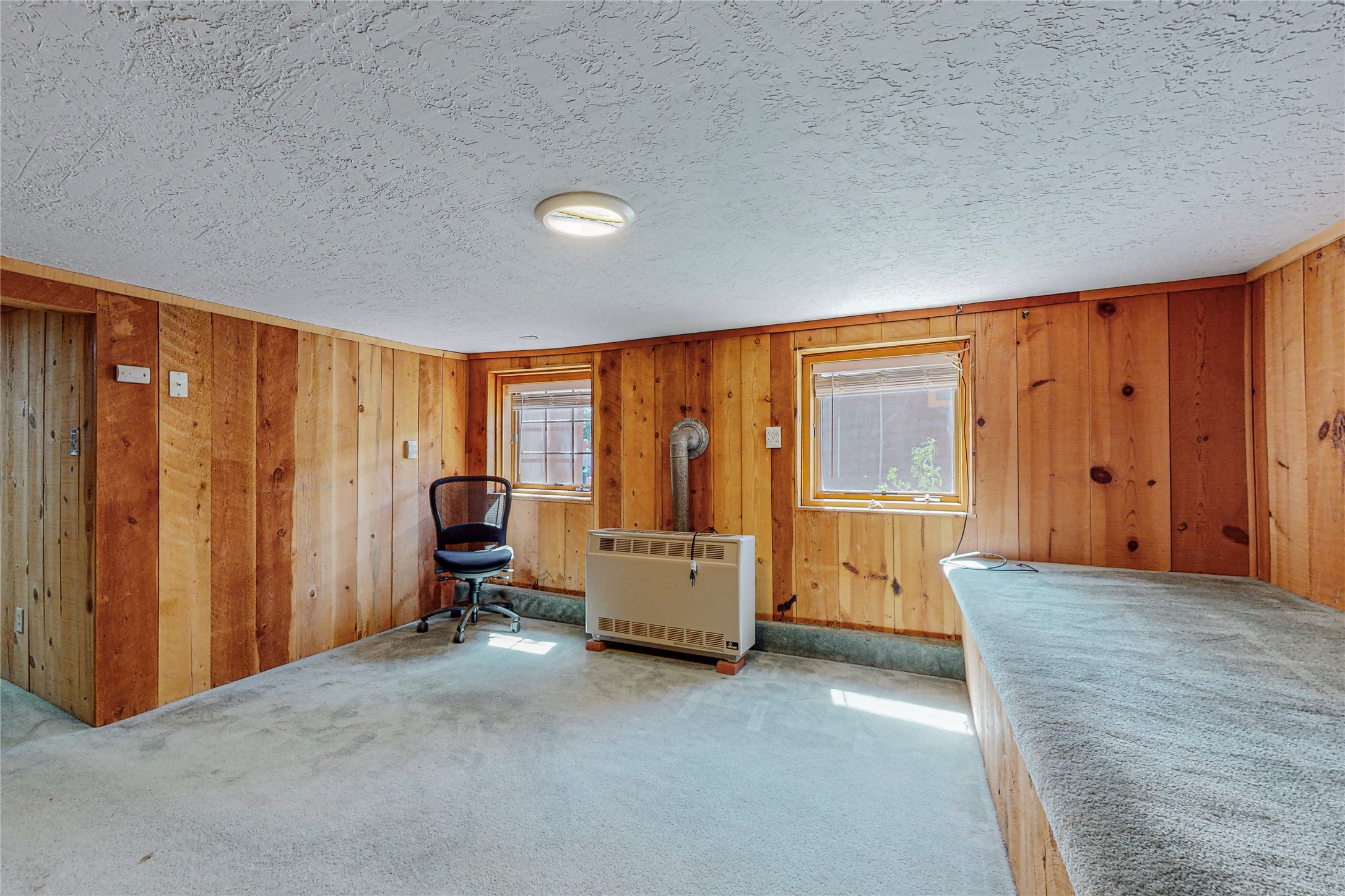 Classic Northern New Mexico style adobe gem listed for sale. The property features many upgrades including a fully fenced/walled lot with two access gates from paved NM Hwy 63, vigas and beams, tongue and groove ceilings, extensive landscaping, a fountain, an horno, a bricked terrace with great views, and a carport. Entering from the graveled driveway to covered porch overlooking one of the gardens and fountain one enters the home through a custom wooden door. The living room has recently sanded and sealed floors, corner kiva fireplace, views to the ridge above the Pecos River, bookshelf and openings to the office/2nd bedroom and dining room. The bathroom has be renovated and adjoins both bedrooms. The large recently remodeled country kitchen has stainless steel appliances - refrigerator/dishwasher/stove, copper sink, expansive seating area, new cabinets and adjoins the laundry room. There is a lower level with a den, bath, a small room that with a closet could be a bedroom or an office, separate entrance as well as a large unfinished "basement" for ample storage or renovation possibilities. There is radon mitigation in place. There is a stand alone shed/work shop that is a bonus. Come see this beautiful property today!