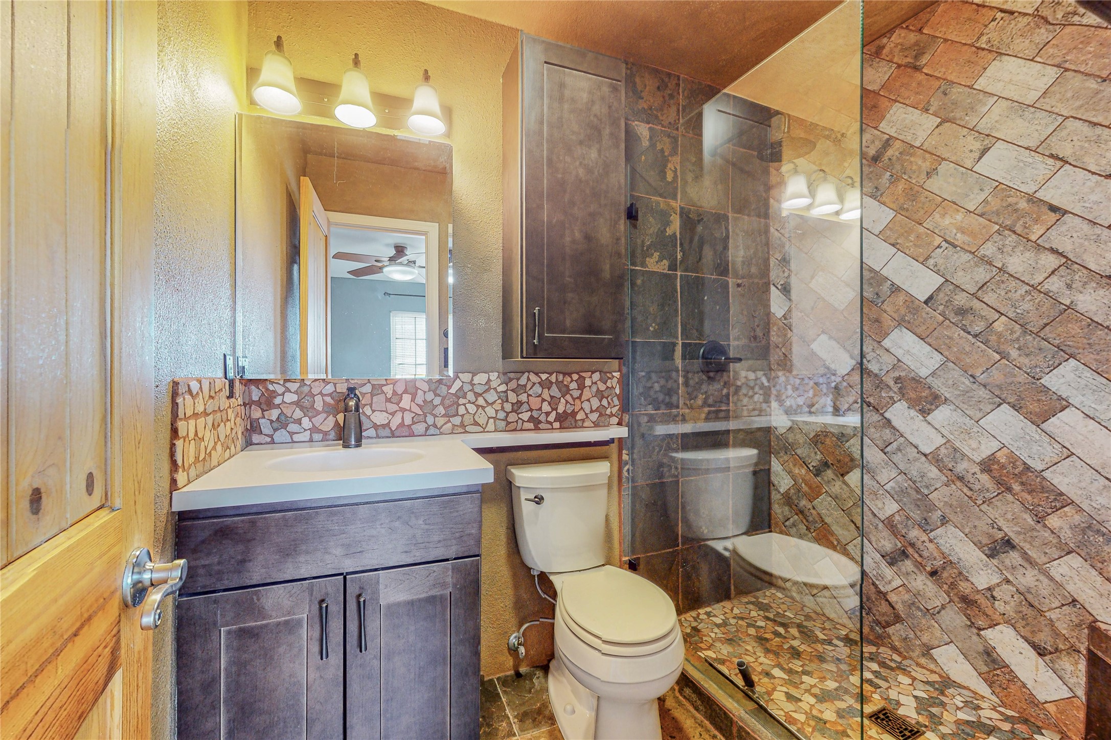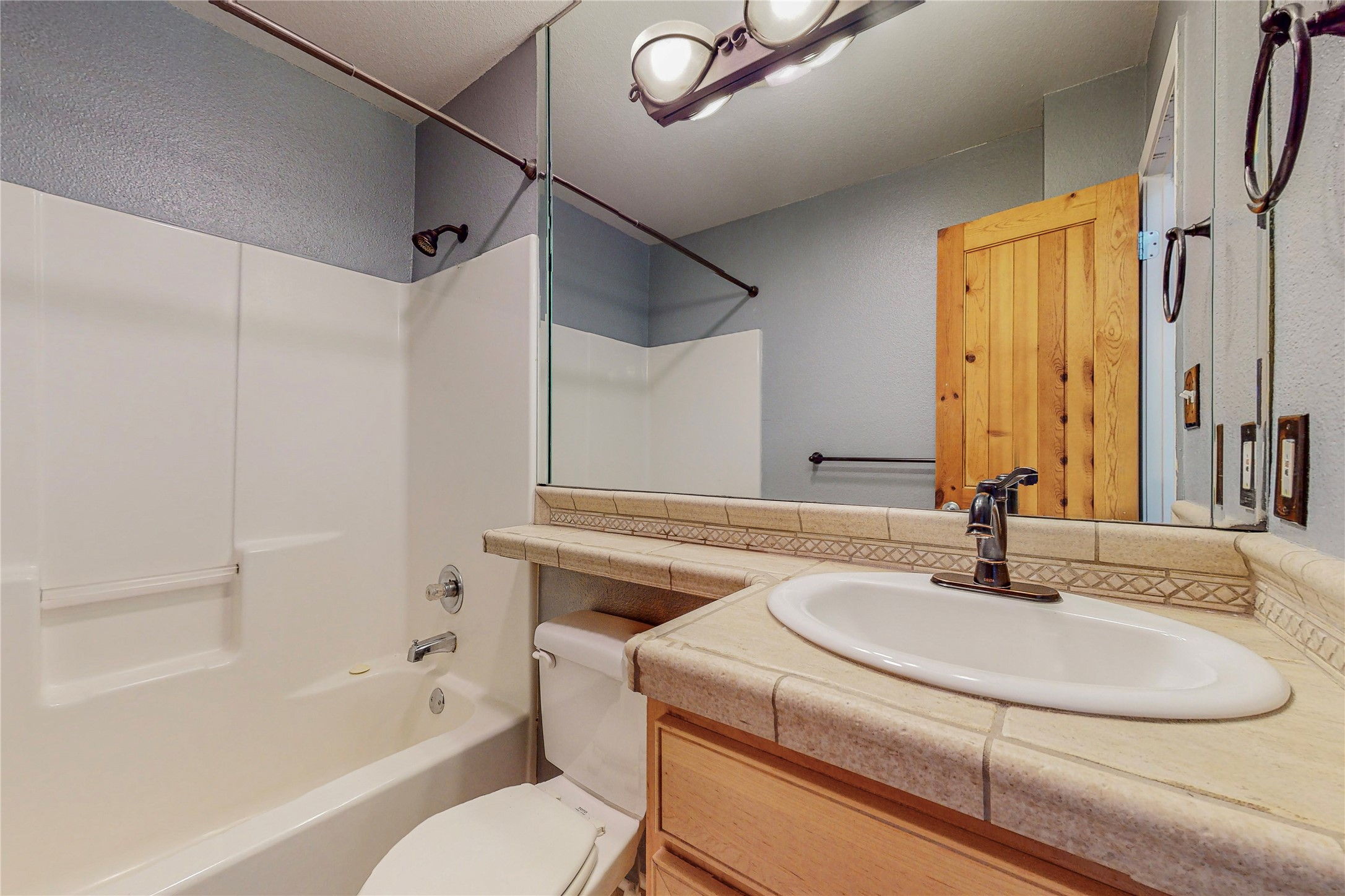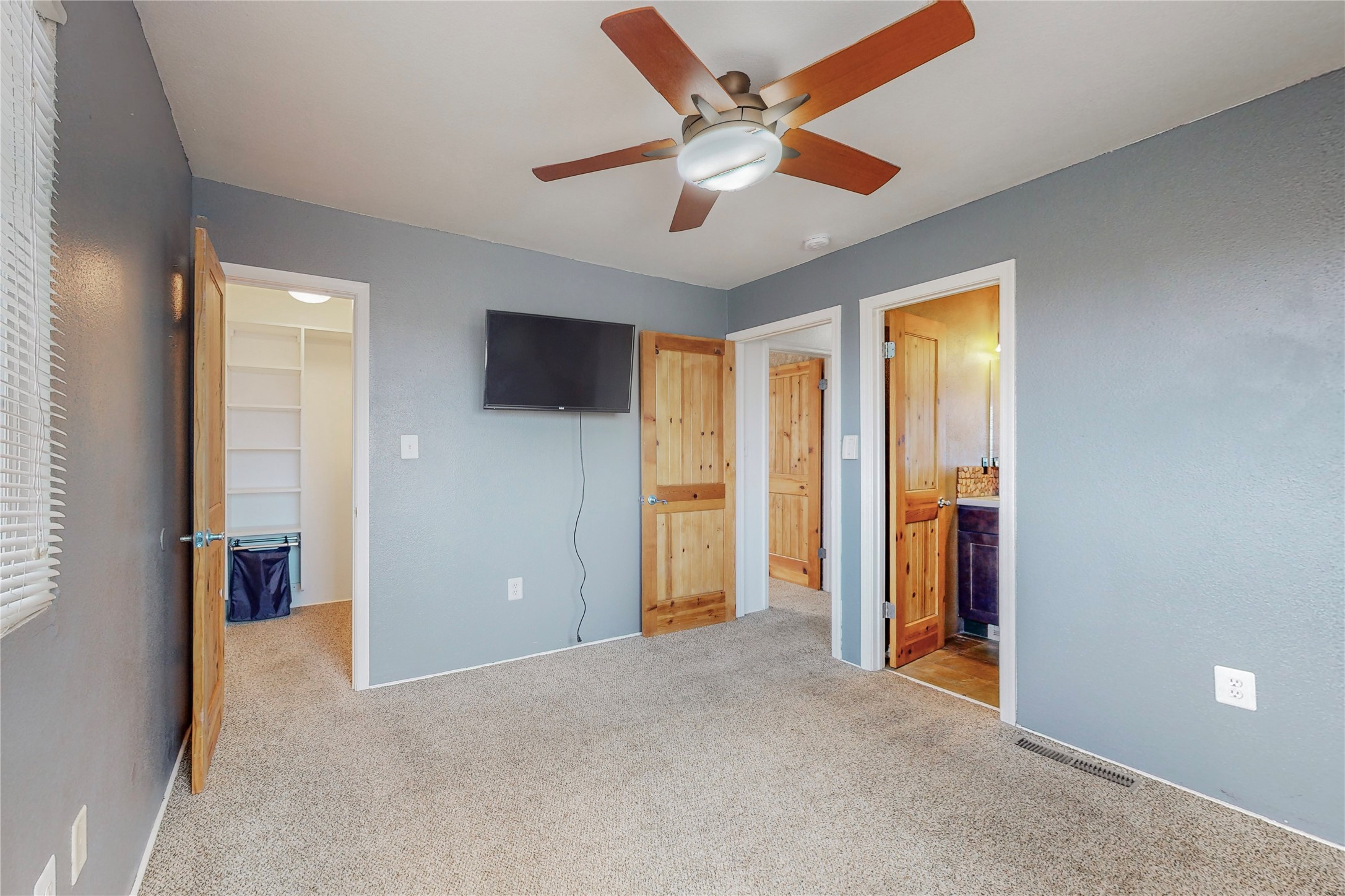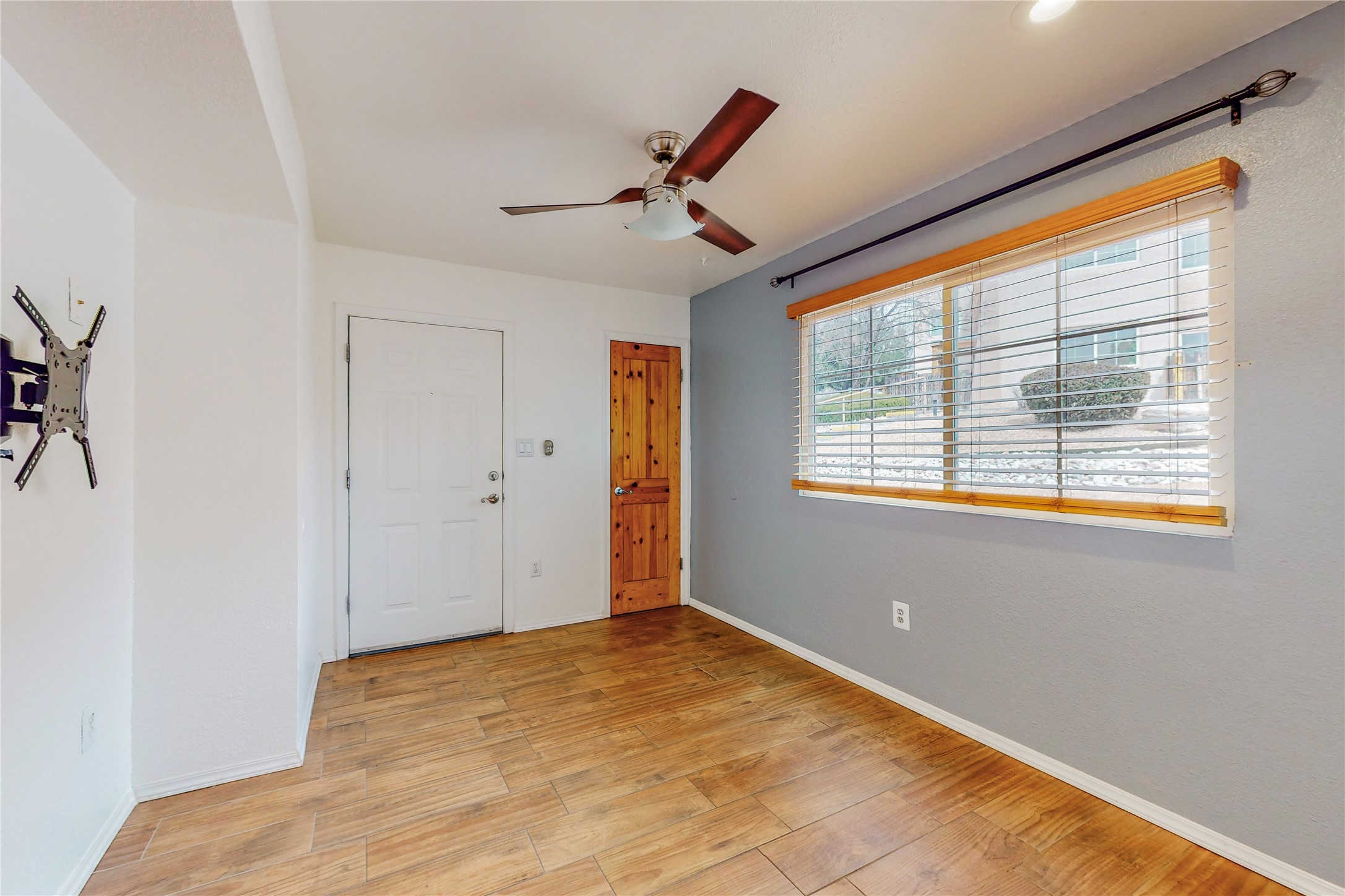 Welcome to 2210 Miguel Chaves! A stunning Santa Fe condo in a premium location, in the gated community of Dos Santos, aptly named for the fantastic central location at the intersection of Saint Francis & Saint Michael's. Enjoy all the community's amenities which includes outdoor grilling, a dog park, a salt water swimming pool, spa and a fitness center! This home is south facing enabling a wide open view! Enter the home to an open, light and bright floor plan laid out with natural wood looking porcelain tile, FULLY UPDATED! All new stainless steel appliances including new WHIRLPOOL stacked washer and dryer. Enjoy a completely redesigned kitchen with a custom farmhouse-style/apron sink made from 99% pure-mined copper with a hammered finish, set on sleek quartz countertops, recessed lighting, glossy white mosaic backsplash and LIVING ART on the wall in the form of a built in fireplace! Find new light fixtures and natural wood doors throughout the home. Each bedroom has a huge walk in closet with set storage space fixed to the walls. Enjoy a fully custom master bathroom equipped with natural stone from the walk in shower to the backsplash. Well maintained, fully updated! This is a MUST SEE!!! Schedule your showing today!