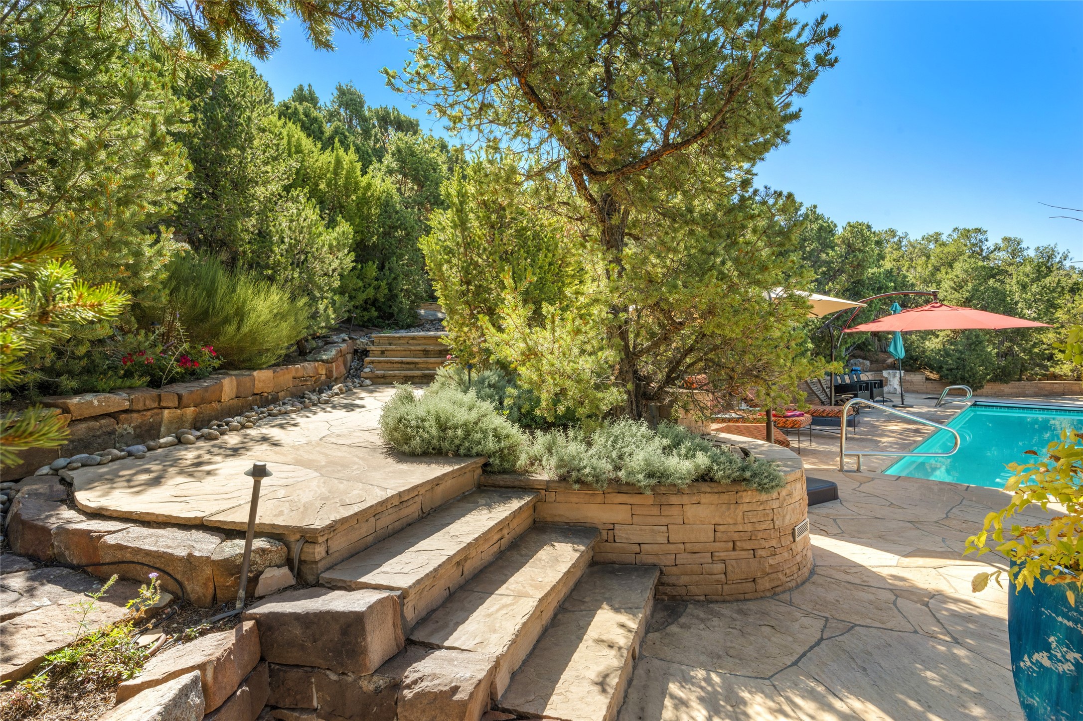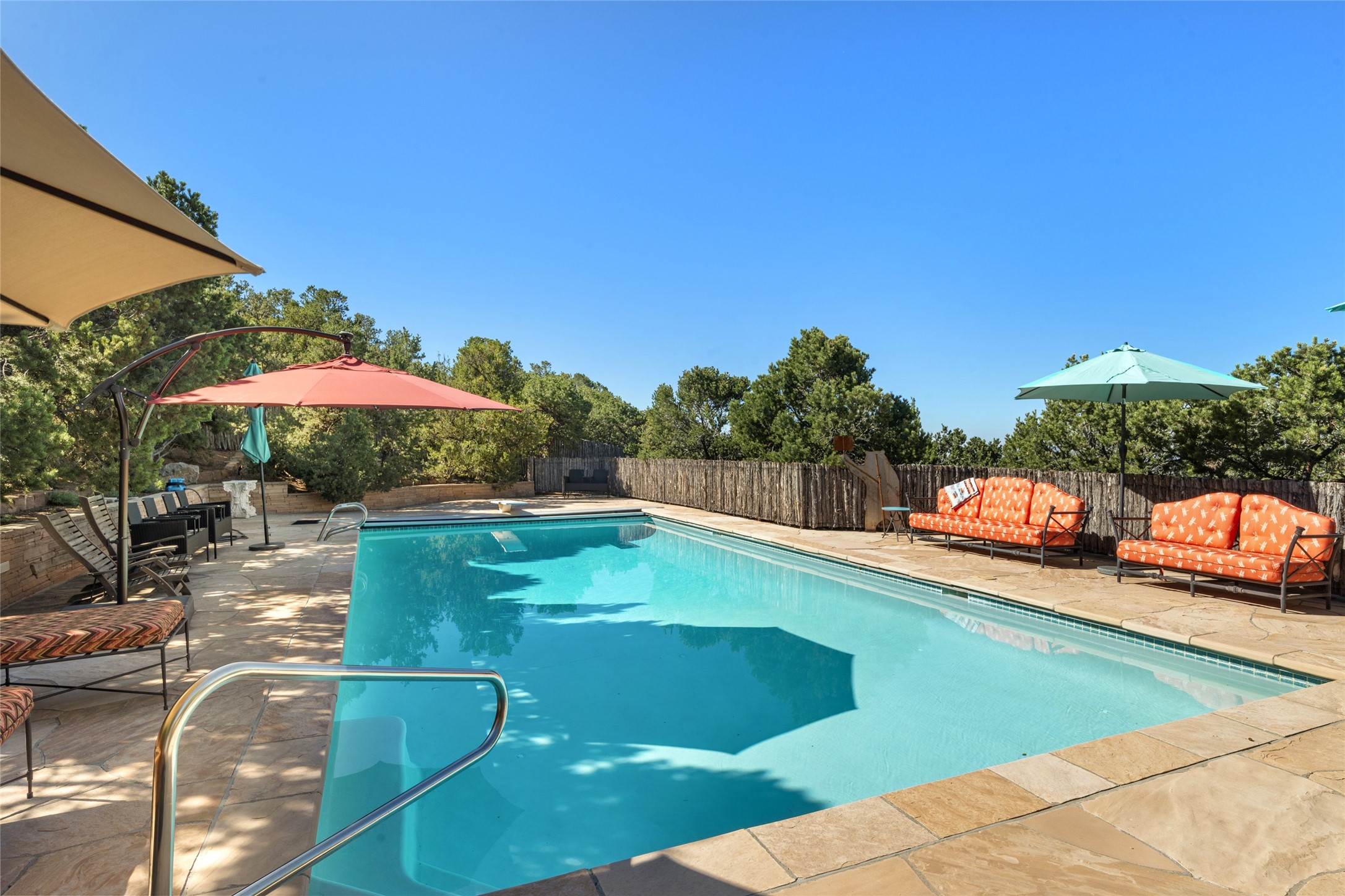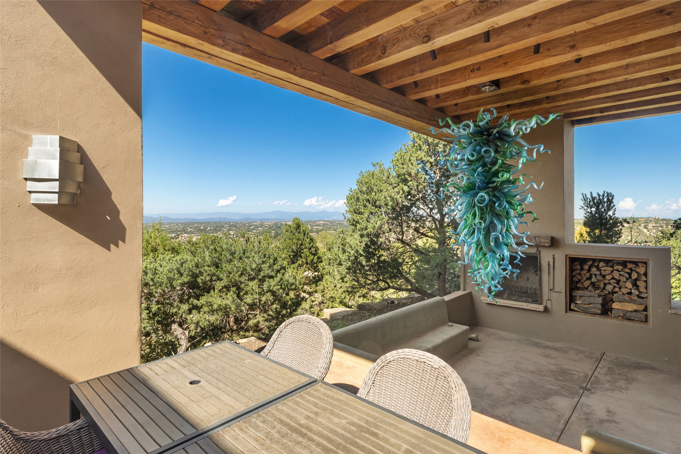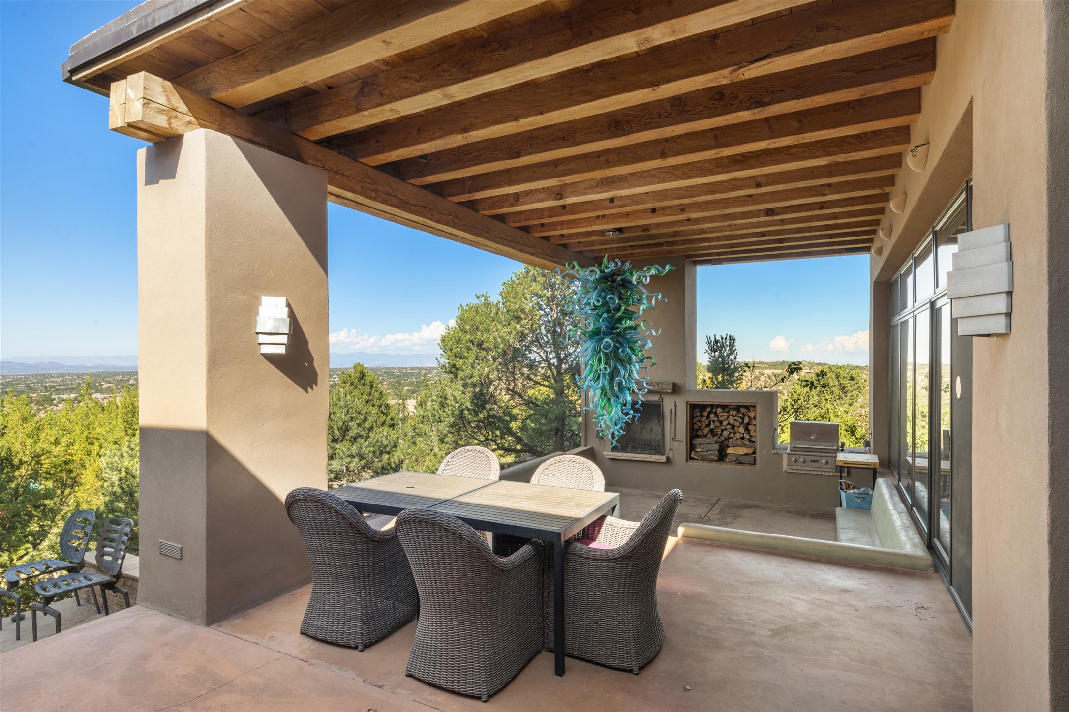 Spectacular top of Sierra del Norte gem with stunning views, contemporary architecture, premier builders (Prull & Boniface), and graceful living spaces. The open floor plan concept flows from the kitchen through to the living room and dining room, out through the over-sized portal, and off to the mountain range views in the distance. Enjoy true picturesque sunsets from this private estate, replete with generous pool and new cabana area, anchored by a private owner's suite (with work out room), two guest bedrooms with en suite baths, separate guest quarters with wet bar & stacked stone fireplace, state-of-the art home theatre, double attached garage, and mature landscaping. The cook's kitchen features warming trays, six-burner Viking range, wood-burning pizza oven, built in refrigerator, separate high temperature wok burner, and massive center island - which is great for food prep and casual kitchen entertaining. The in ground heated pool and cabana area are separated from the main house, and create a private escape from the world - all with expansive views of the Jemez Mountain range, yet loaded with on-site entertaining and with stainless steel outdoor kitchen and barbecue area - with outdoor shower and bath/shower area. The over-sized rear portal area flows off of the living room/dining room, and invites guests to enjoy the impressive outdoor spaces. The entire property is extensively landscaped for year around enjoyment.