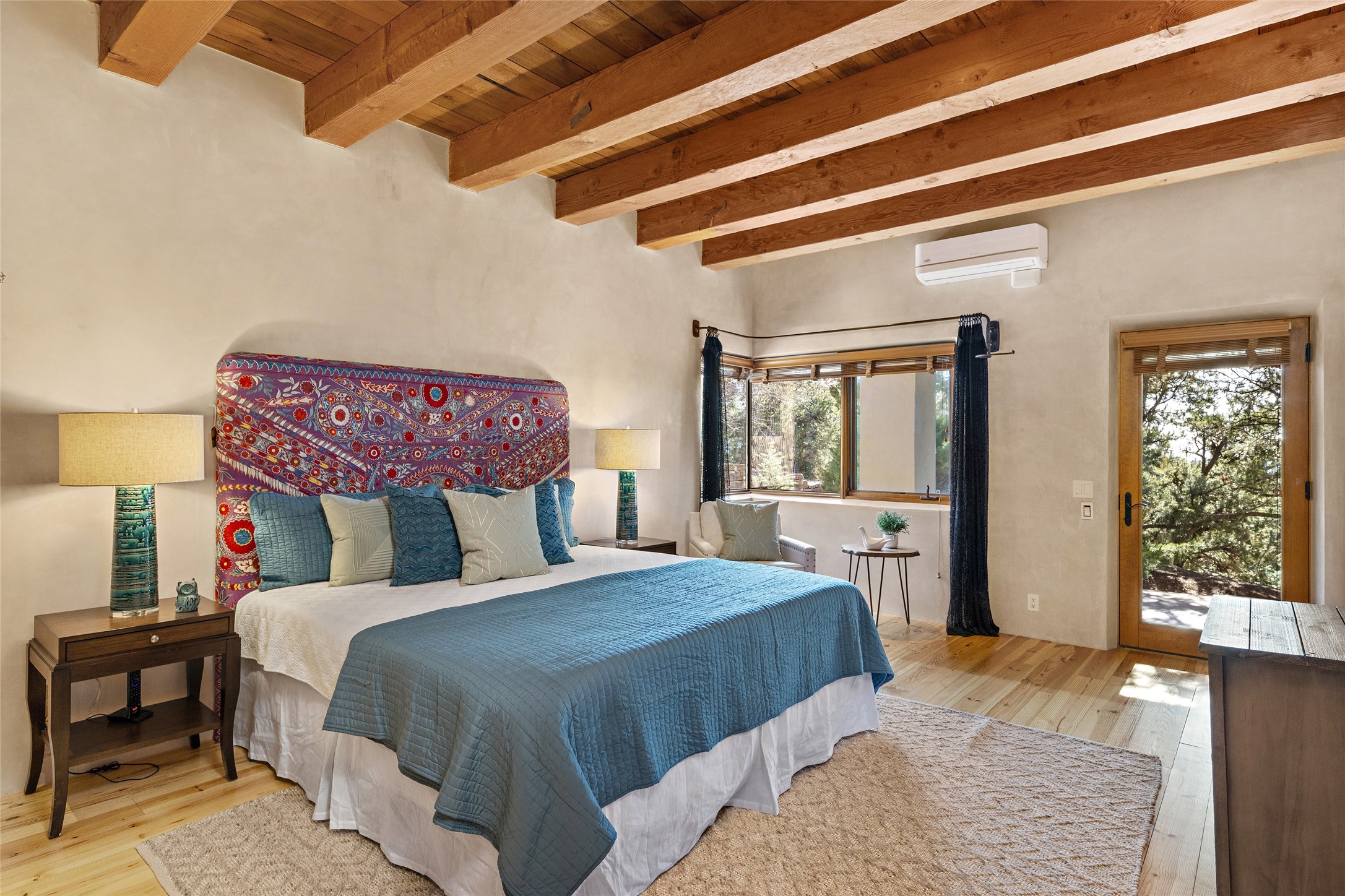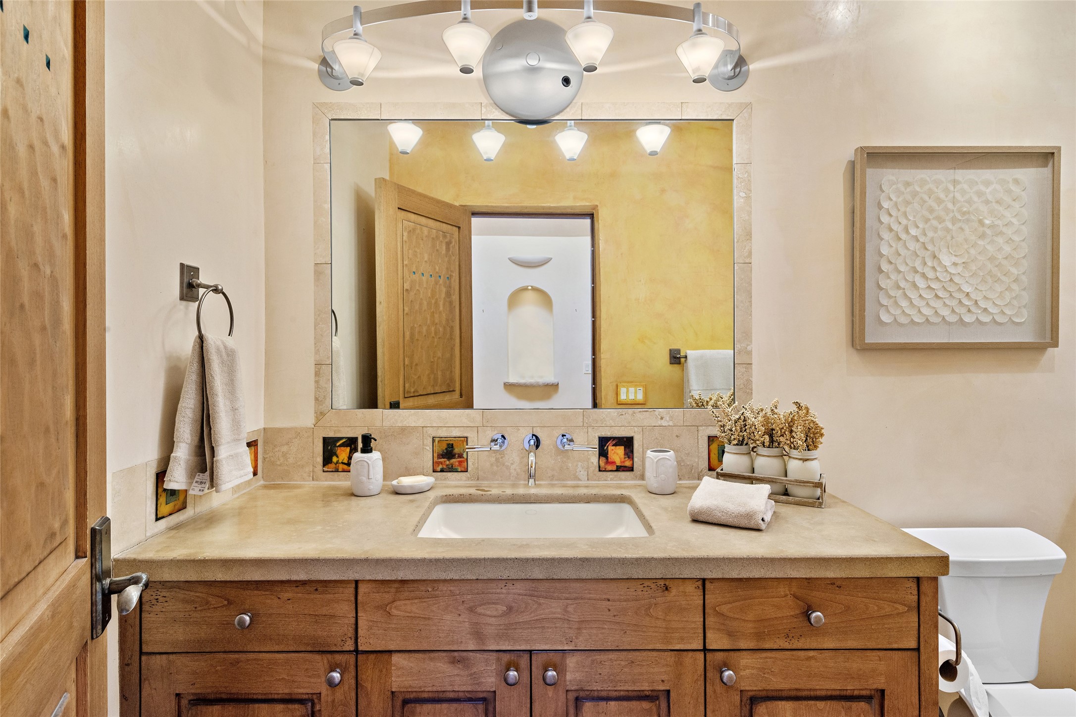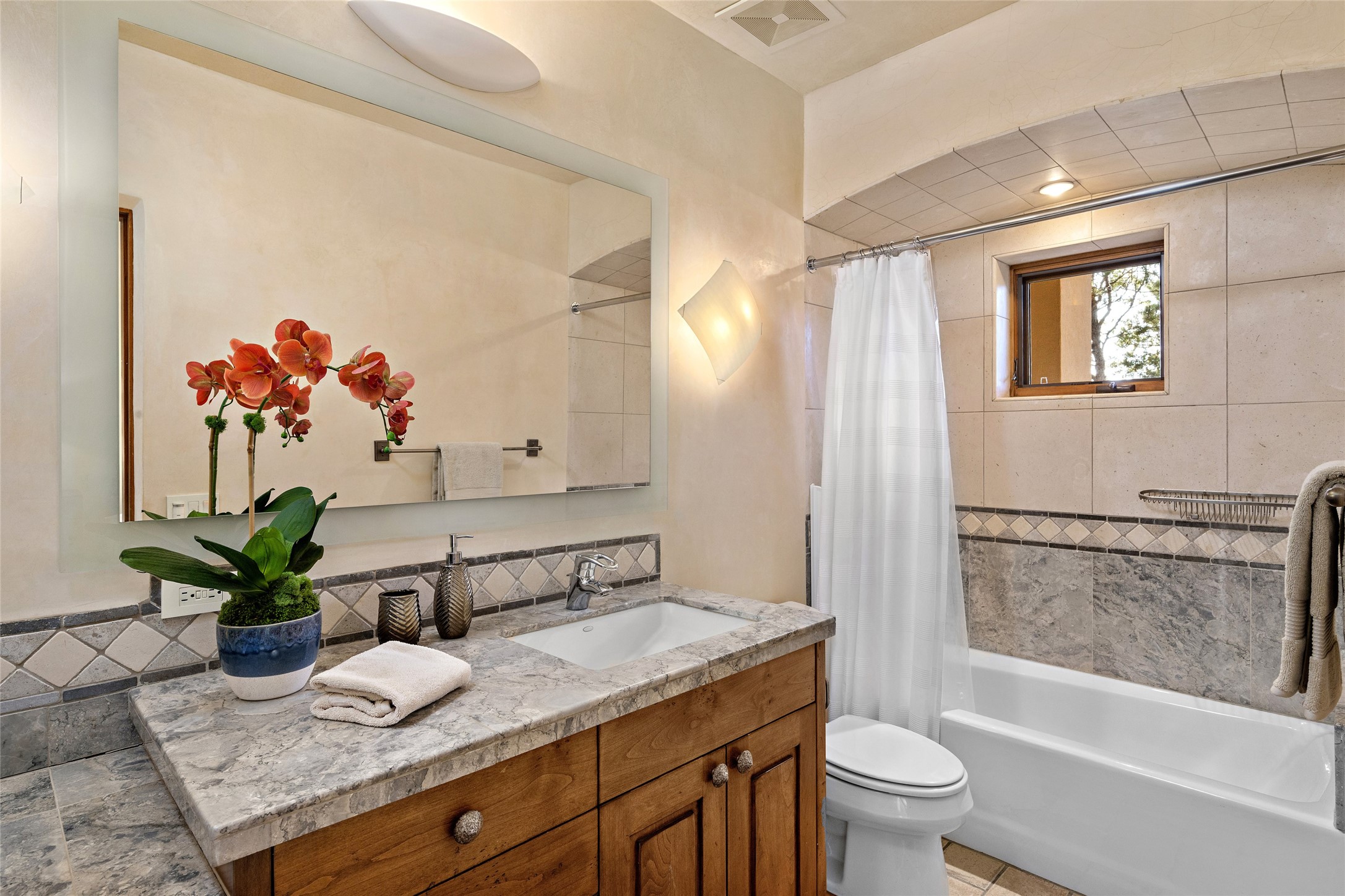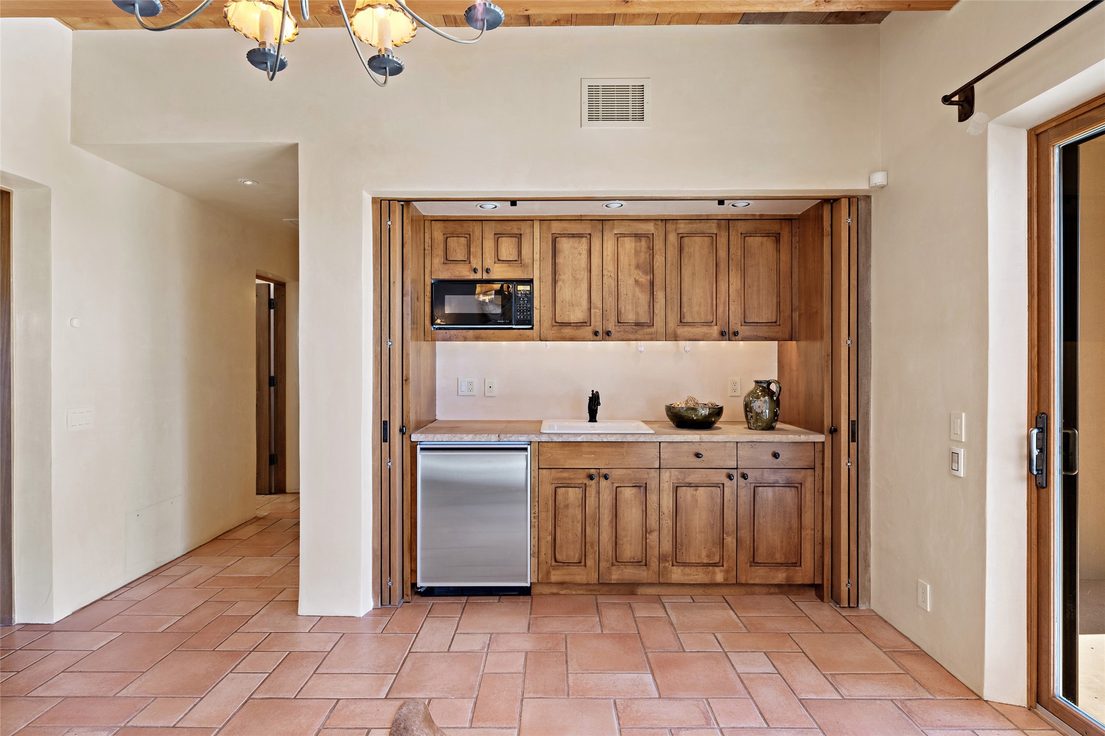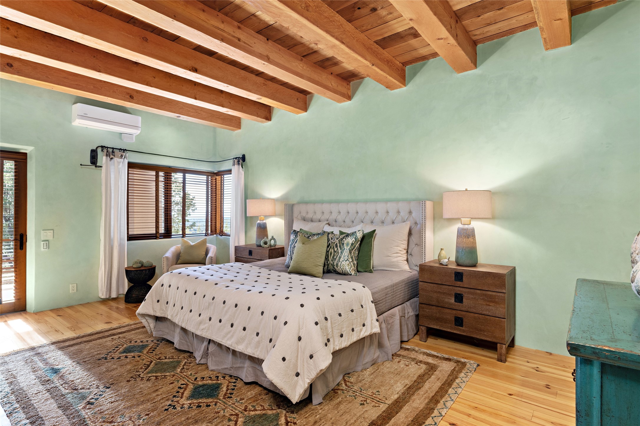 Spectacular top of Sierra del Norte gem with stunning views, contemporary architecture, premier builders (Prull & Boniface), and graceful living spaces. The open floor plan concept flows from the kitchen through to the living room and dining room, out through the over-sized portal, and off to the mountain range views in the distance. Enjoy true picturesque sunsets from this private estate, replete with generous pool and new cabana area, anchored by a private owner's suite (with work out room), two guest bedrooms with en suite baths, separate guest quarters with wet bar & stacked stone fireplace, state-of-the art home theatre, double attached garage, and mature landscaping. The cook's kitchen features warming trays, six-burner Viking range, wood-burning pizza oven, built in refrigerator, separate high temperature wok burner, and massive center island - which is great for food prep and casual kitchen entertaining. The in ground heated pool and cabana area are separated from the main house, and create a private escape from the world - all with expansive views of the Jemez Mountain range, yet loaded with on-site entertaining and with stainless steel outdoor kitchen and barbecue area - with outdoor shower and bath/shower area. The over-sized rear portal area flows off of the living room/dining room, and invites guests to enjoy the impressive outdoor spaces. The entire property is extensively landscaped for year around enjoyment.
