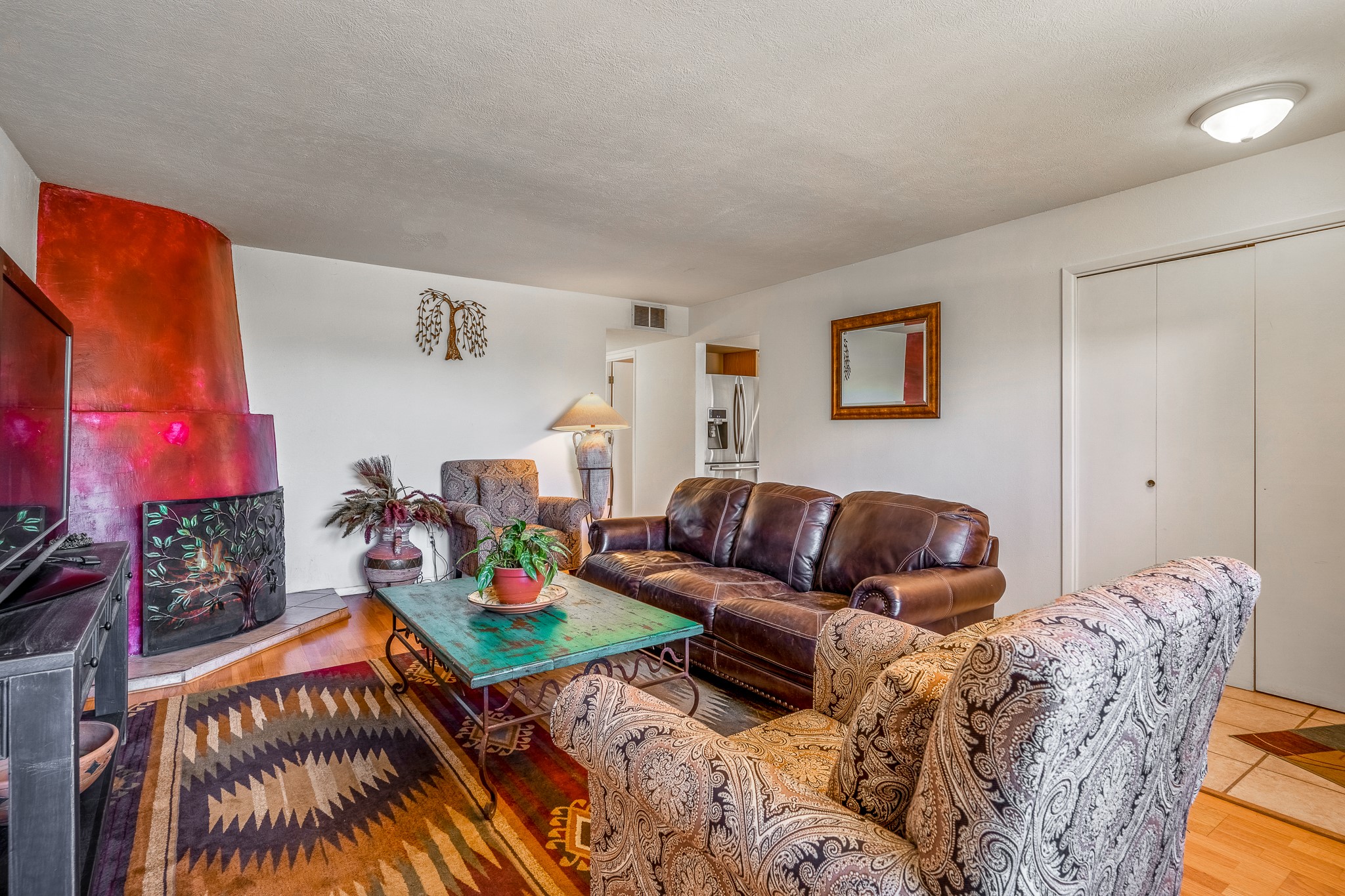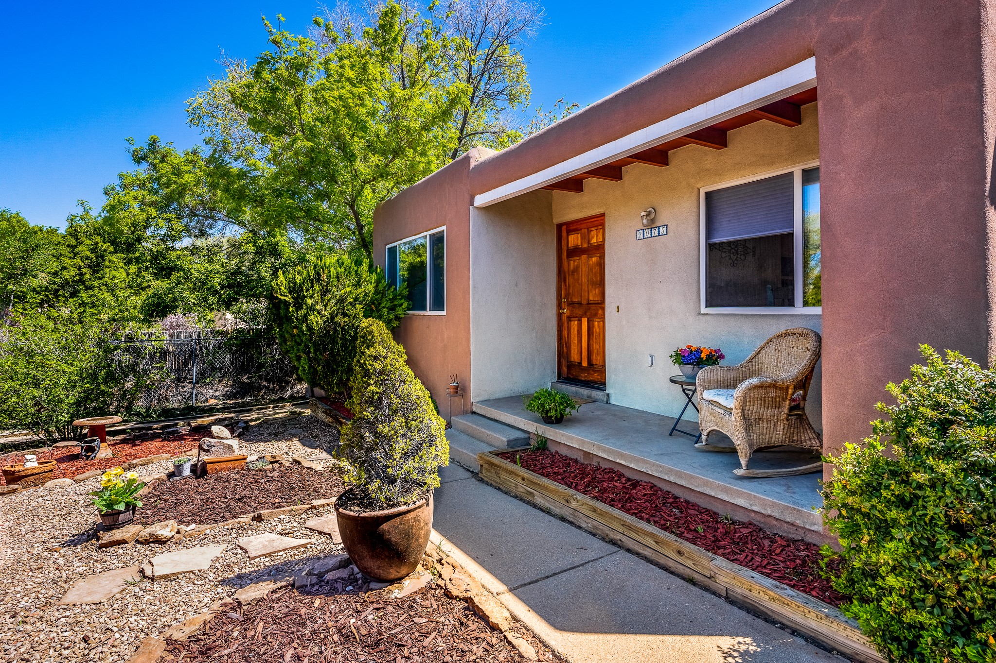 An exceptional chance to buy a very nice home in a very desirable neighborhood in Midtown Santa Fe! 3 bedrooms with 2 bathrooms and a 1 car garage. Beautifully maintained and updated, this home would be a great place to live or to own as an investment. There is wood and tile in the common areas with carpet in the bedrooms. A kiva fireplace, ceiling fans, and forced air heat. The front yard is nicely landscaped and the backyard is contained and has a flagstone patio. Close to everything Santa Fe with easy access to all parts of town. Close to a RailRunner station, schools, healthcare, shopping, and restaurants. Don't wait to see this home.