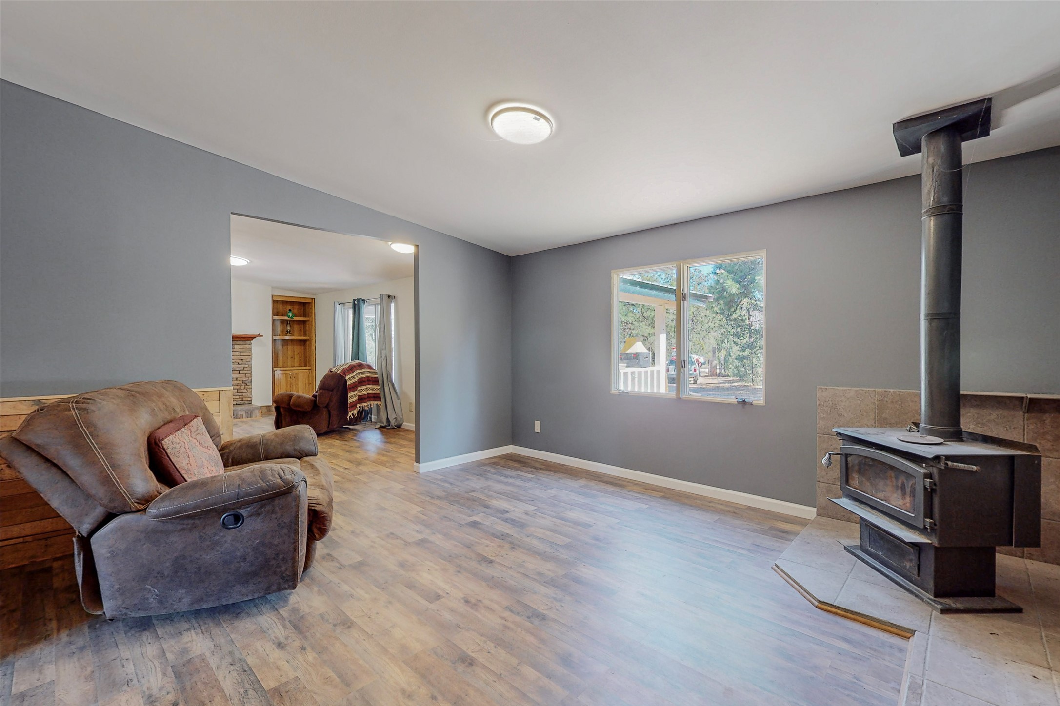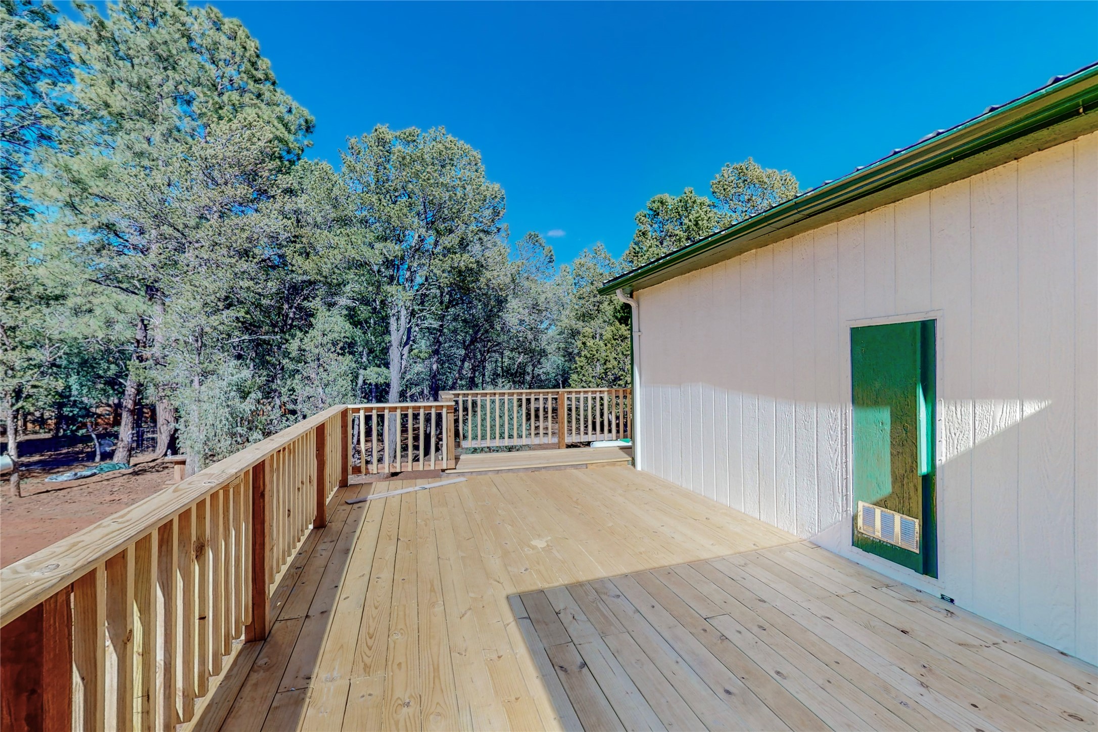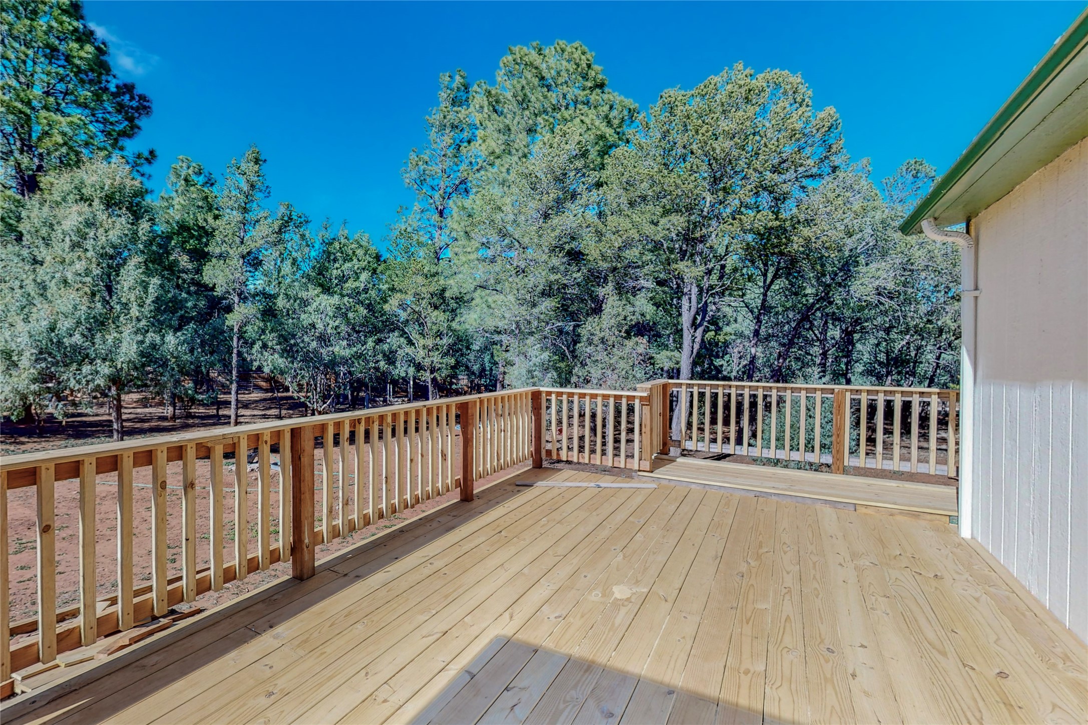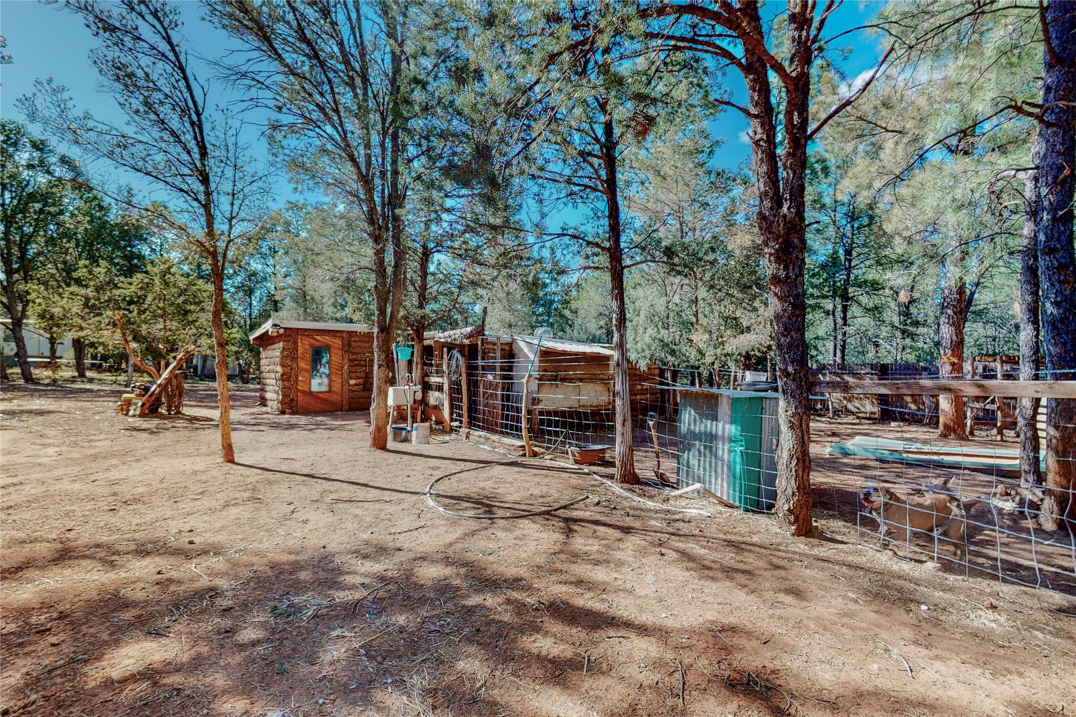 This home with a mother-in-law suit shows great pride of ownership with updates such as floors, countertops, drywall which has been recently painted, and let's not forget the beautiful newly finished wrap around deck. Sitting on a clean and clear two acres with tall pine trees that creates a private oasis. Included is a bonus 18 x 36 building with 220 electrical service, ready to be a workshop, mancave/sheshed, or anything you can imagine. Did I mention the enclosed area for raising chickens, goats, geese, turkeys, and so much more. The possibilities are endless for this turnkey ready home. SELLER IS GIVING ALLOWANCE FOR NEW APPLIANCES!Short distance to activities for the whole family such as fishing, hiking, hunting and the great Pecos Wilderness. Located 25 miles outside of Santa Fe this home is an outdoor lover's dream. Come make this oasis yours today!