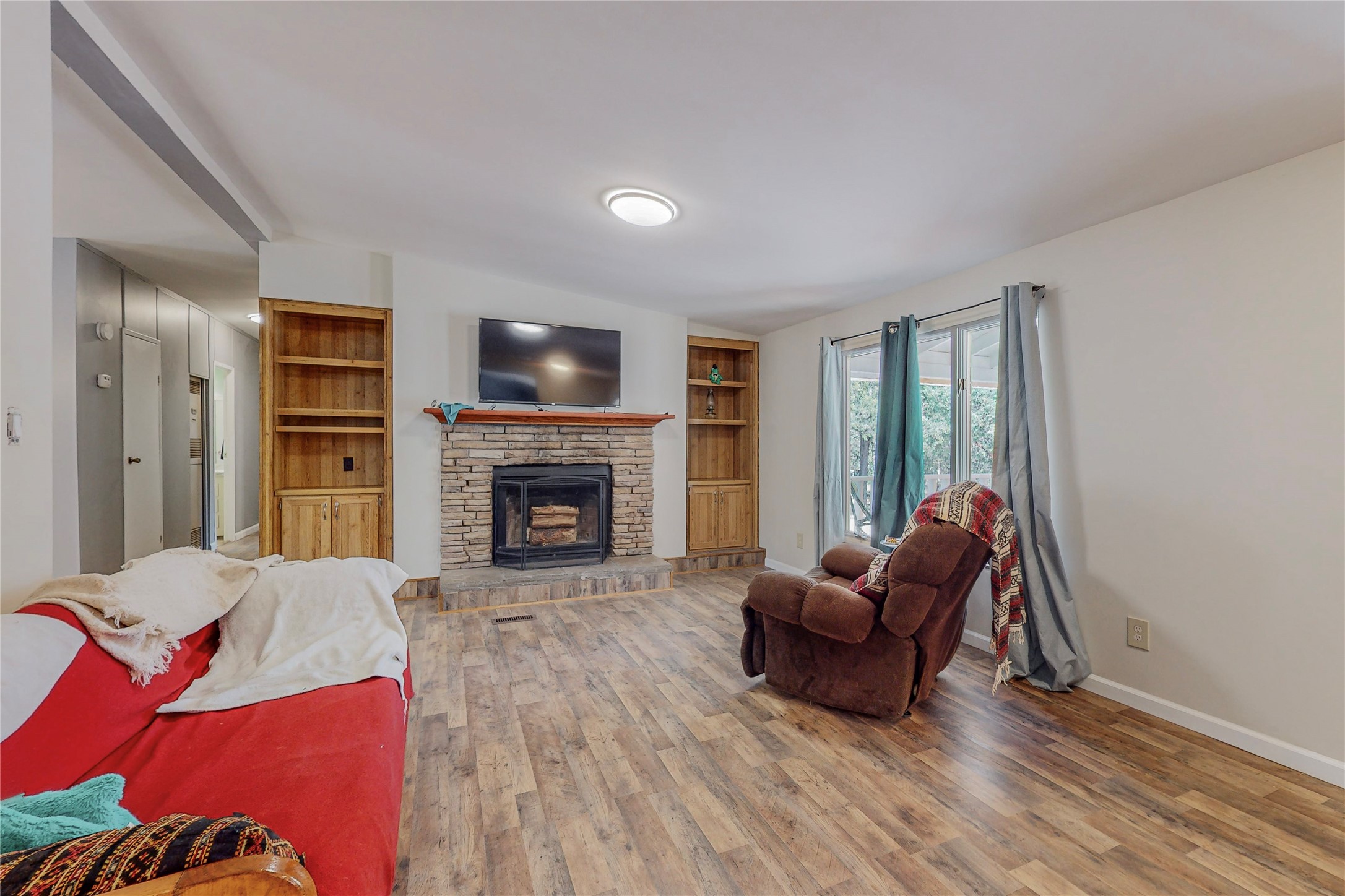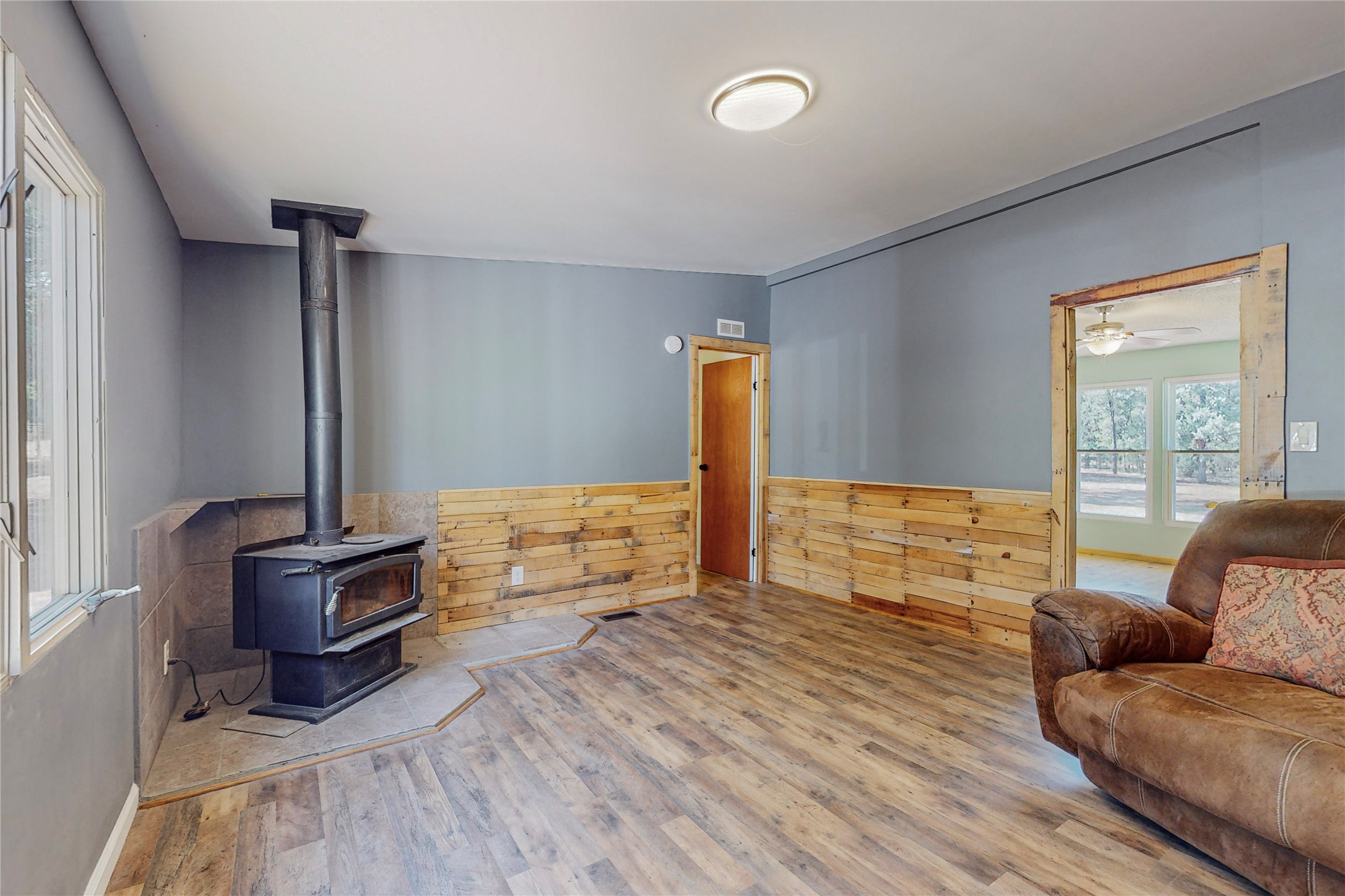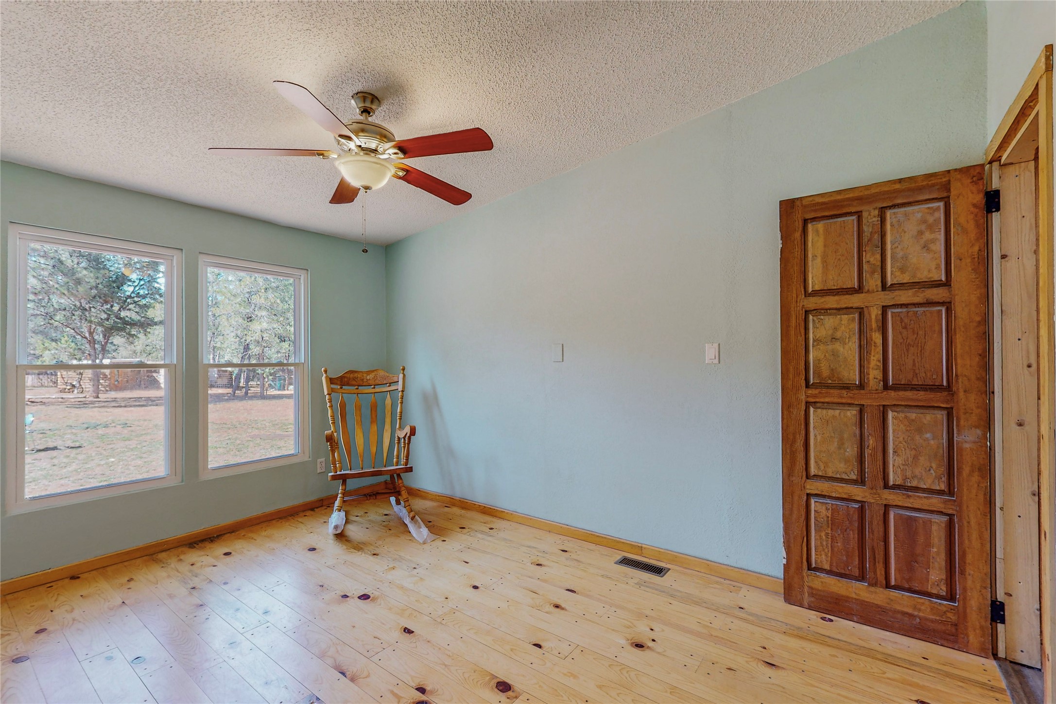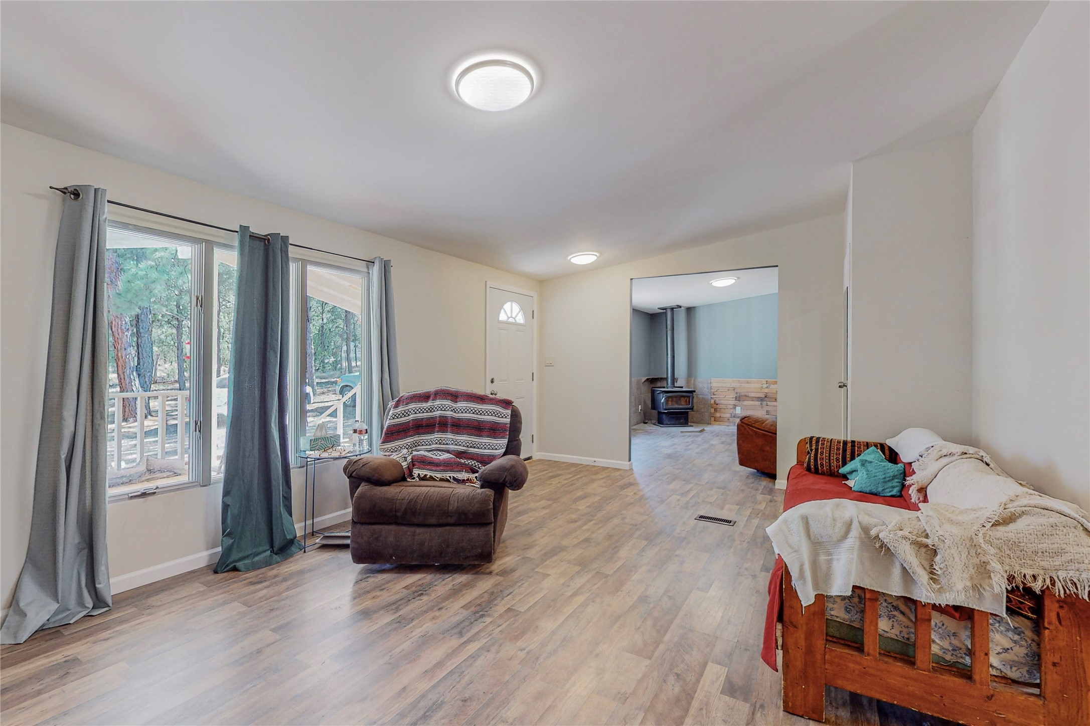 This home with a mother-in-law suit shows great pride of ownership with updates such as floors, countertops, drywall which has been recently painted, and let's not forget the beautiful newly finished wrap around deck. Sitting on a clean and clear two acres with tall pine trees that creates a private oasis. Included is a bonus 18 x 36 building with 220 electrical service, ready to be a workshop, mancave/sheshed, or anything you can imagine. Did I mention the enclosed area for raising chickens, goats, geese, turkeys, and so much more. The possibilities are endless for this turnkey ready home. SELLER IS GIVING ALLOWANCE FOR NEW APPLIANCES!Short distance to activities for the whole family such as fishing, hiking, hunting and the great Pecos Wilderness. Located 25 miles outside of Santa Fe this home is an outdoor lover's dream. Come make this oasis yours today!