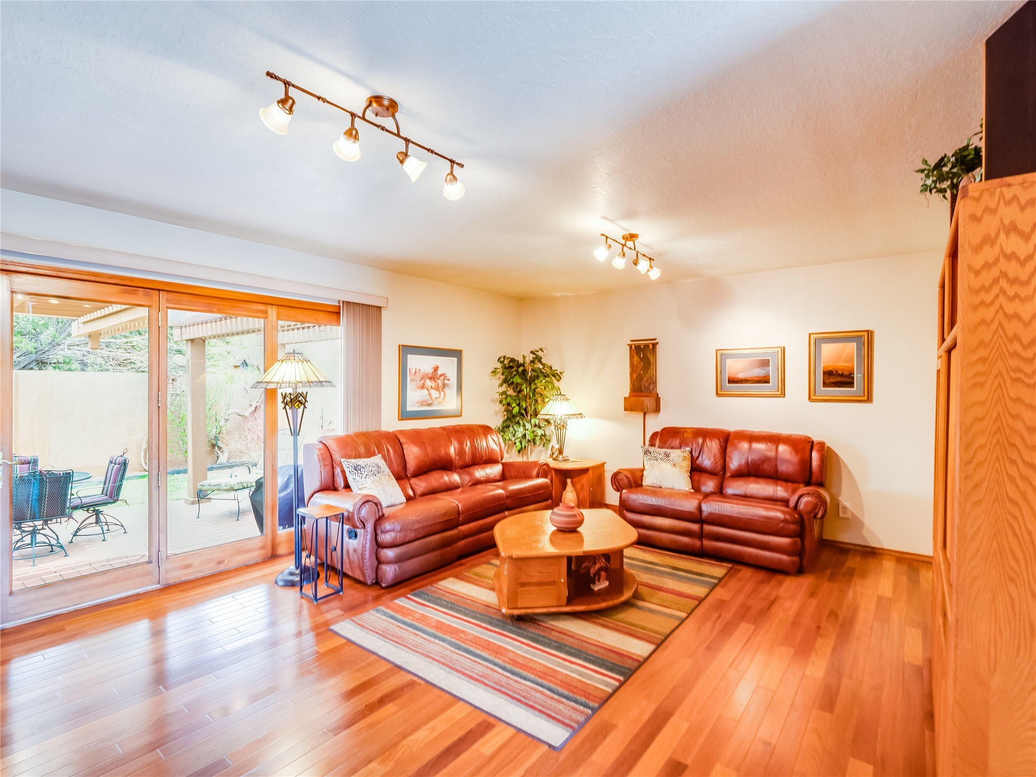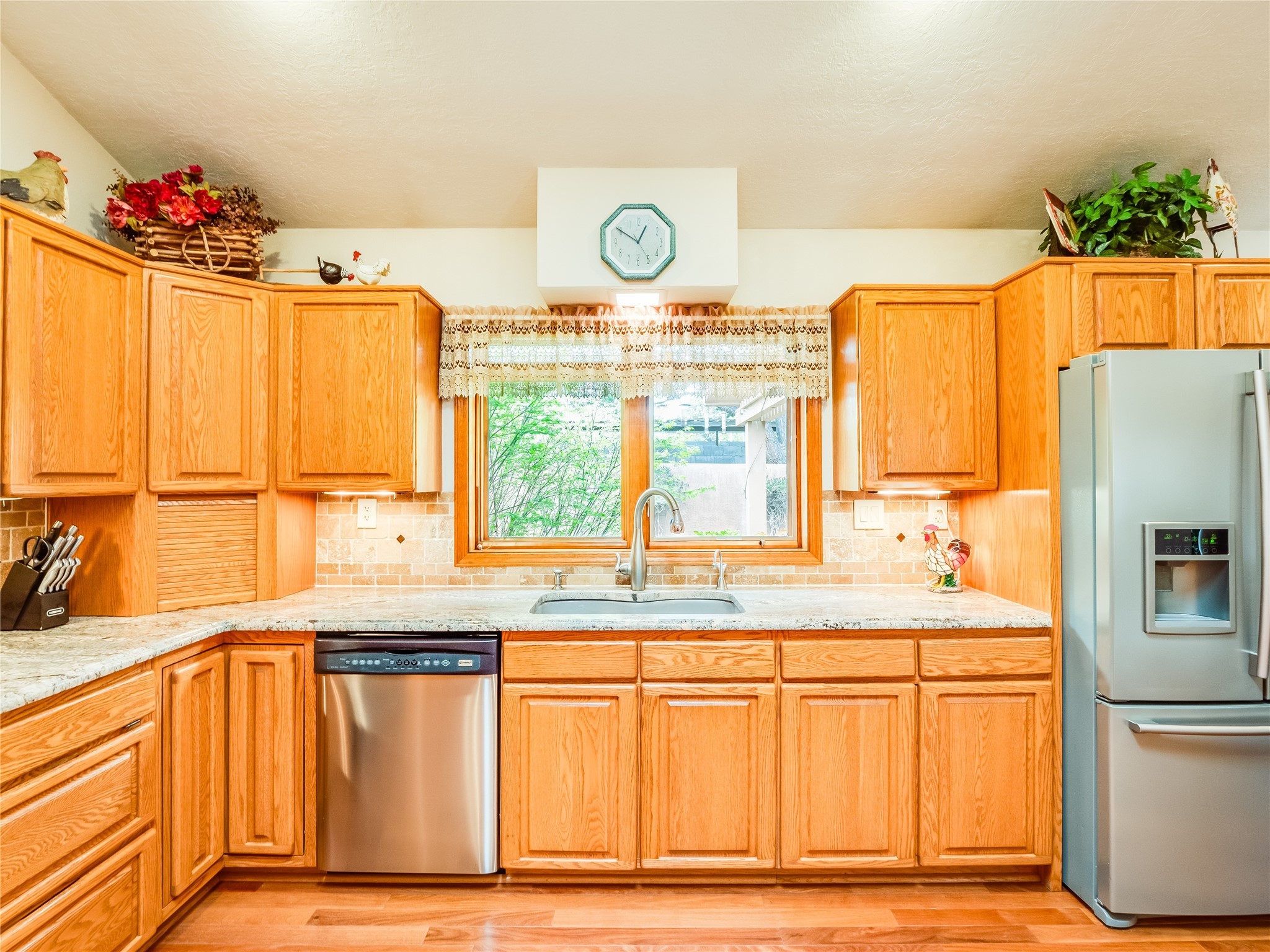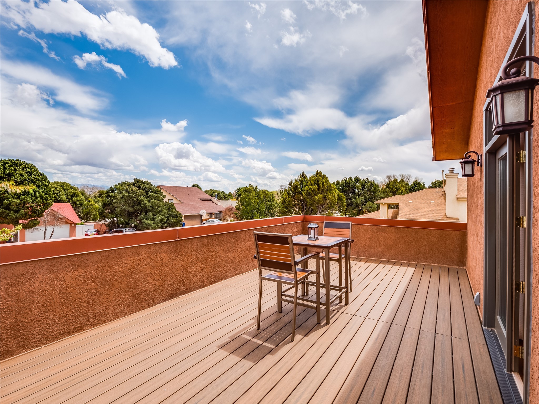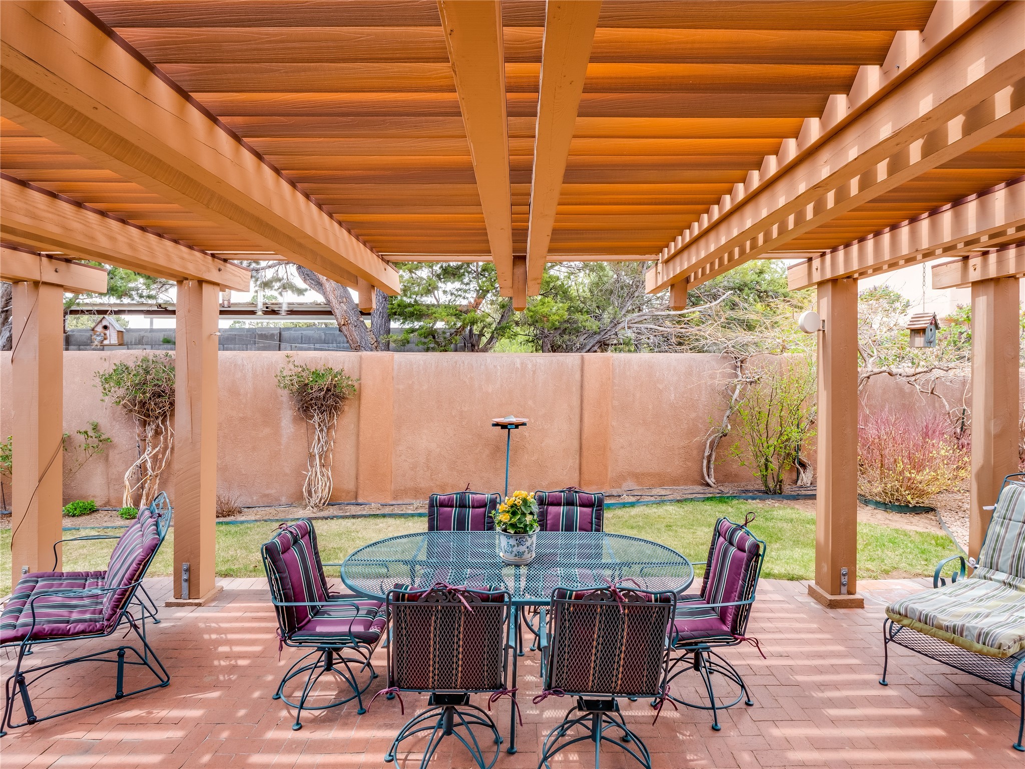 This Gorgeous two story home is located in a lovely White Rock neighborhood. Beautiful and easy maintenance with tons of curb appeal with mature trees and landscaping continues into the backyard with flower beds, grass, included Shed, and a large trellised covered brick patio that's ideal for outdoor entertaining and just staying cool in the summer time. A grand entrance with tile flooring, vaulted ceilings with chandelier and a curved staircase brings your eye up to the second floor. To your left is a bright Living Room with carpet, a large window and a gas fireplace with stone surround. The heart of the home is a huge Great Room consisting of Kitchen/Dining/Family Room which has wood floors and access to the backyard. The Kitchen has wood cabinets with granite counters, stone backsplash, and stainless steel appliances. Also on this floor is a Guest Bedroom, a Guest Bath with walk-in tiled shower, a Laundry Room and access to the oversized three car garage. Upstairs there's an open landing with wood floors and skylight. Two large bedrooms with carpet and a Full Bath with a double sink vanity. An enormous Primary En-suite with wood floors, his and hers walk-in closets, vaulted ceilings, a large private composite wood deck is the perfect retreat to start your day with a coffee or end your day with a nice glass of wine. The Bath has a double sink vanity with granite counter and a separate toilet bath/shower room with tile. Don't miss out on this beauty, book your tour today!
