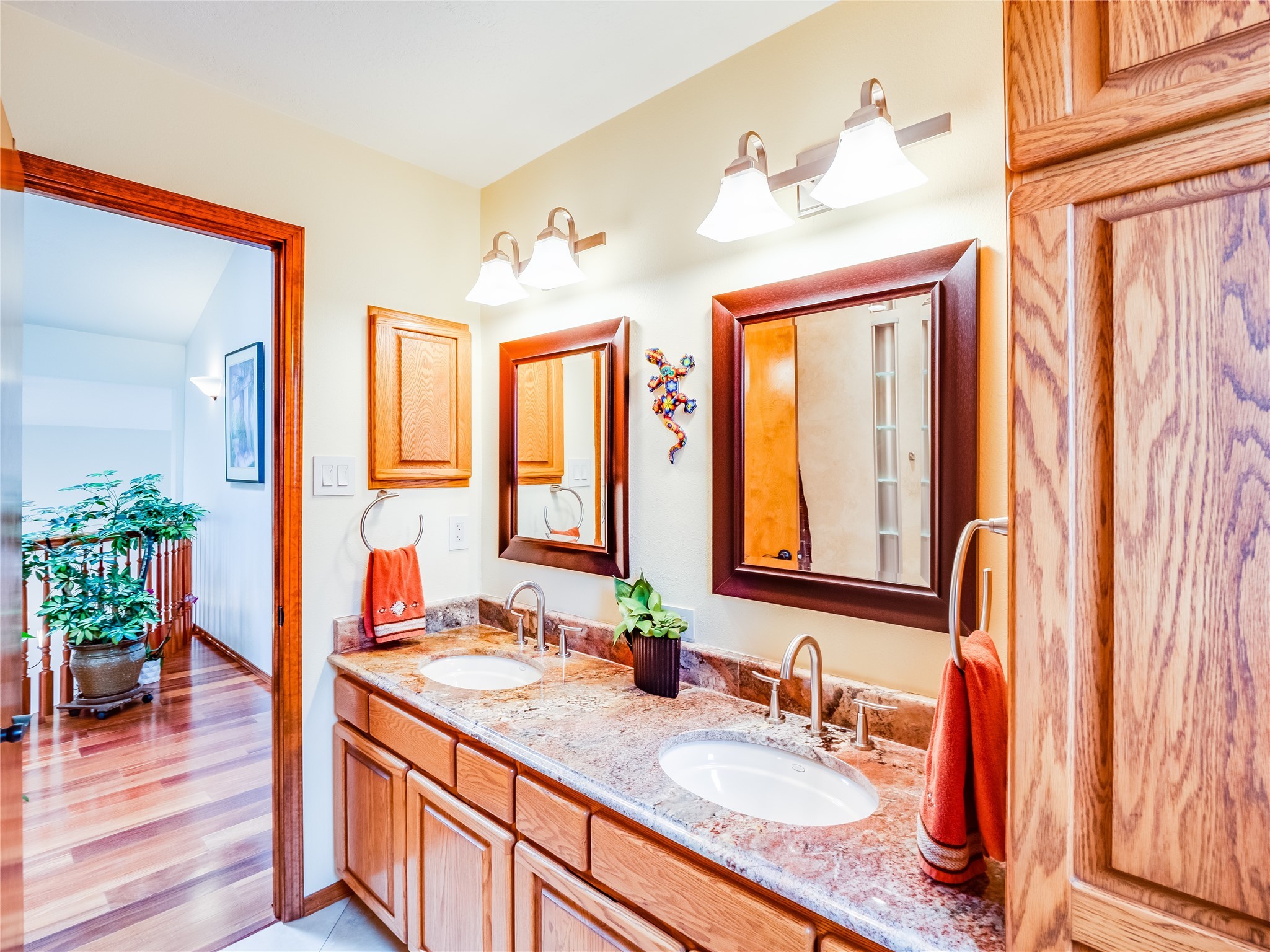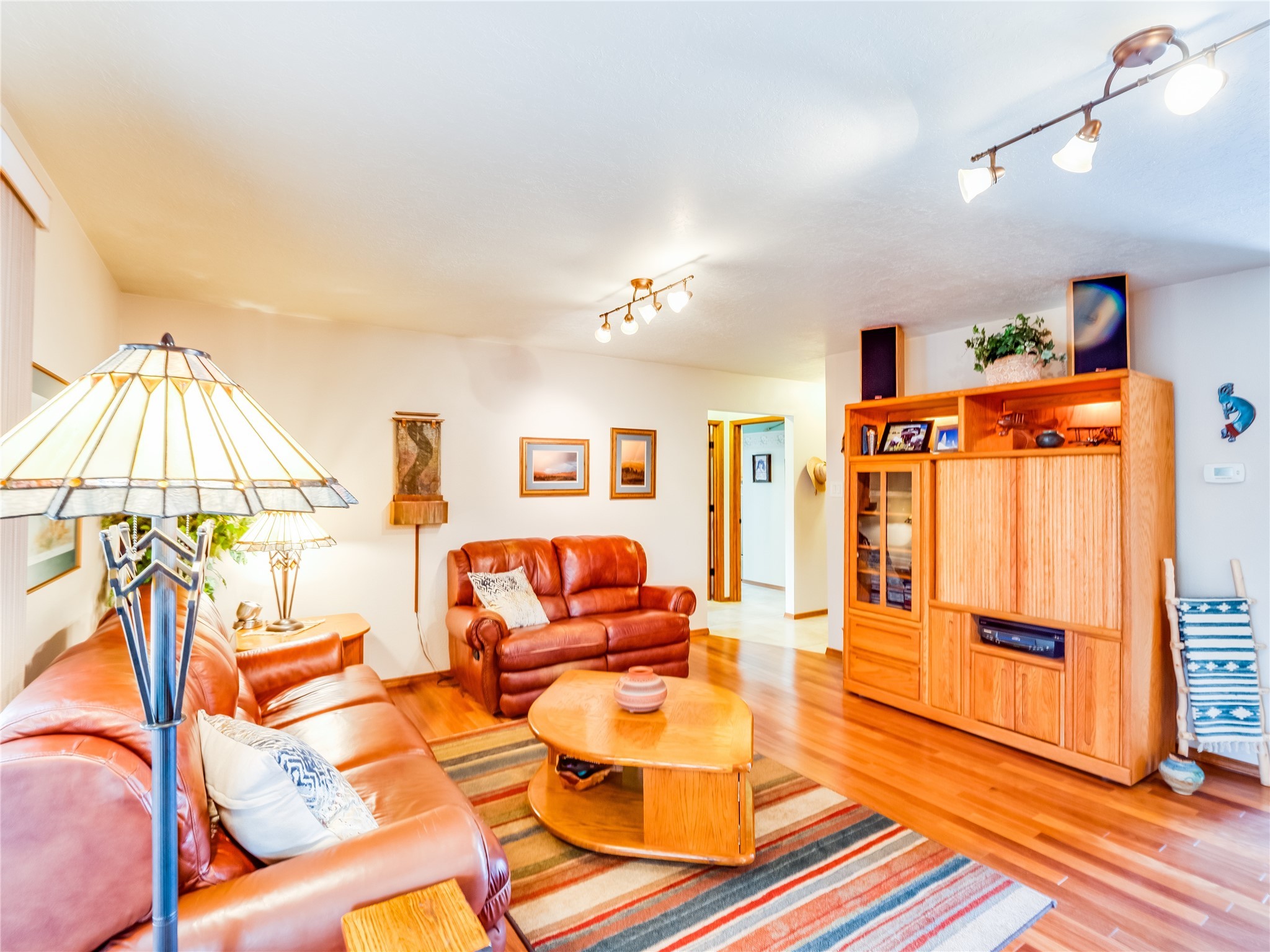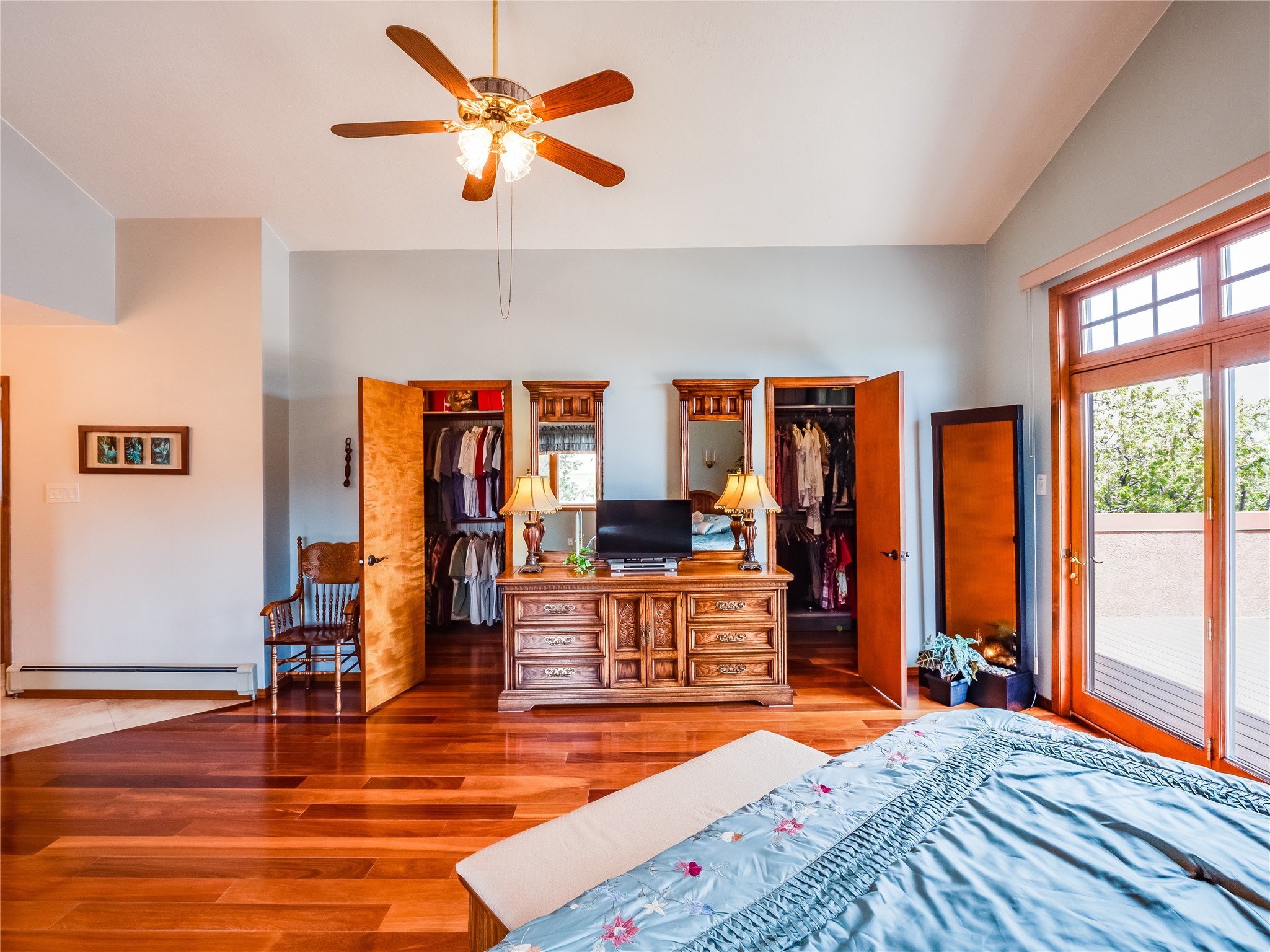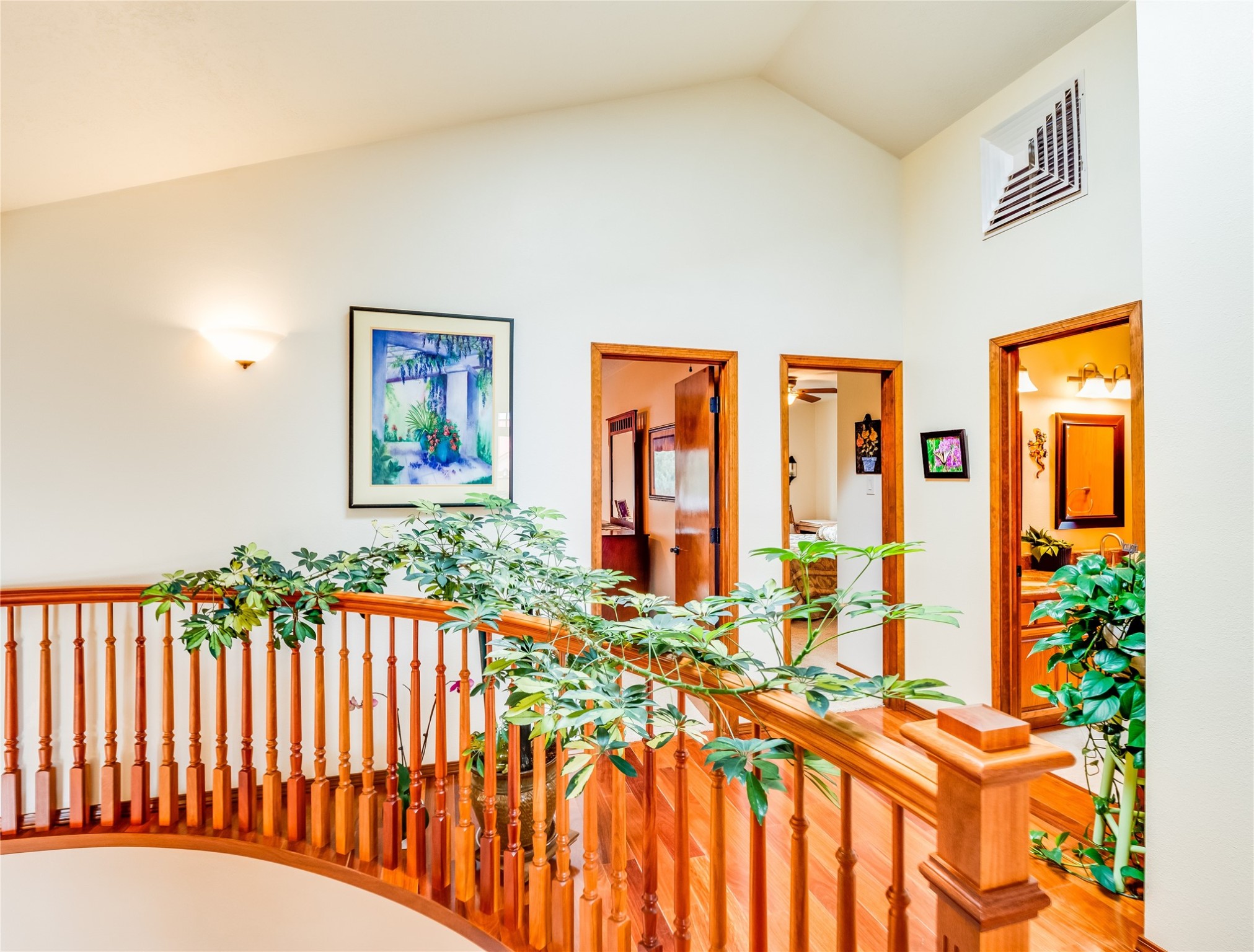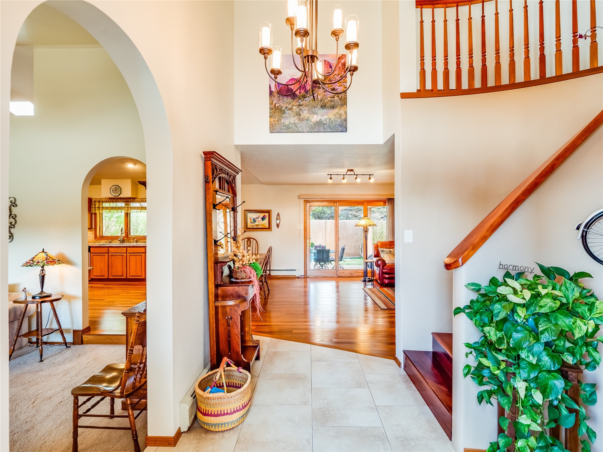 This Gorgeous two story home is located in a lovely White Rock neighborhood. Beautiful and easy maintenance with tons of curb appeal with mature trees and landscaping continues into the backyard with flower beds, grass, included Shed, and a large trellised covered brick patio that's ideal for outdoor entertaining and just staying cool in the summer time. A grand entrance with tile flooring, vaulted ceilings with chandelier and a curved staircase brings your eye up to the second floor. To your left is a bright Living Room with carpet, a large window and a gas fireplace with stone surround. The heart of the home is a huge Great Room consisting of Kitchen/Dining/Family Room which has wood floors and access to the backyard. The Kitchen has wood cabinets with granite counters, stone backsplash, and stainless steel appliances. Also on this floor is a Guest Bedroom, a Guest Bath with walk-in tiled shower, a Laundry Room and access to the oversized three car garage. Upstairs there's an open landing with wood floors and skylight. Two large bedrooms with carpet and a Full Bath with a double sink vanity. An enormous Primary En-suite with wood floors, his and hers walk-in closets, vaulted ceilings, a large private composite wood deck is the perfect retreat to start your day with a coffee or end your day with a nice glass of wine. The Bath has a double sink vanity with granite counter and a separate toilet bath/shower room with tile. Don't miss out on this beauty, book your tour today!