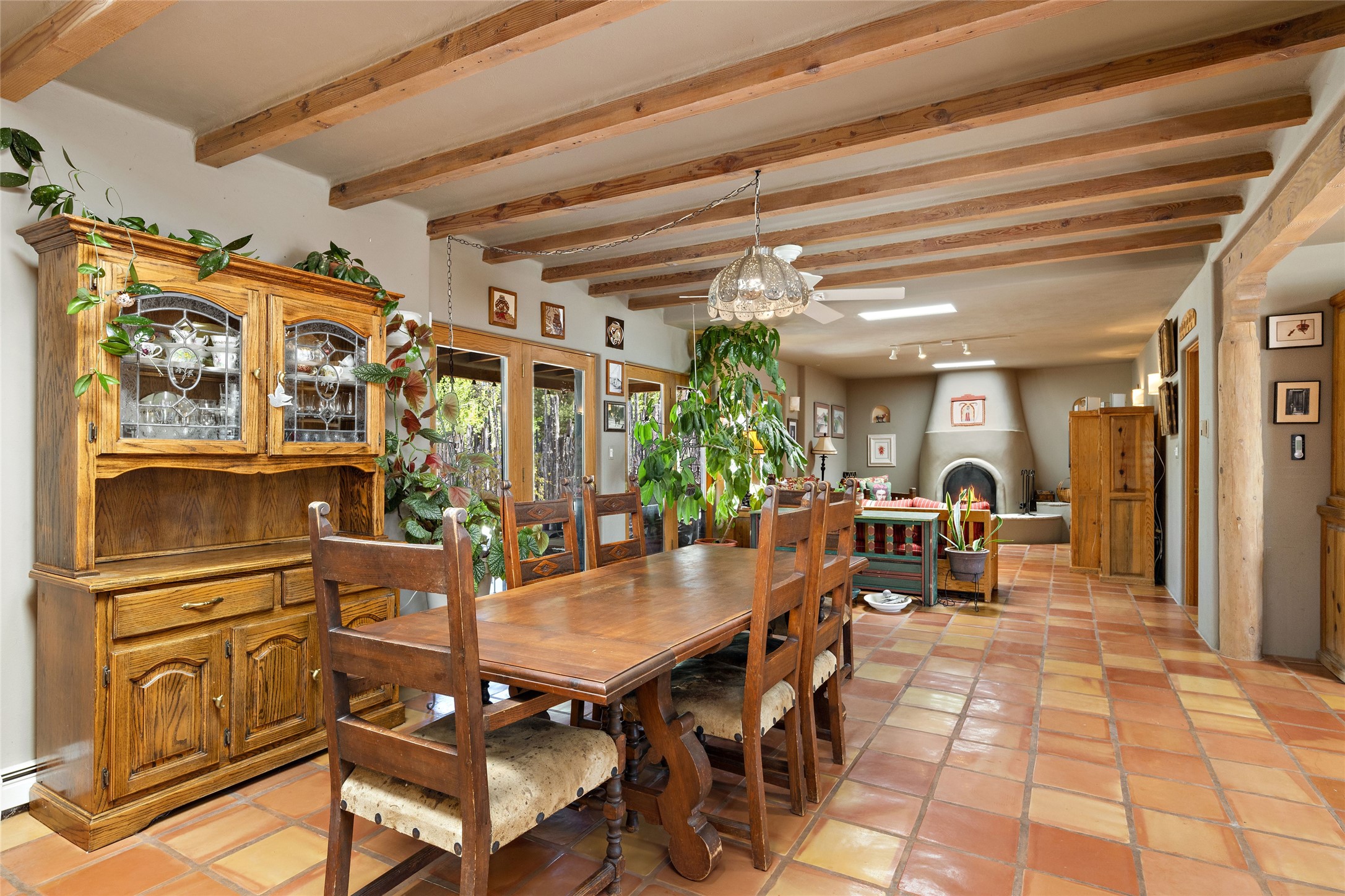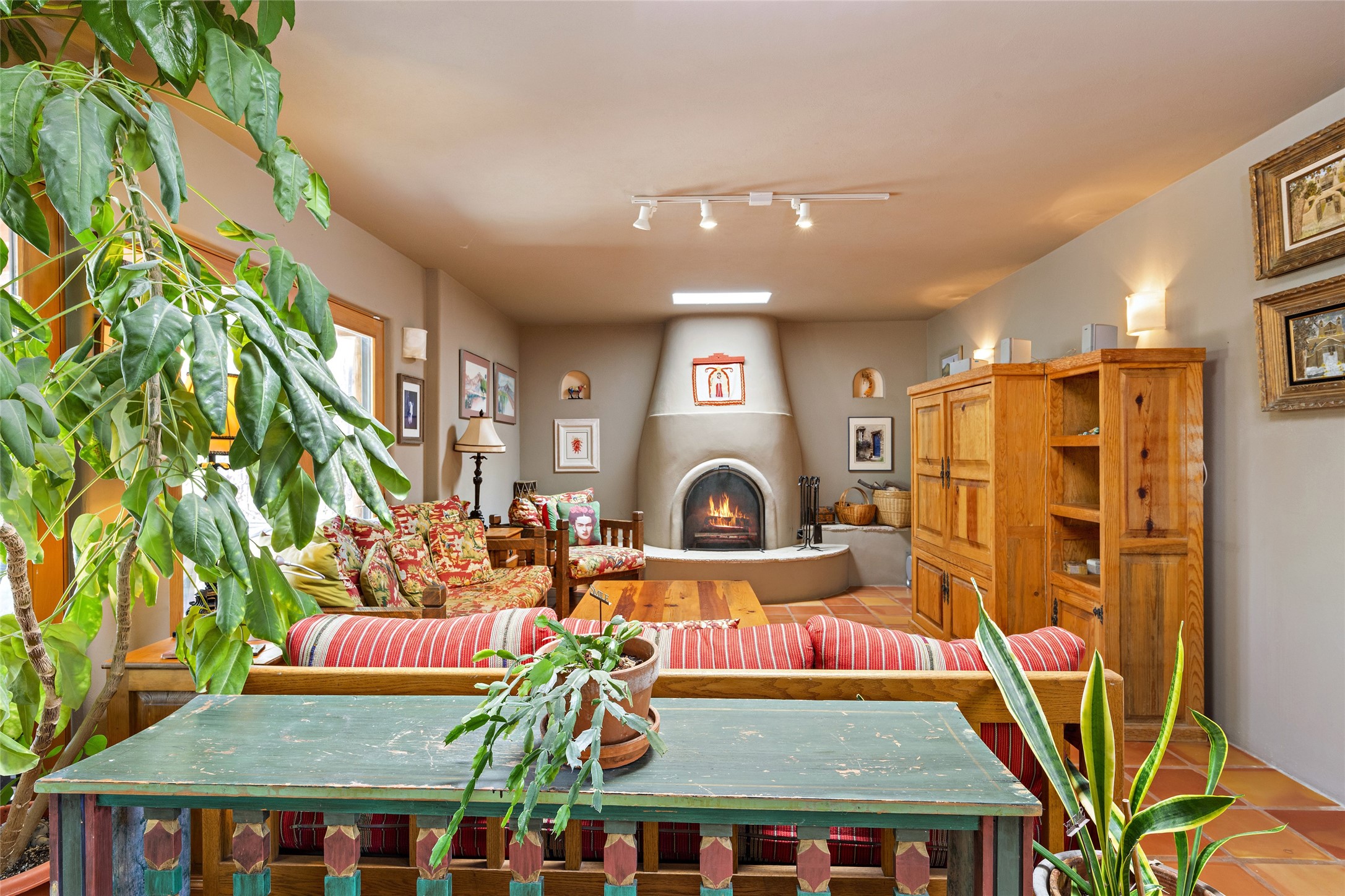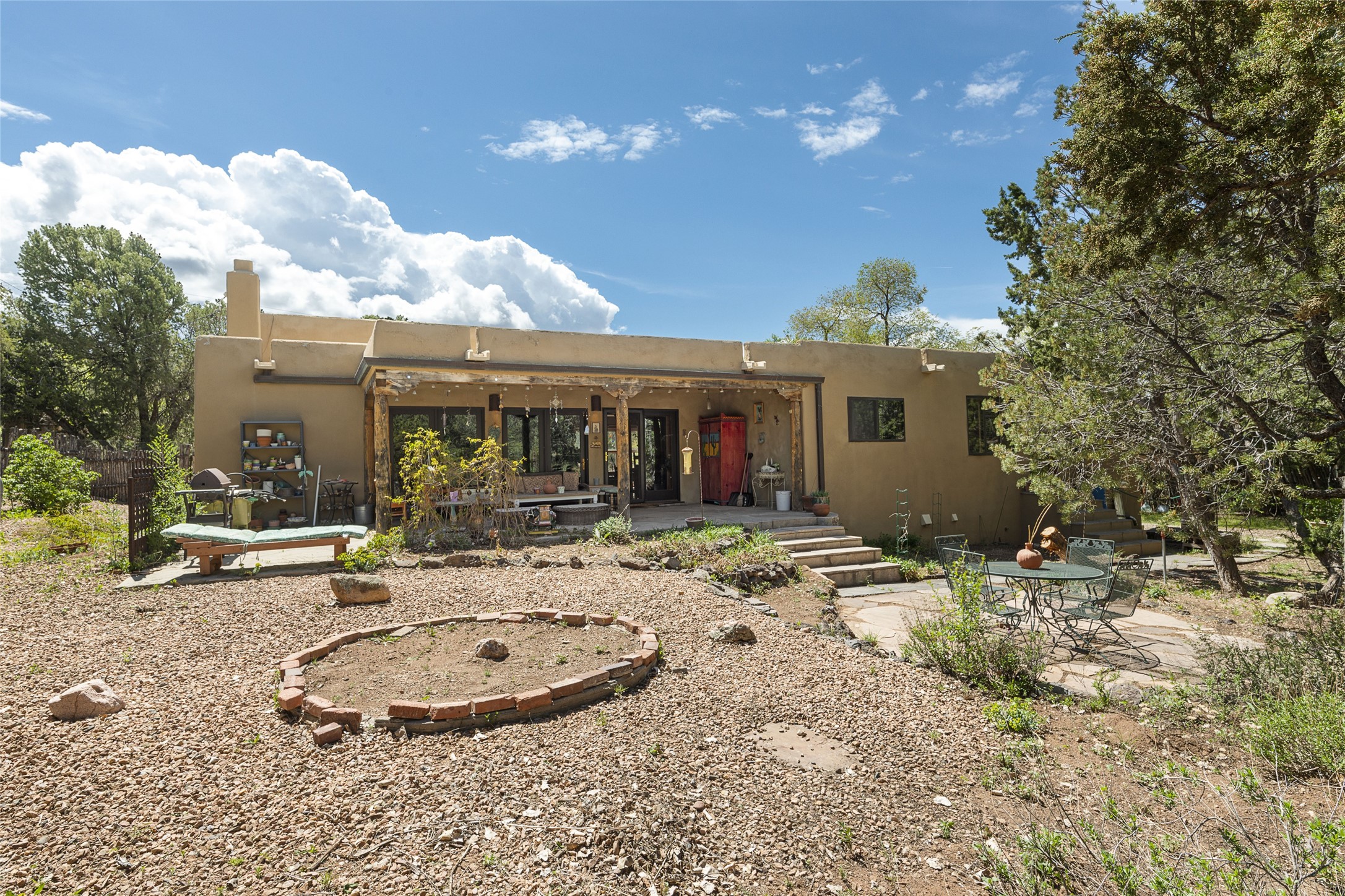 Just minutes away from the vibrant Santa Fe Plaza, this 3-bedroom, 3-bathroom home is nestled in a park-like setting on a sprawling .72-acre lot, this property offers the perfect blend of tranquility and convenience.As you enter, you'll be greeted by an open and flowing floor plan, seamlessly connecting the living room, den, and formal dining room--a true haven for entertaining guests. The two primary suites provide a luxurious retreat, while the additional rooms can be flexibly utilized as bedrooms, studios, or separate offices, catering to your unique needs. Revel in the charm of tile flooring, complemented by the elegance of some beam ceilings and the warmth of two Kiva fireplaces. A walled courtyard off the front primary suites adds a touch of serenity and seclusion to your living space.The home boasts a large backyard, perfect for outdoor activities and relaxation. Additionally, a long Portal enhances the comfort of the home during the delightful spring and summer months, offering an ideal setting for al fresco dining, grilling, and entertaining guests. The established landscaping, gardens, and raised beds provide opportunities for those with a green thumb to indulge in their passion.This home has been thoughtfully upgraded over time, ensuring modern comfort and functionality. The generously sized rooms provide ample space, while the bathrooms boast walk-in showers, adding a touch of luxury to your daily routine.Seize the opportunity to explore this captivating property today and discover if it's the perfect fit for you. Schedule a visit and embark on a journey to witness the timeless charm and remarkable features that make this home a true gem.