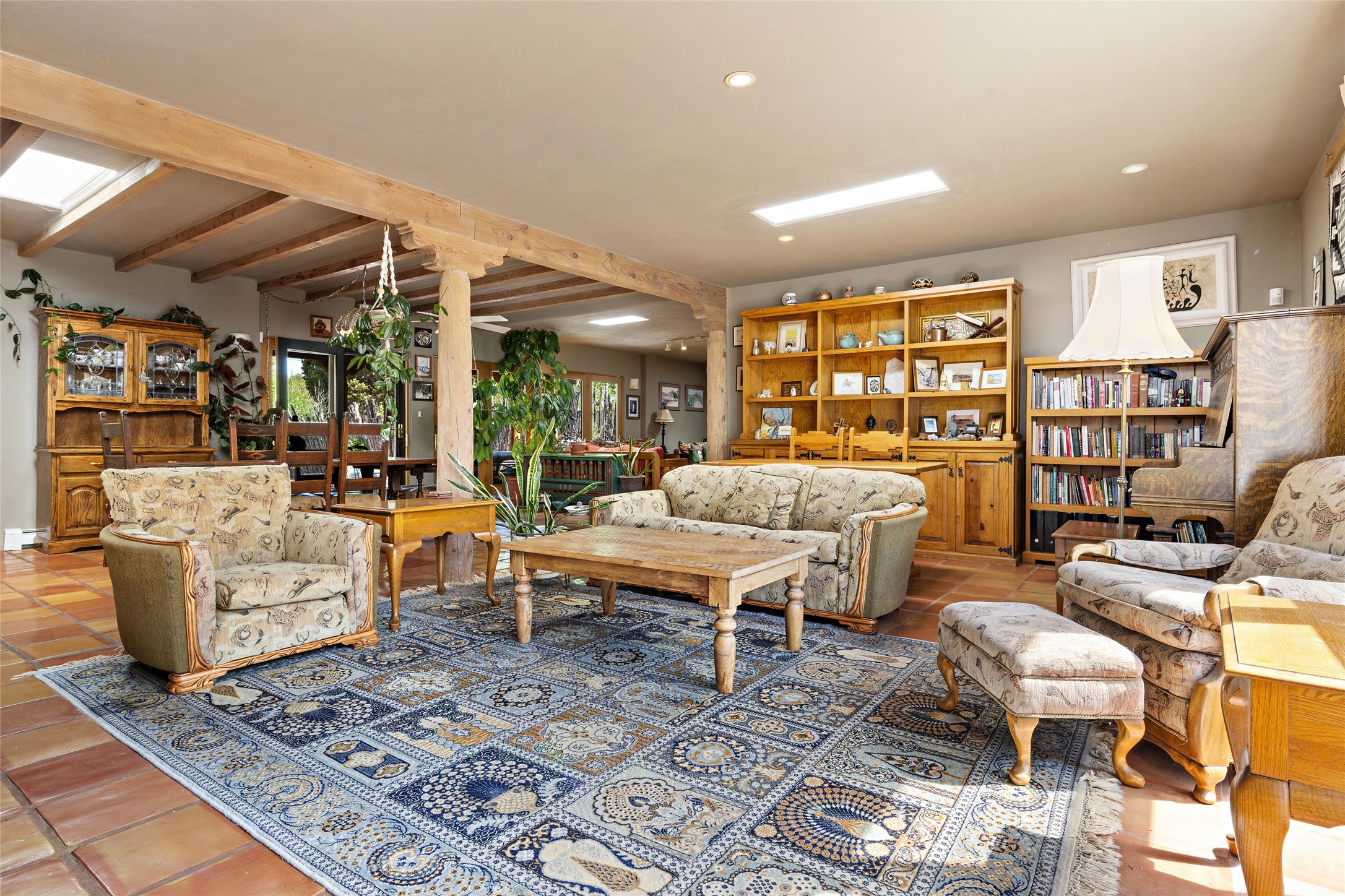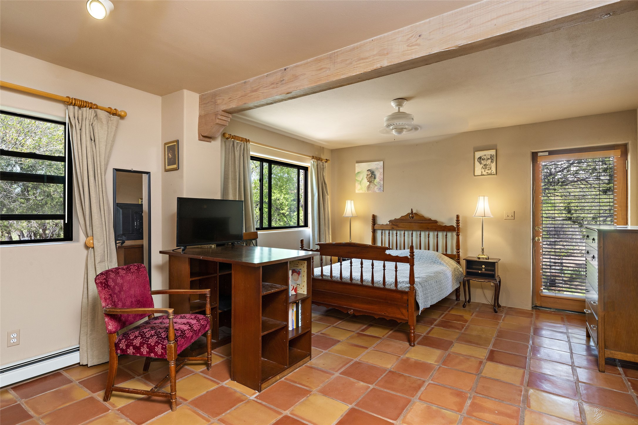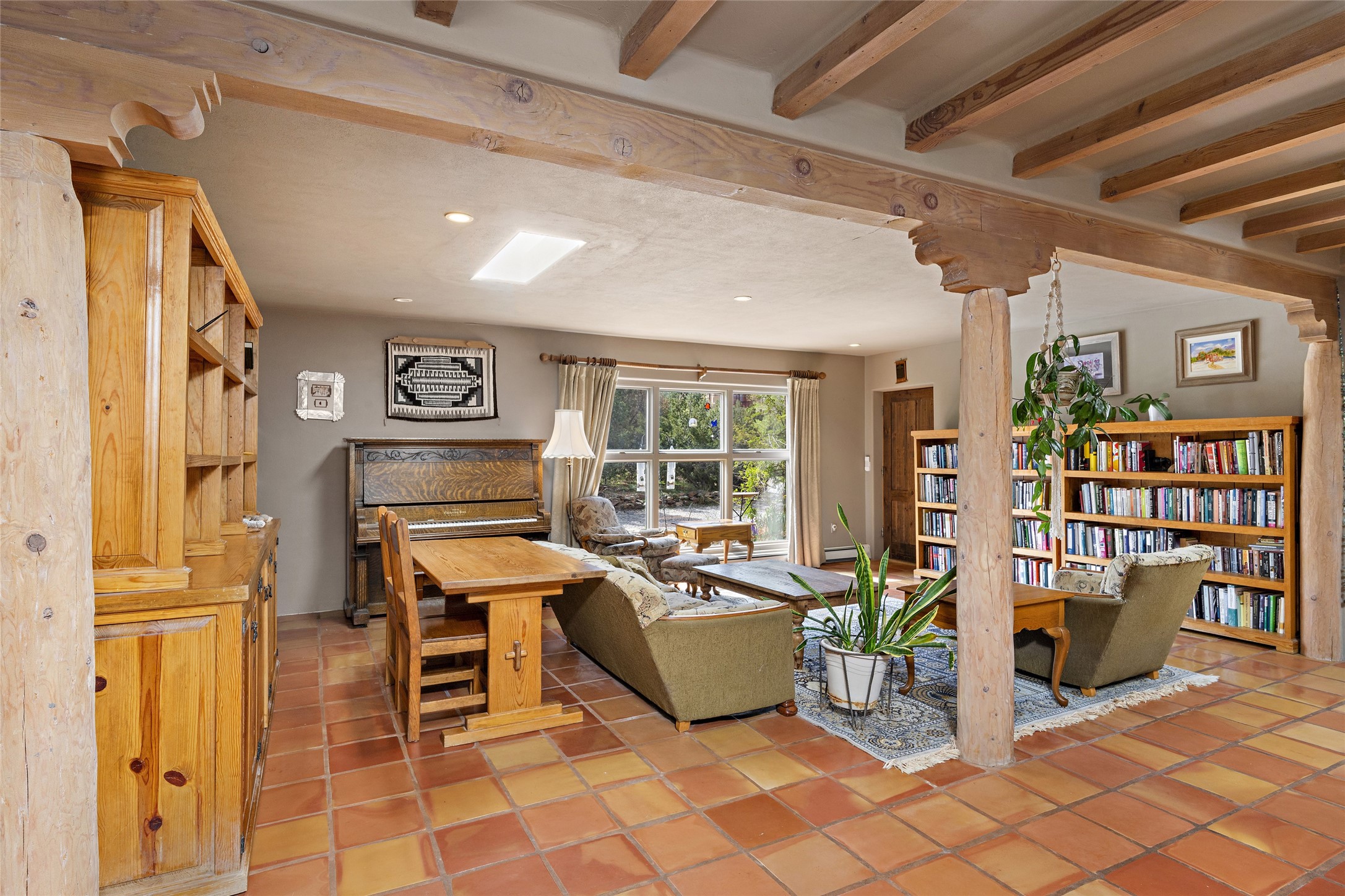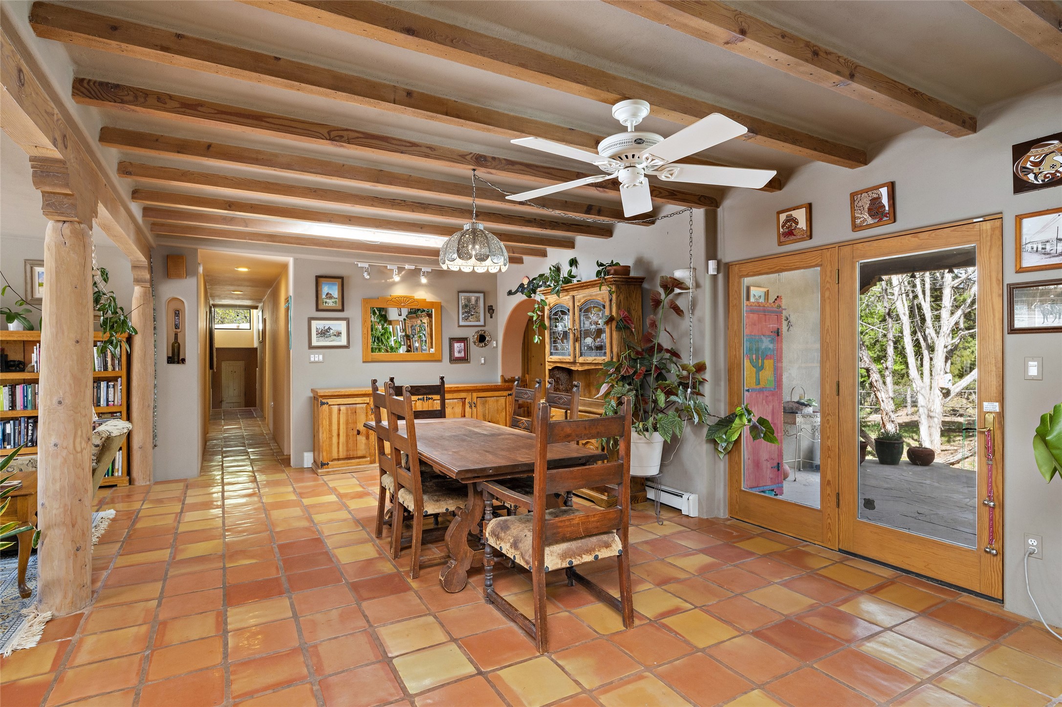 Just minutes away from the vibrant Santa Fe Plaza, this 3-bedroom, 3-bathroom home is nestled in a park-like setting on a sprawling .72-acre lot, this property offers the perfect blend of tranquility and convenience.As you enter, you'll be greeted by an open and flowing floor plan, seamlessly connecting the living room, den, and formal dining room--a true haven for entertaining guests. The two primary suites provide a luxurious retreat, while the additional rooms can be flexibly utilized as bedrooms, studios, or separate offices, catering to your unique needs. Revel in the charm of tile flooring, complemented by the elegance of some beam ceilings and the warmth of two Kiva fireplaces. A walled courtyard off the front primary suites adds a touch of serenity and seclusion to your living space.The home boasts a large backyard, perfect for outdoor activities and relaxation. Additionally, a long Portal enhances the comfort of the home during the delightful spring and summer months, offering an ideal setting for al fresco dining, grilling, and entertaining guests. The established landscaping, gardens, and raised beds provide opportunities for those with a green thumb to indulge in their passion.This home has been thoughtfully upgraded over time, ensuring modern comfort and functionality. The generously sized rooms provide ample space, while the bathrooms boast walk-in showers, adding a touch of luxury to your daily routine.Seize the opportunity to explore this captivating property today and discover if it's the perfect fit for you. Schedule a visit and embark on a journey to witness the timeless charm and remarkable features that make this home a true gem.