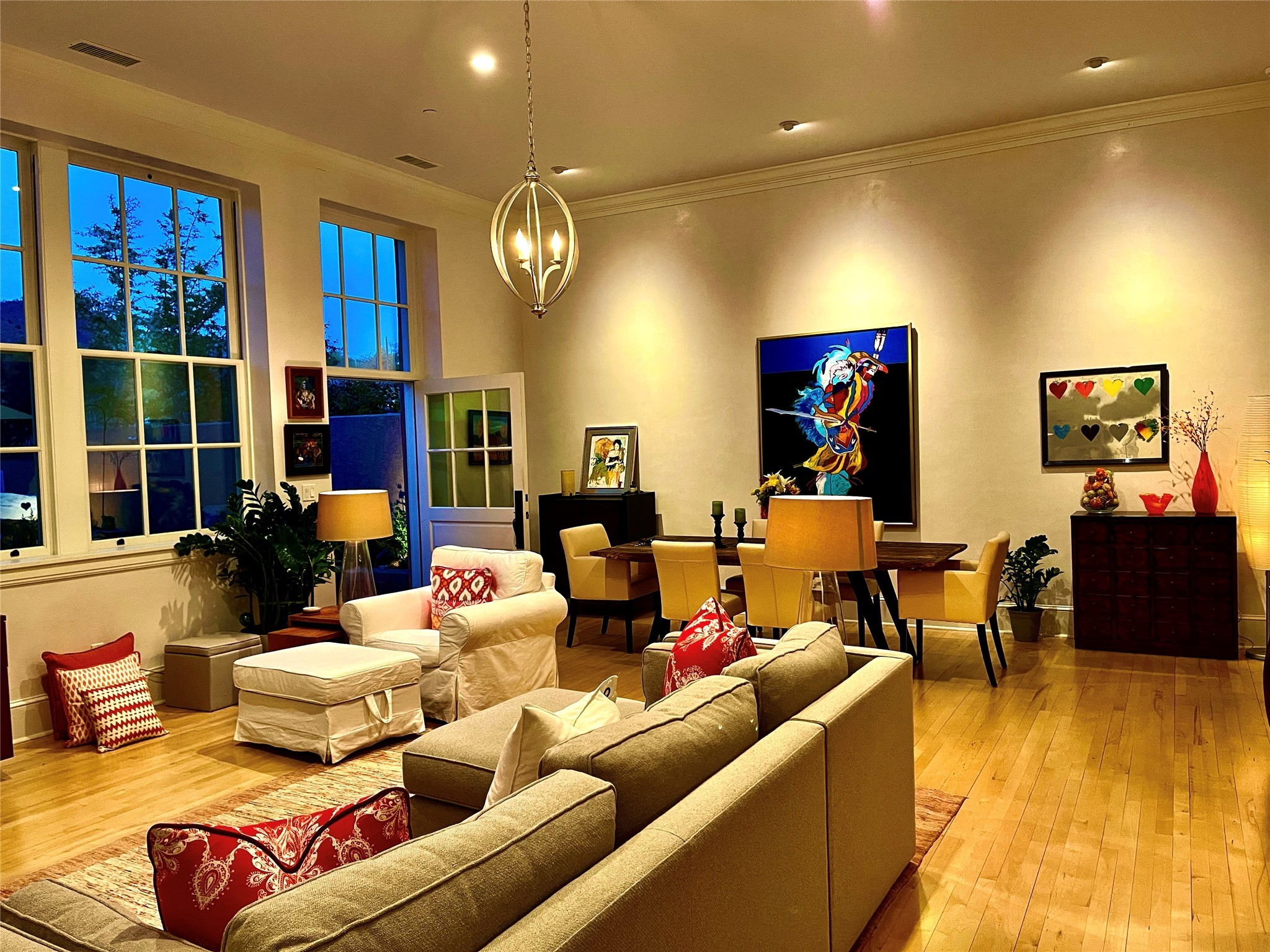 The Manderfield enclave encompasses a gorgeous, small compound located in the historic Eastside featuring just 8 units. Five of the 8 units were completely restored by Prull and Associates in 2016, winning the 2018 Heritage Historic Preservation Award and represented the original Manderfield School designed by John Gaw Meem in 1927. This historic renovation, preservation and repurposing has now taken on a distinguished life of its own. High style and sophistication-unlike anything in Santa Fe. A perfect location across from the Santa Fe River and Water History Park and Museum. Gorgeous in every way, this truly sophisticated, yet hip, contemporary home features gorgeous wood floors, 11 foot soaring ceilings with walls of windows to capture not only the Eastern morning light, but the exquisite views of the historic Eastside and Canyon foothills, including Pedregal and Picacho Peak. A modern great room concept incorporates a living/dining combination with gallery walls perfect for a large art collection, gas fireplace lined by built-in bookcases. Truly exquisite kitchen with gorgeous, unique, tile and cabinetry opens up to the great room with a bar height open counter. Probably most notable and unusual, this unit comes complete with an oversized two car garage. Hike the River Trails along the banks of the Santa Fe River, picnic at the Water History Park across the street or saunter down to The Tea House, El Farol or Geronimos, along with the many famous Santa Fe Galleries. Most remarkably listen to the occasional sounds of church bells ringing from the Cristo Rey Church next door. Here you can listen, feel and live the heartbeat of Santa Fe.