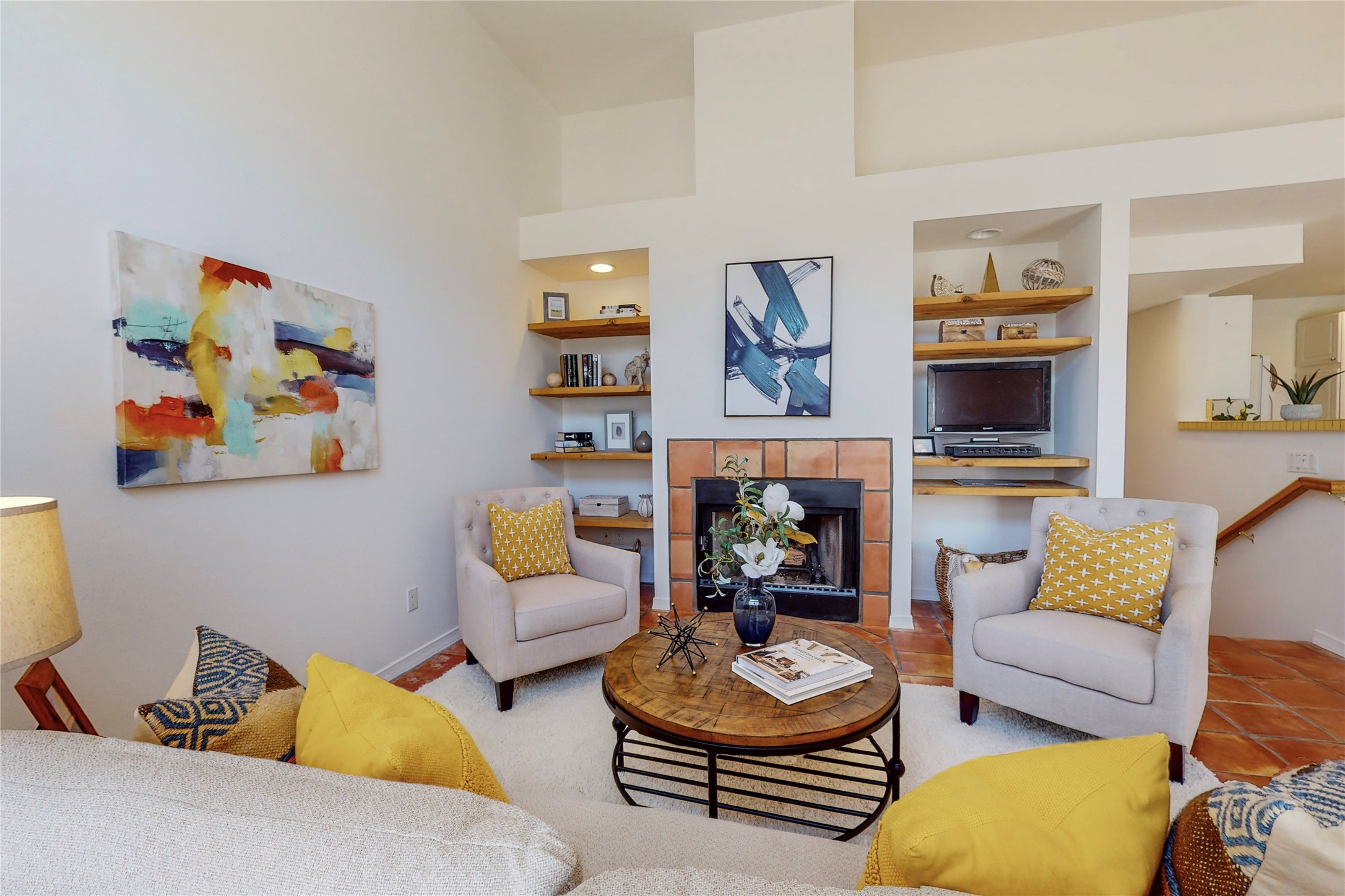 This beautiful condo in the El Matador Gated Complex is in the sought-after newer section with 2 beds, 2 full baths, a front-facing balcony off the bedroom on 2nd floor, and a lovely back courtyard that looks out to vacant land, wonderful for entertaining. Large windows and multiple sliding doors allow for ample natural light, and a gas fireplace in the living room creates a cozy, welcoming living space. Easy access to the culture and attractions of downtown, less than a mile from the Plaza. Includes designated covered parking and the grounds are well-maintained with mature landscaping. This condo is move-in ready. Schedule a showing today!
