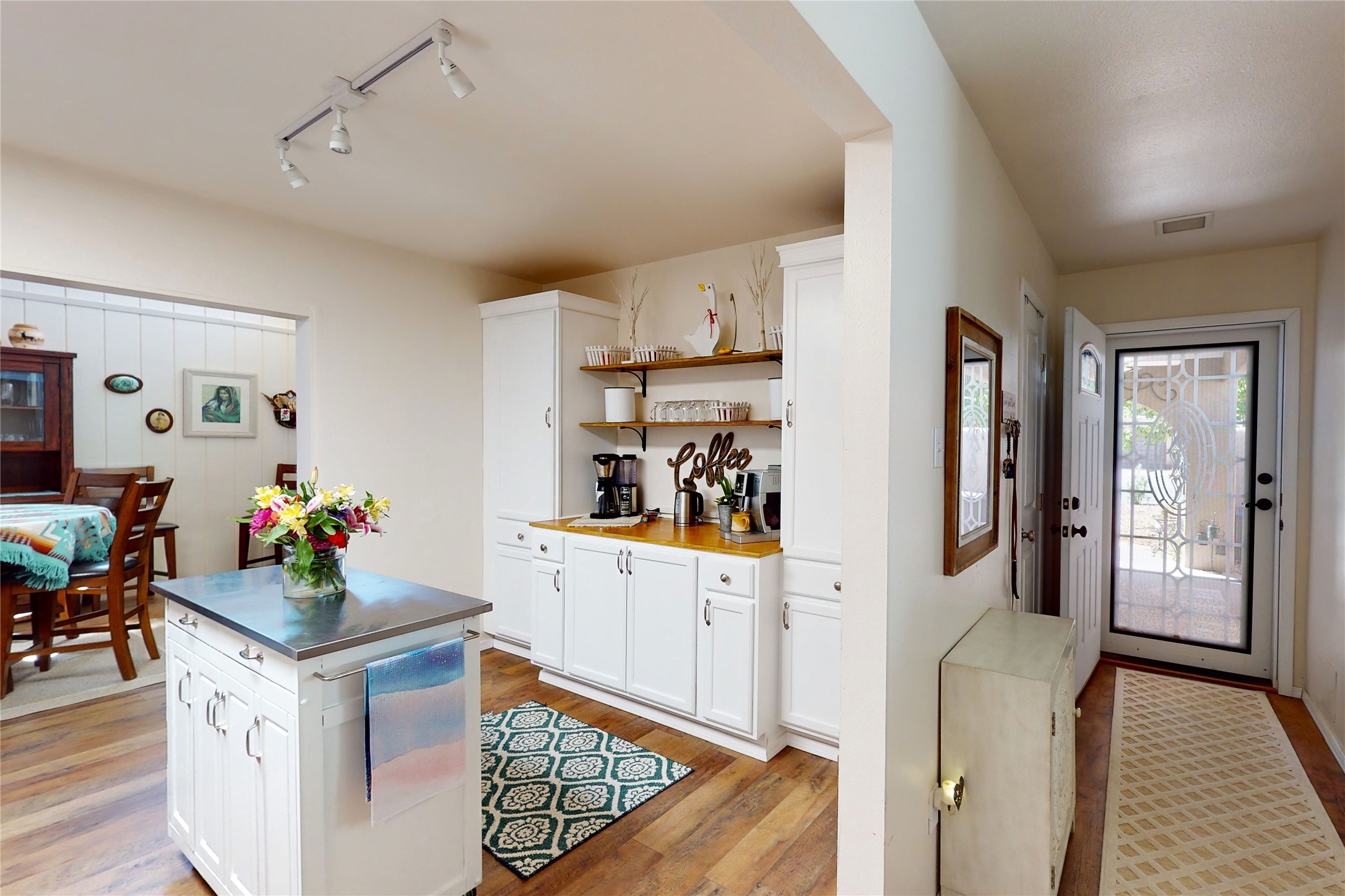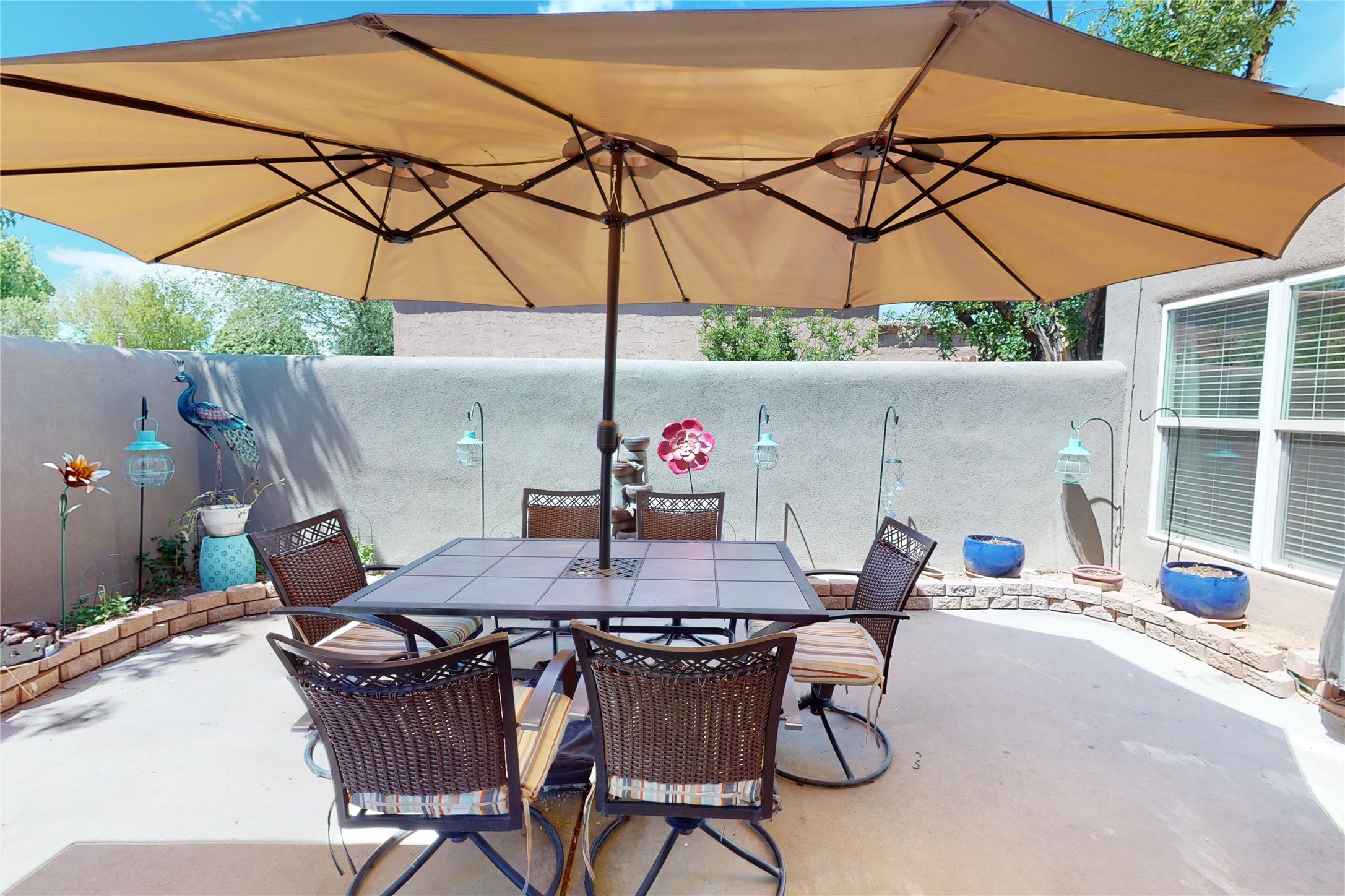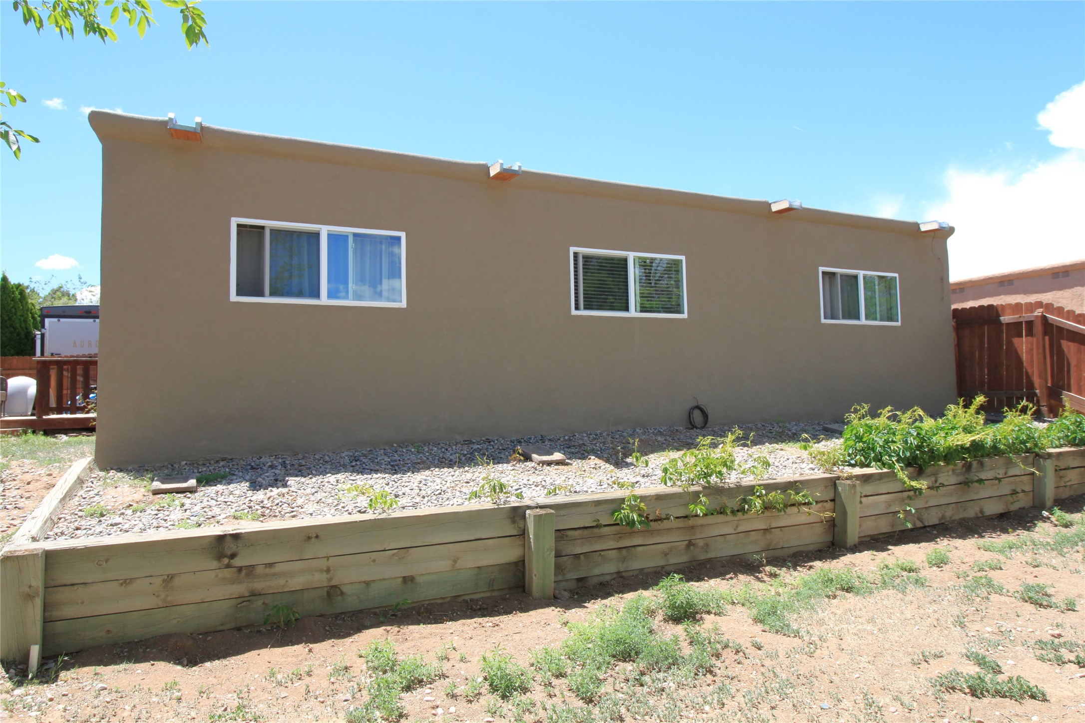 Fantastic home with lots of beautiful upgrades. This home has been remodeled inside and out and is ready for you to enjoy. As you approach, you will love the front courtyard with new light fixtures and fan. The courtyard is a great space to extend the living area of the home and is great for entertaining. Once inside you will notice the wood-look flooring that continues throughout the home and the charming Kiva fireplace in the living room. The kitchen was remodeled in 2022 with stainless-steel appliances, sink, faucet, and disposal as well as the addition of cabinetry with crown molding. The dining area with clerestory windows and access to the side deck is another great addition. The large primary suite has an attached bath that was remodeled in 2022 with a new double sink vanity, and fixtures. There are two additional guest rooms and an additional bathroom to give you lots of space. Additional updates to the interior include new doors, new ceiling fans, new outlets, and switches. The home is light and bright and has new LED lighting and fresh paint throughout. On the exterior, there are new windows and doors, new Canales, and new synthetic stucco. In 2021 a new furnace with central air conditioning was added so you will be comfortable all year long. The pretty security door in the front of the house is wonderful for allowing fresh air while keeping the home secure. There is RV parking, a 2-car garage with overhead shelves and the side yard shed for outside tools providing lots of storage options. This is a wonderful opportunity to enjoy a lovely home where all the work has been done and you can experience the comfortable living this home provides.