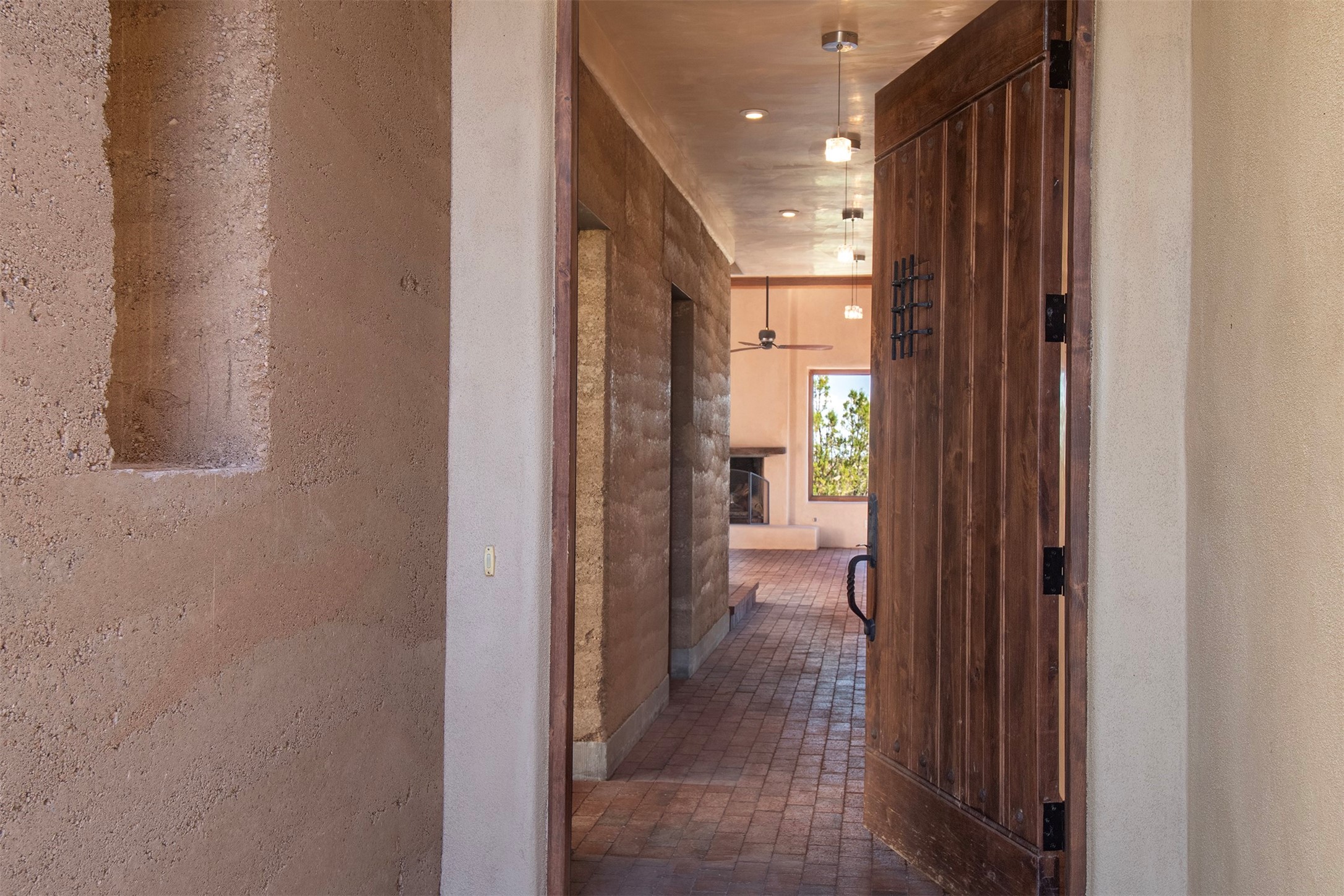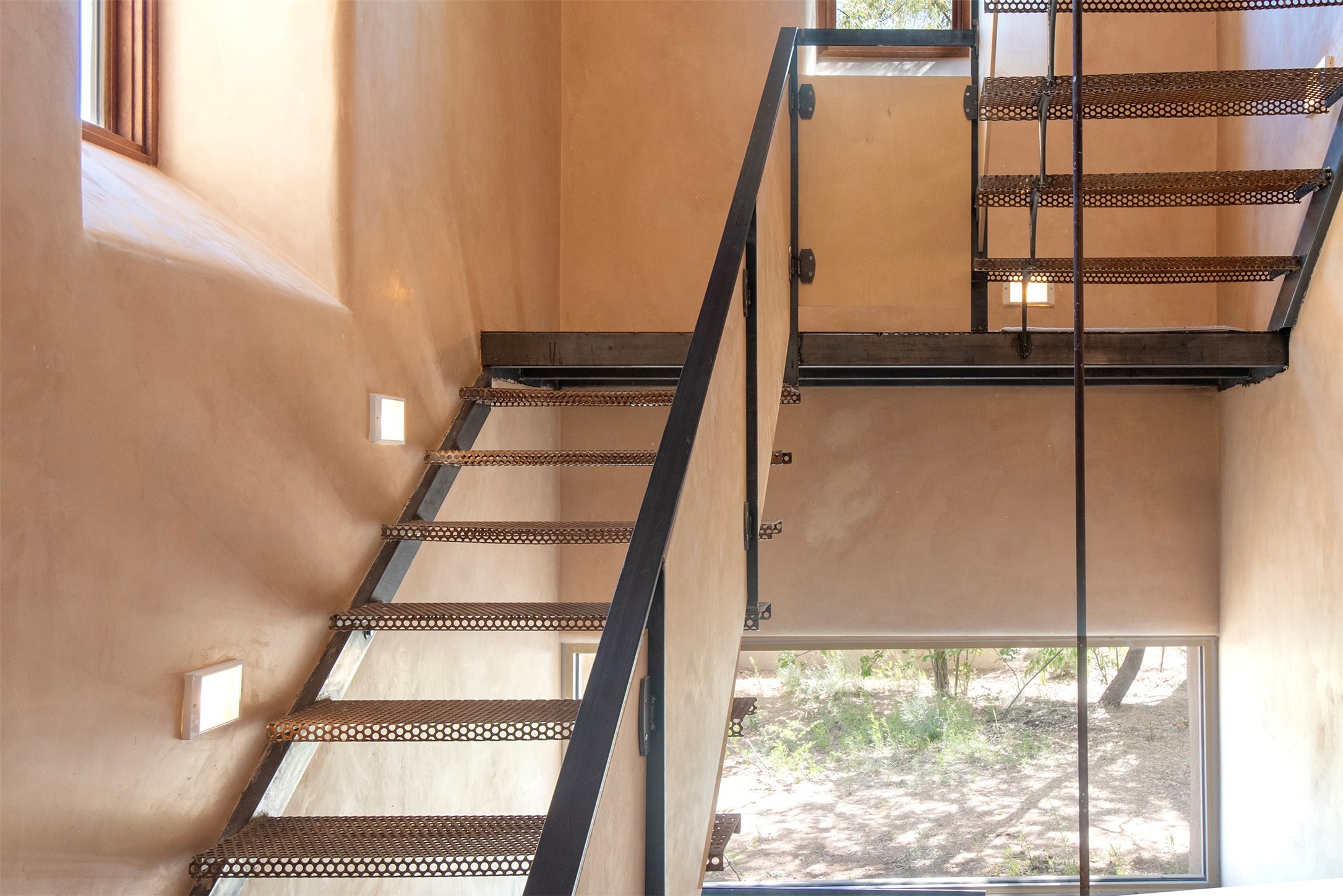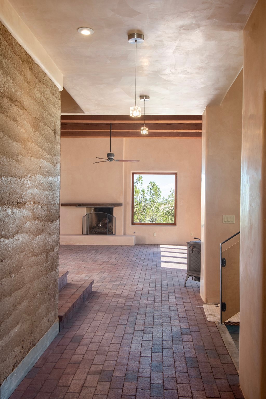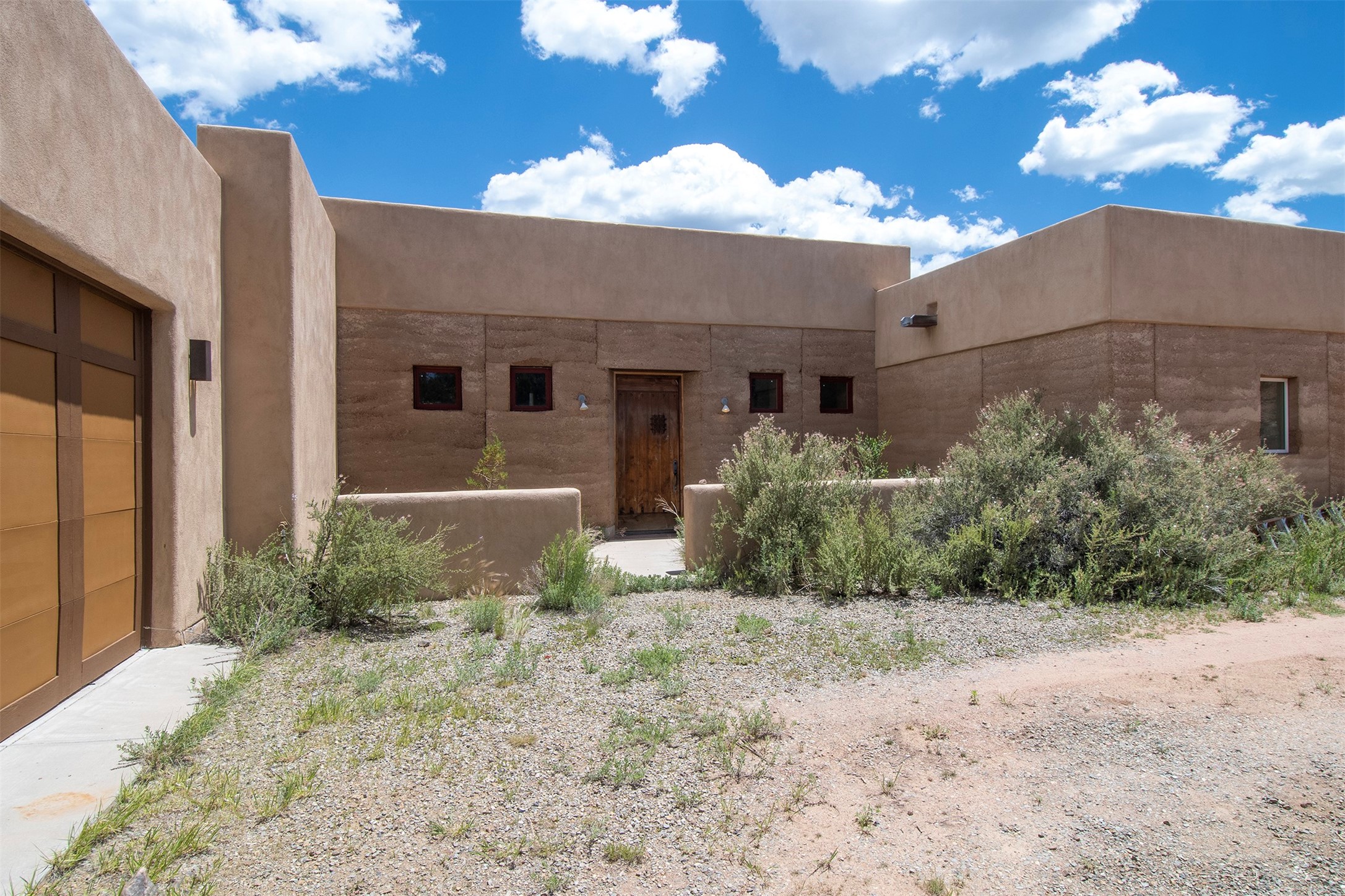 Introducing 23 Lavadero Rd, conveniently located in a neighborhood that offers a short commute to Los Alamos and Santa Fe, breathtaking views of the Sangre de Cristos and Jemez Mountains.Tucked behind Coyote Peak in the quaint hamlet of Tesuque is a stunning home and guest house, masterfully designed by the architect Efthimios Maniatis. One of the last rammed earth homes built with Chandler Huston in the Santa Fe area.As you walk the property, you'll be captivated by the custom garden walls constructed with stones sourced from Bishop's Lodge. Step inside, and you'll be greeted by the interior's exquisite craftsmanship, including steelwork by local metal artist Jeff Overlie. Notably, the basin sinks throughout the house, designed by Jeff, evoke the elegance of Tibetan prayer bowls.Adding to the allure, the mantles for the fireplaces were rescued from the home of the first territorial governor of New Mexico, a touch of local history into this exceptional residence. Furthermore, the home prioritizes nature-inspired living, employing materials with minimal volatile organics to ensure excellent interior air quality. The floors feature a combination of brick, strand-woven bamboo, and sustainable wool carpets. Many of the interior walls are custom diamond plaster.The main house comprises three or four bedrooms and two and a half baths, offering a comfortable and flexible living space, including a chef's kitchen. The guest house offers two bedrooms and two baths, with a strong rental history. It presents an ideal space for hosting guests, accommodating extended family, or generating rental income.Situated on 6.4 acres, this property features hiking trails perfect for dog walks that extend into the neighborhood and the National Forest. Explore the picturesque landscape, whether venturing into the Sangre de Cristos or strolling down to the Tesuque Village Market. Priced below market value so a special buyer can put the finishing touches on this one-of-a-kind home.