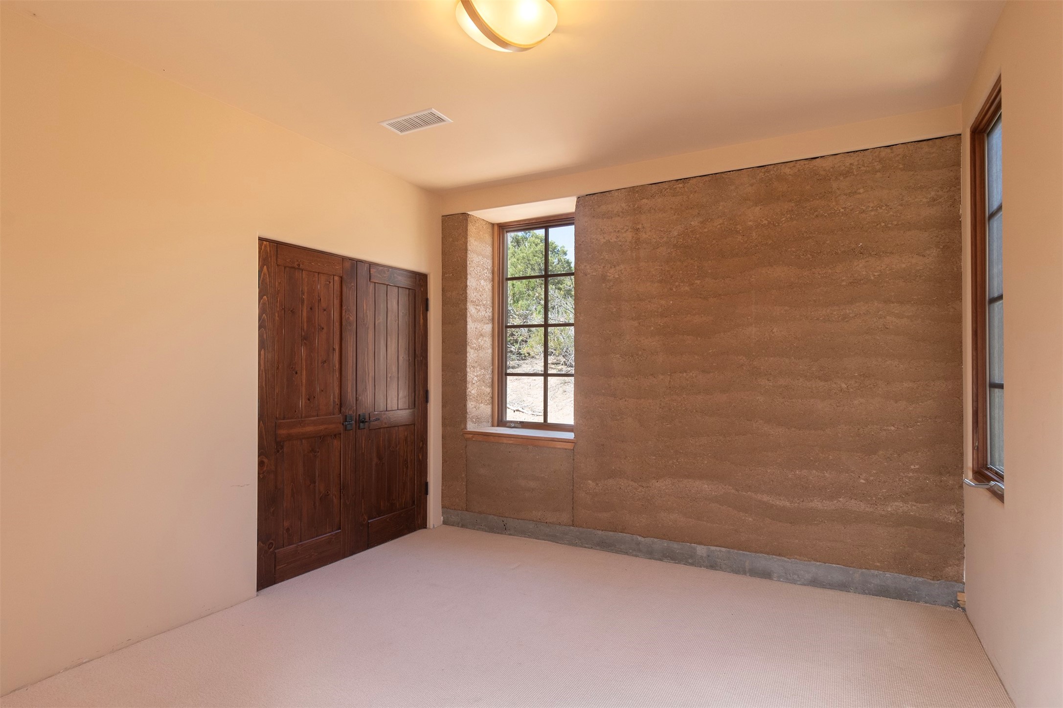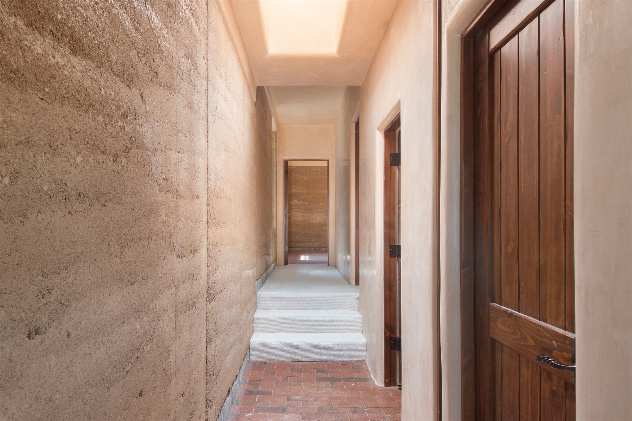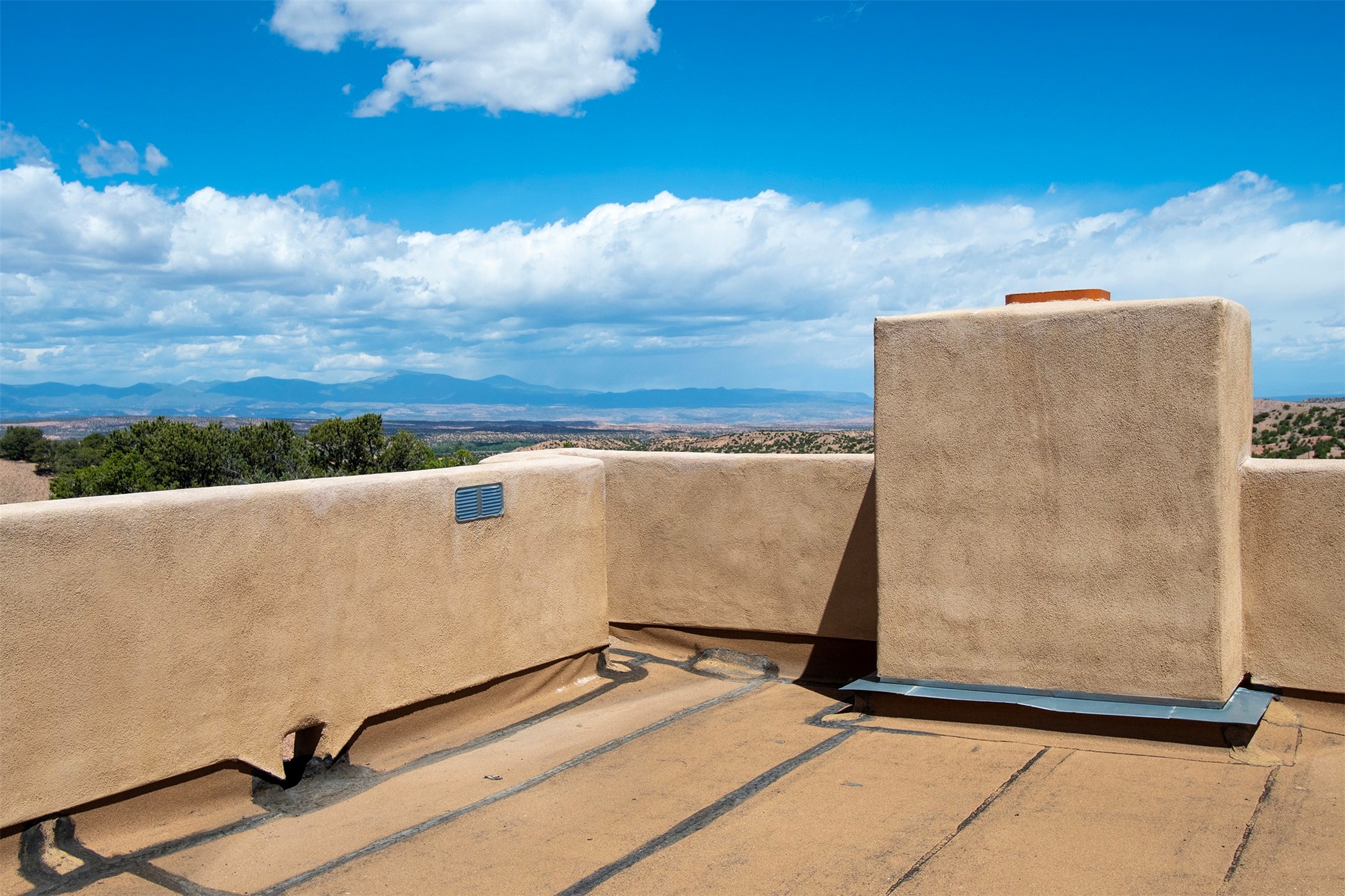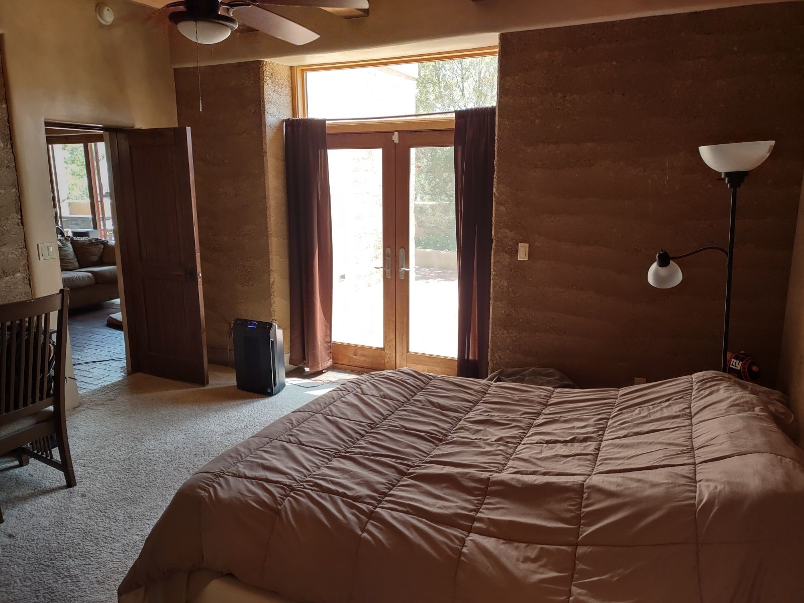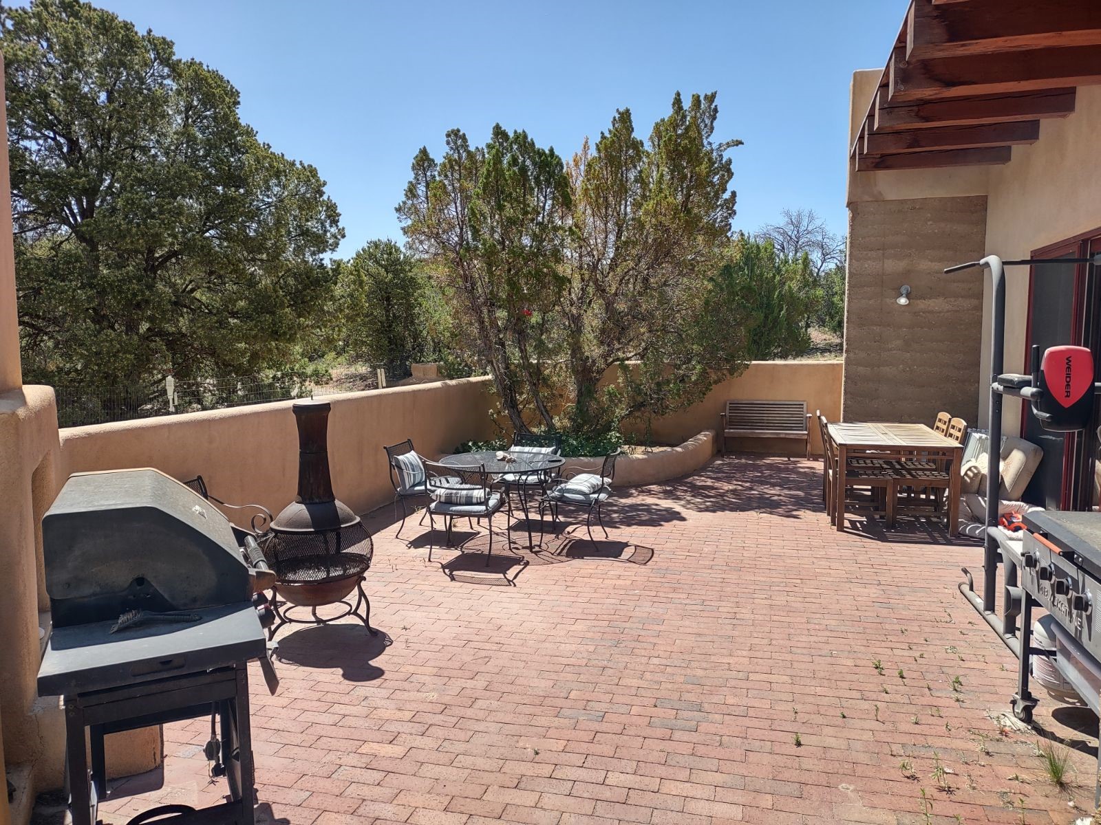 Introducing 23 Lavadero Rd, conveniently located in a neighborhood that offers a short commute to Los Alamos and Santa Fe, breathtaking views of the Sangre de Cristos and Jemez Mountains.Tucked behind Coyote Peak in the quaint hamlet of Tesuque is a stunning home and guest house, masterfully designed by the architect Efthimios Maniatis. One of the last rammed earth homes built with Chandler Huston in the Santa Fe area.As you walk the property, you'll be captivated by the custom garden walls constructed with stones sourced from Bishop's Lodge. Step inside, and you'll be greeted by the interior's exquisite craftsmanship, including steelwork by local metal artist Jeff Overlie. Notably, the basin sinks throughout the house, designed by Jeff, evoke the elegance of Tibetan prayer bowls.Adding to the allure, the mantles for the fireplaces were rescued from the home of the first territorial governor of New Mexico, a touch of local history into this exceptional residence. Furthermore, the home prioritizes nature-inspired living, employing materials with minimal volatile organics to ensure excellent interior air quality. The floors feature a combination of brick, strand-woven bamboo, and sustainable wool carpets. Many of the interior walls are custom diamond plaster.The main house comprises three or four bedrooms and two and a half baths, offering a comfortable and flexible living space, including a chef's kitchen. The guest house offers two bedrooms and two baths, with a strong rental history. It presents an ideal space for hosting guests, accommodating extended family, or generating rental income.Situated on 6.4 acres, this property features hiking trails perfect for dog walks that extend into the neighborhood and the National Forest. Explore the picturesque landscape, whether venturing into the Sangre de Cristos or strolling down to the Tesuque Village Market. Priced below market value so a special buyer can put the finishing touches on this one-of-a-kind home.