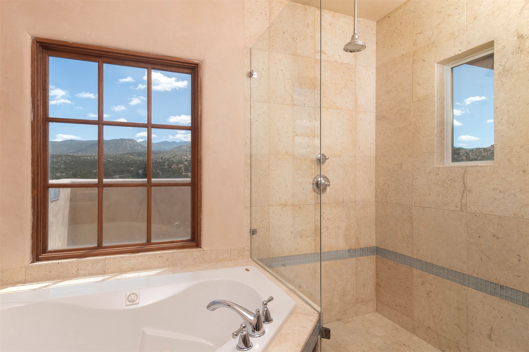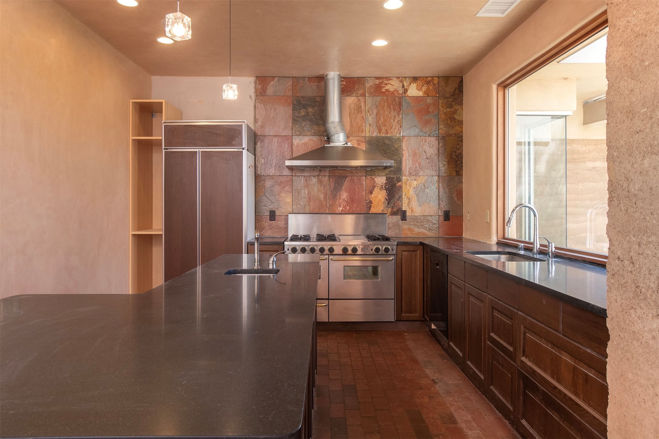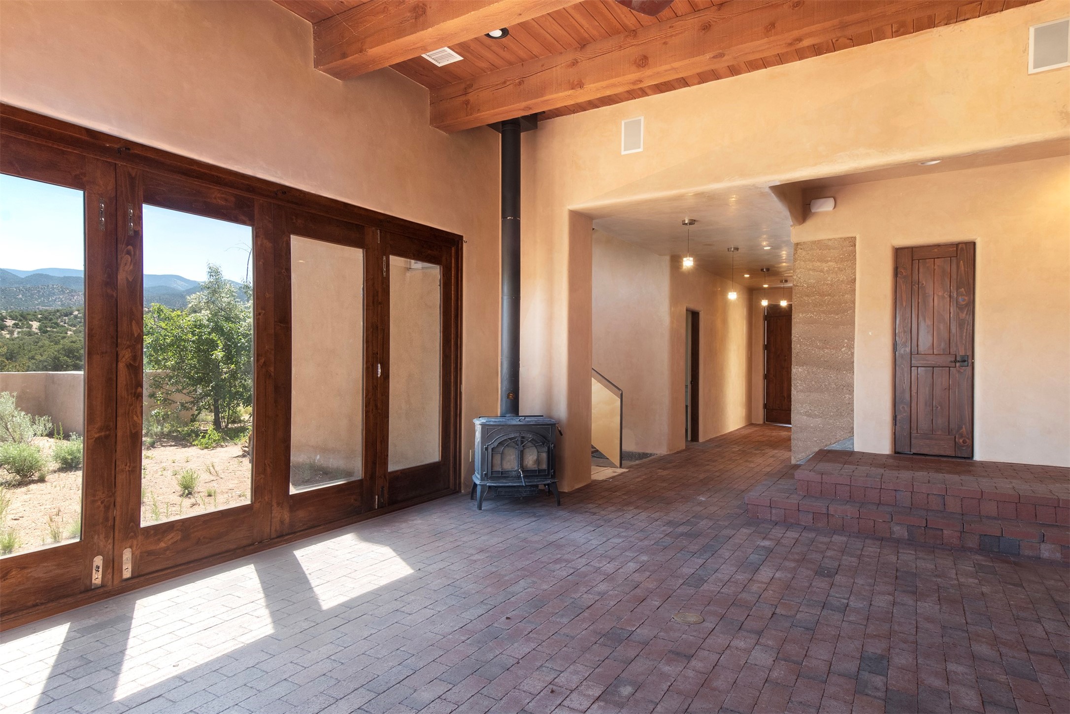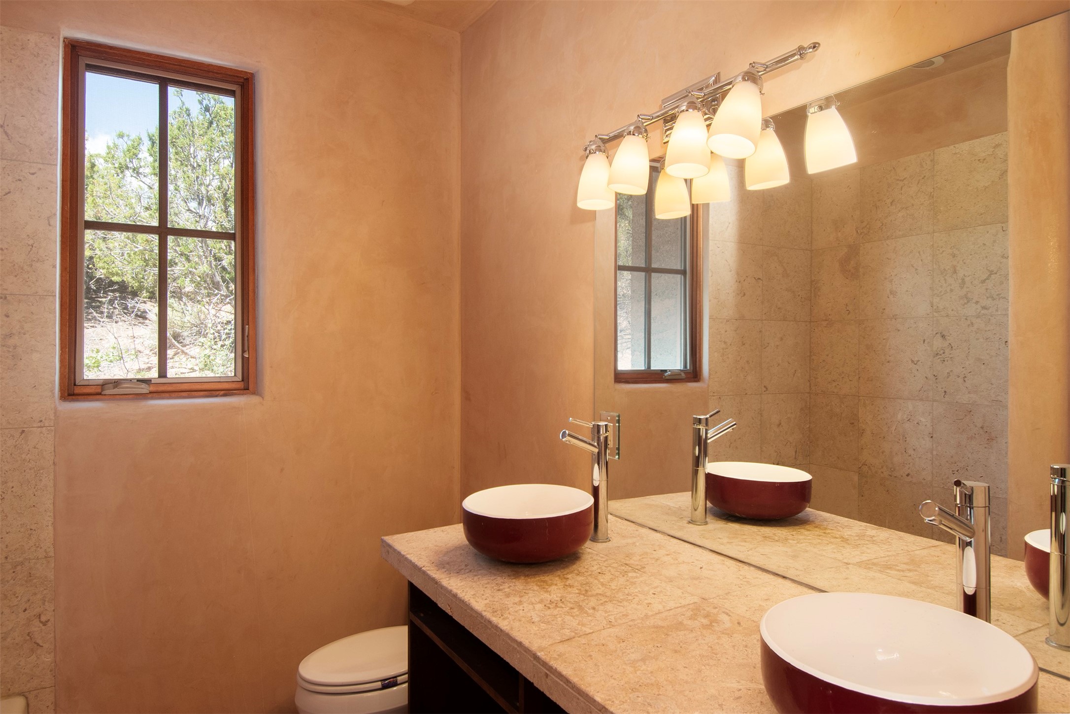 Introducing 23 Lavadero Rd, conveniently located in a neighborhood that offers a short commute to Los Alamos and Santa Fe, breathtaking views of the Sangre de Cristos and Jemez Mountains.Tucked behind Coyote Peak in the quaint hamlet of Tesuque is a stunning home and guest house, masterfully designed by the architect Efthimios Maniatis. One of the last rammed earth homes built with Chandler Huston in the Santa Fe area.As you walk the property, you'll be captivated by the custom garden walls constructed with stones sourced from Bishop's Lodge. Step inside, and you'll be greeted by the interior's exquisite craftsmanship, including steelwork by local metal artist Jeff Overlie. Notably, the basin sinks throughout the house, designed by Jeff, evoke the elegance of Tibetan prayer bowls.Adding to the allure, the mantles for the fireplaces were rescued from the home of the first territorial governor of New Mexico, a touch of local history into this exceptional residence. Furthermore, the home prioritizes nature-inspired living, employing materials with minimal volatile organics to ensure excellent interior air quality. The floors feature a combination of brick, strand-woven bamboo, and sustainable wool carpets. Many of the interior walls are custom diamond plaster.The main house comprises three or four bedrooms and two and a half baths, offering a comfortable and flexible living space, including a chef's kitchen. The guest house offers two bedrooms and two baths, with a strong rental history. It presents an ideal space for hosting guests, accommodating extended family, or generating rental income.Situated on 6.4 acres, this property features hiking trails perfect for dog walks that extend into the neighborhood and the National Forest. Explore the picturesque landscape, whether venturing into the Sangre de Cristos or strolling down to the Tesuque Village Market. Priced below market value so a special buyer can put the finishing touches on this one-of-a-kind home.