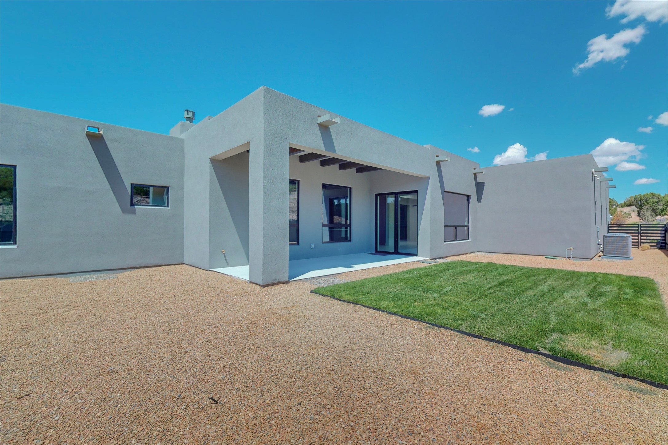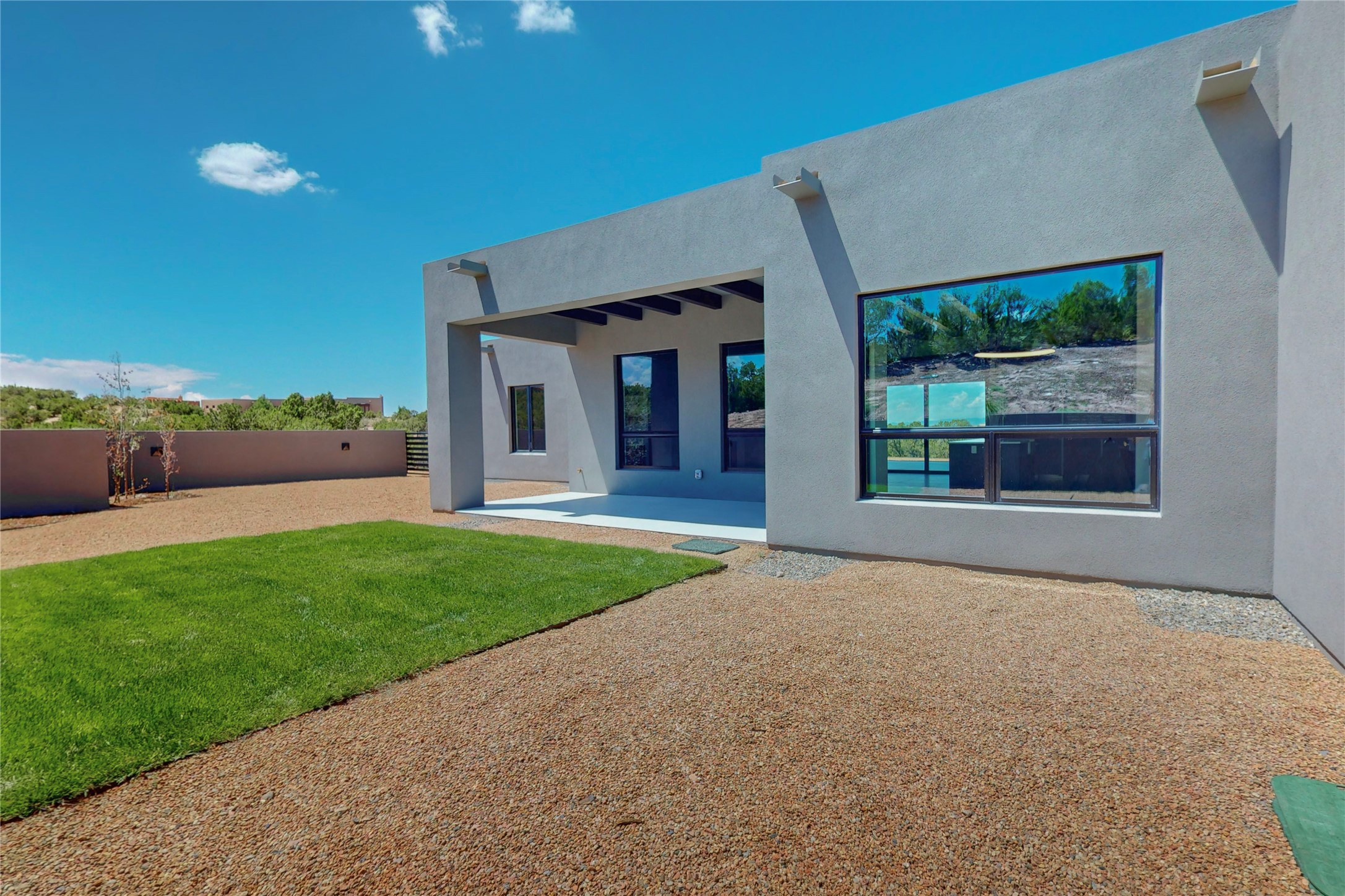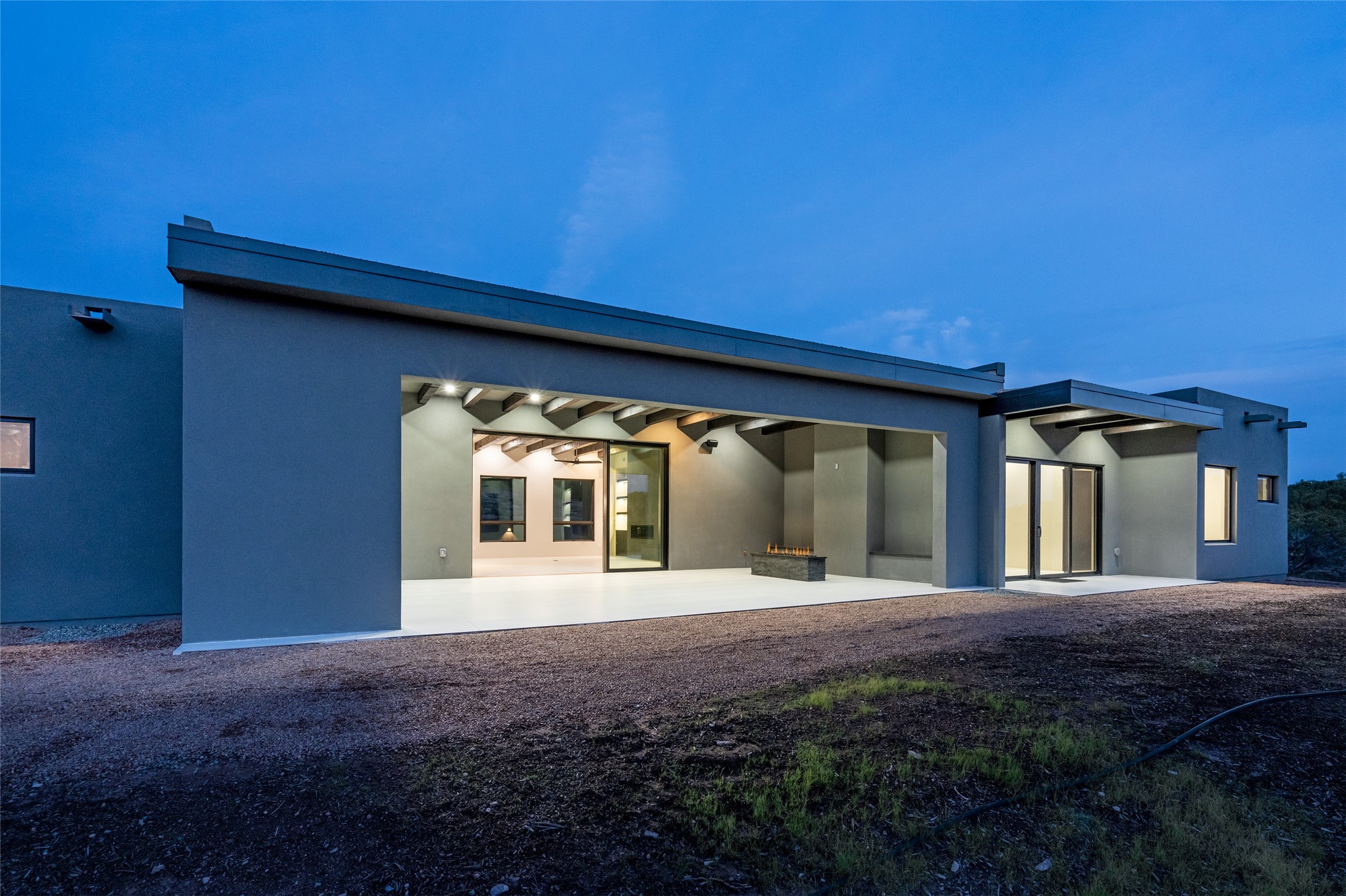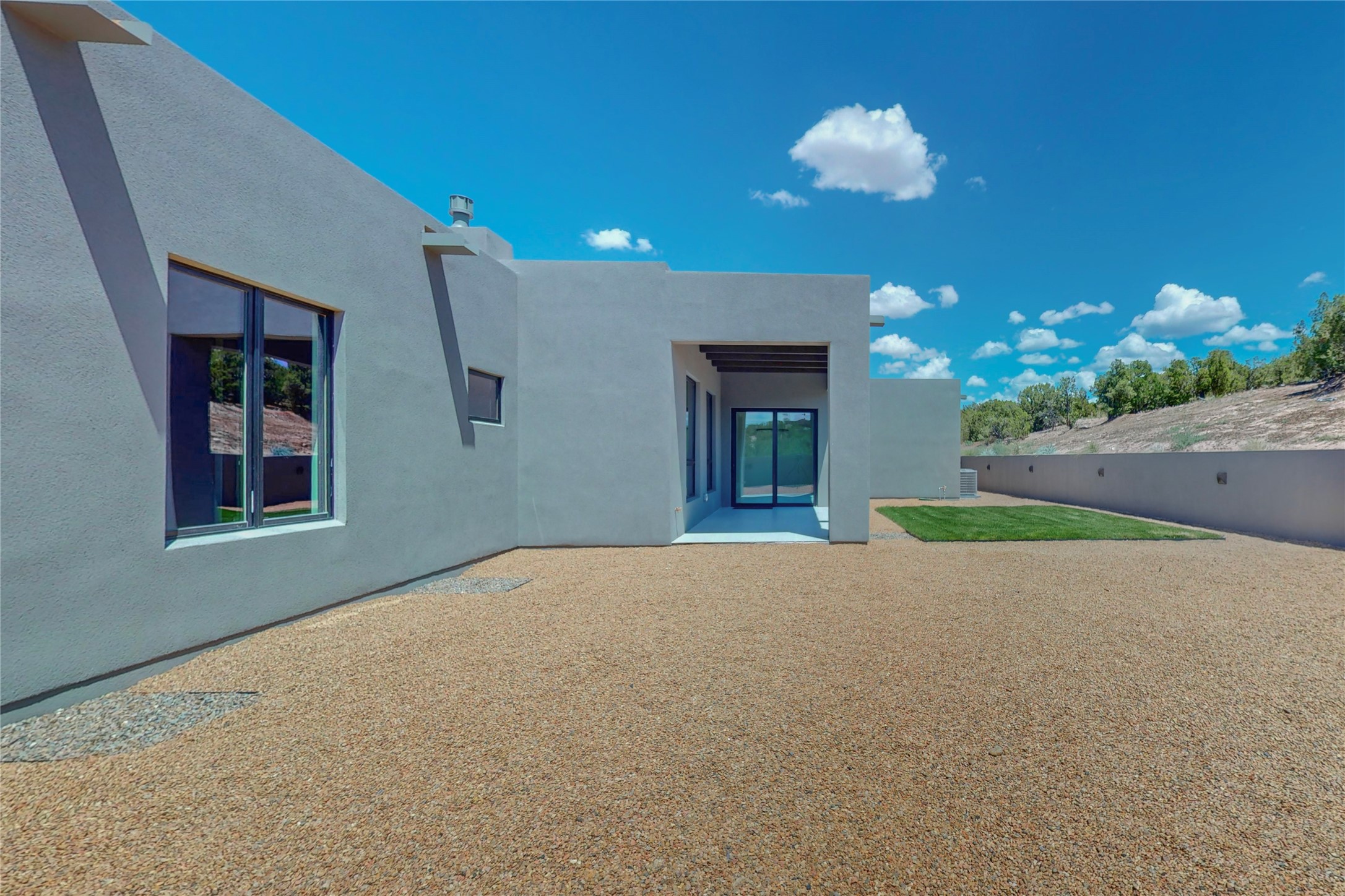 Come experience the latest custom home by Santa Fe Builders Construction, LLC. Set on one of the last remaining lots in the exclusive Sundance Ridge community. This enclave of exceptional custom homes is married to Santa Fe's most sought after land of rolling hills, unparalleled views and privacy. Your new home is at the end of a private cul-de-sac, tucked in on a ridge and overlooking the Jemez mountain range. Delivering stunning sunsets, and starry nights; it feels like you own the west. The soft pueblo contemporary features an open concept floor plan, exquisite kitchen and butler's pantry, luxurious master suite, plus two additional bedrooms, and a heated garage. Glass panel, vanishing pocket doors in the great room blur the lines between indoor and outdoor space, leading you to an expansive, view filled, covered portal with outdoor kitchen and fire pit. Enjoy instant comfort in any season with in-floor radiant heat and refrigerated air. Located just 15 minutes from downtown means quick access to everything Santa Fe while still feeling worlds away.