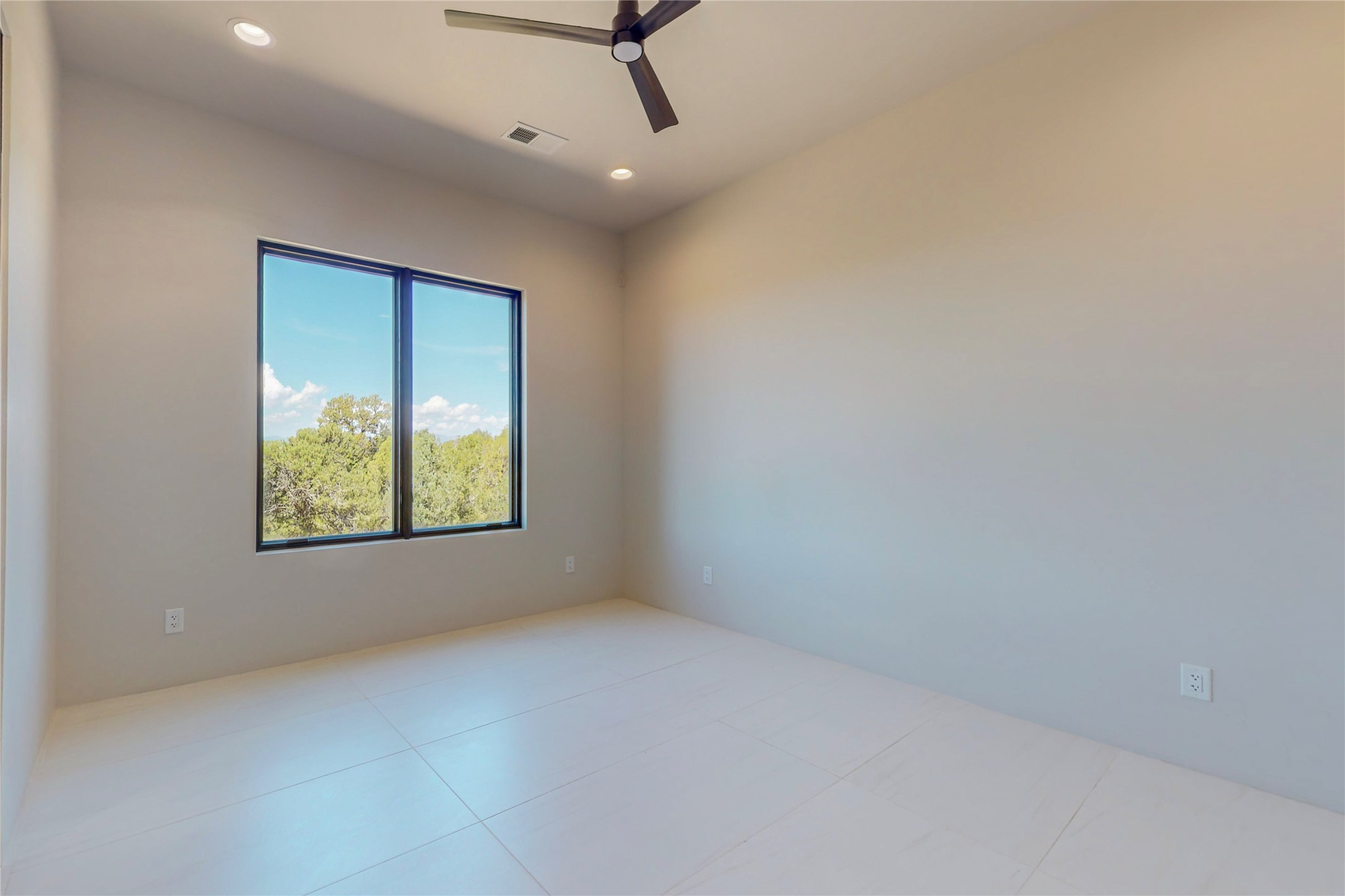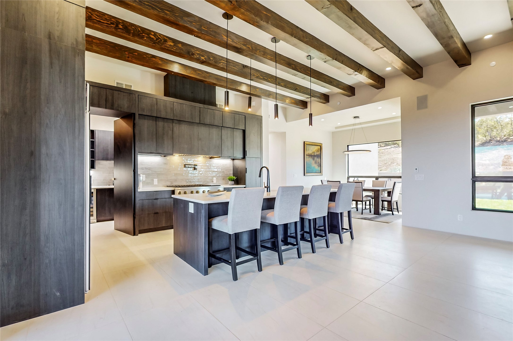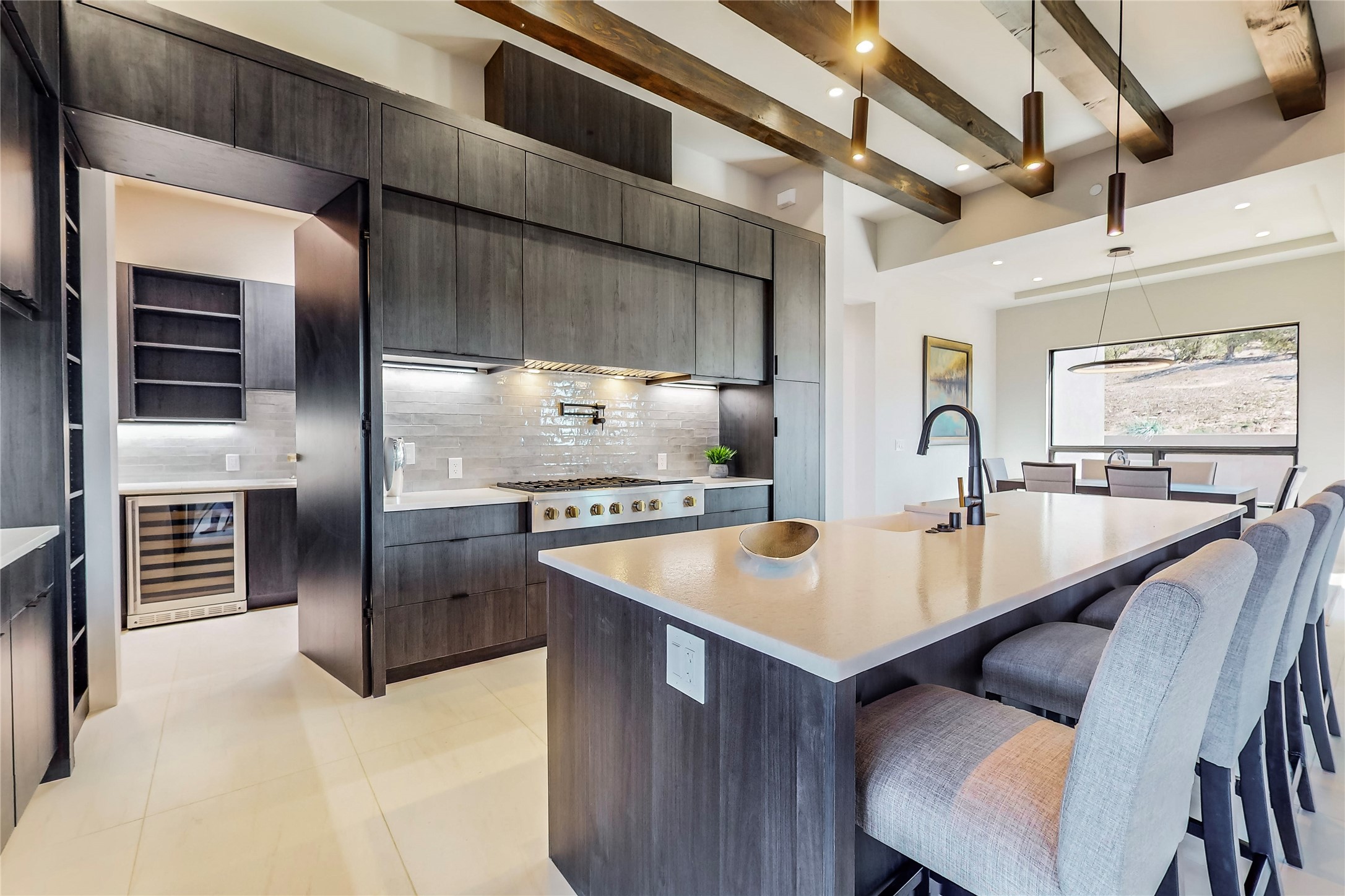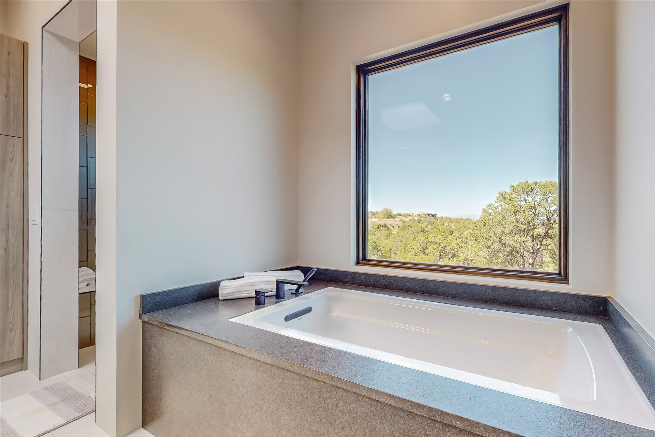 Come experience the latest custom home by Santa Fe Builders Construction, LLC. Set on one of the last remaining lots in the exclusive Sundance Ridge community. This enclave of exceptional custom homes is married to Santa Fe's most sought after land of rolling hills, unparalleled views and privacy. Your new home is at the end of a private cul-de-sac, tucked in on a ridge and overlooking the Jemez mountain range. Delivering stunning sunsets, and starry nights; it feels like you own the west. The soft pueblo contemporary features an open concept floor plan, exquisite kitchen and butler's pantry, luxurious master suite, plus two additional bedrooms, and a heated garage. Glass panel, vanishing pocket doors in the great room blur the lines between indoor and outdoor space, leading you to an expansive, view filled, covered portal with outdoor kitchen and fire pit. Enjoy instant comfort in any season with in-floor radiant heat and refrigerated air. Located just 15 minutes from downtown means quick access to everything Santa Fe while still feeling worlds away.